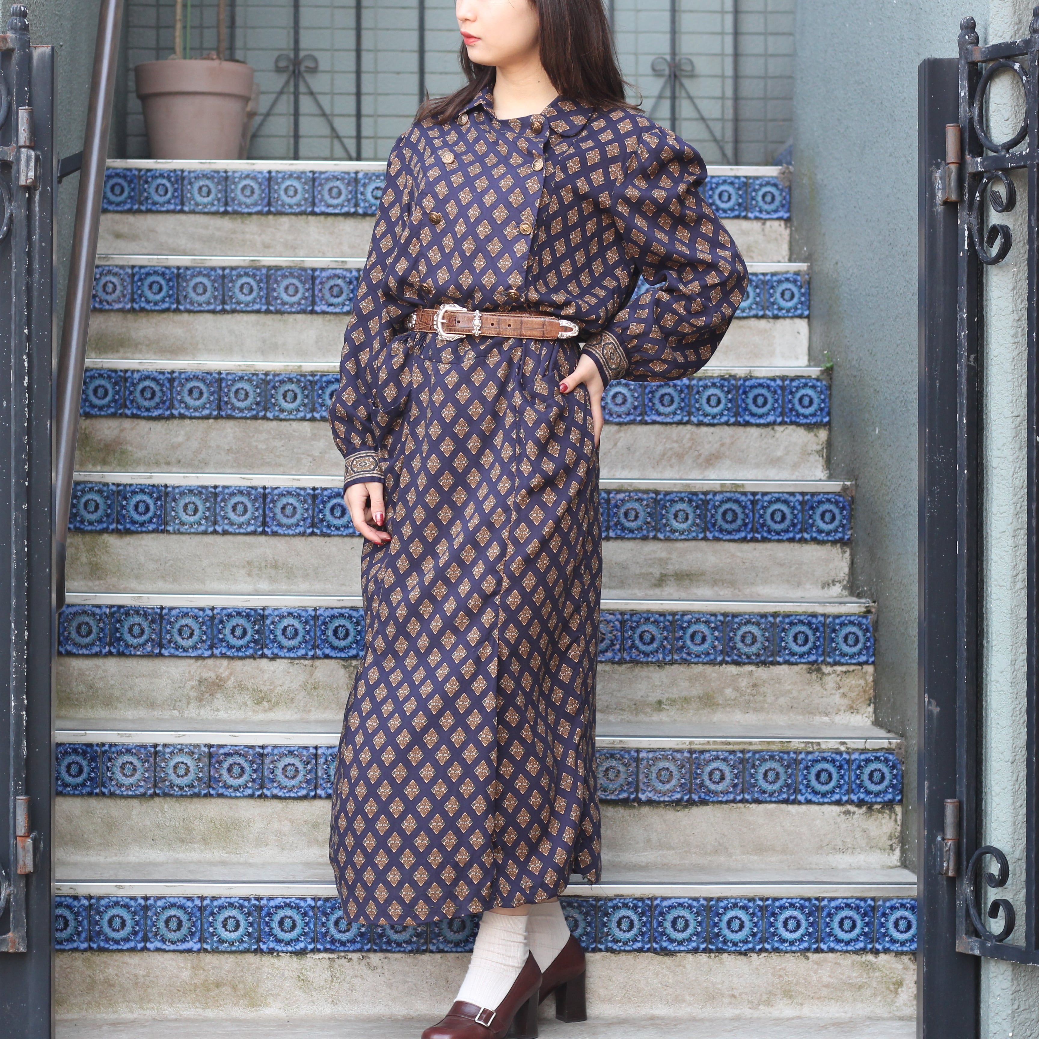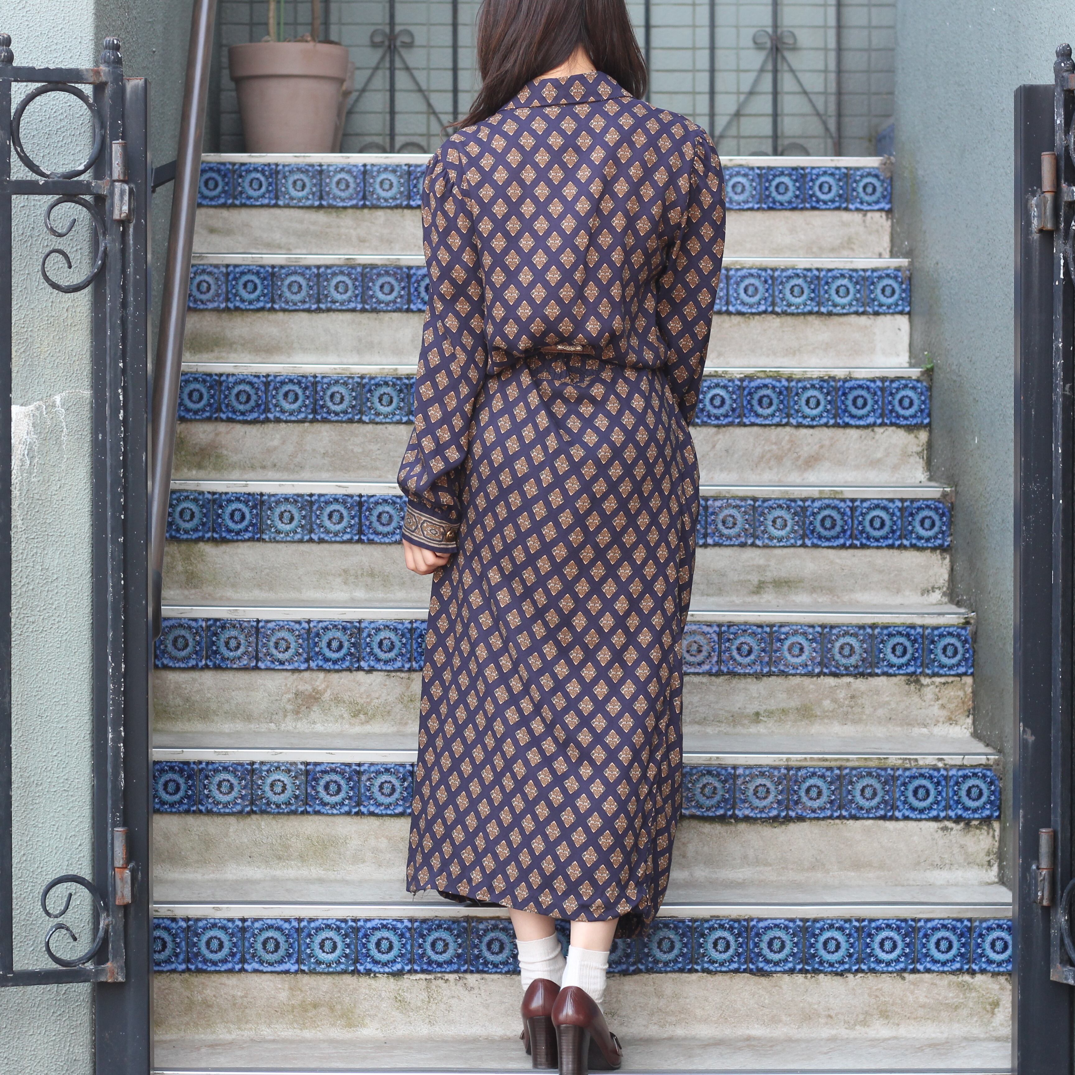 *SALE* USA VINTAGE PATTY O'Neil SCARF PATTERNED DOUBLE METAL BUTTON DESIGN ONE PIECE/アメリカ古着スカーフ柄ダブルメタルボタンデザインワンピース