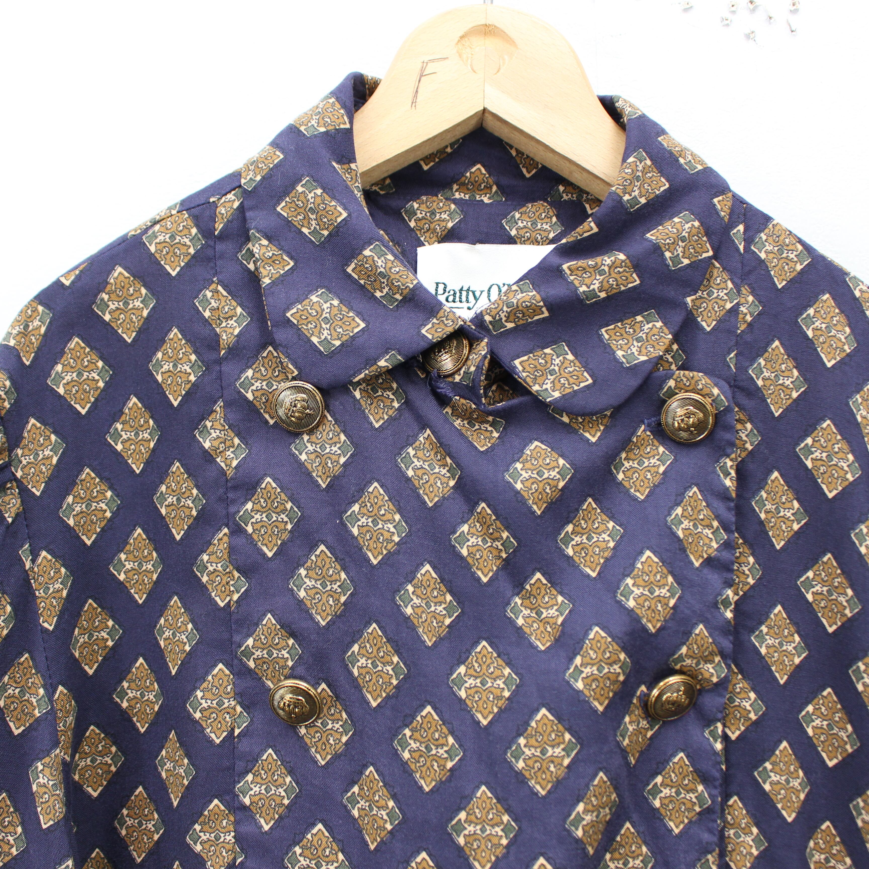 USA VINTAGE PATTY O'Neil SCARF PATTERNED DOUBLE METAL BUTTON DESIGN ONE PIECE/アメリカ古着スカーフ柄ダブルメタルボタンデザインワンピース