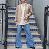 *SALE* USA VINTAGE ASTRA CABLE KNIT SWITCHED LINEN DESIGN CARDIGAN/アメリカ古着ケーブル編み切替リネンデザインカーディガン