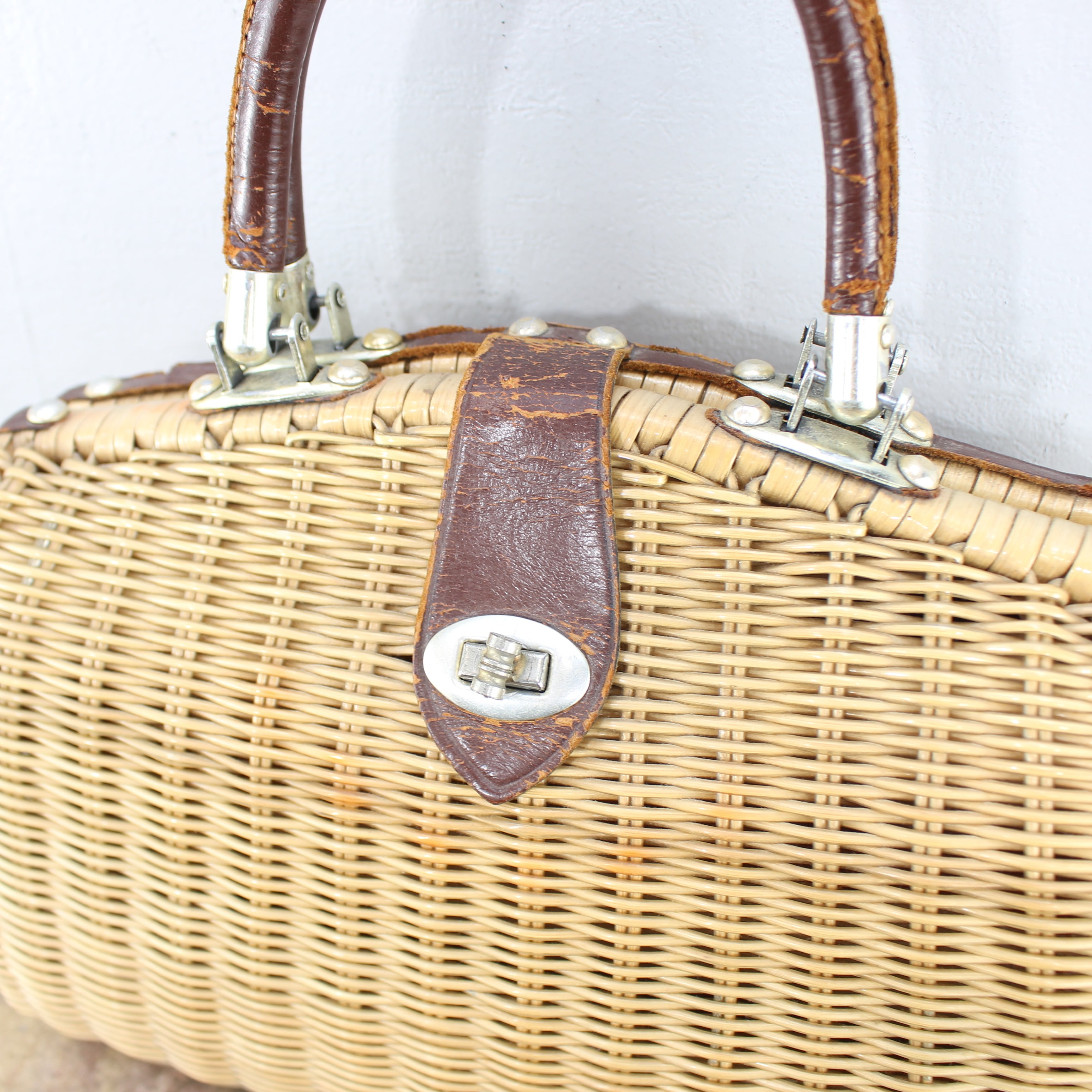USA VINTAGE TURN LOCK DESIGN BASKET HAND BAG/アメリカ古着ターンロックデザインカゴハンドバッグ