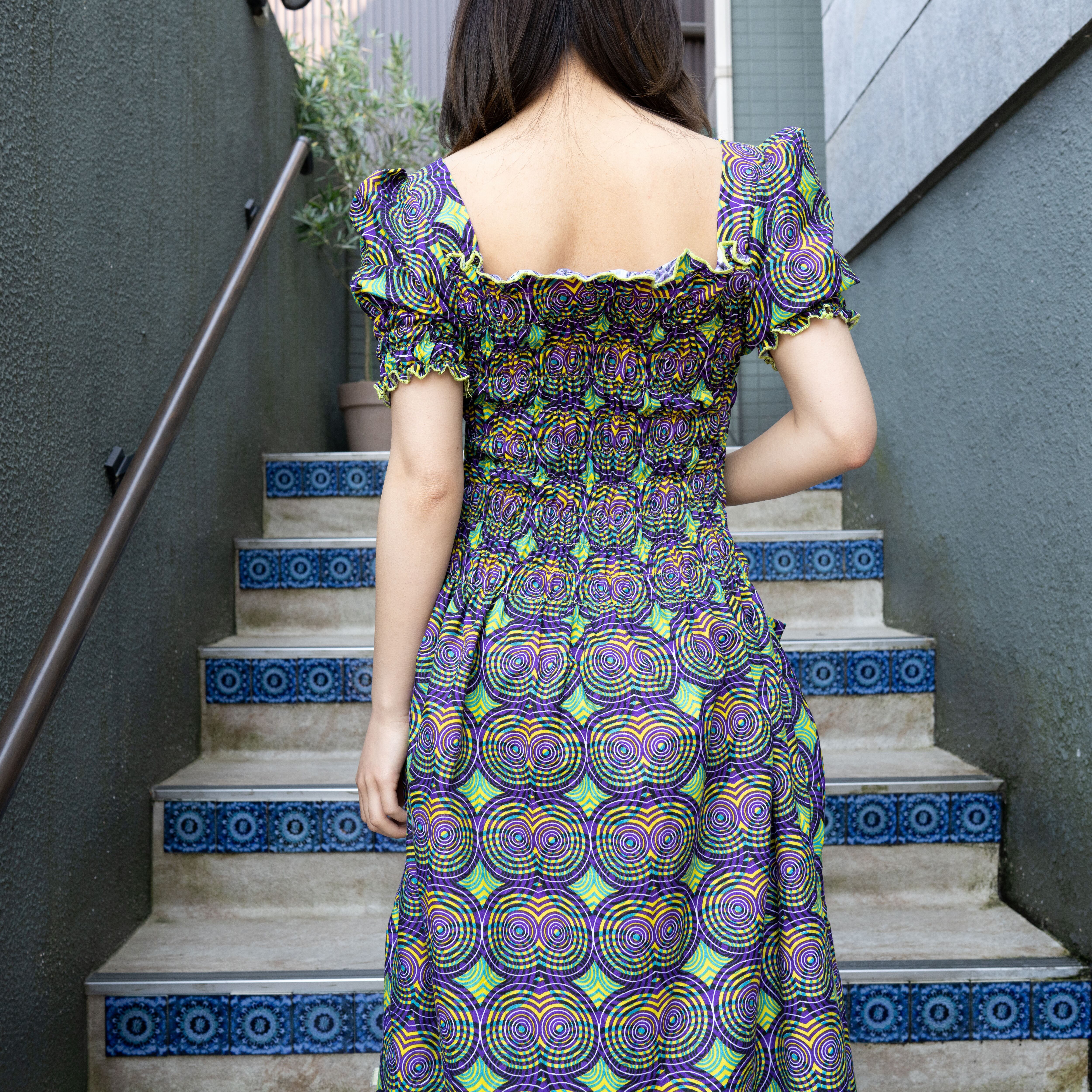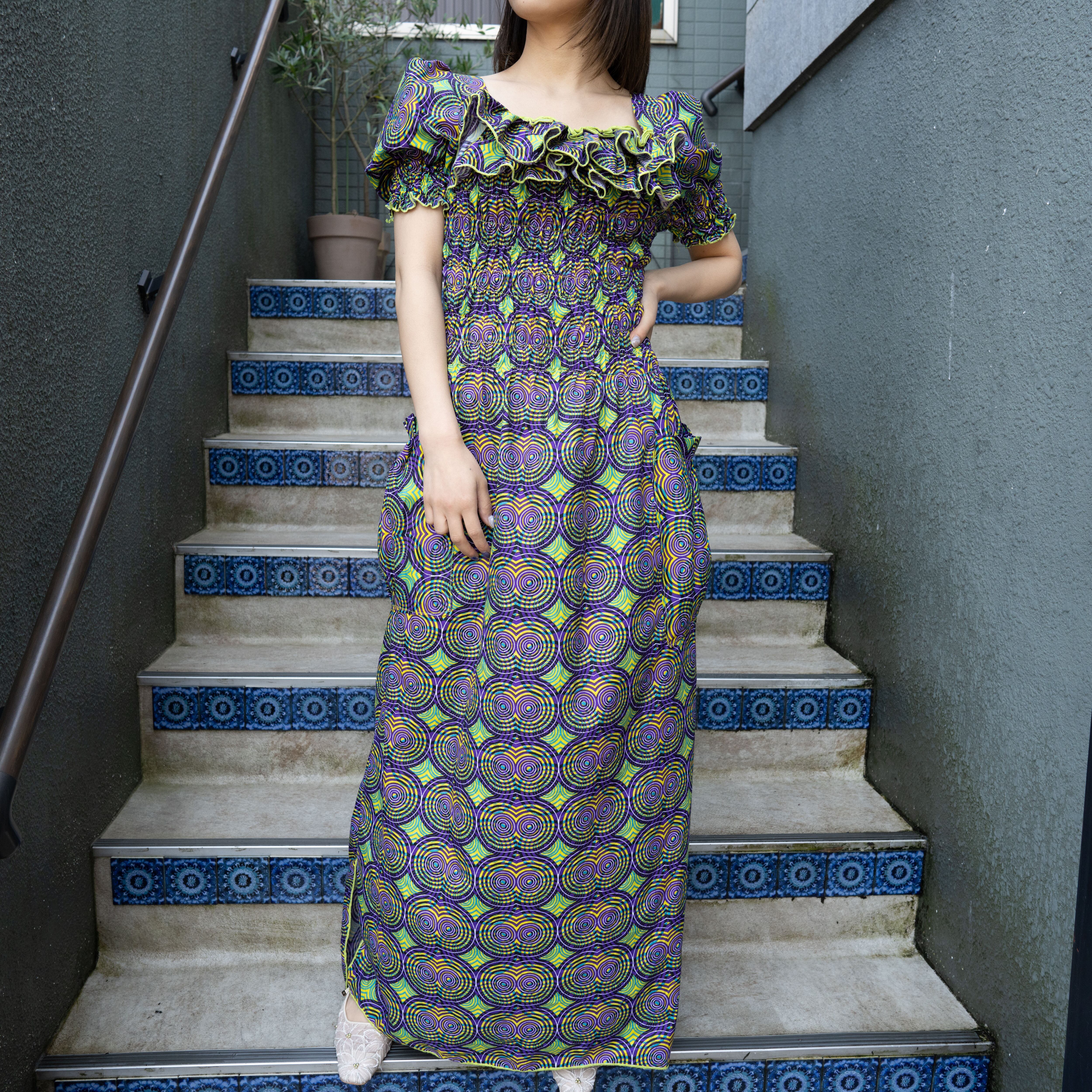 *SPECIAL ITEM* AFRICAN VINTAGE AFRICAN BATIC PATTERNED FRILL DESIGN ONE PIECE/アフリカ古着アフリカンバティック柄フリルデザインワンピース