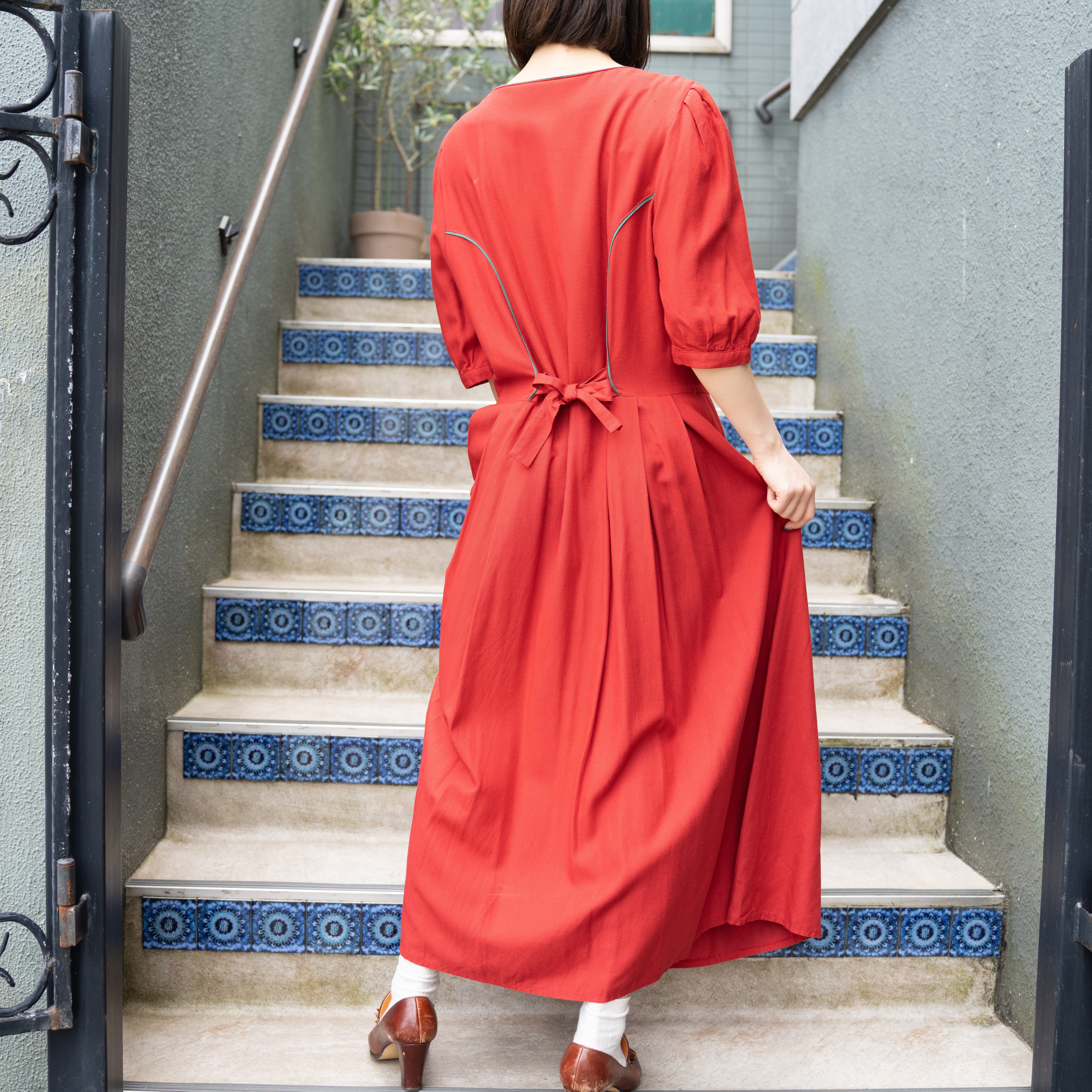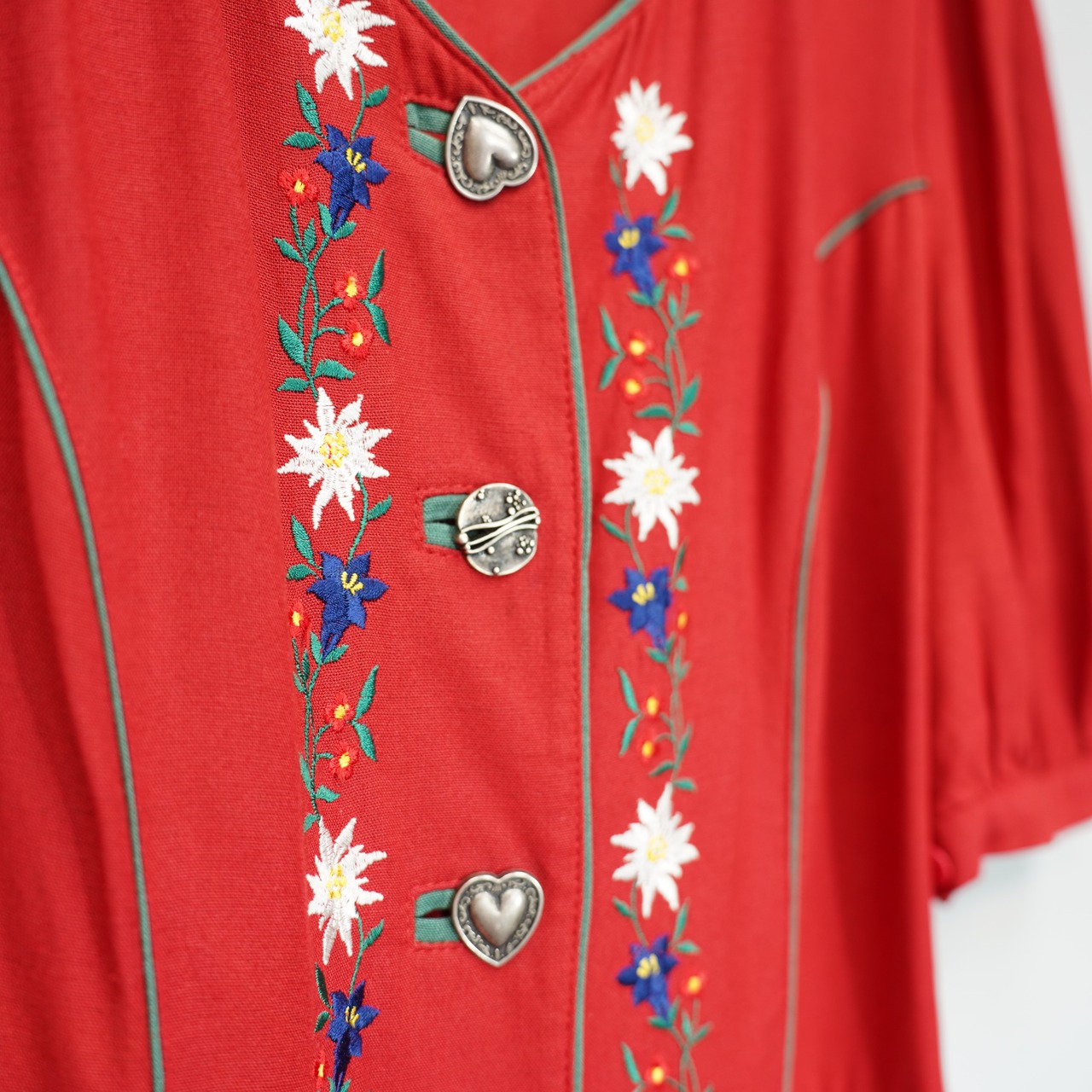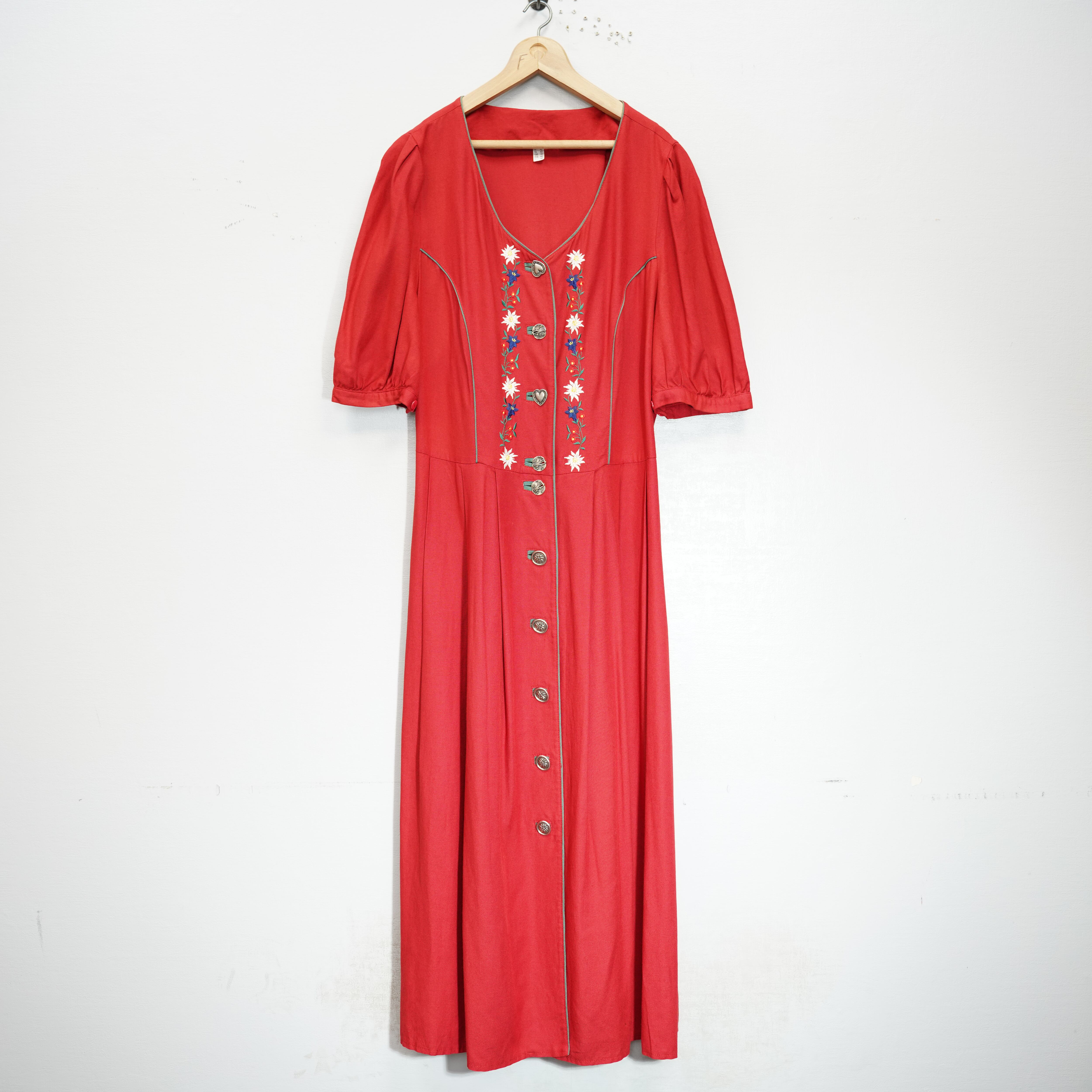 EU VINTAGE METAL BUTTON EMBROIDERY DESIGN TYROLEAN ONE PIECE/ヨーロッパ古着メタルボタン刺繍デザインチロリアンワンピース