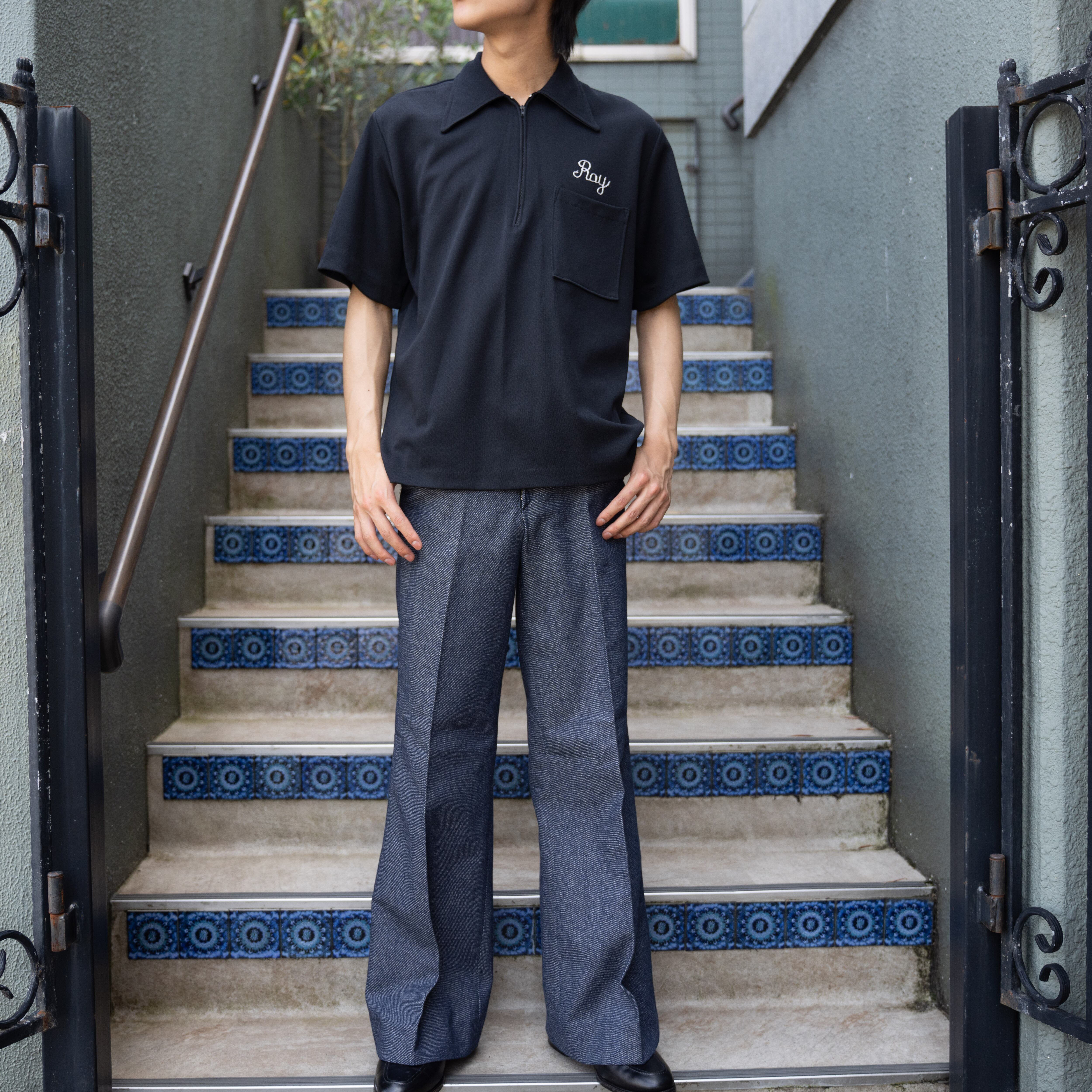 70's USA VINTAGE MR.MORTS HALF SLEEVE EMBROIDERY DESIGN ZIP UP BOWLING SHIRT/70年代アメリカ古着半袖刺繍デザインジップアップボーリングシャツ