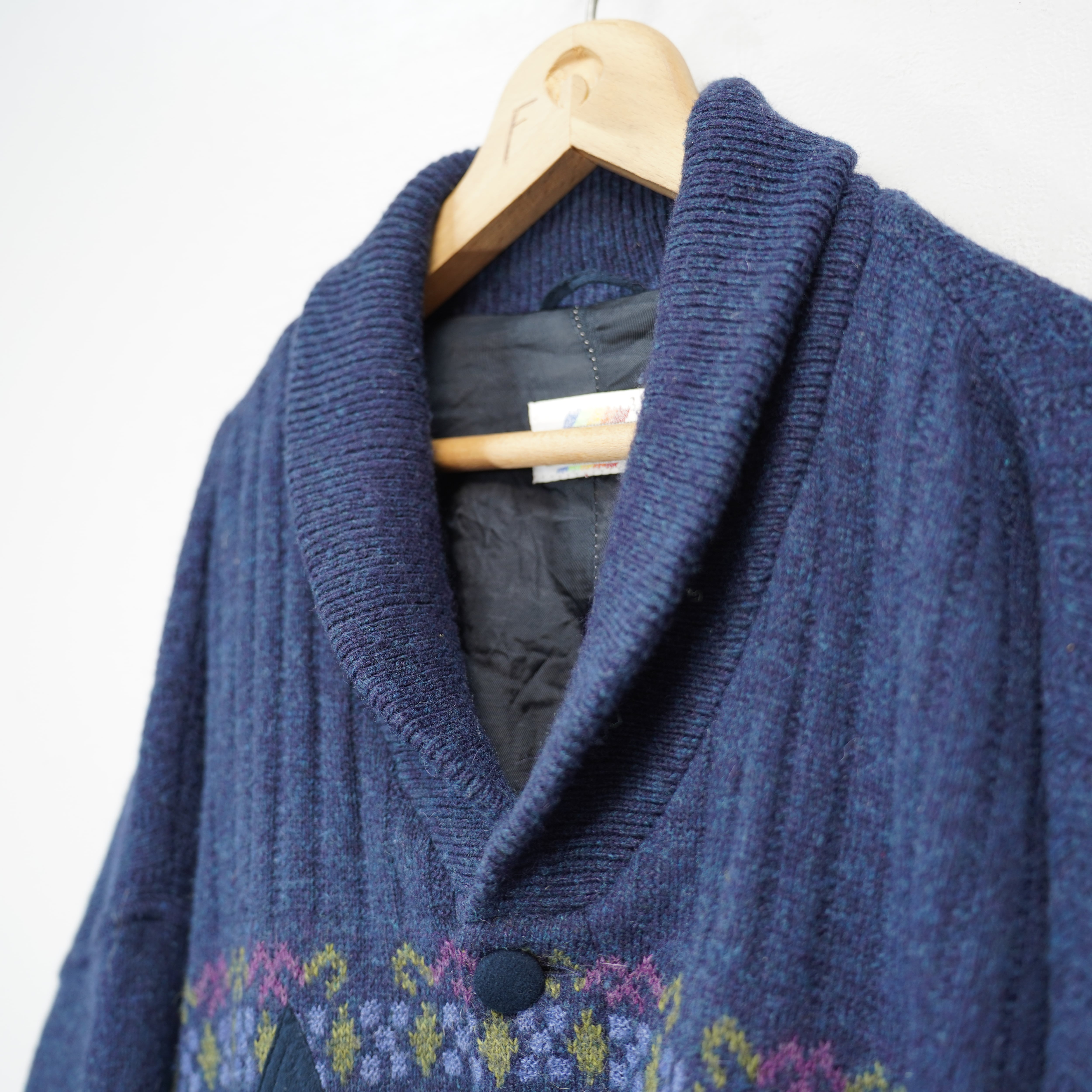 EU VINTAGE MONELLO LEATHER PATCH DESIGN KNIT JACKET MADE IN ITALY/ヨーロッパ古着レザーパッチデザインニットジャケット(カーディガン)