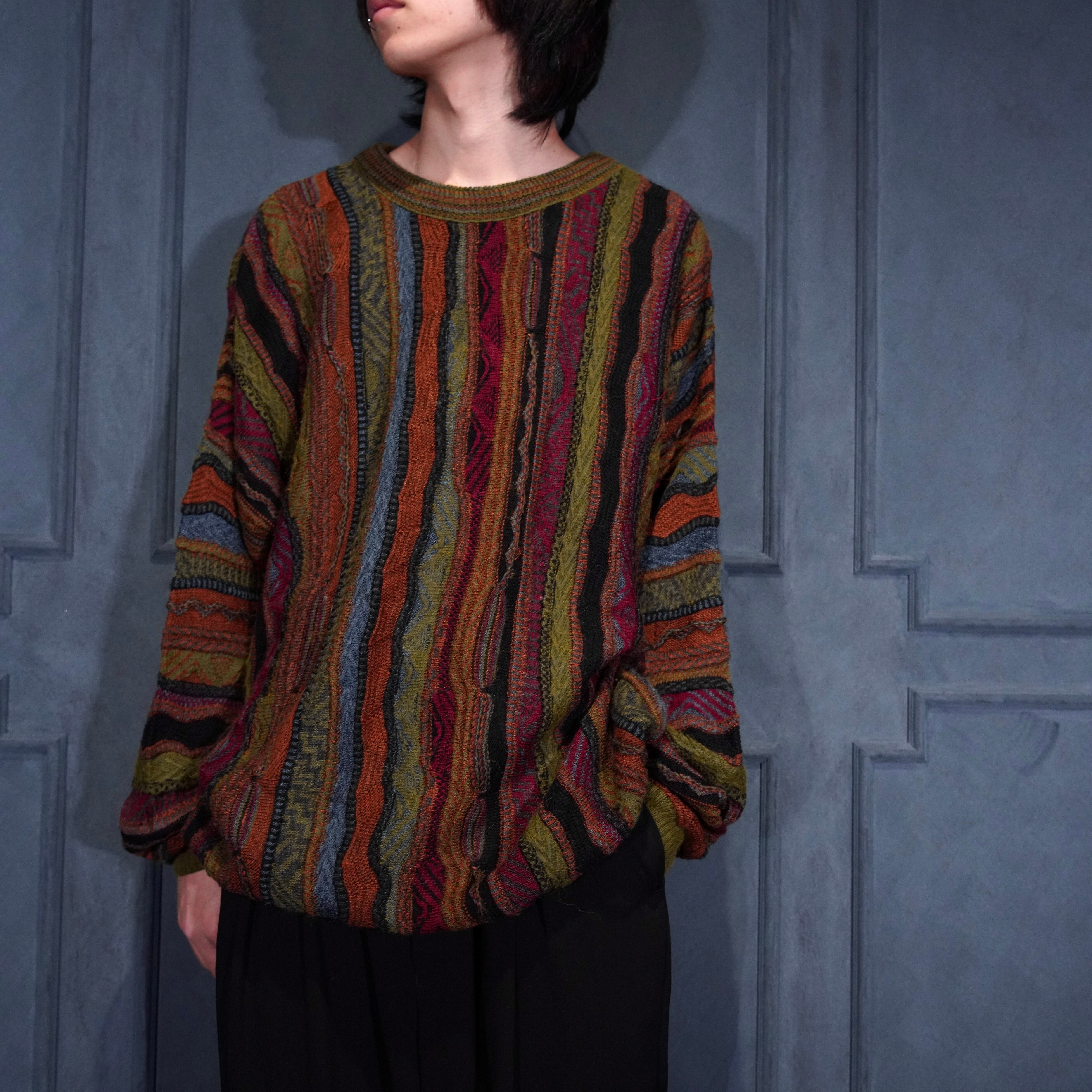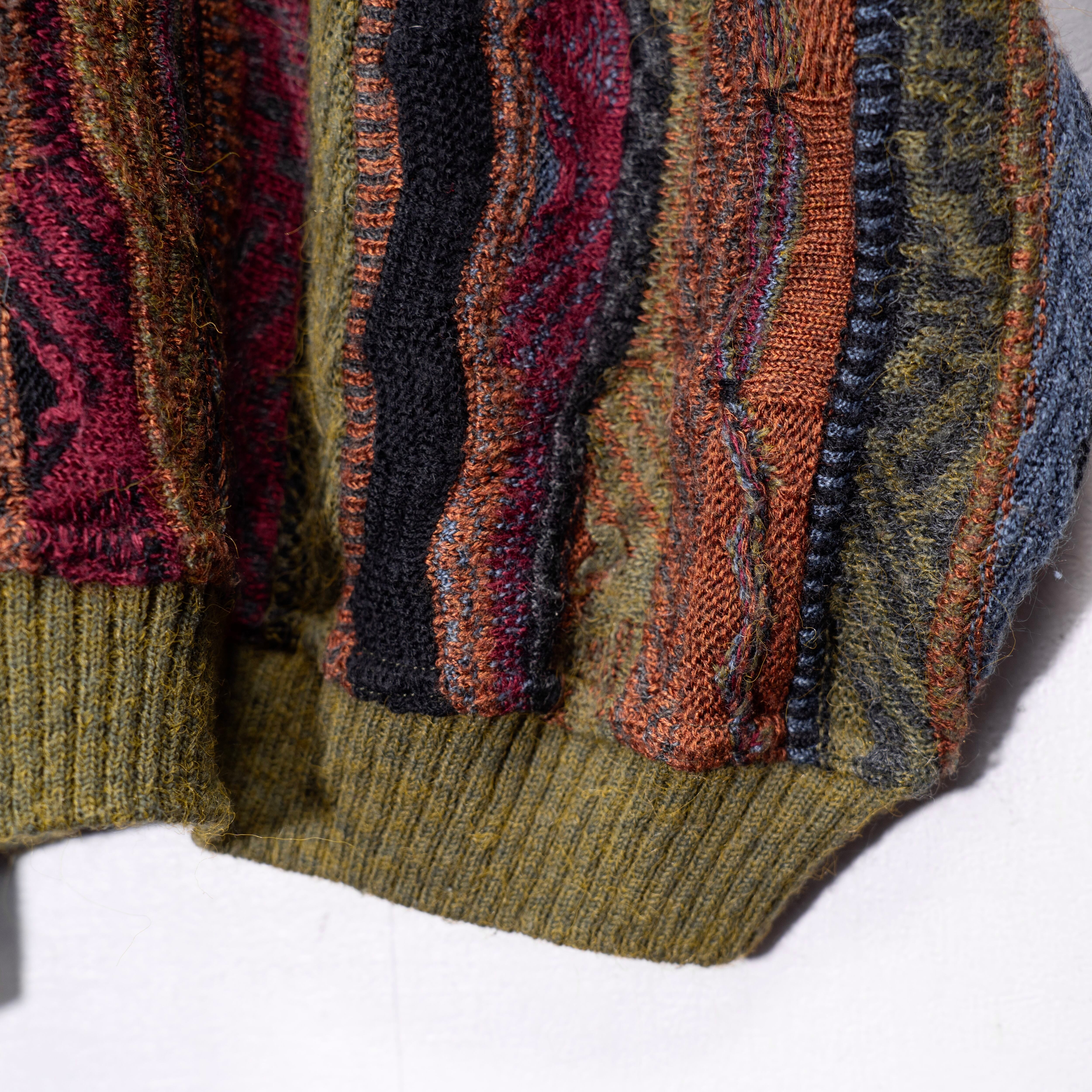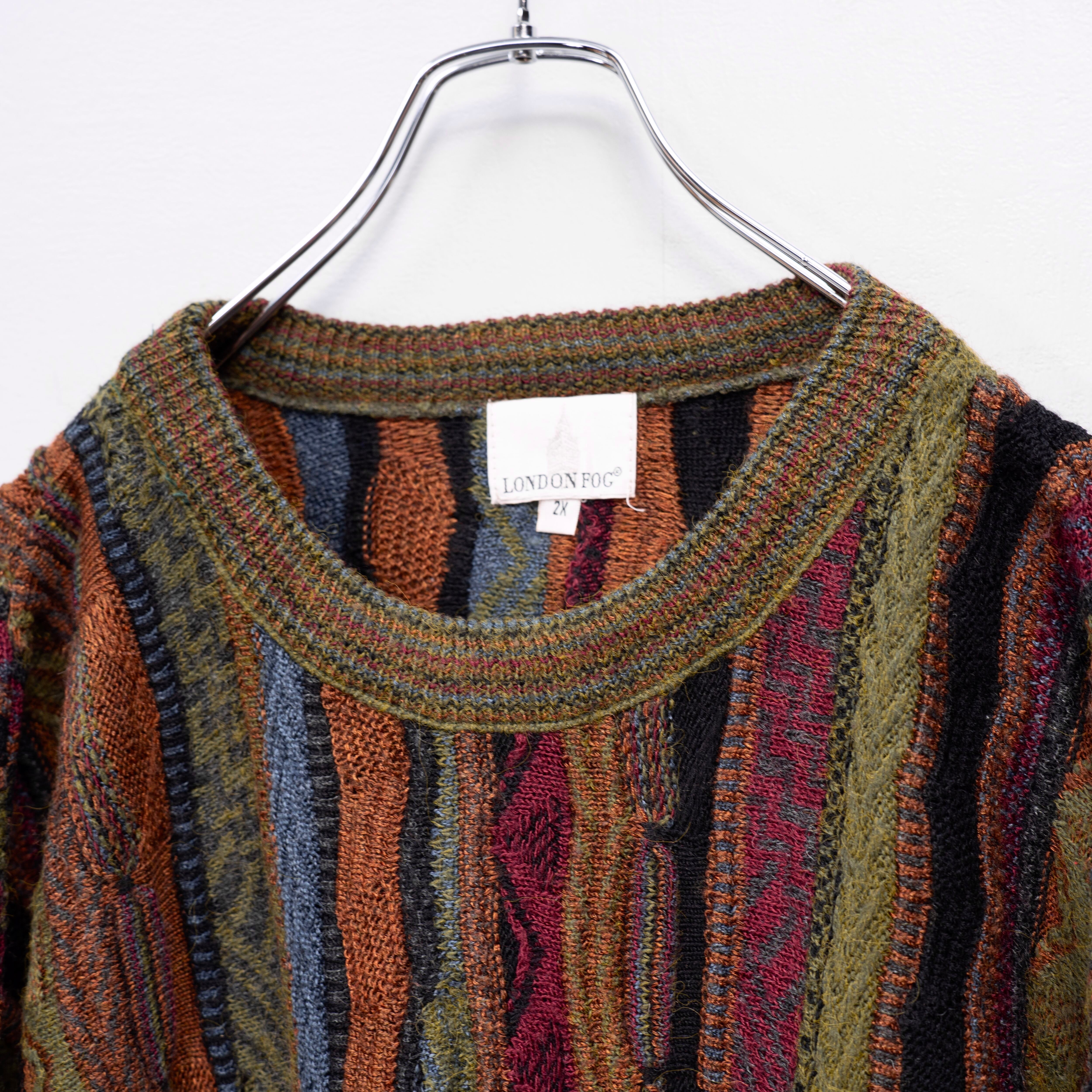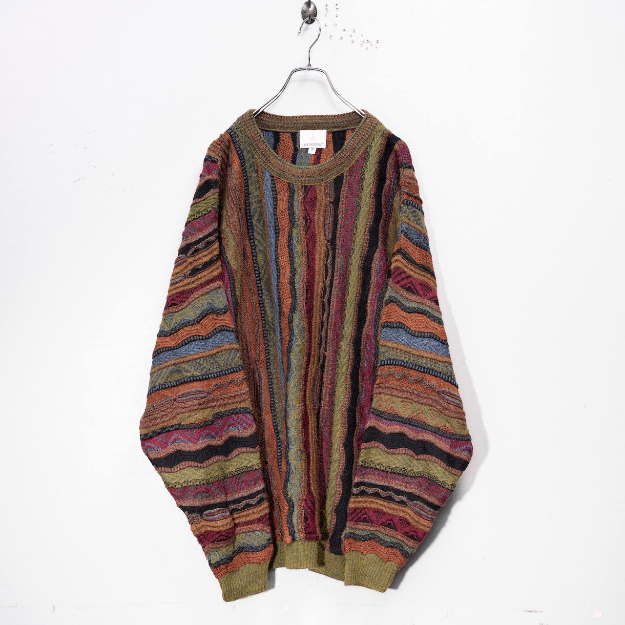 USA VINTAGE LONDON FOG MULTI PATTERNED COTTON 3D KNIT/アメリカ古着ロンドンフォグマルチパターンデザインコットン3Dニット