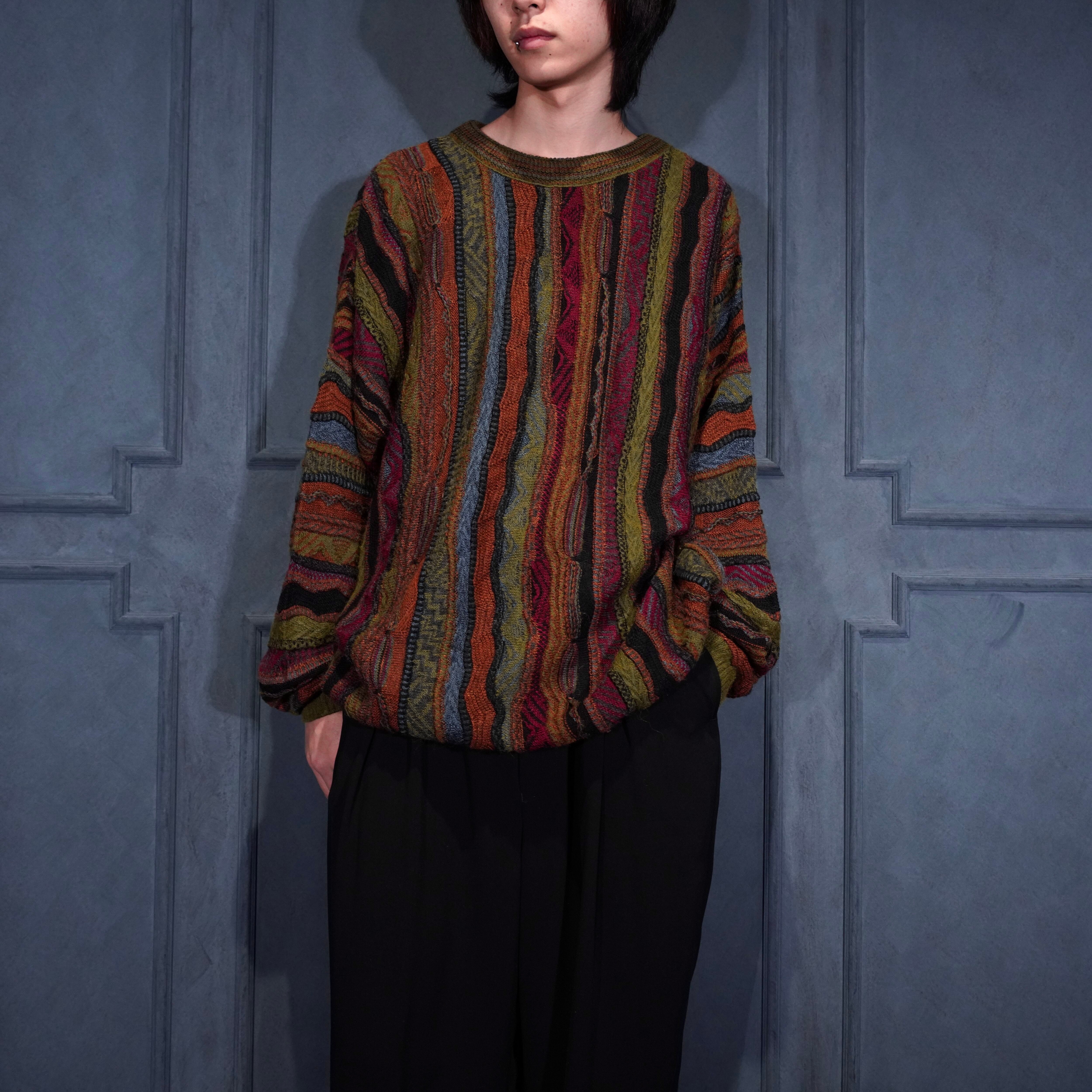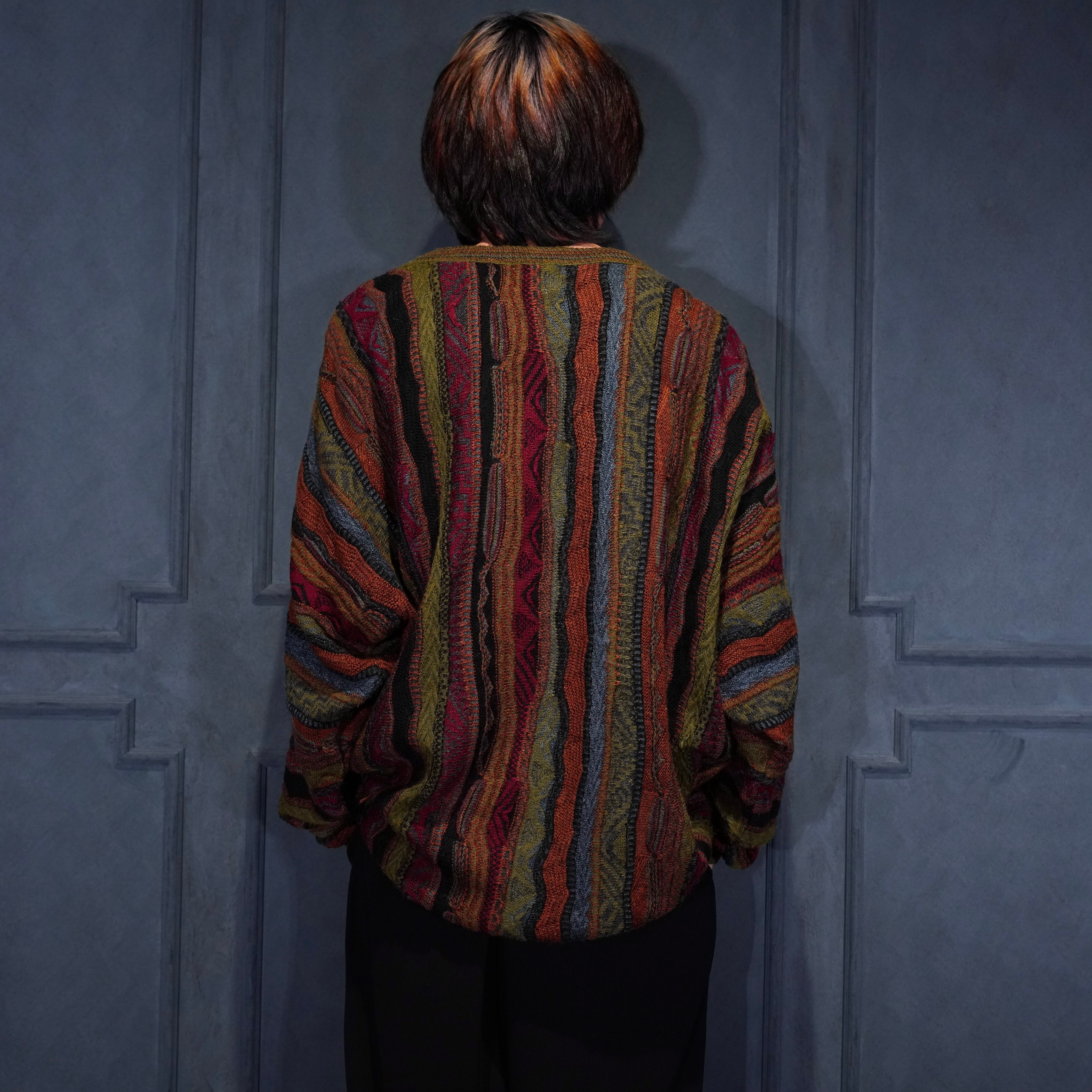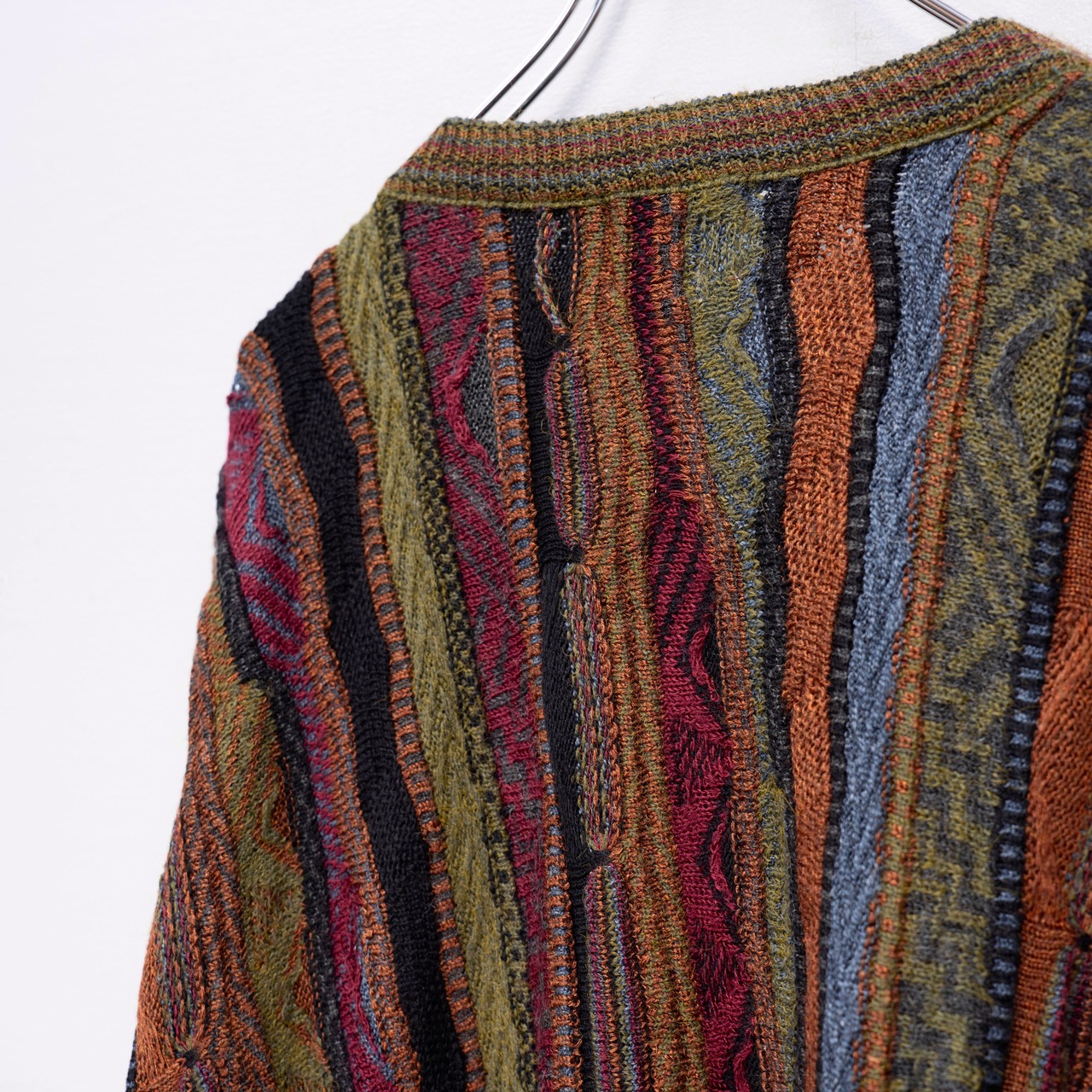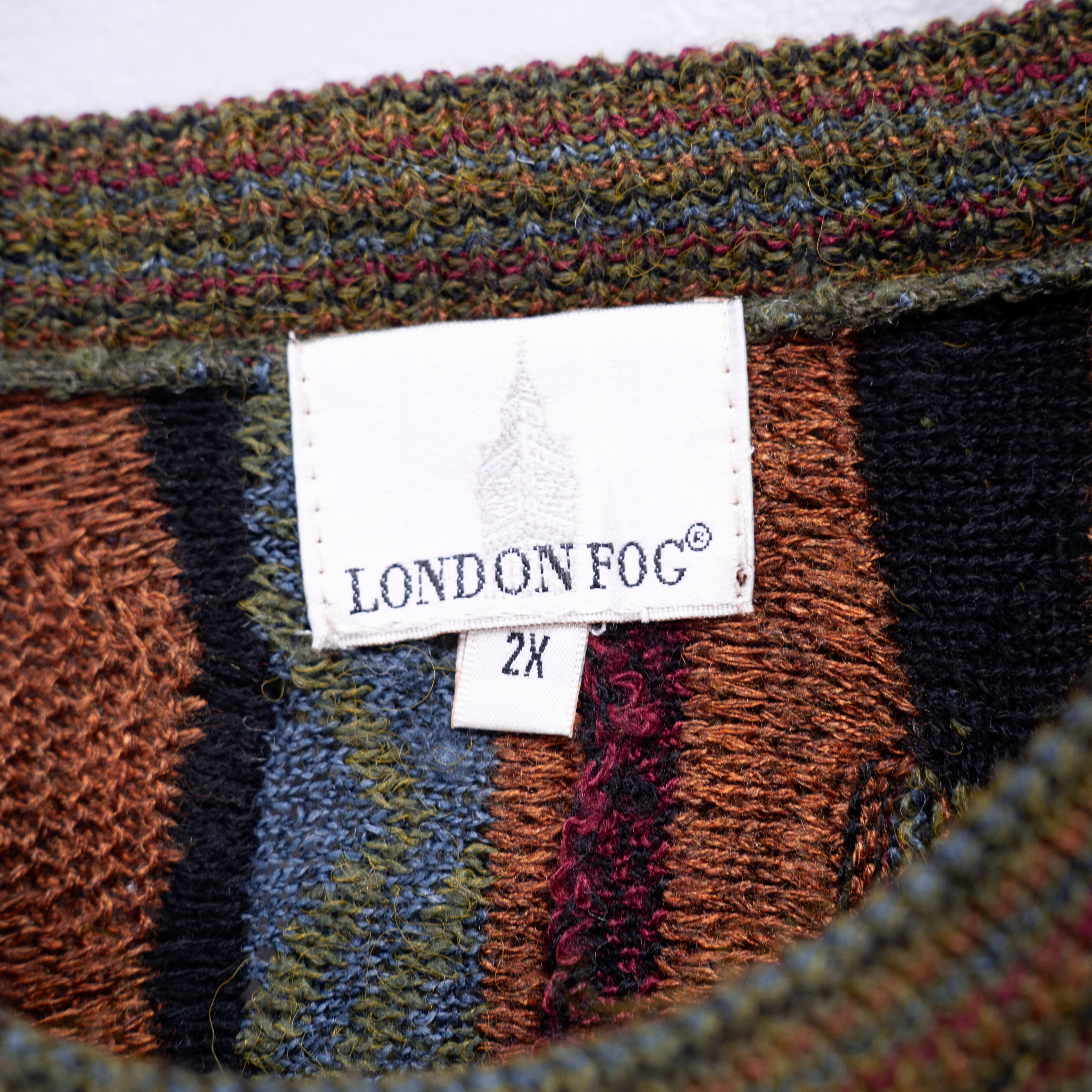 USA VINTAGE LONDON FOG MULTI PATTERNED COTTON 3D KNIT/アメリカ古着ロンドンフォグマルチパターンデザインコットン3Dニット