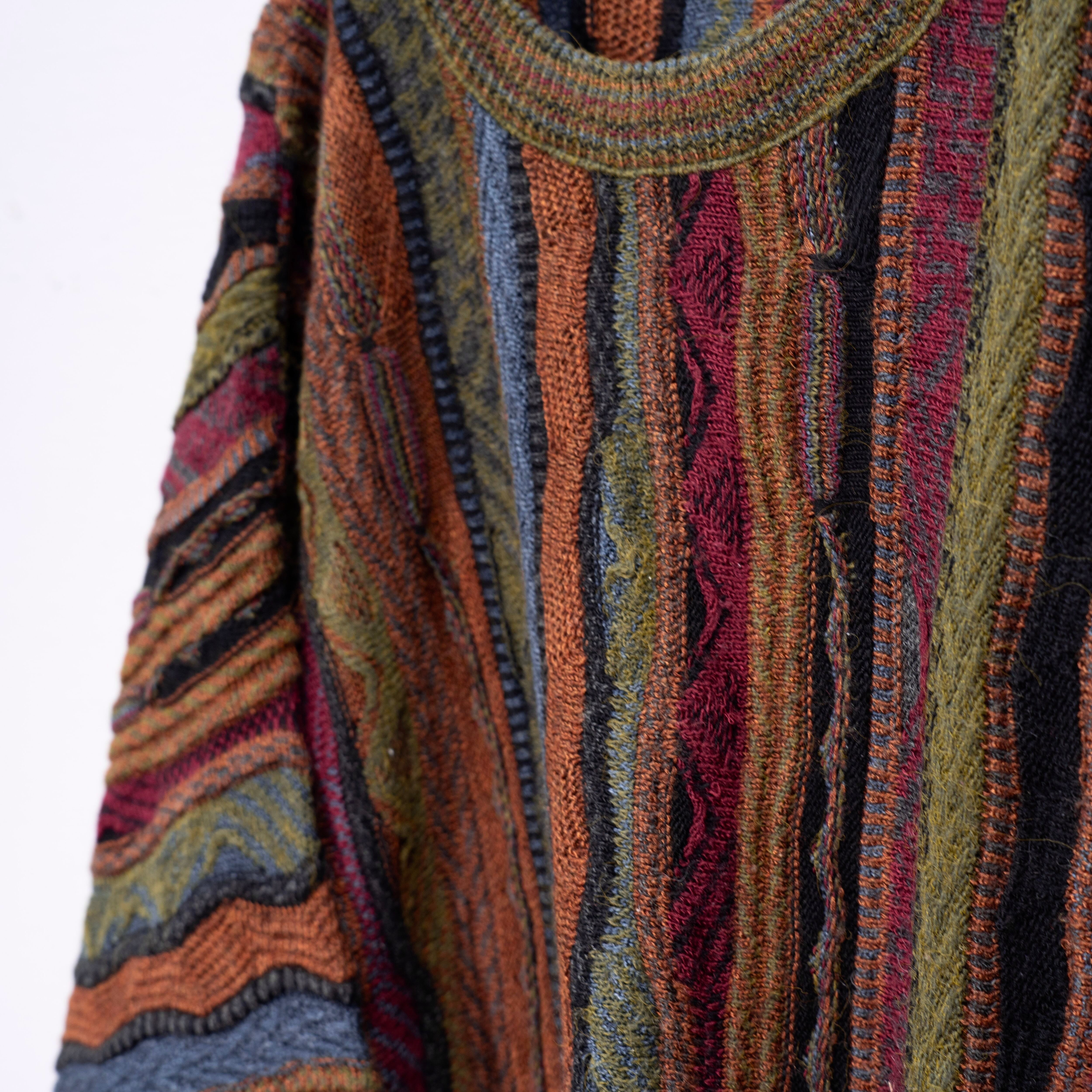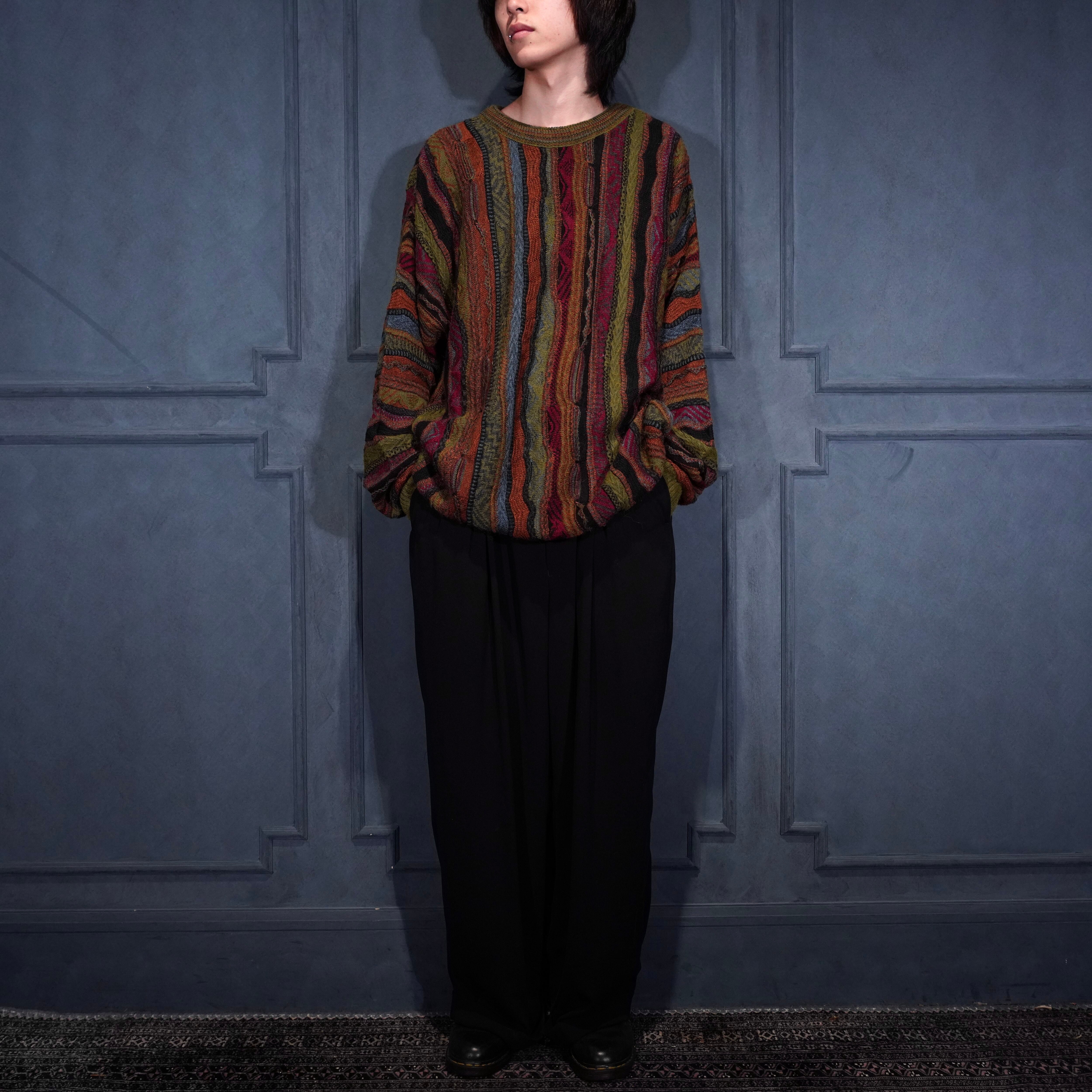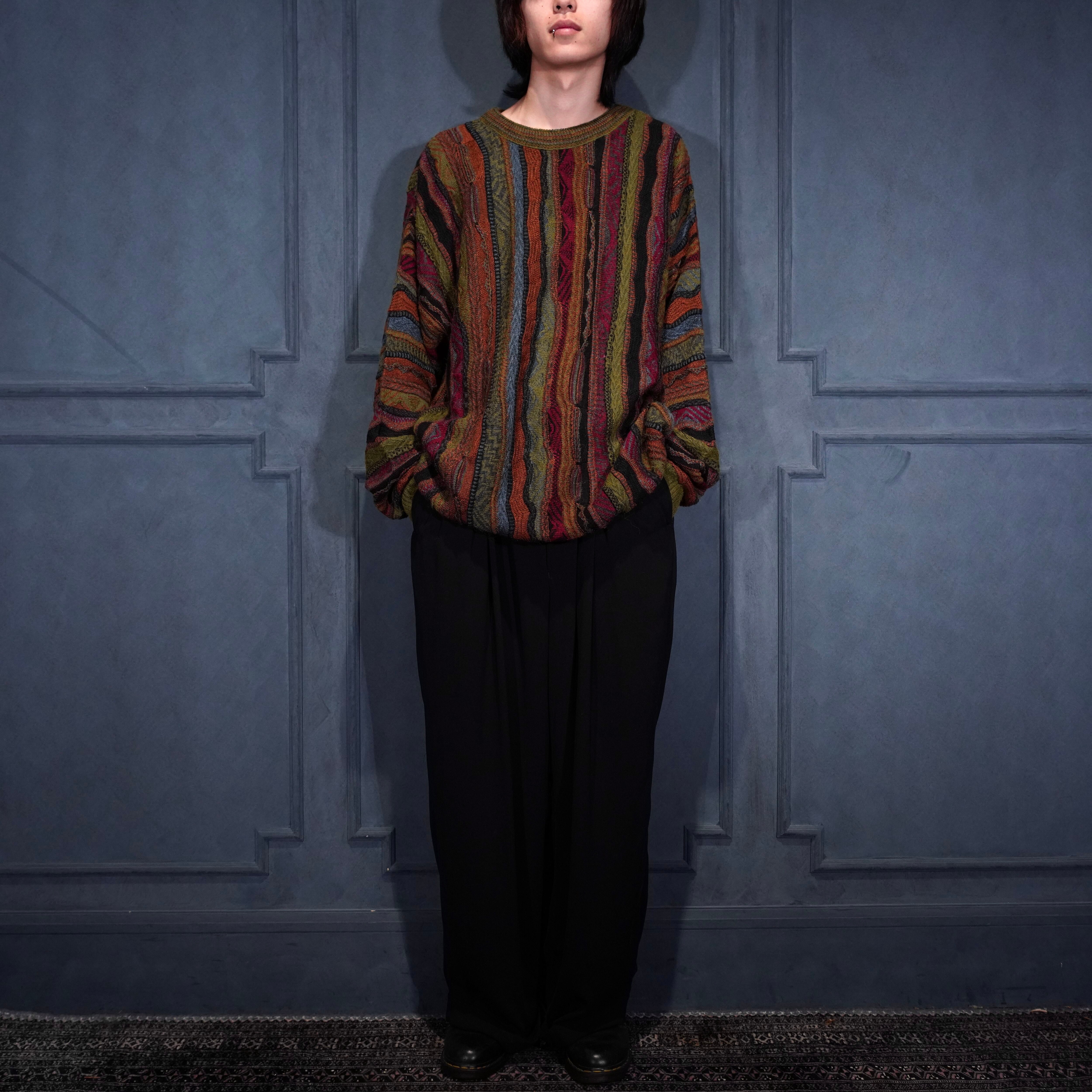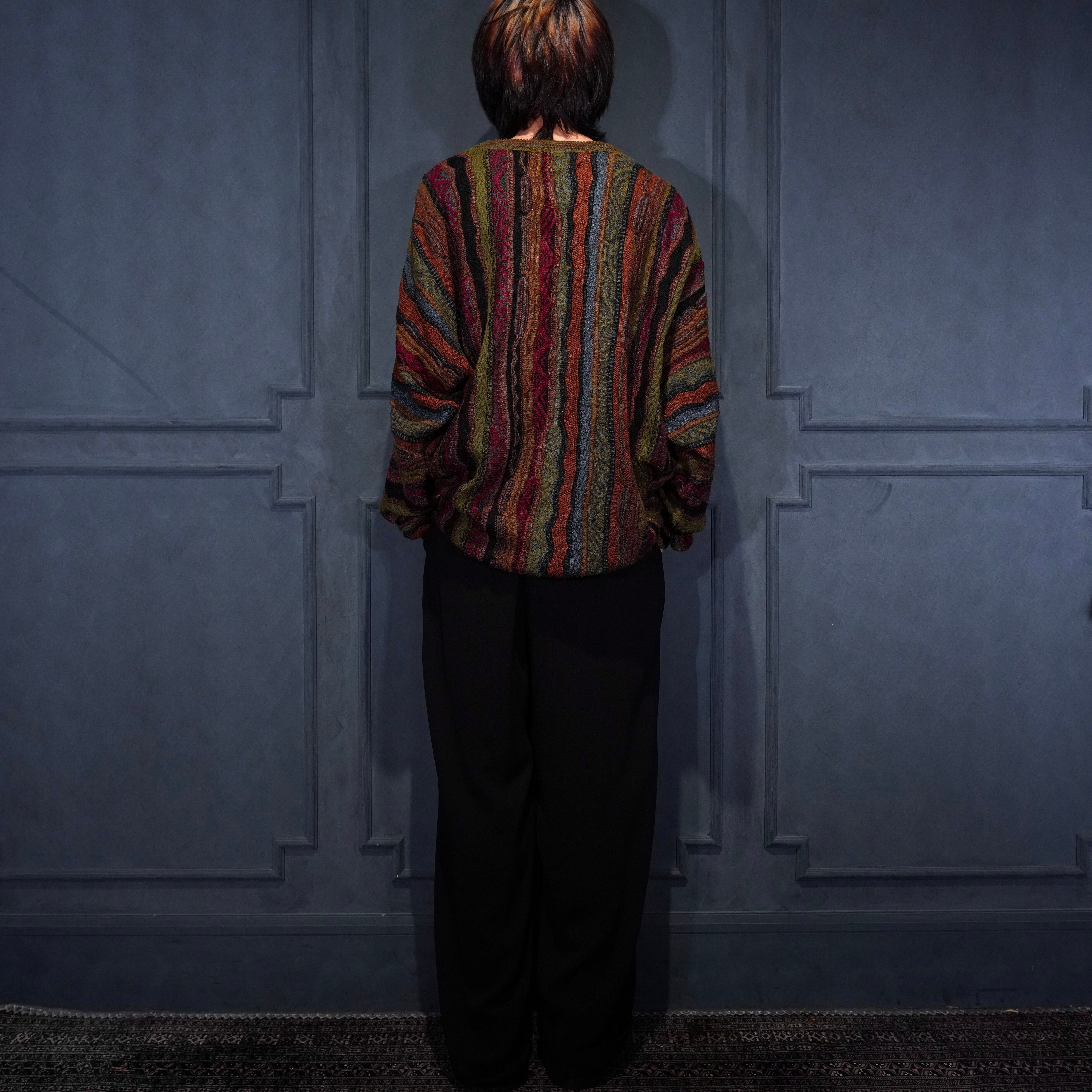 USA VINTAGE LONDON FOG MULTI PATTERNED COTTON 3D KNIT/アメリカ古着ロンドンフォグマルチパターンデザインコットン3Dニット