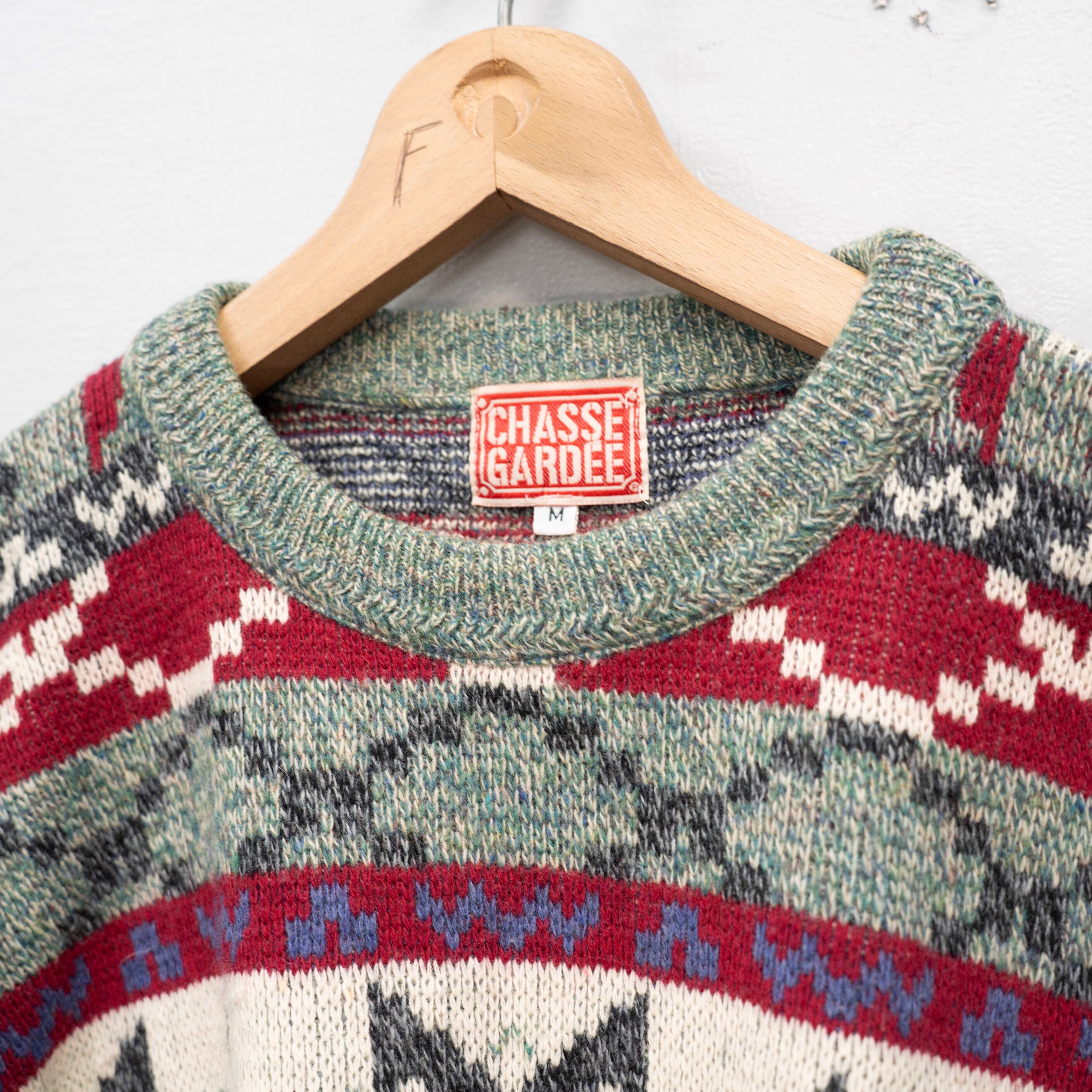 EU VINTAGE CHASSE GARDEE PATTERNED DESIGN KNIT/ヨーロッパ古着柄デザインニット