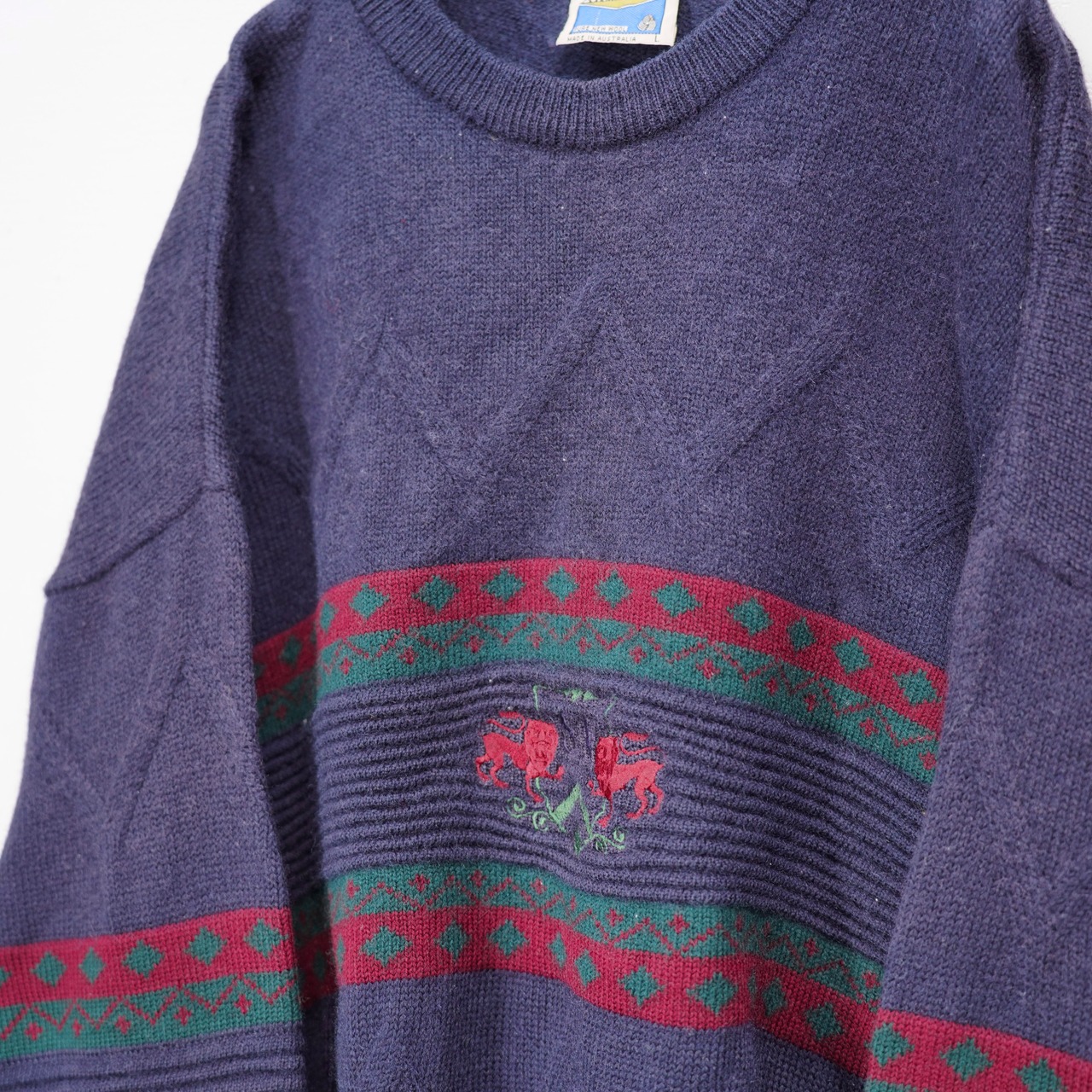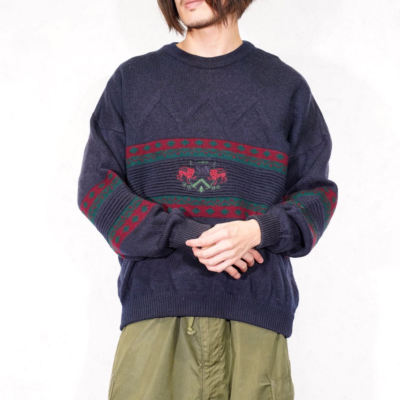 EU VINTAGE AKLANDA EMBROIDERY DESIGN KNIT/ヨーロッパ古着刺繍デザインニット