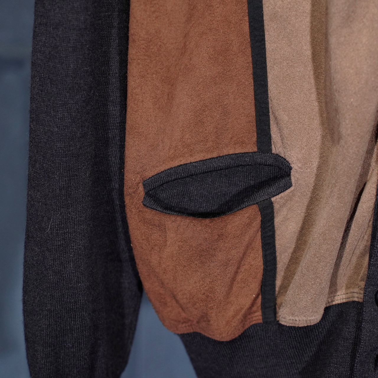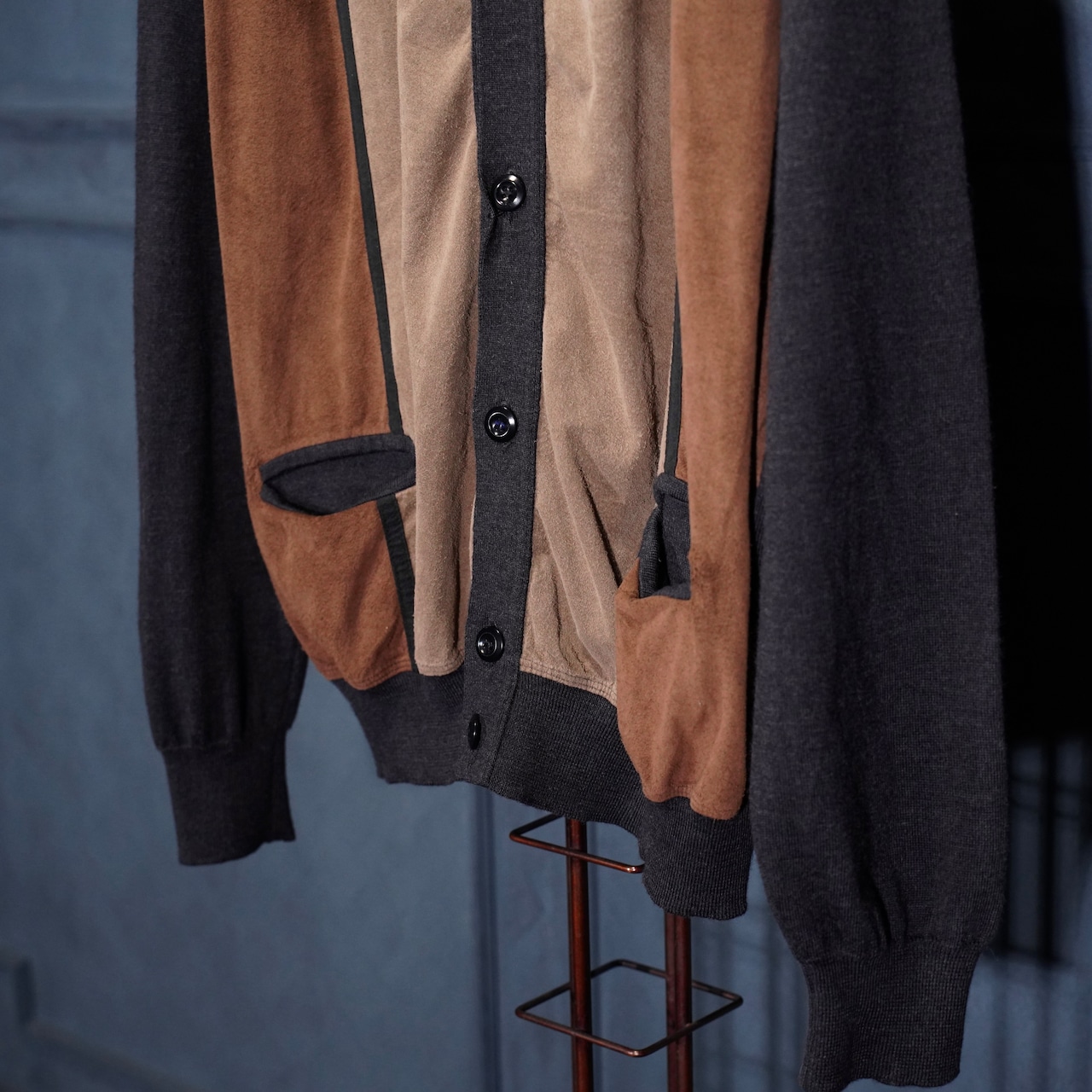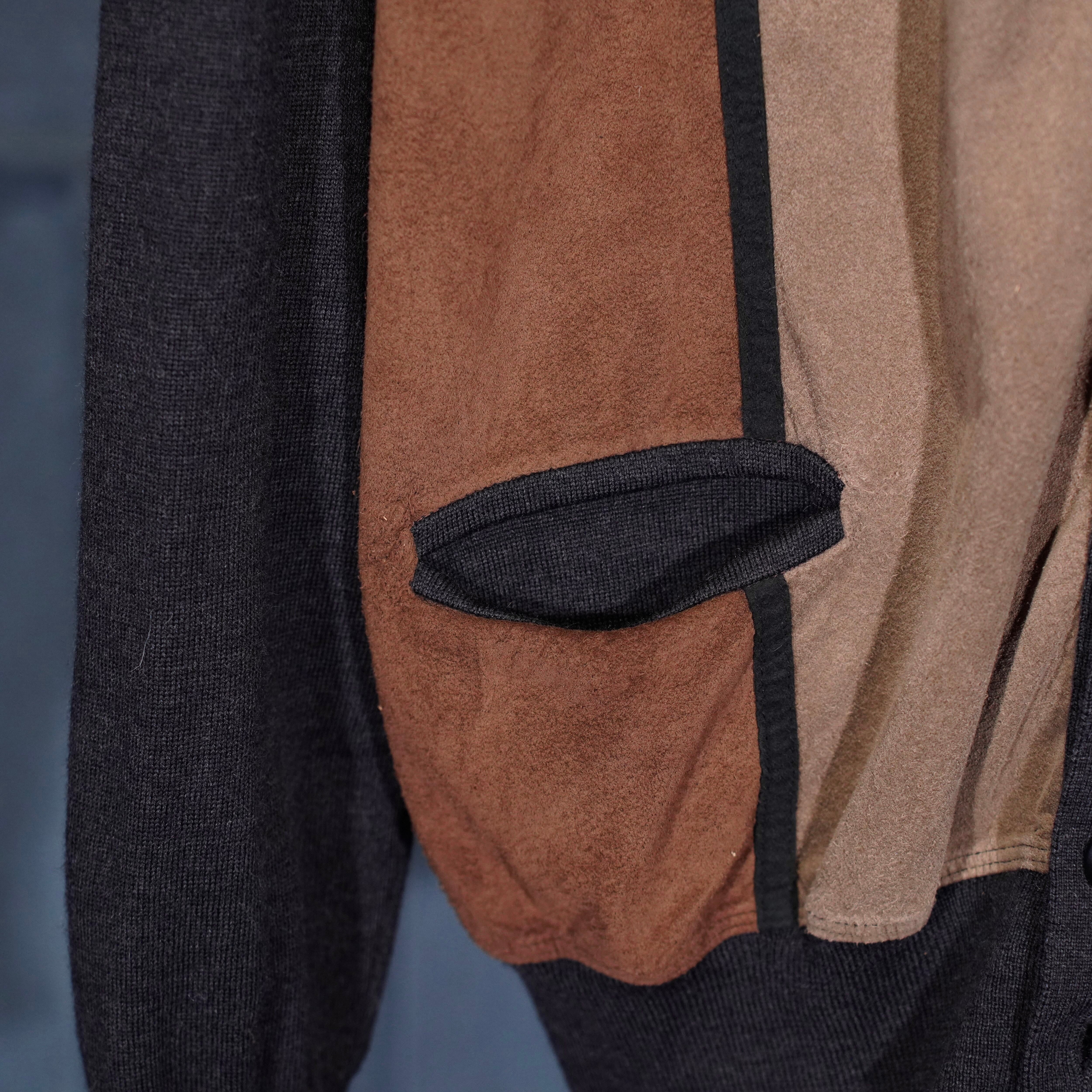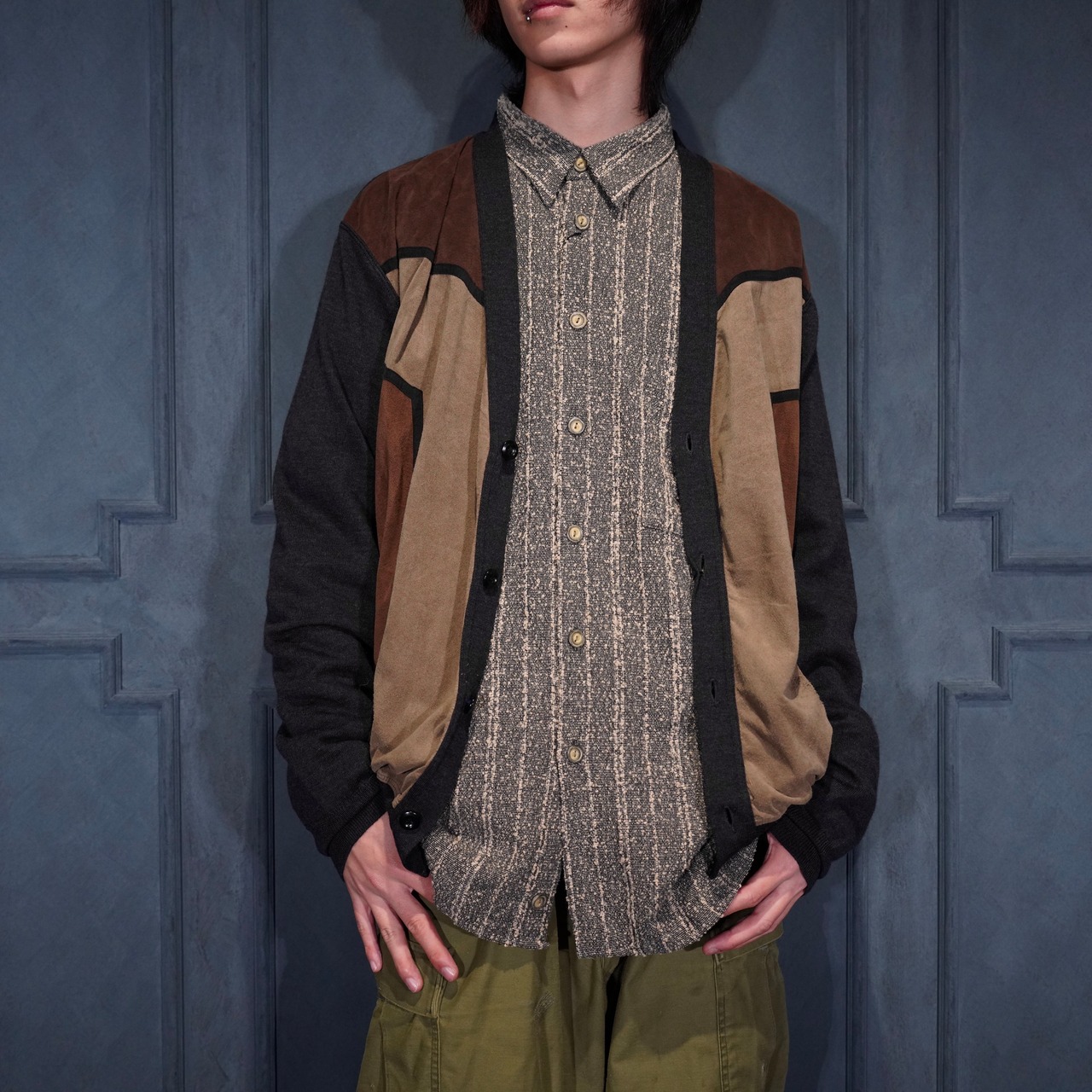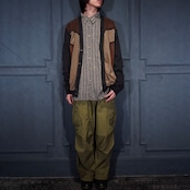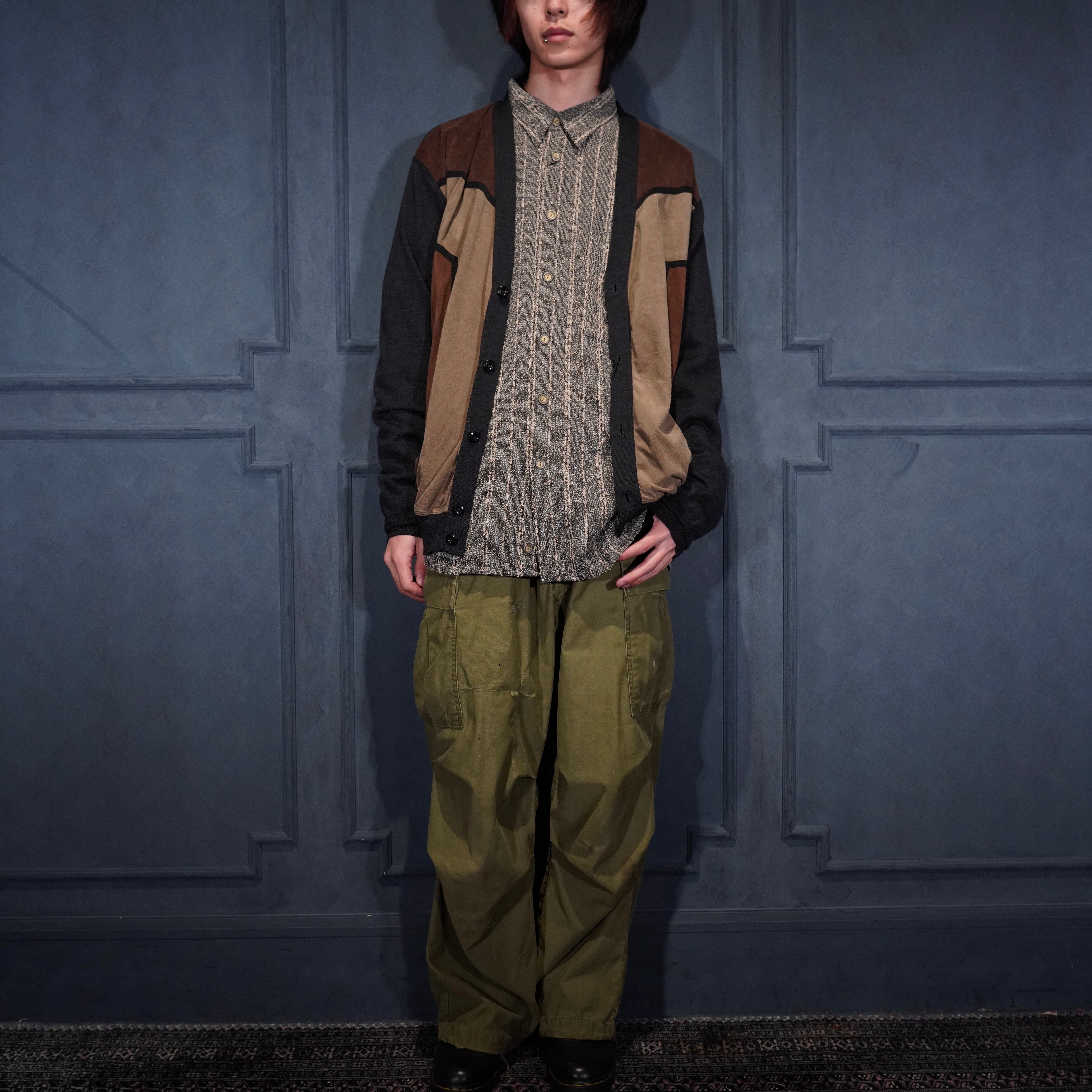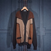 EU VINTAGE MASQUE FAKE SUEDE SWITCHED DESIGN KNIT CARDIGAN/ヨーロッパ古着フェイクスウェード切替デザインニットカーディガン