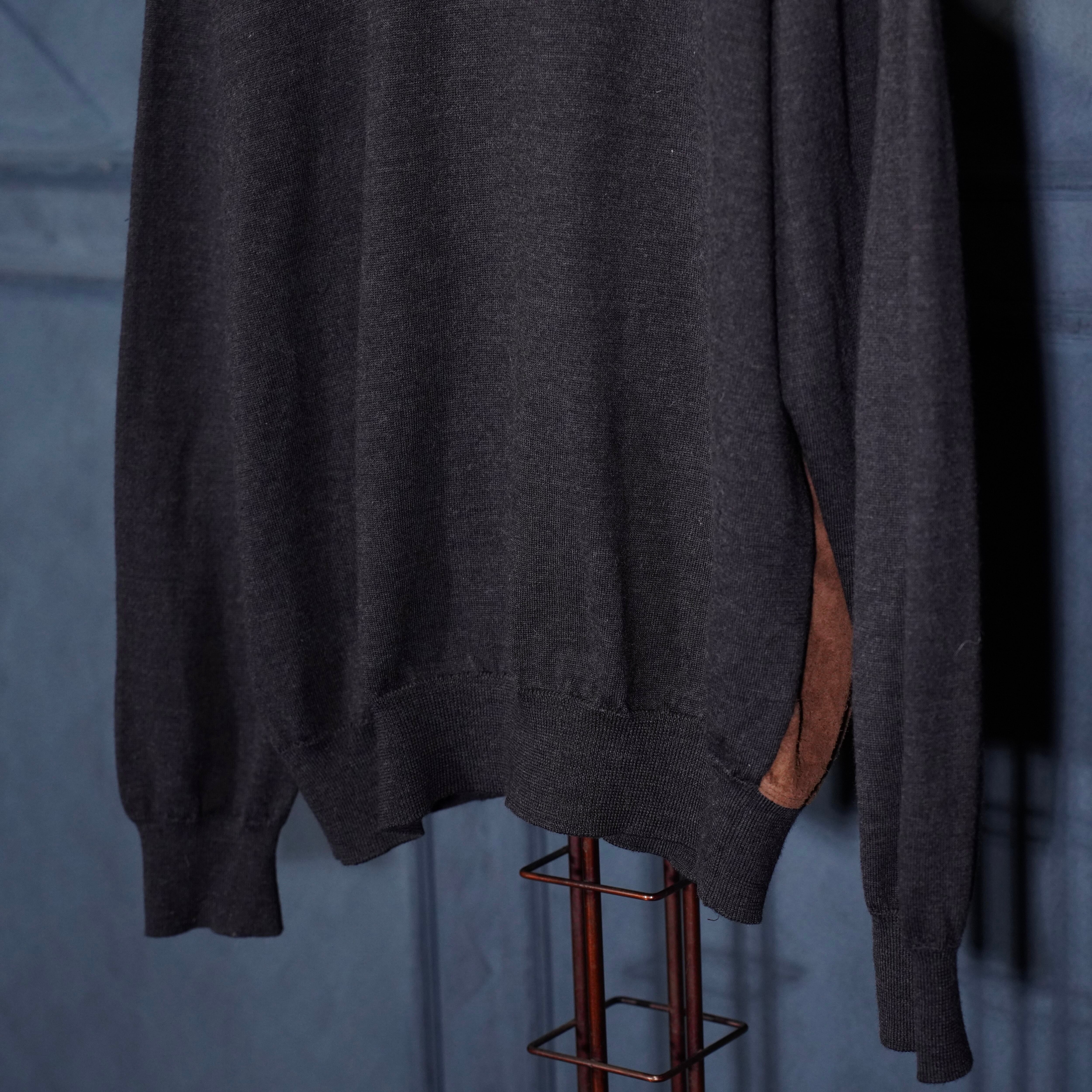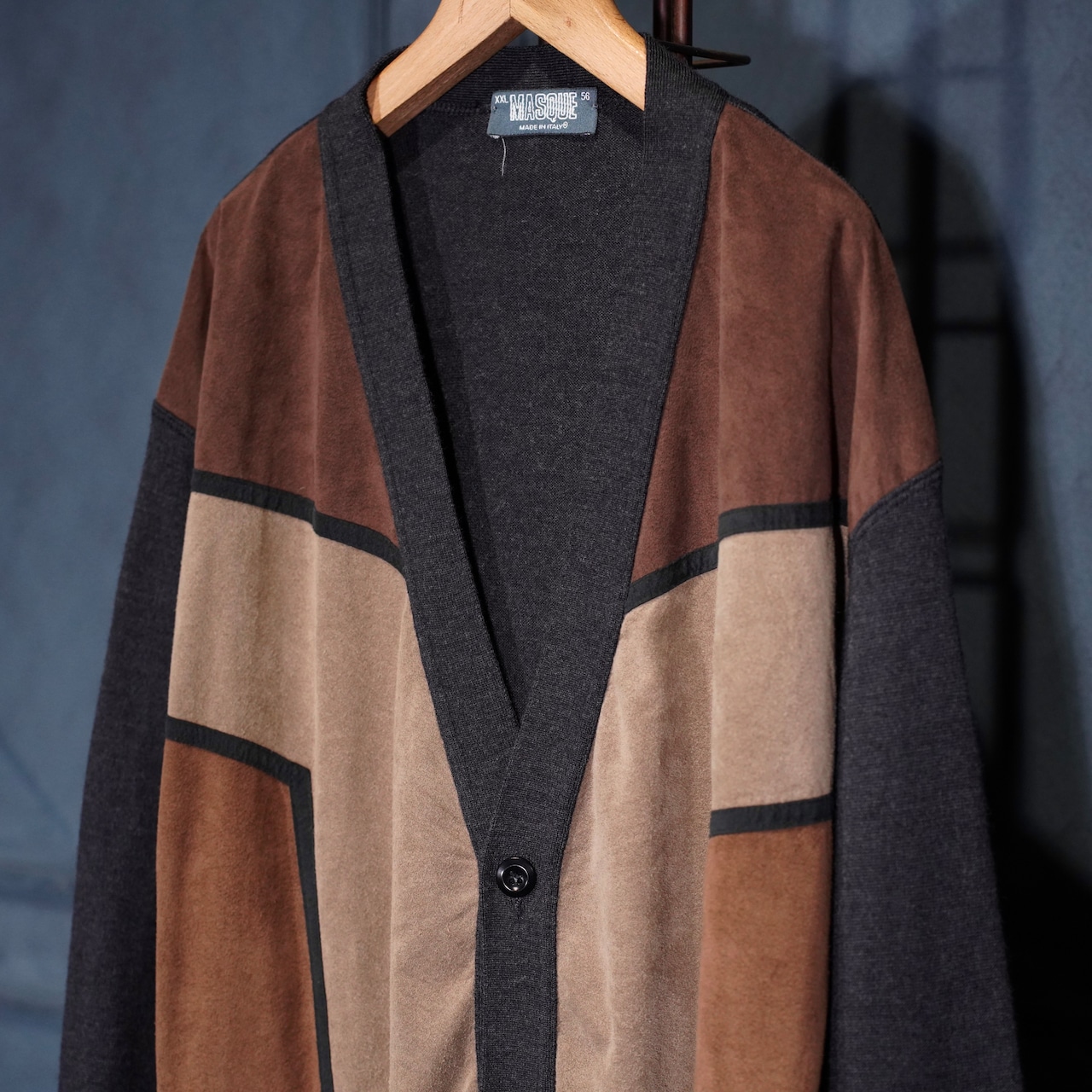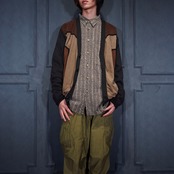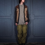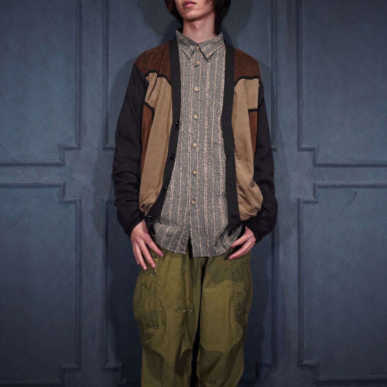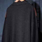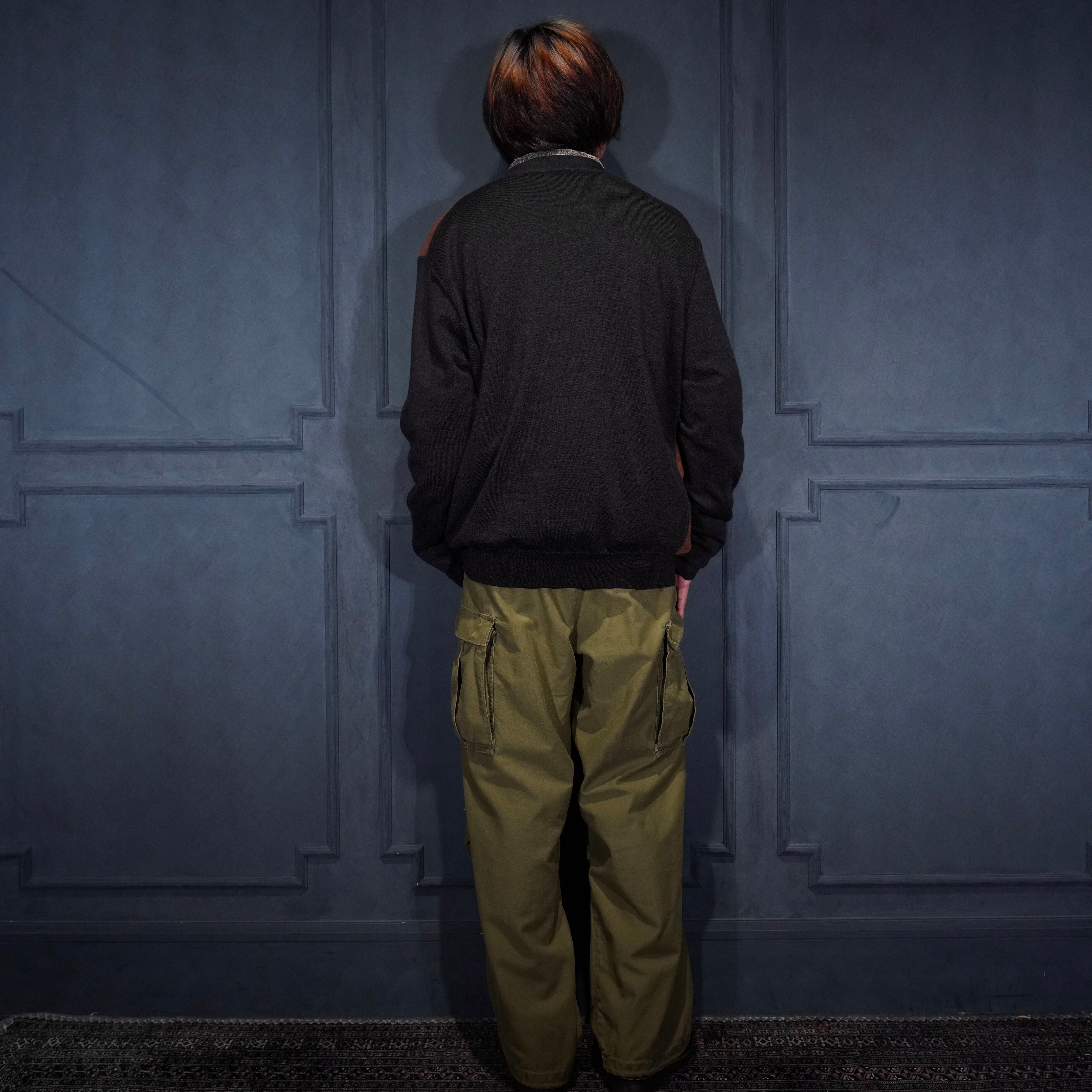 EU VINTAGE MASQUE FAKE SUEDE SWITCHED DESIGN KNIT CARDIGAN/ヨーロッパ古着フェイクスウェード切替デザインニットカーディガン