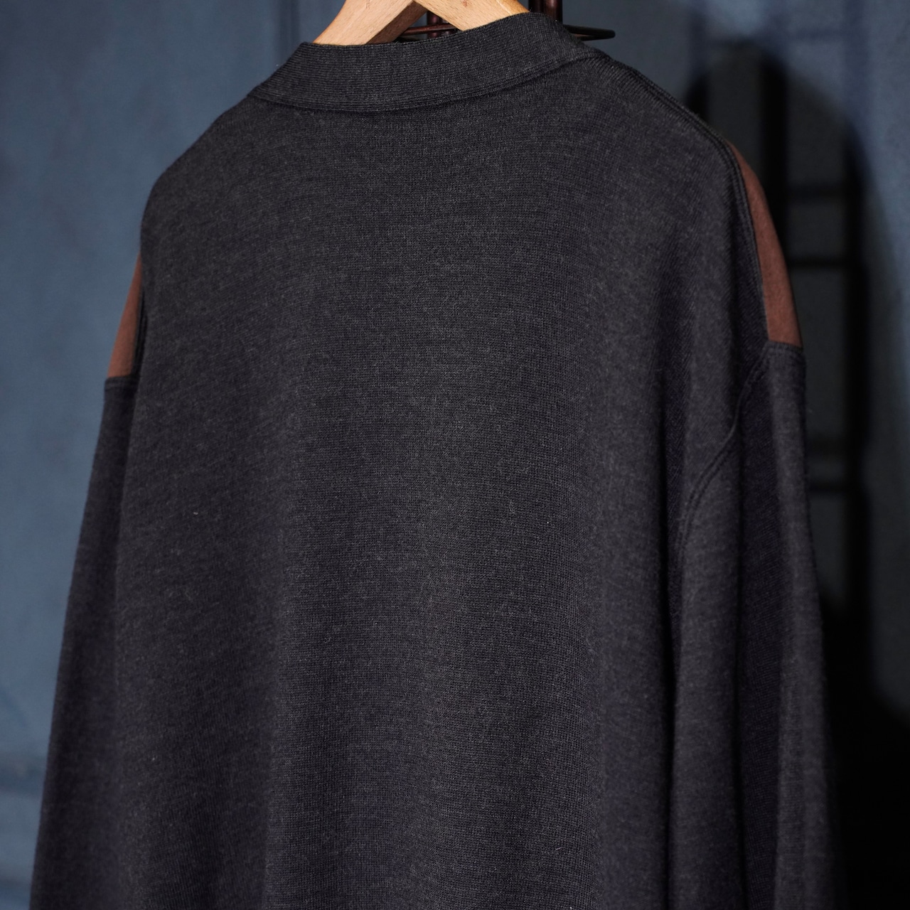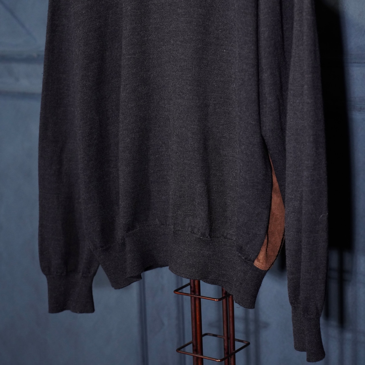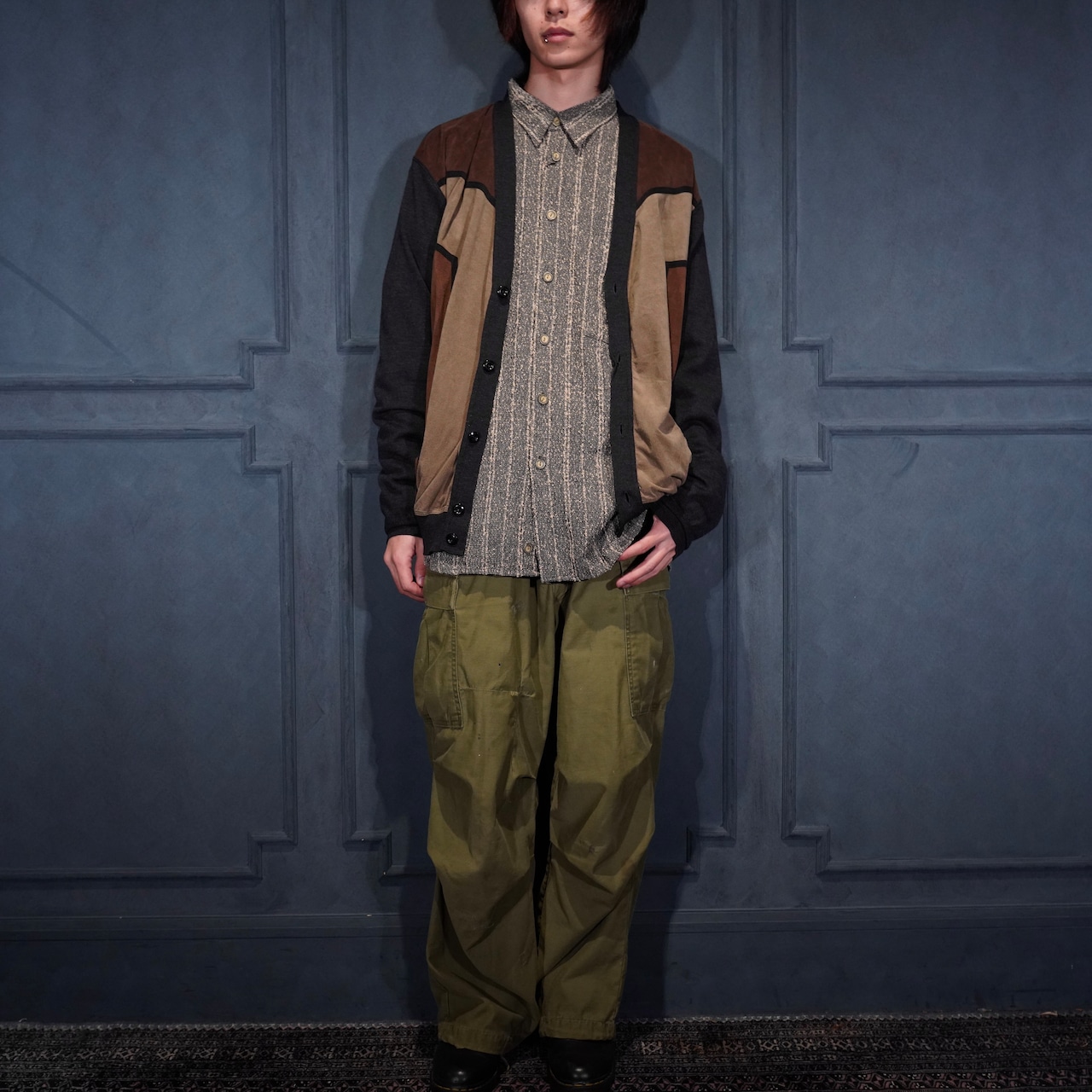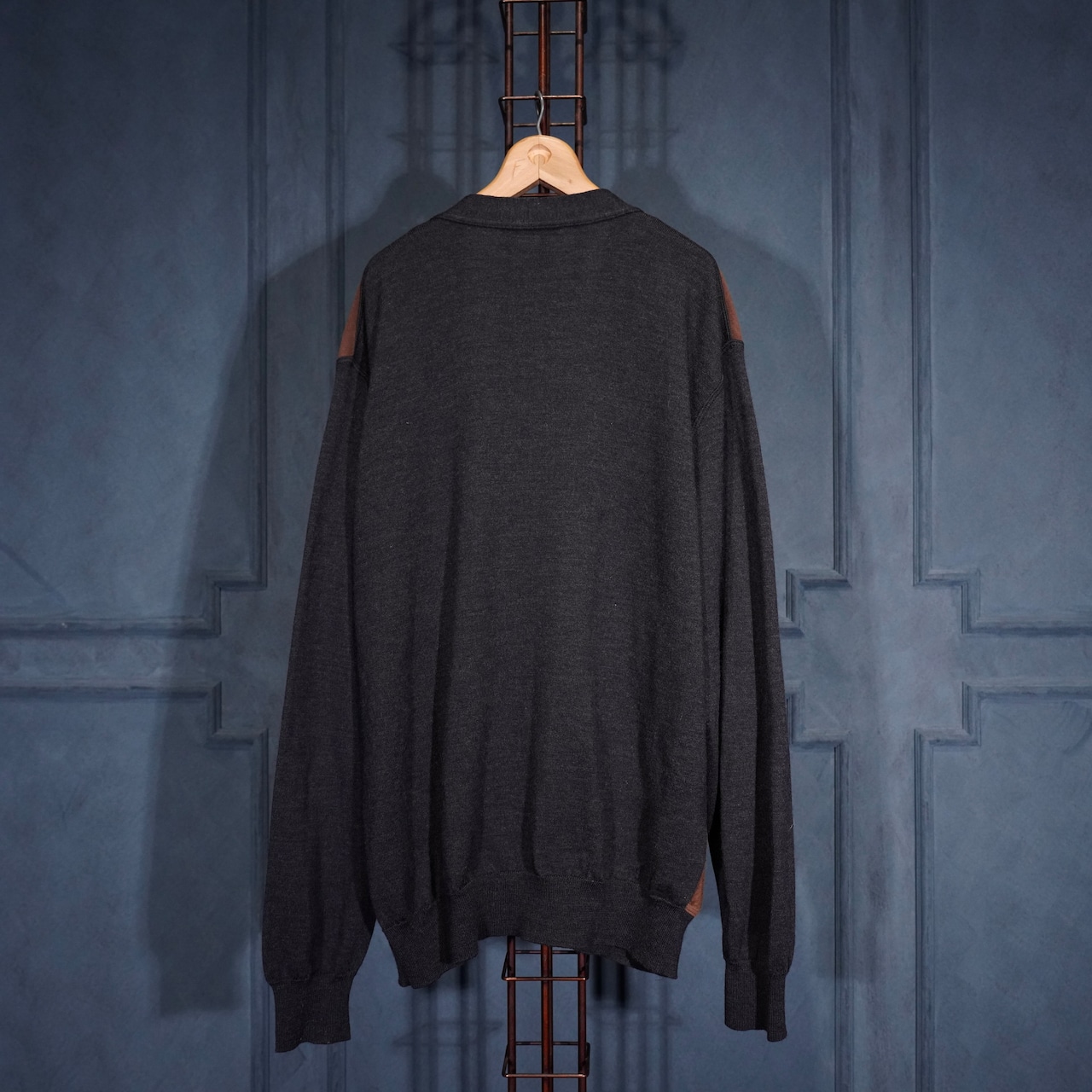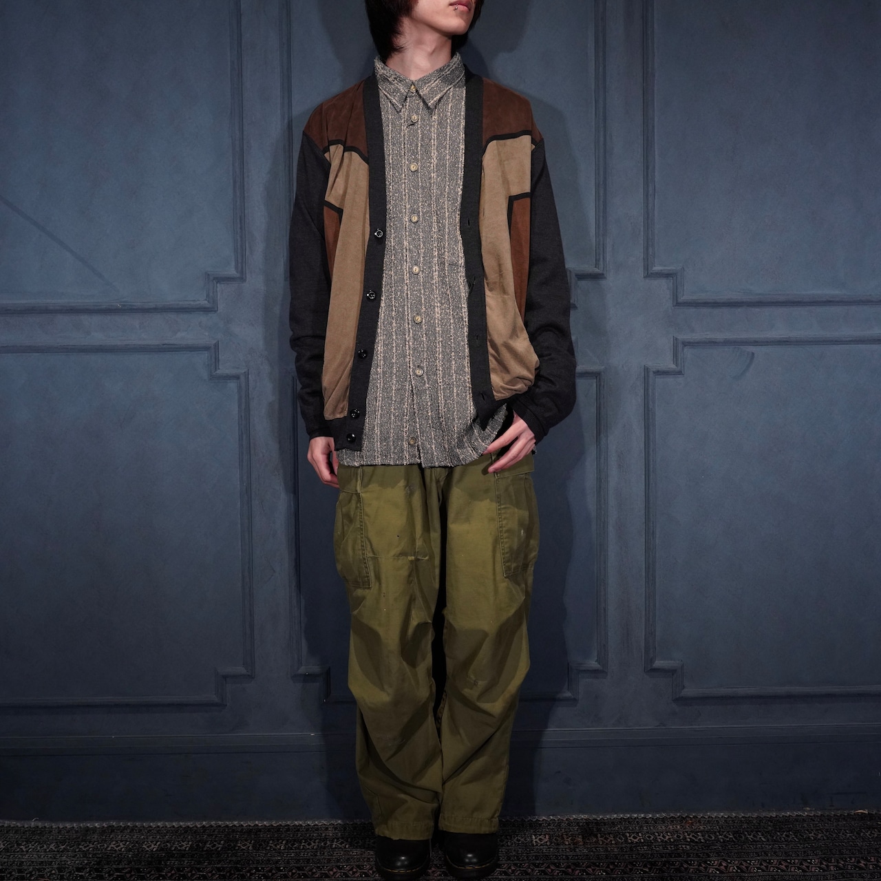 EU VINTAGE MASQUE FAKE SUEDE SWITCHED DESIGN KNIT CARDIGAN/ヨーロッパ古着フェイクスウェード切替デザインニットカーディガン