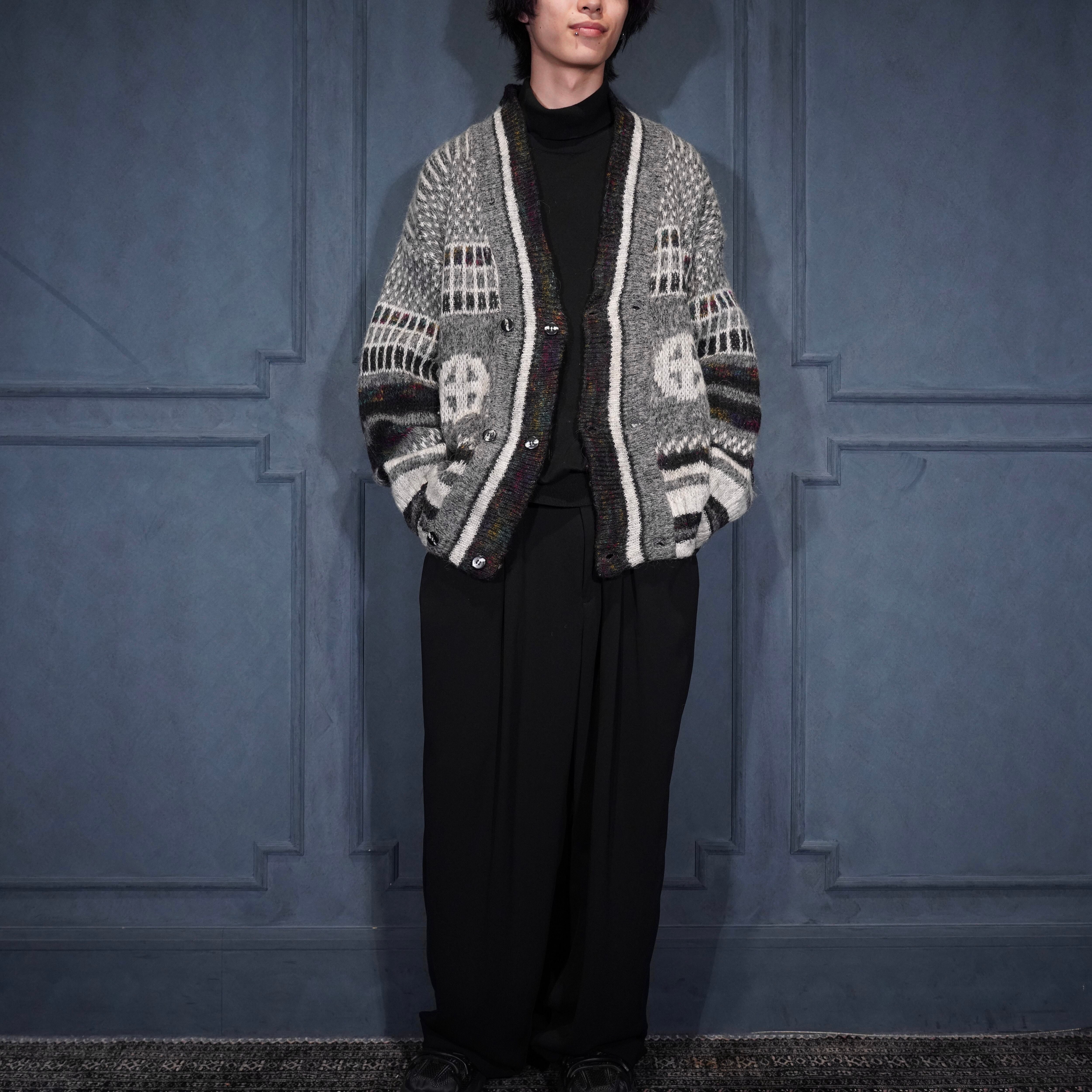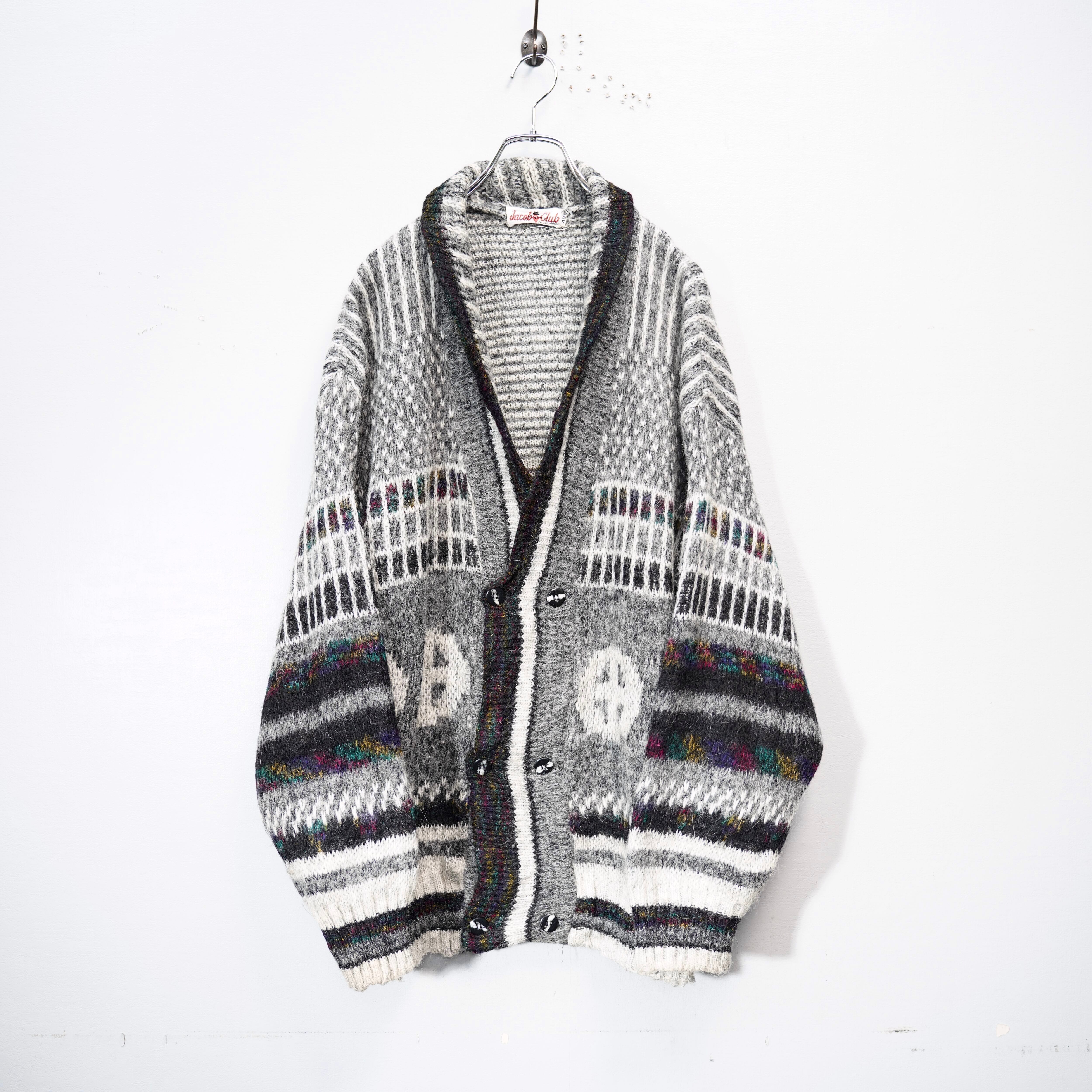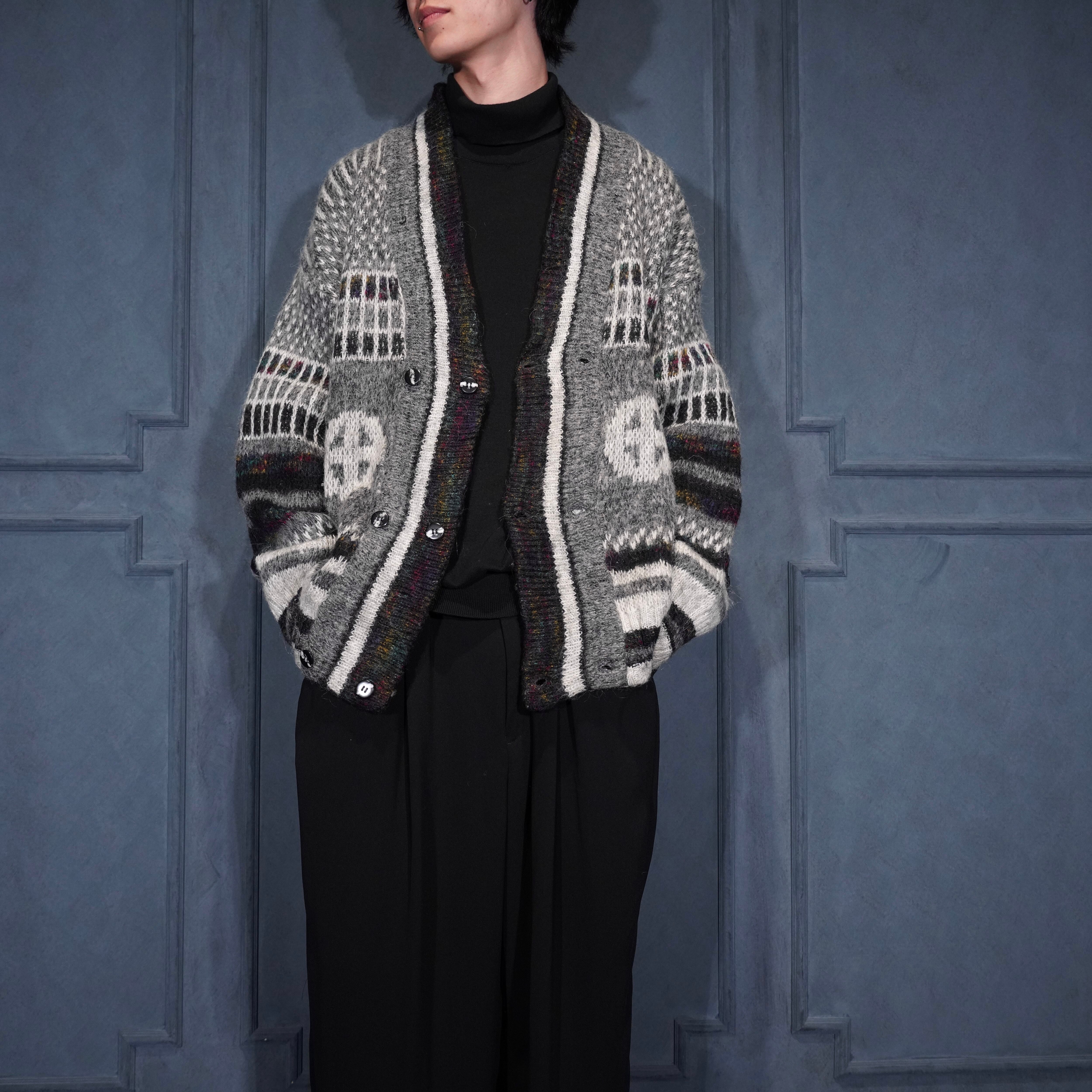 EU VINTAGE PATTERNED DESIGN DOUBLE KNIT JACKET/ヨーロッパ古着柄デザインダブルニットジャケット(カーディガン)