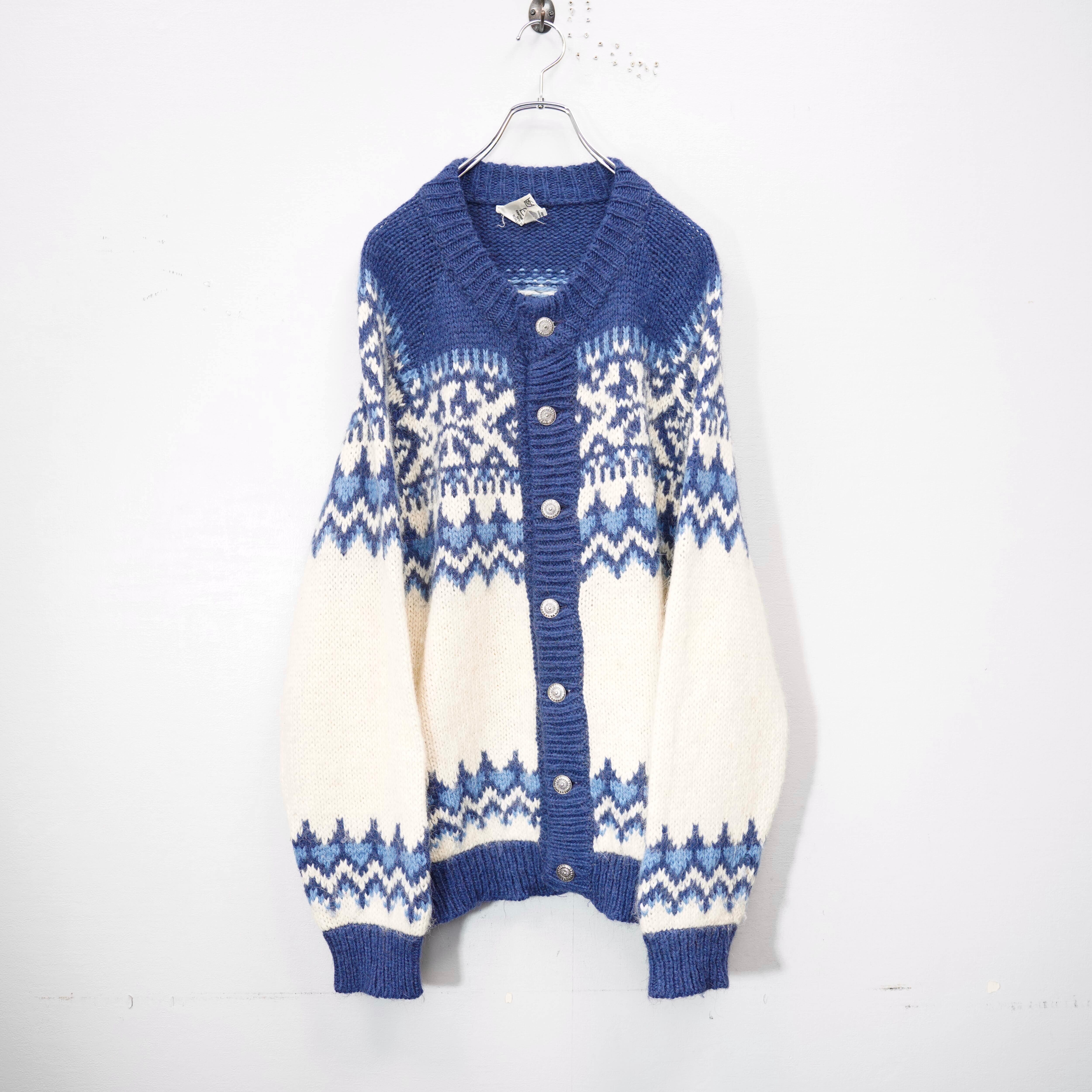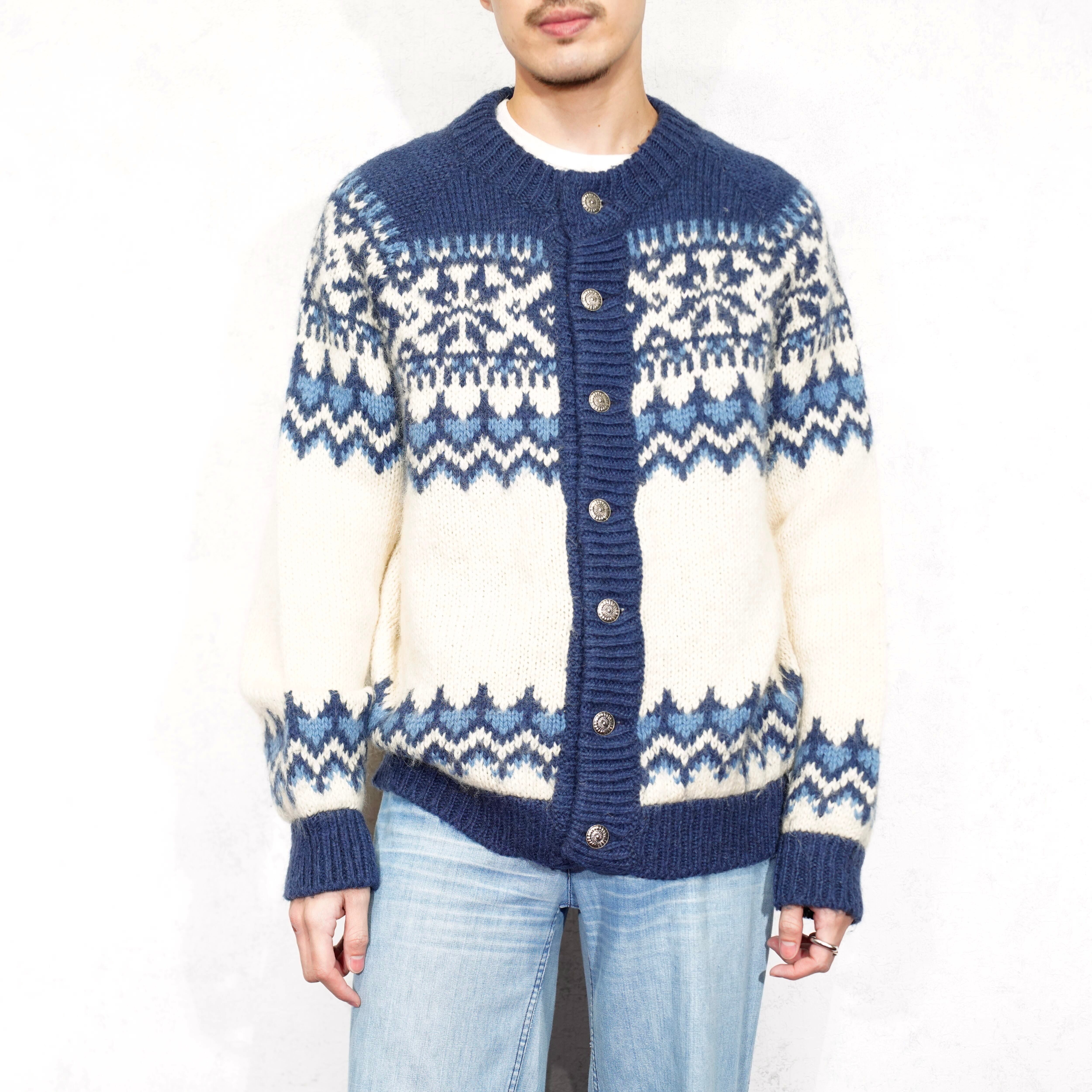 EU VINTAGE RUNOR COIN BUTTON DESIGN NORDIC KNIT CARDIGAN MADE IN DENMARK/ヨーロッパ古着コインボタンデザインノルディックニットカーディガン
