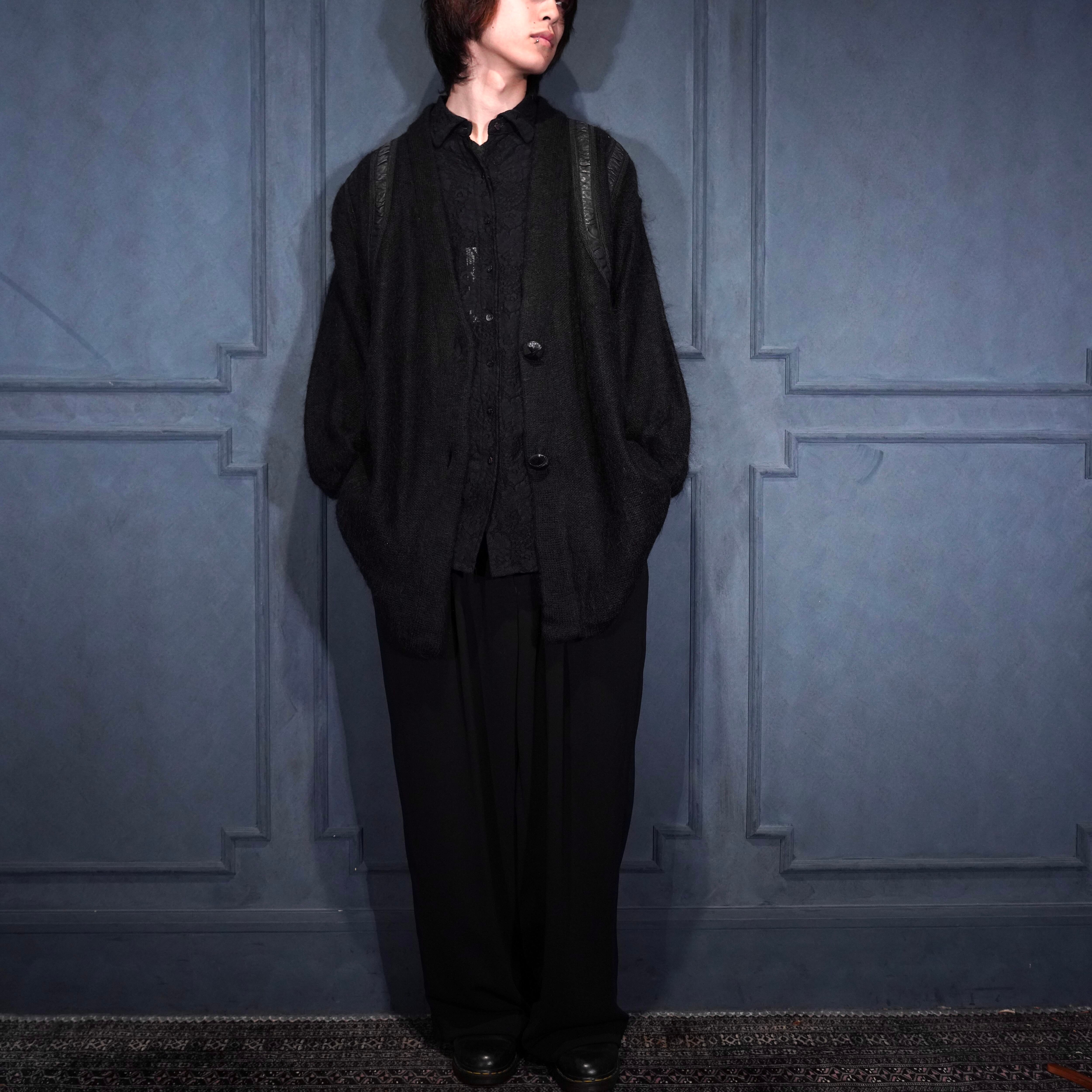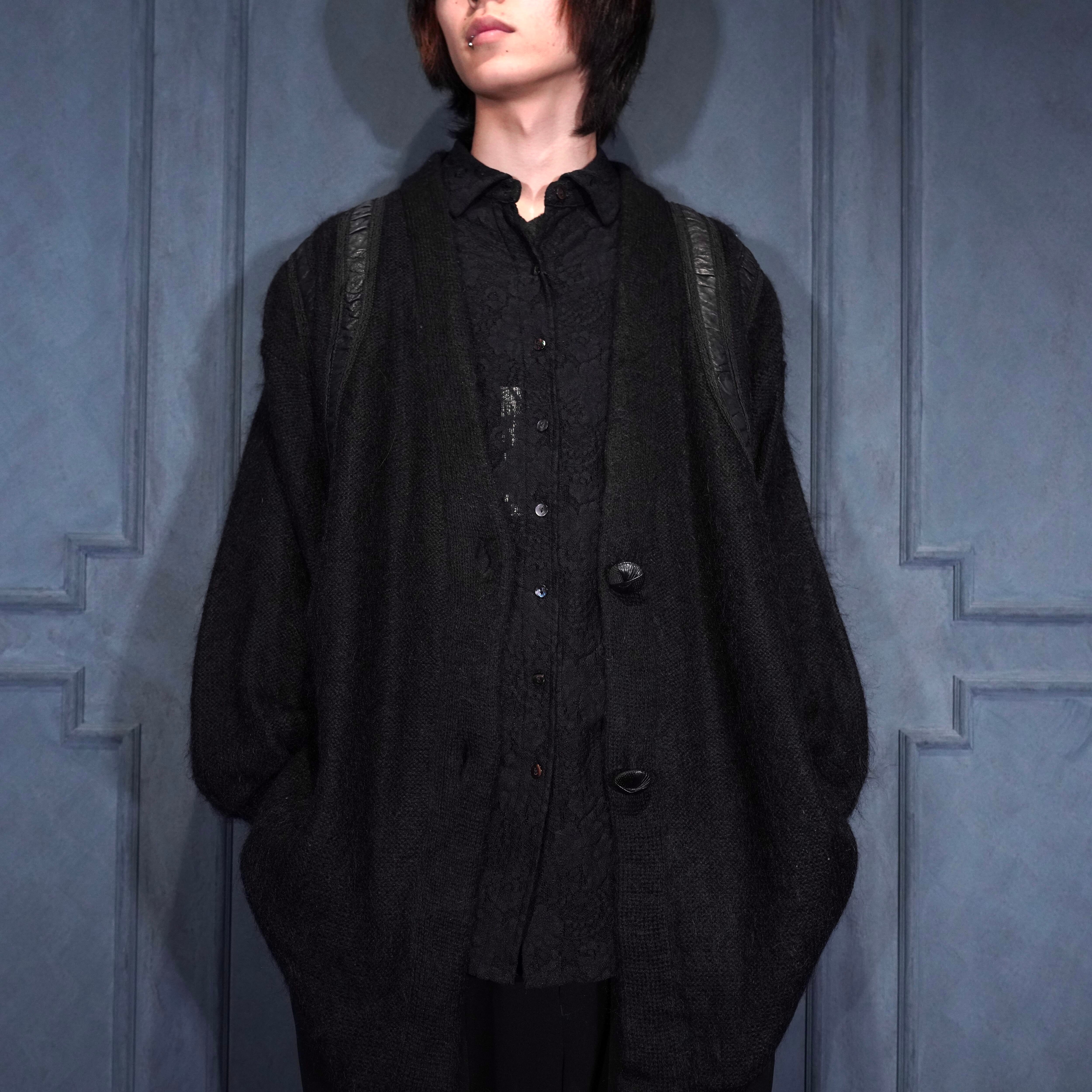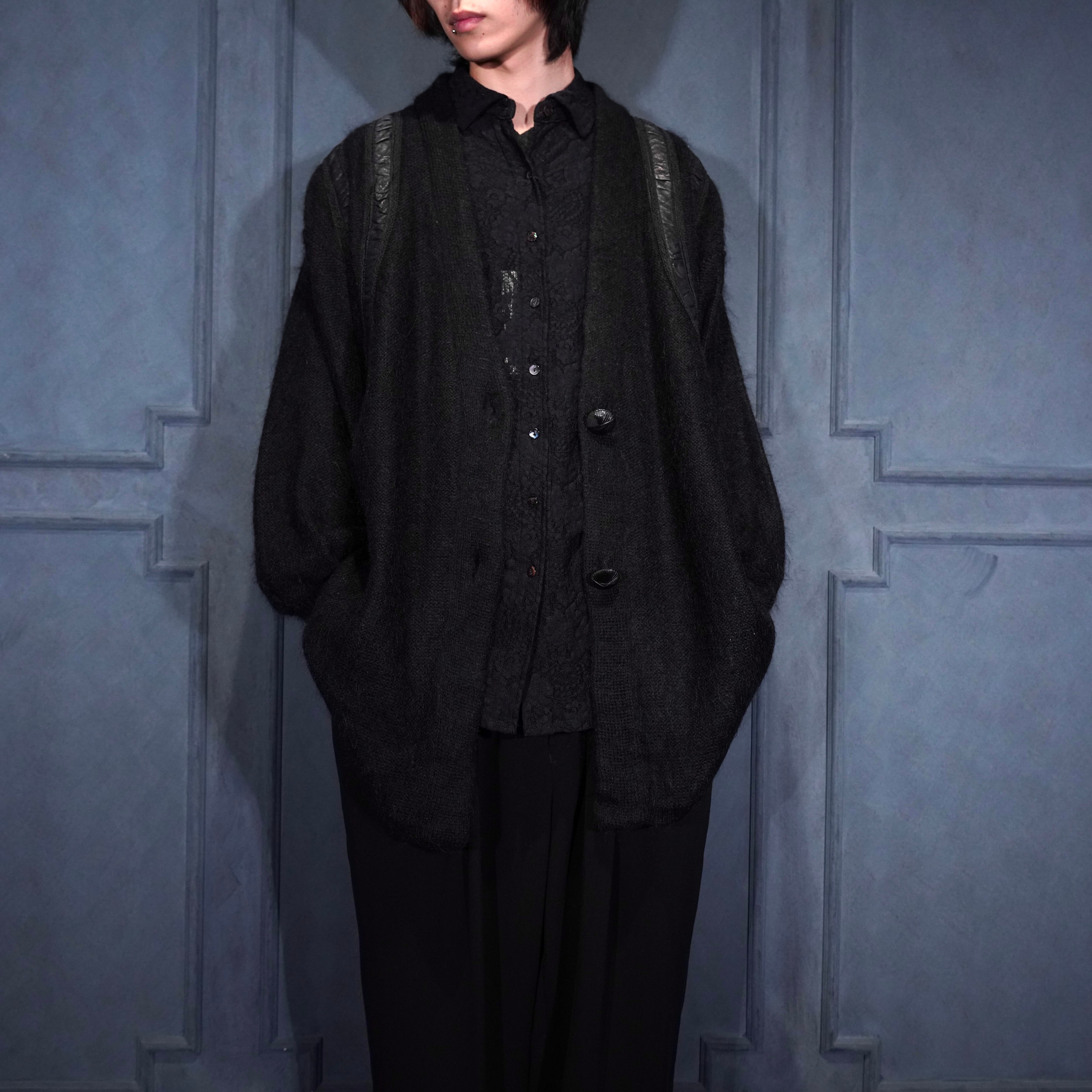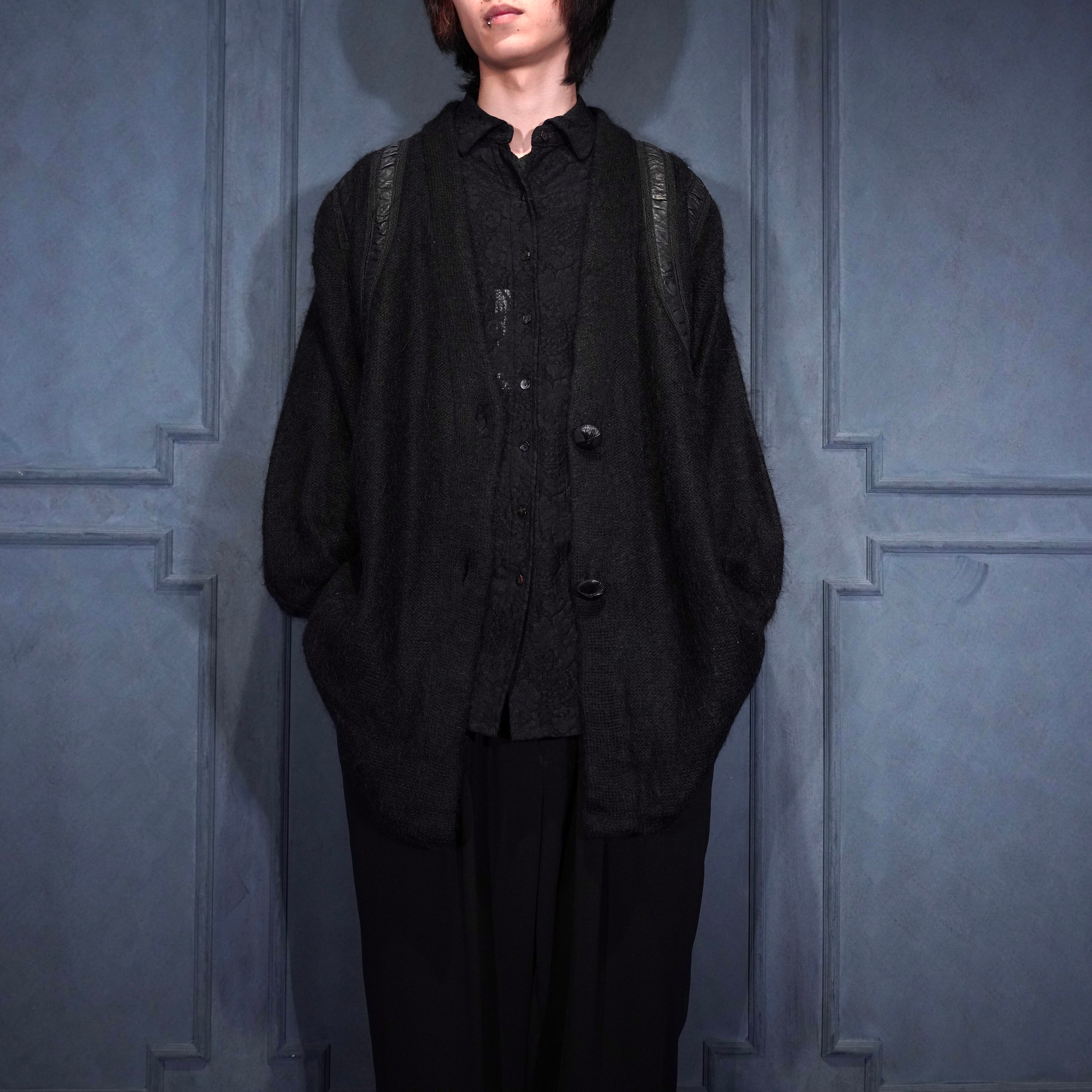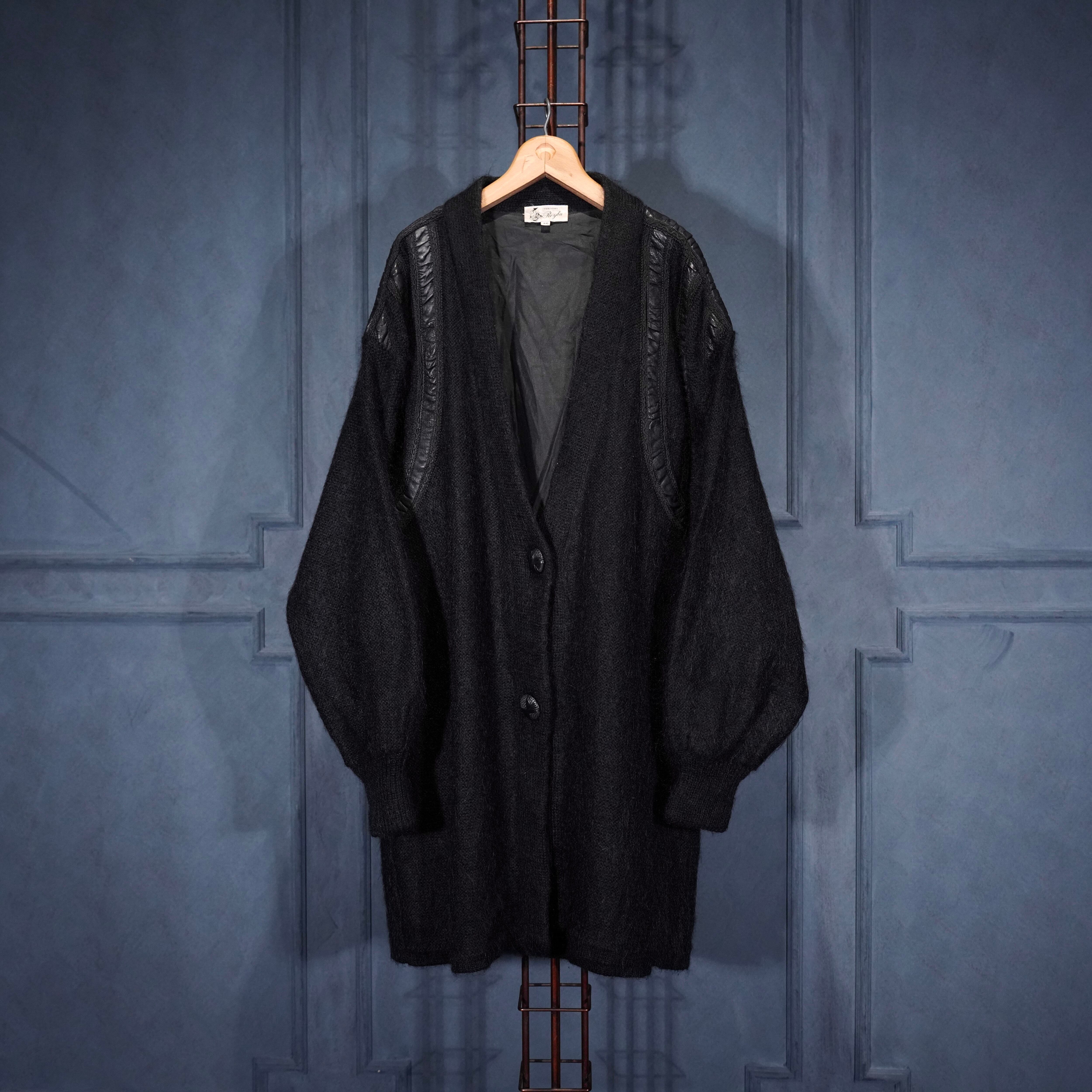 EU VINTAGE LEATHER PATCH DESIGN MOHAIR CARDIGAN/ヨーロッパ古着レザーパッチデザインモヘアカーディガン