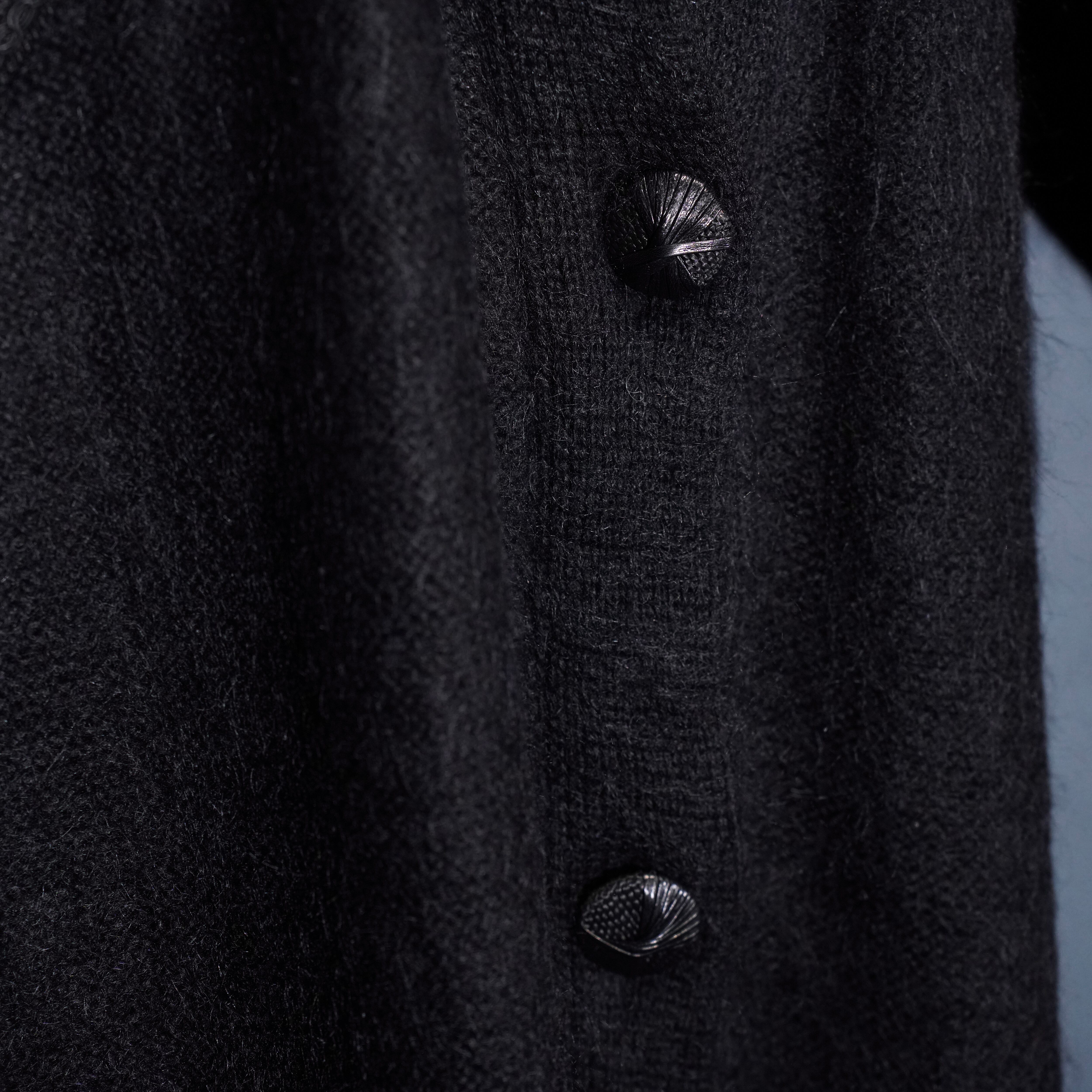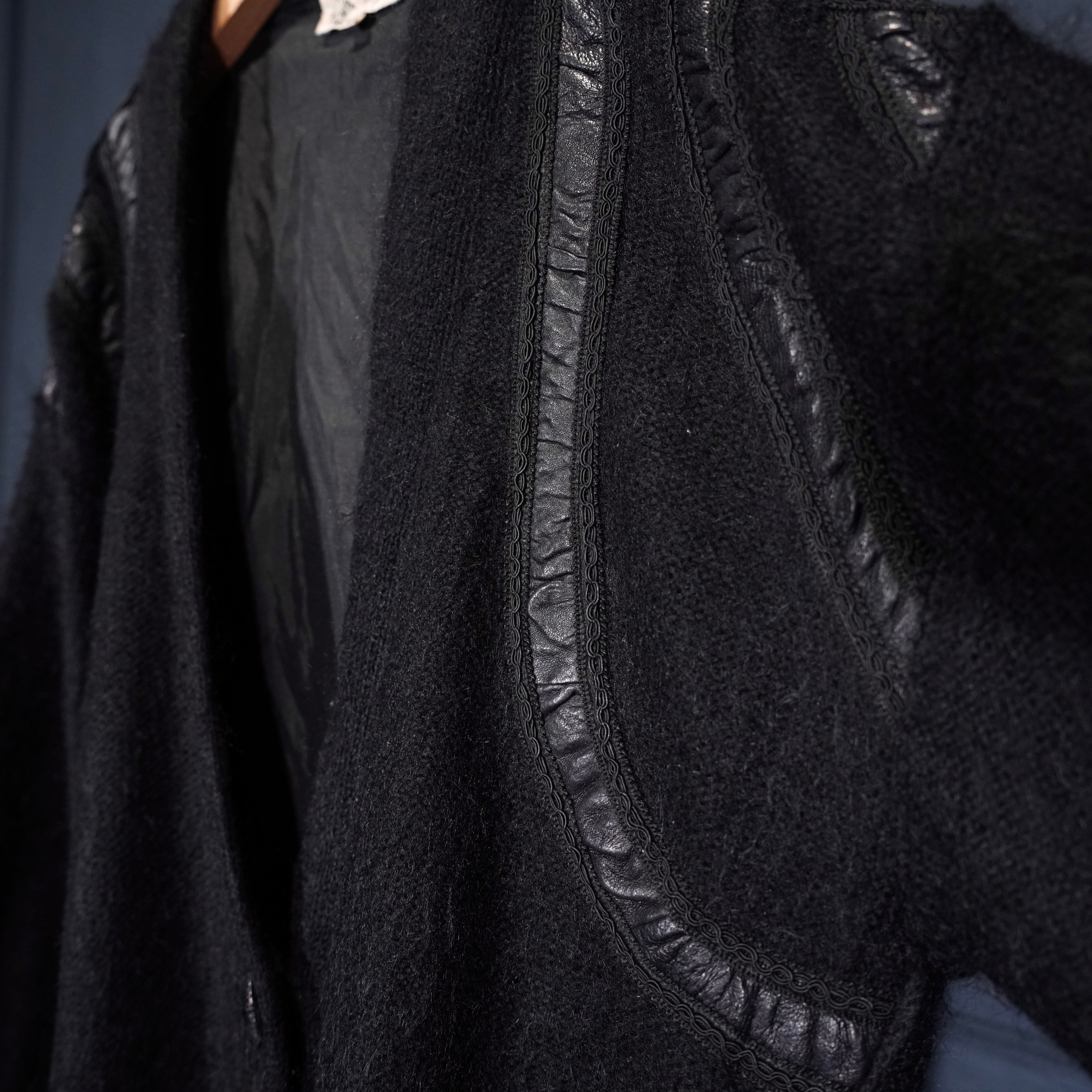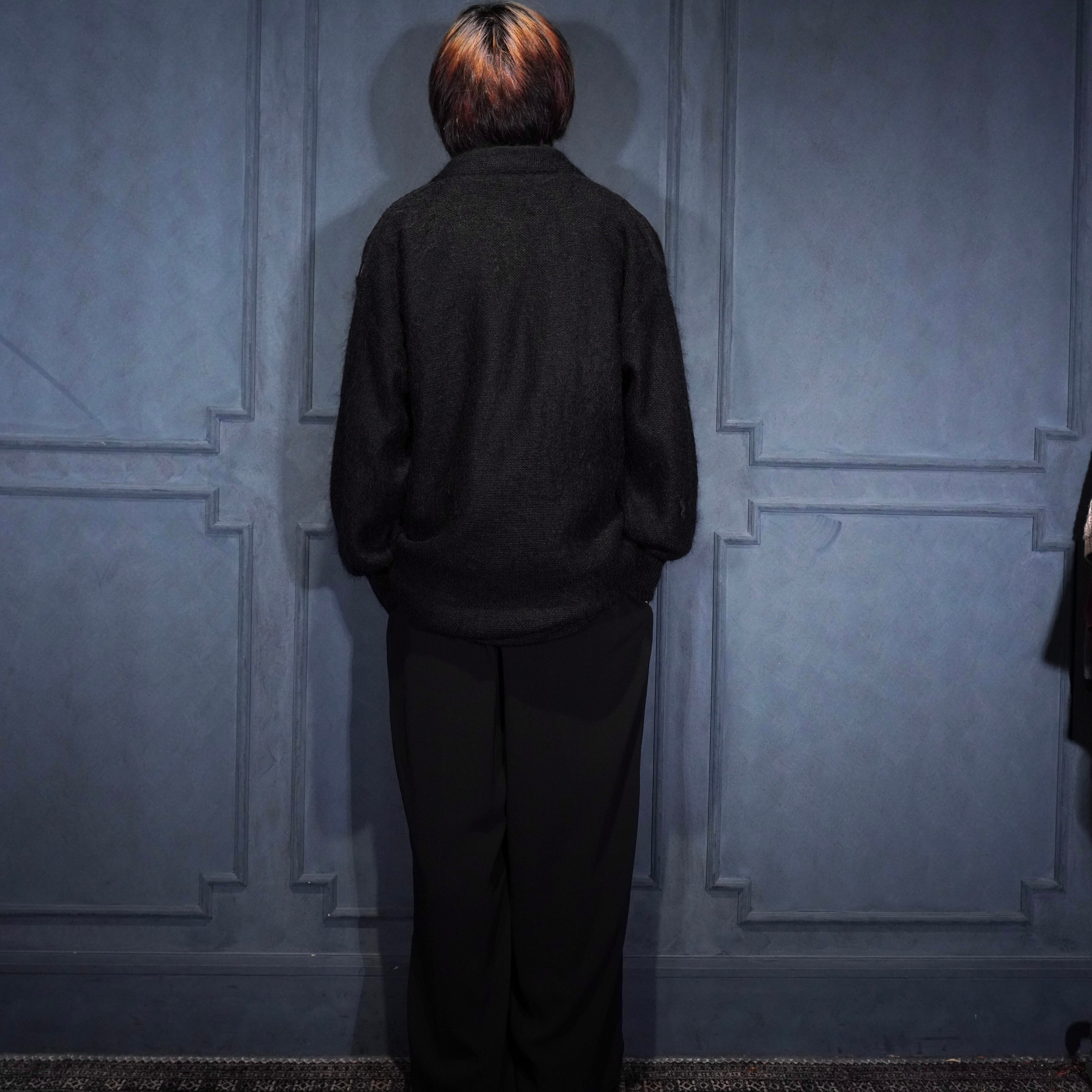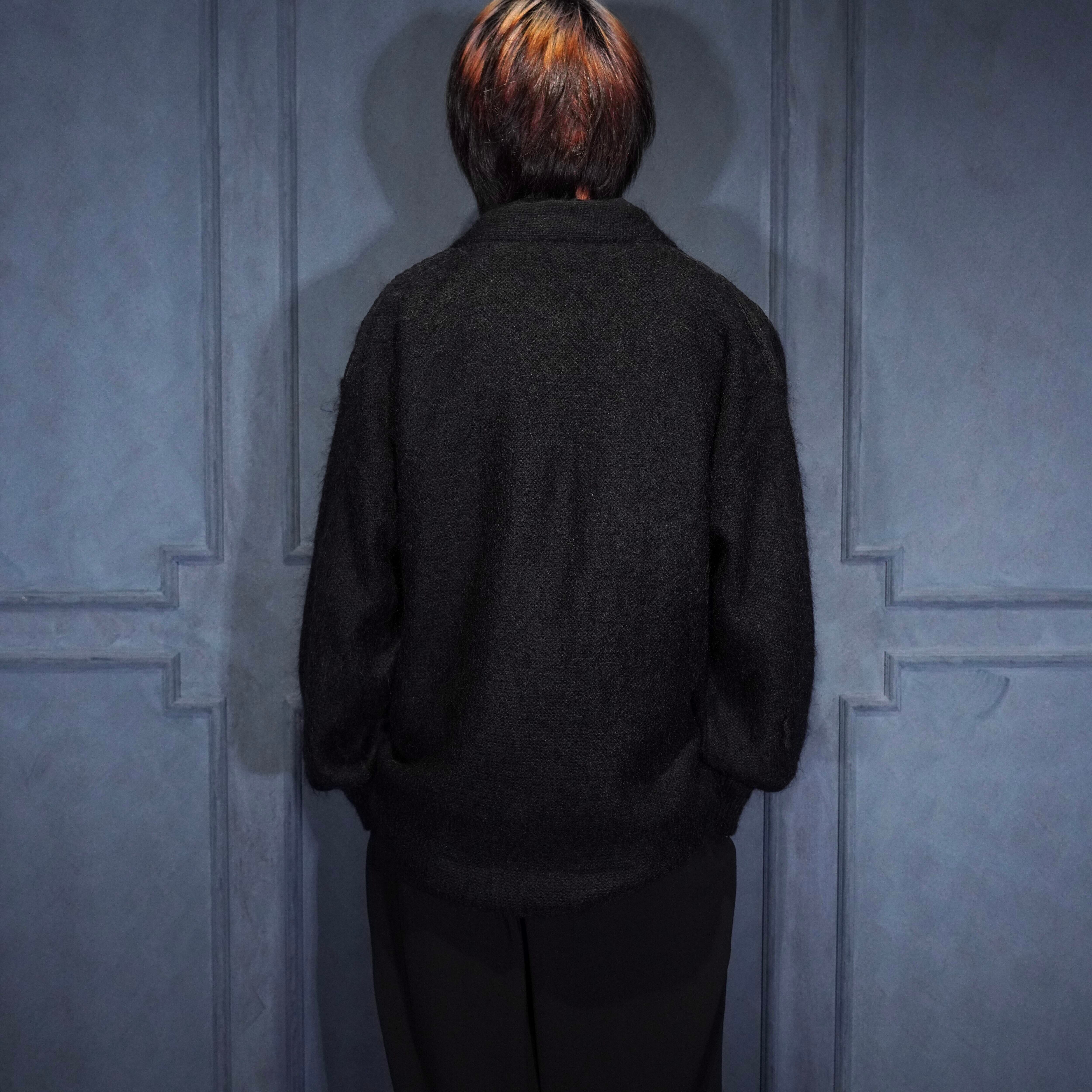EU VINTAGE LEATHER PATCH DESIGN MOHAIR CARDIGAN/ヨーロッパ古着レザーパッチデザインモヘアカーディガン