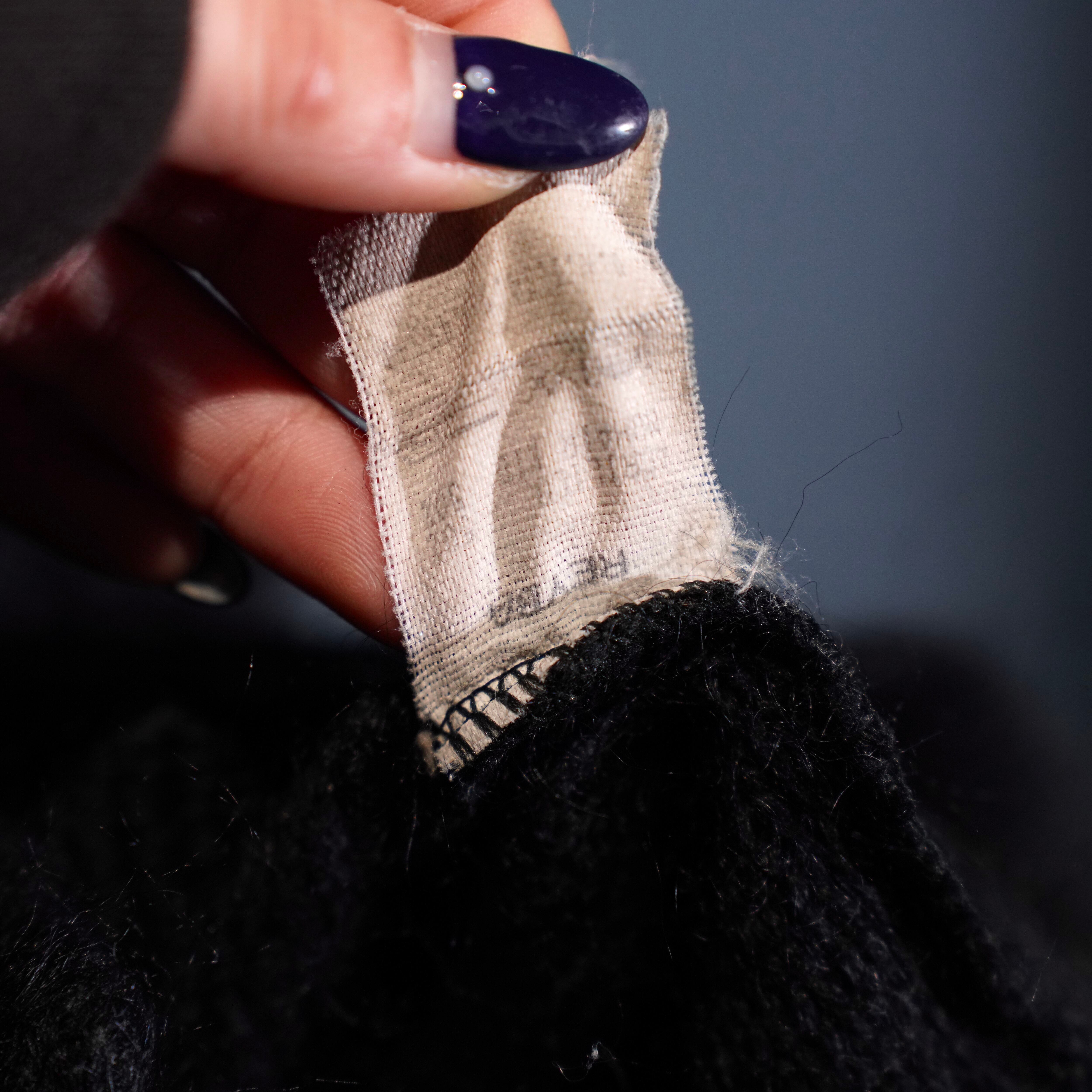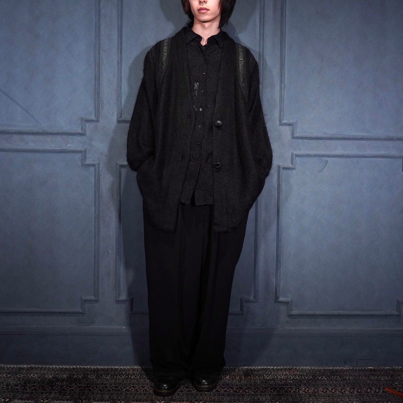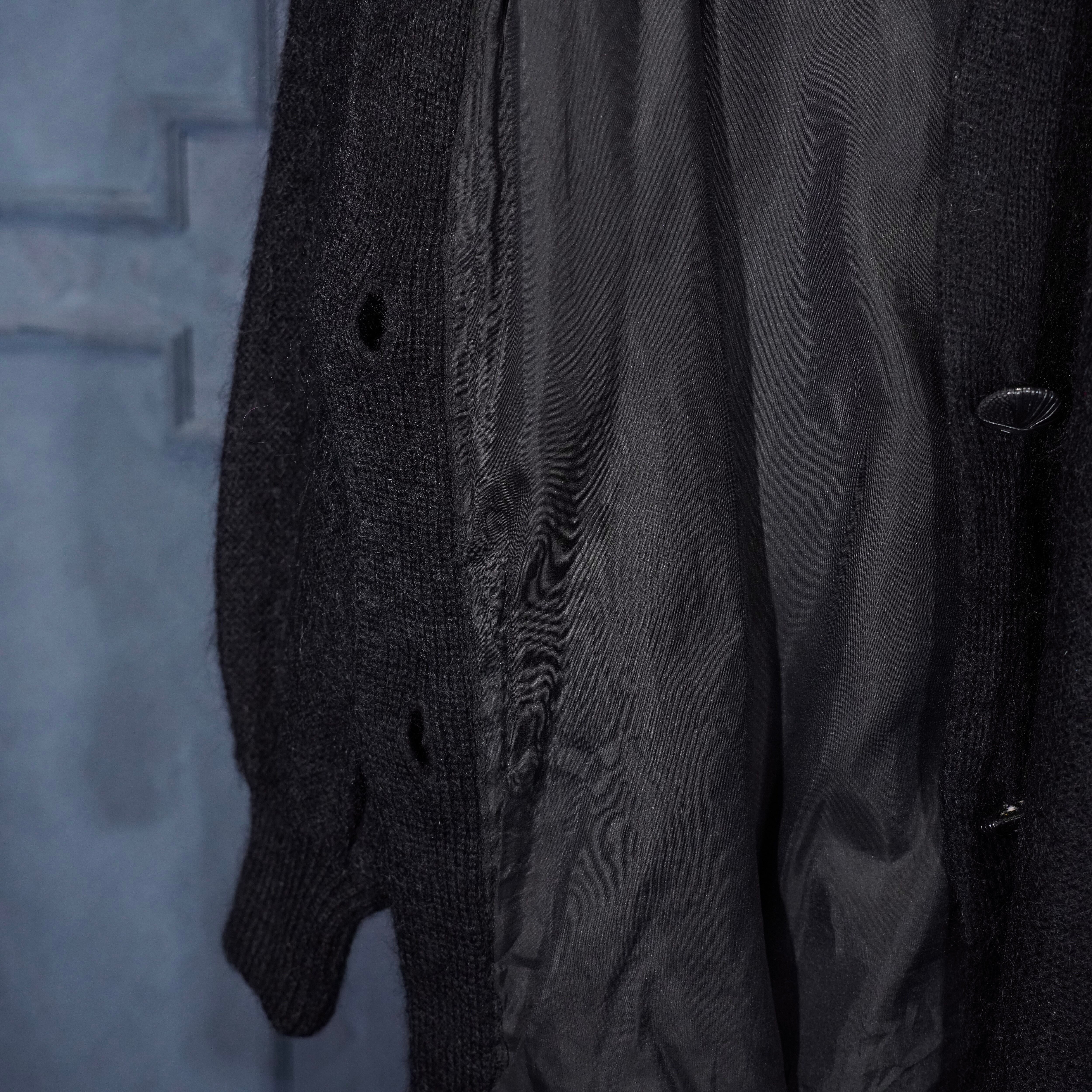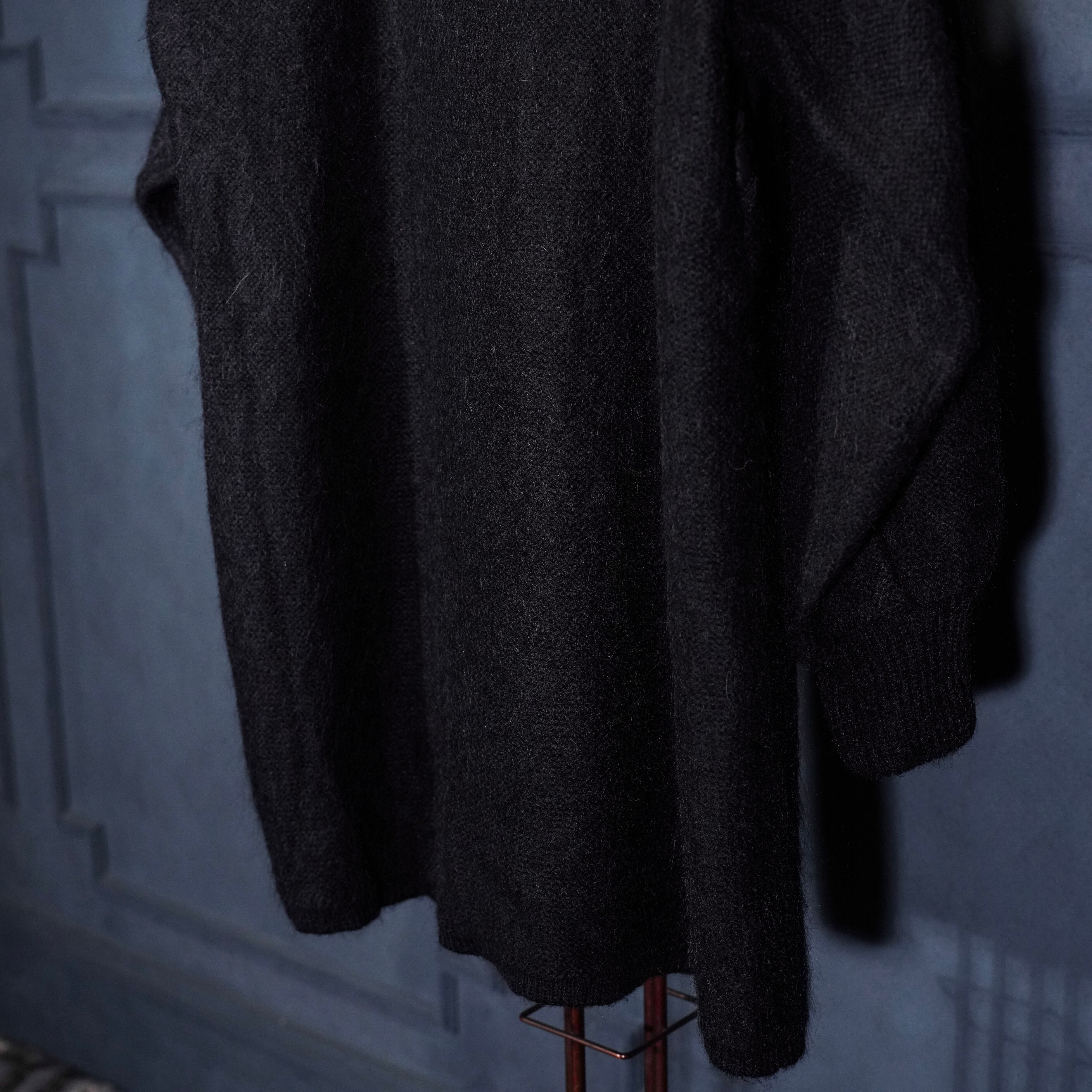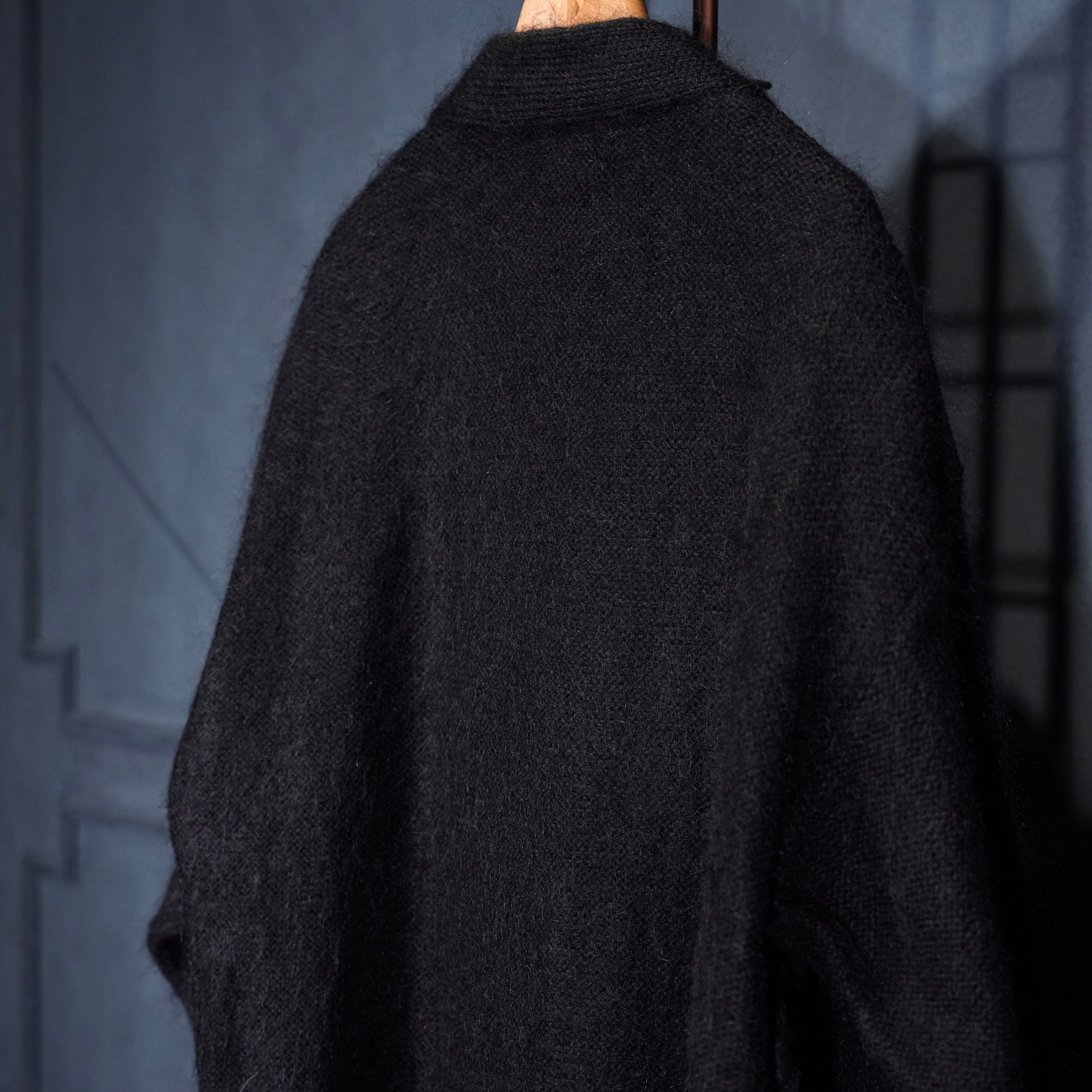 EU VINTAGE LEATHER PATCH DESIGN MOHAIR CARDIGAN/ヨーロッパ古着レザーパッチデザインモヘアカーディガン