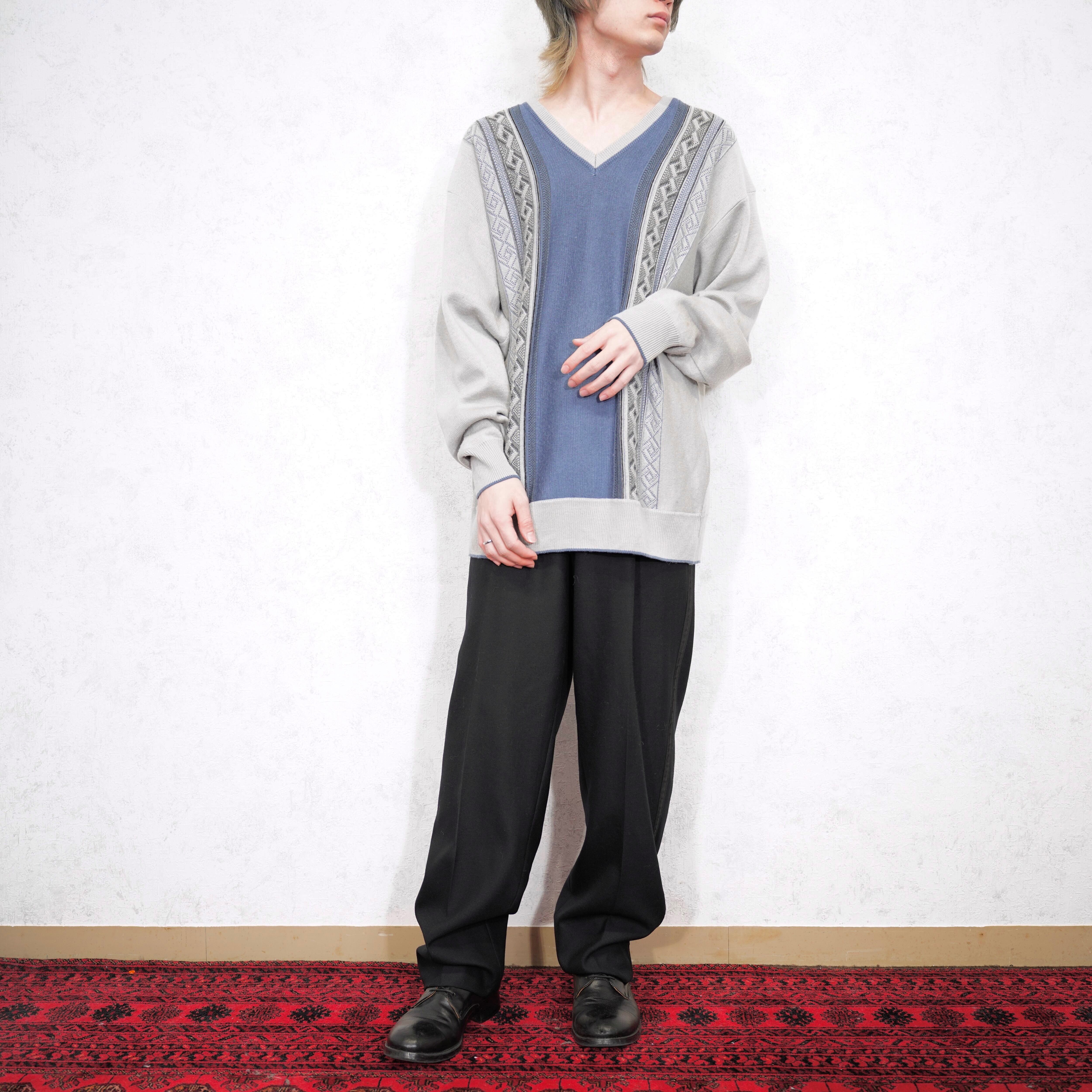 EU VINTAGE Gabicci EMBROIDERY PATTERNED DESIGN KNIT/ヨーロッパ古着刺繍柄デザインニット