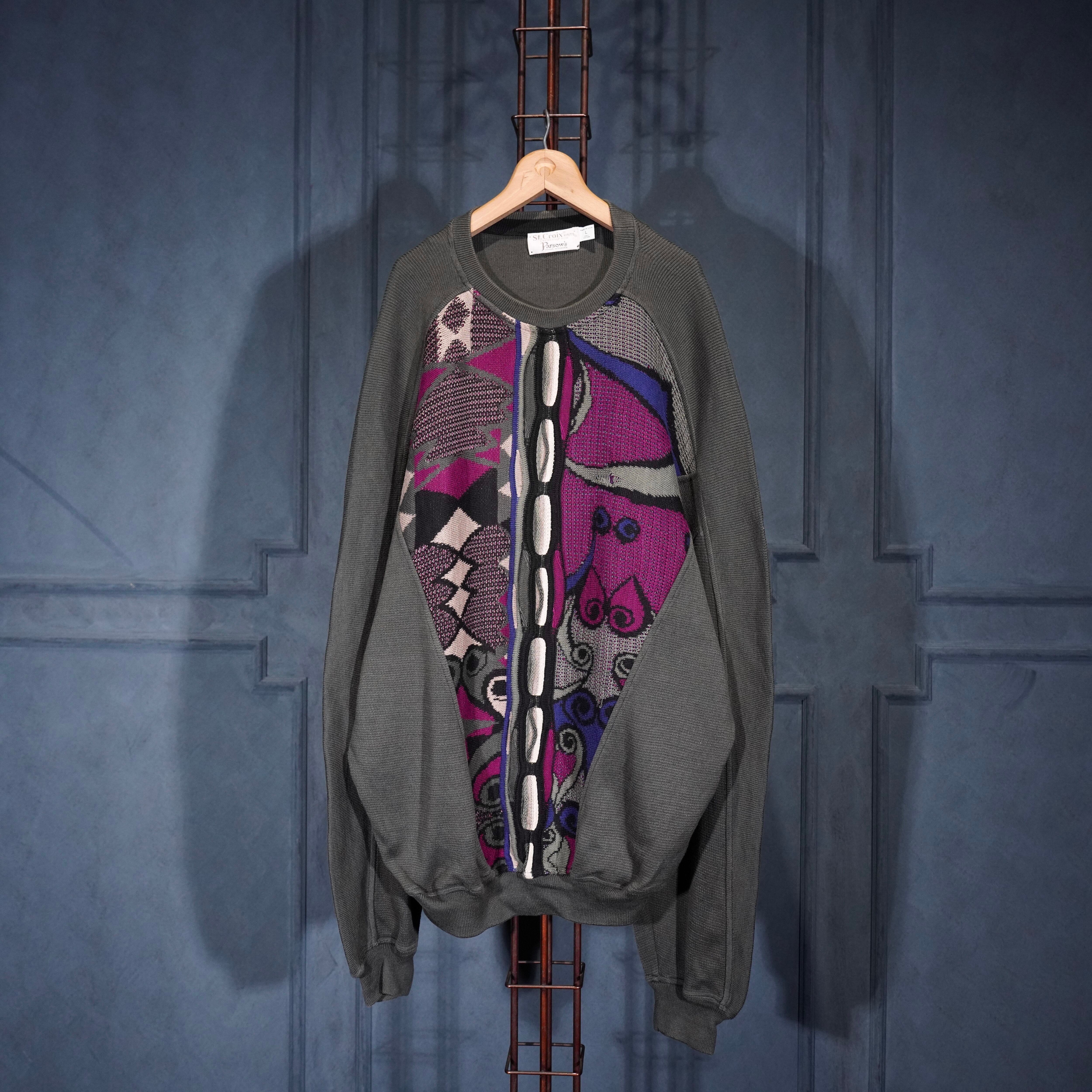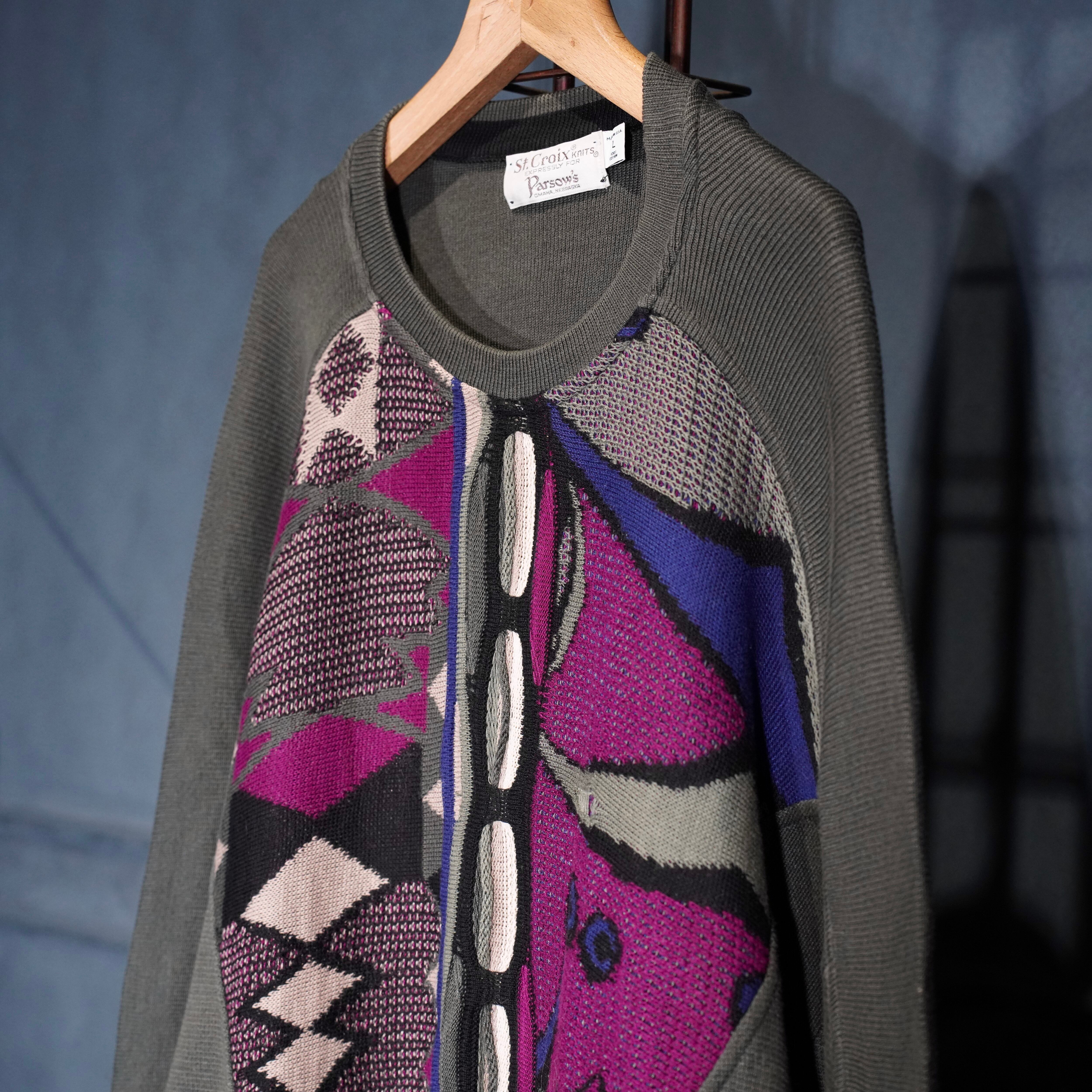 USA VINTAGE St. Croix KnitS. EXPRESSLY FOR Parsow's DESIGN 3D COTTON KNIT MADE IN USA/アメリカ古着デザイン3Dコットンニット