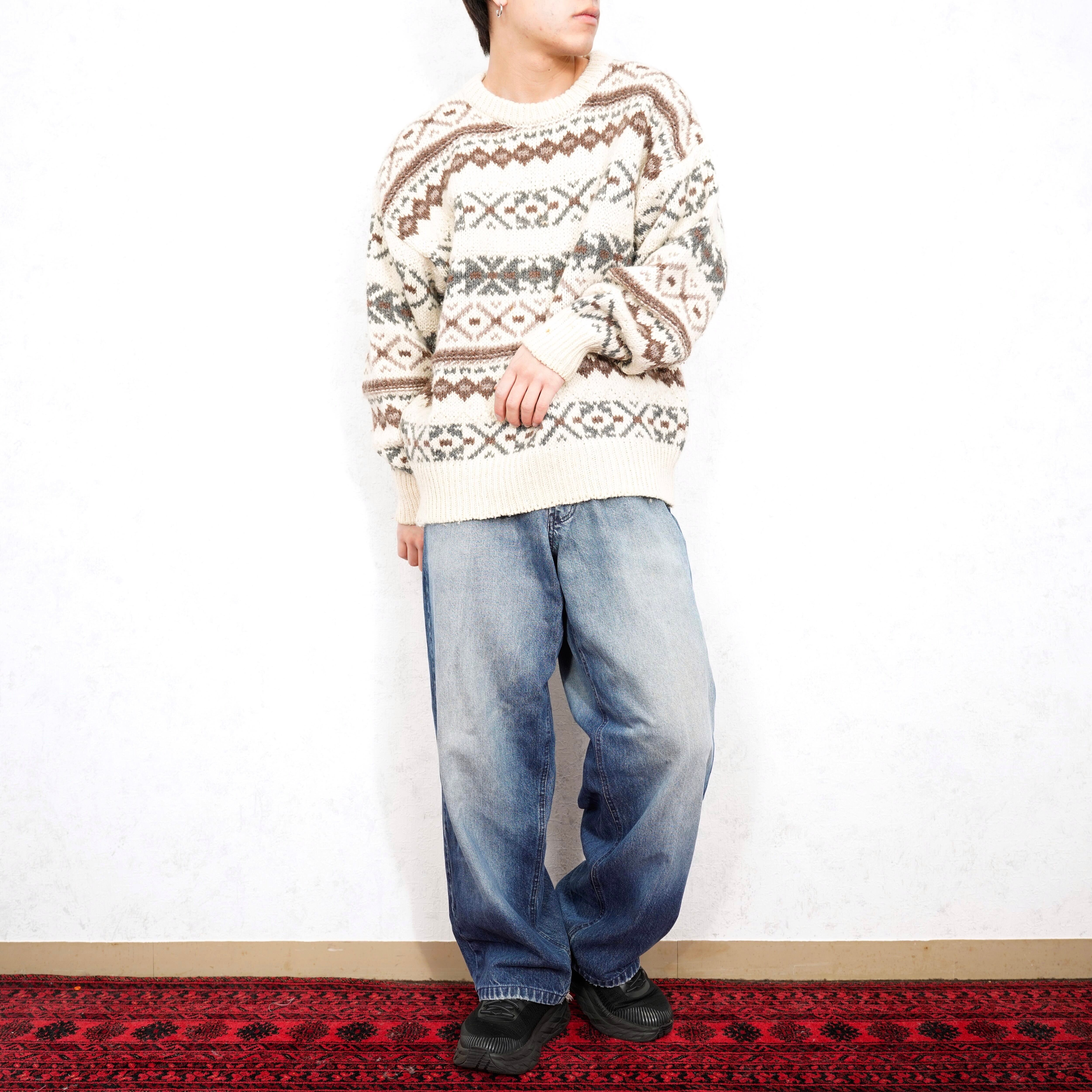 EU VINTAGE PATTERNED DESIGN KNIT MADE IN SCOTLAND/ヨーロッパ古着柄デザインニット