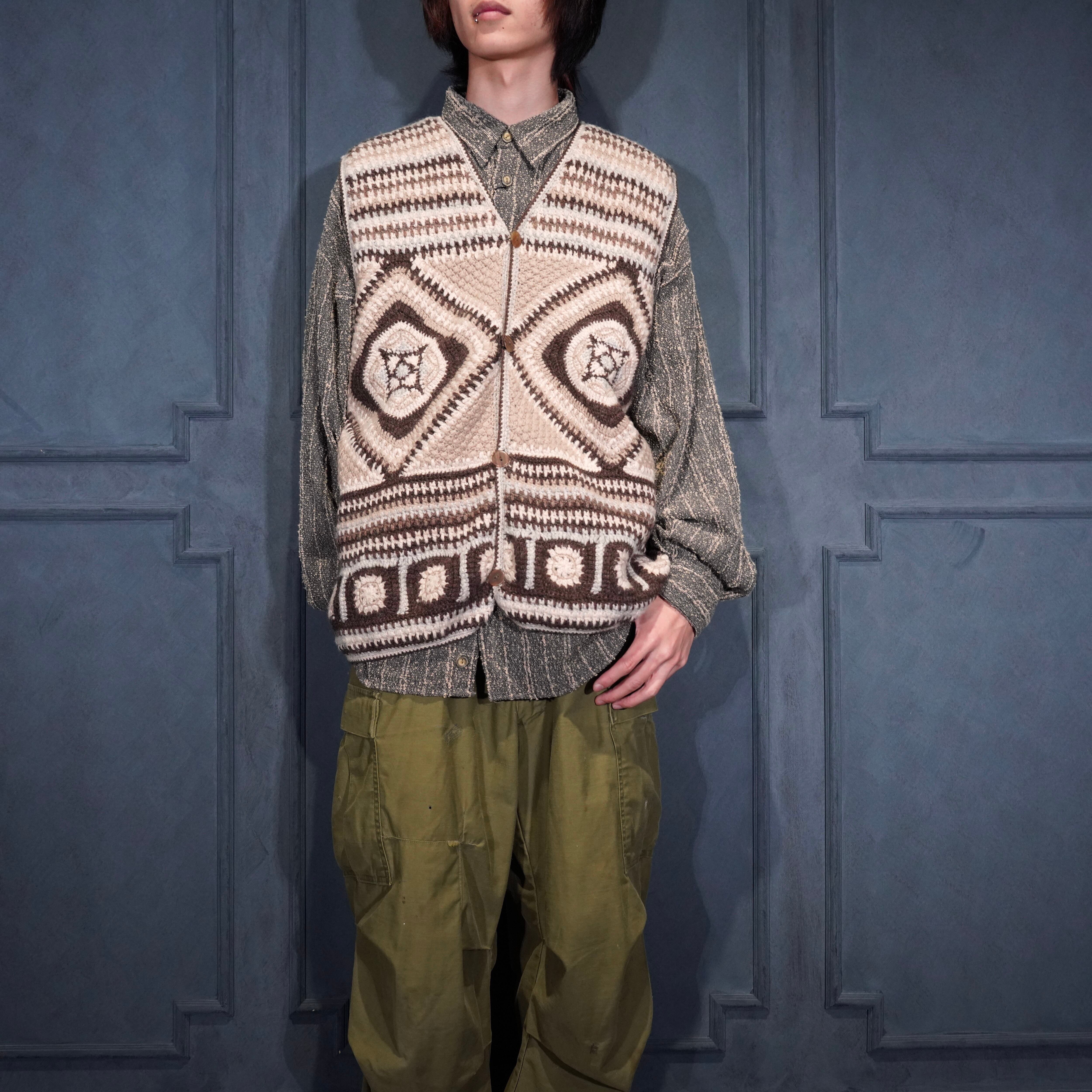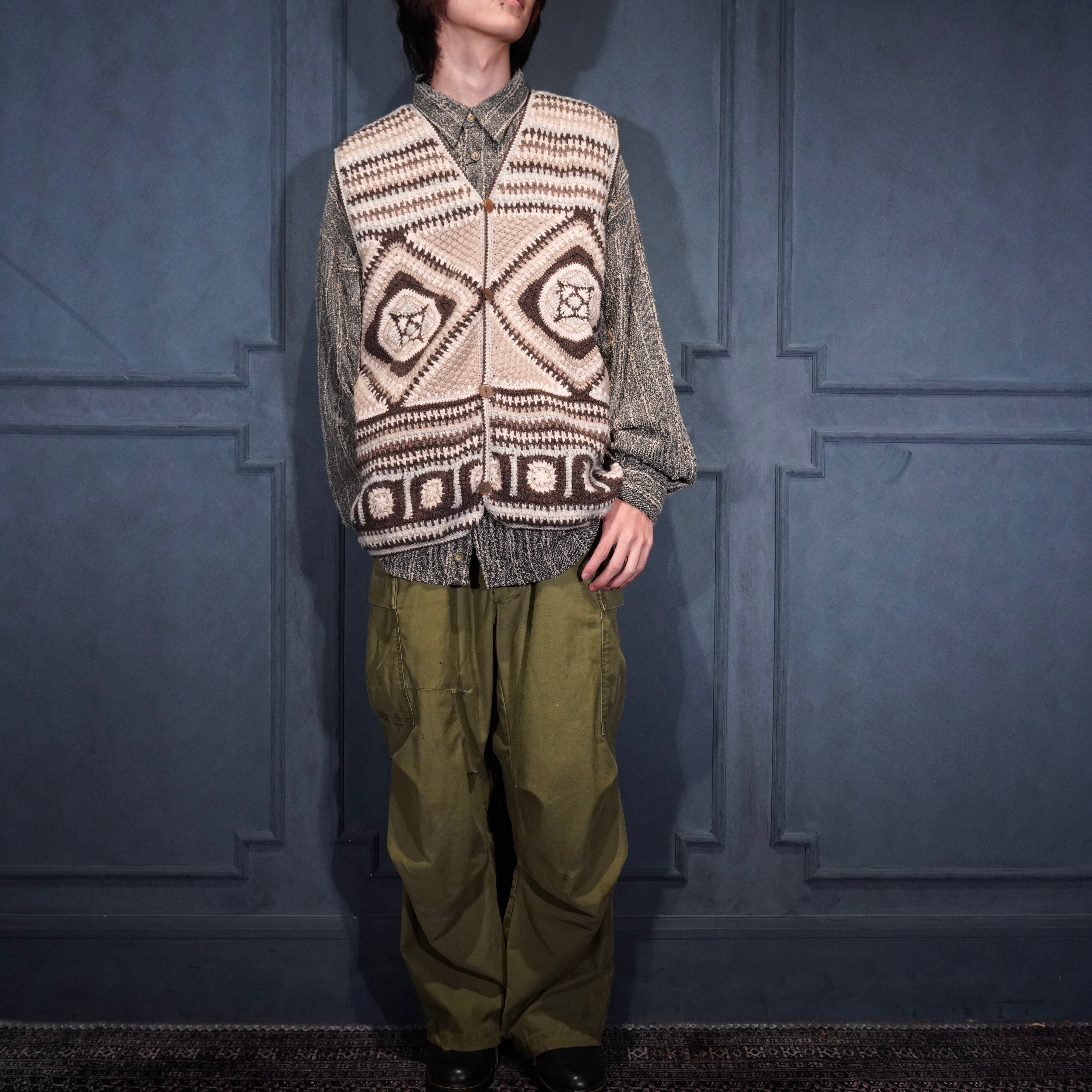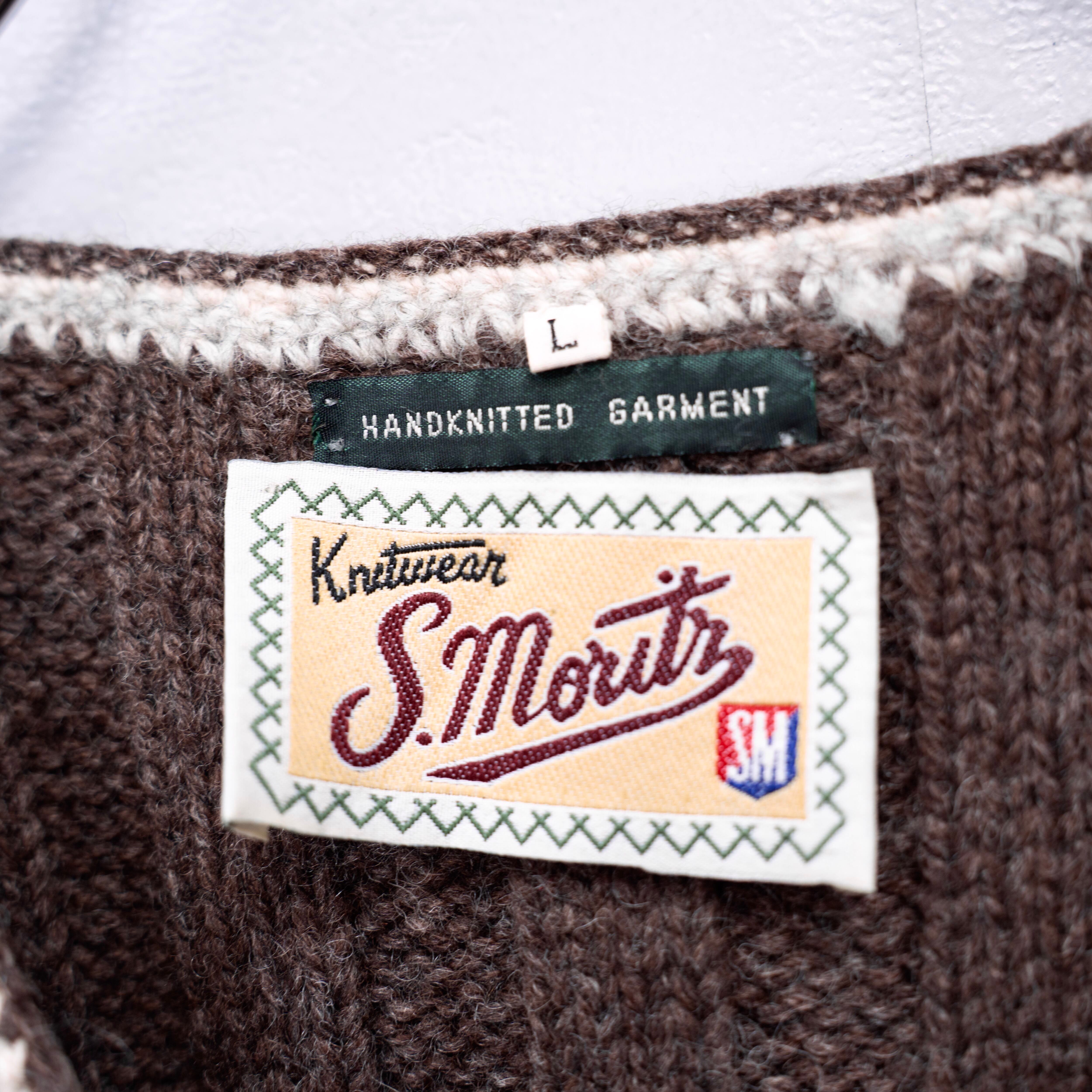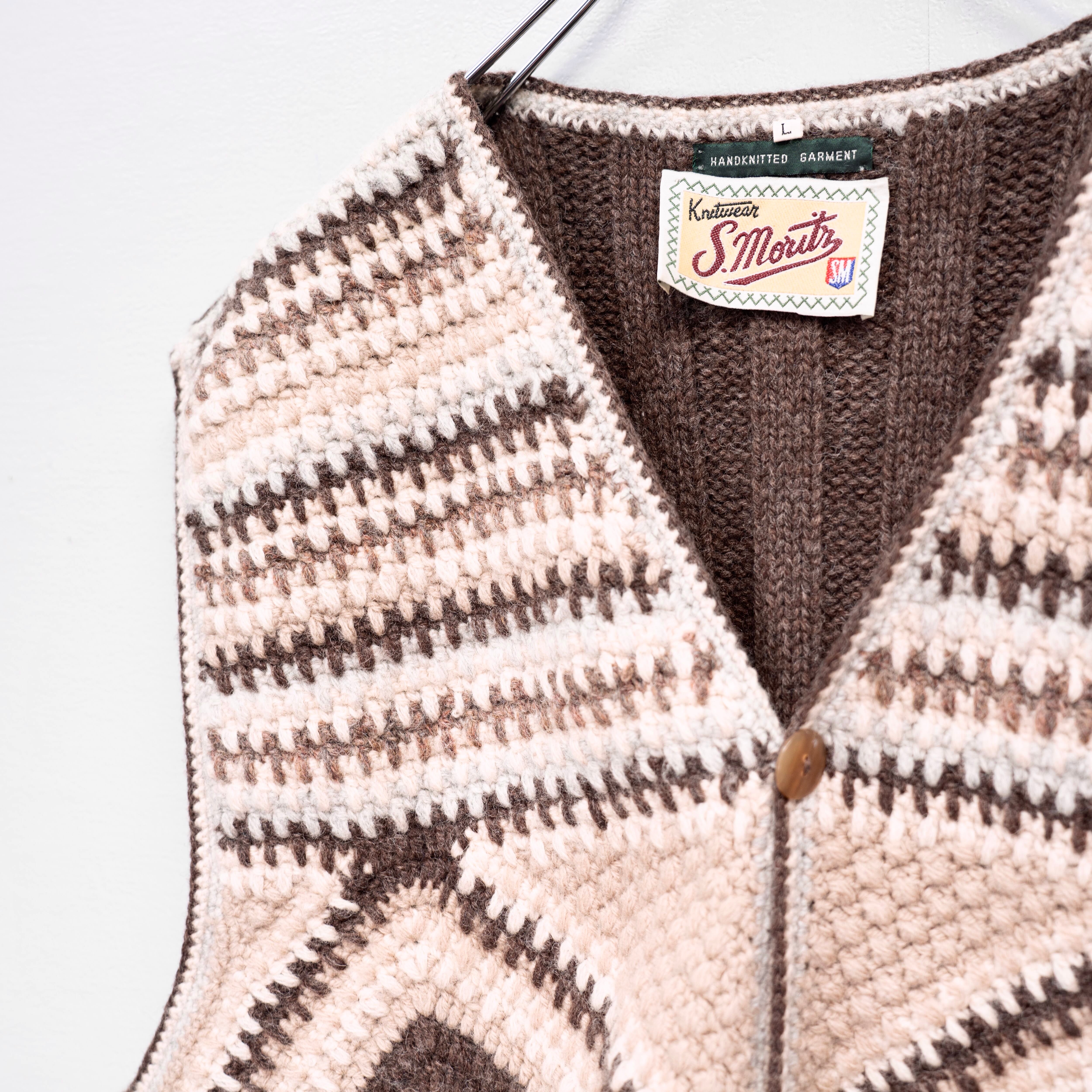 EU VINTAGE S.Moutn PATTERNED DESIGNN HAND KNIT VEST/ヨーロッパ古着柄デザインハンドニットベスト