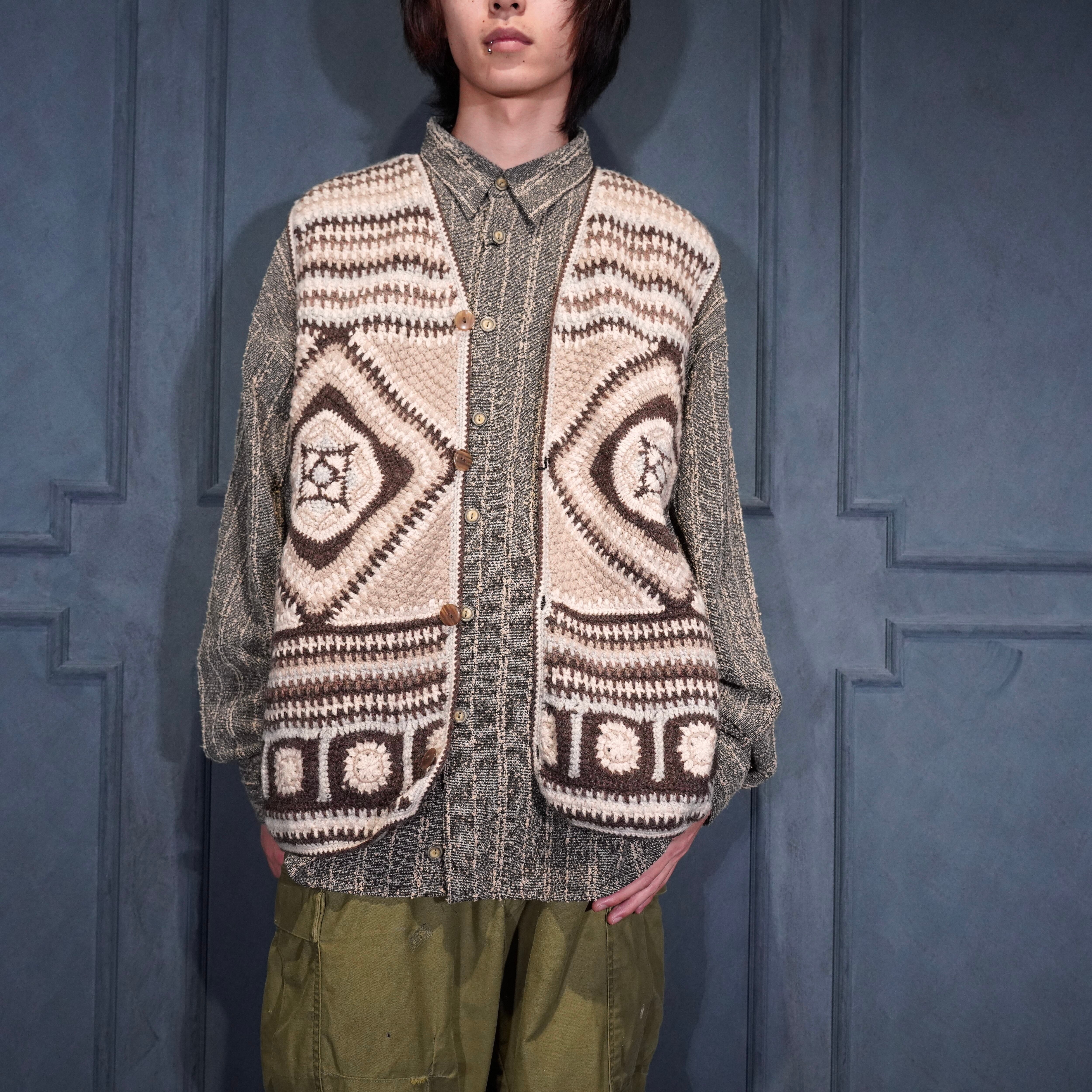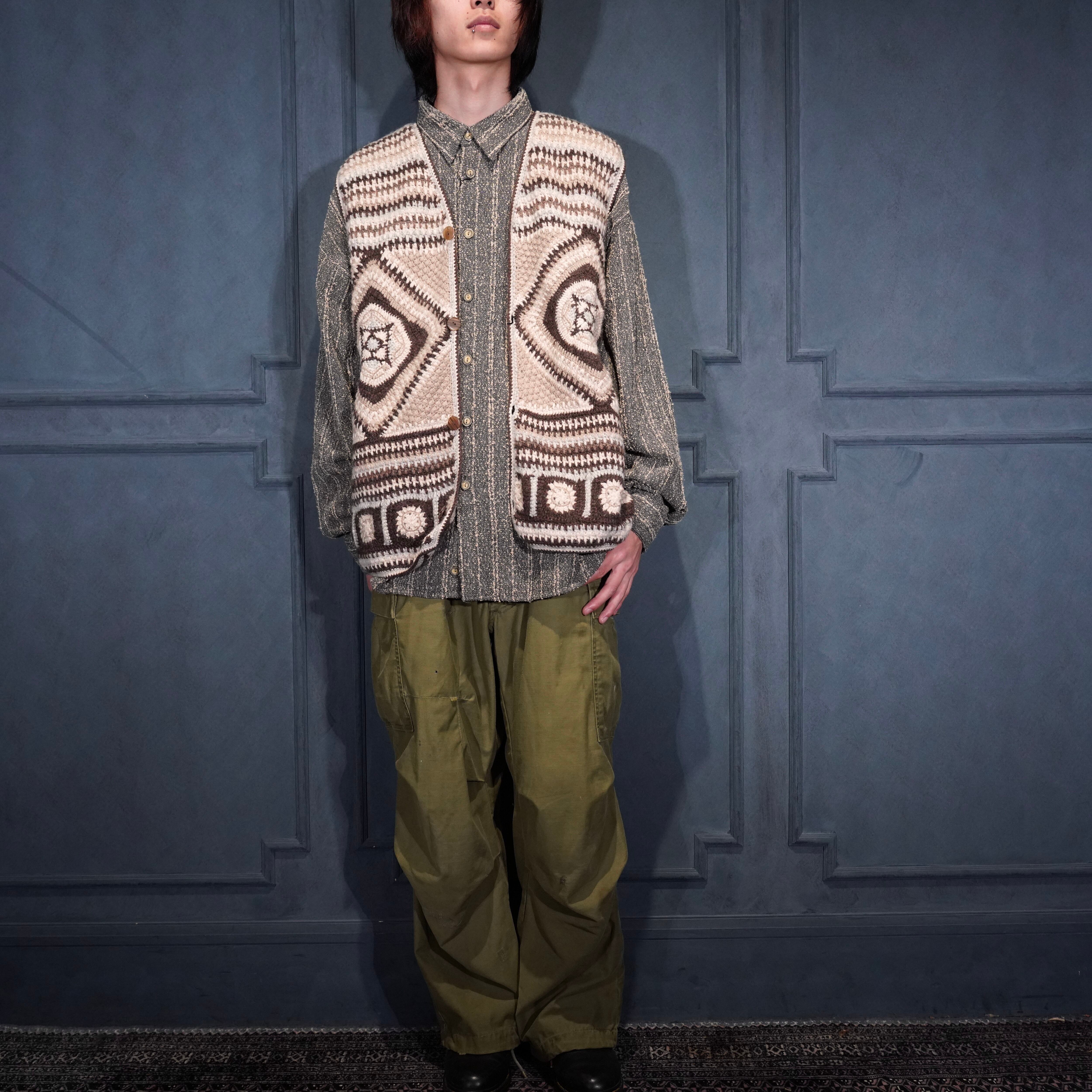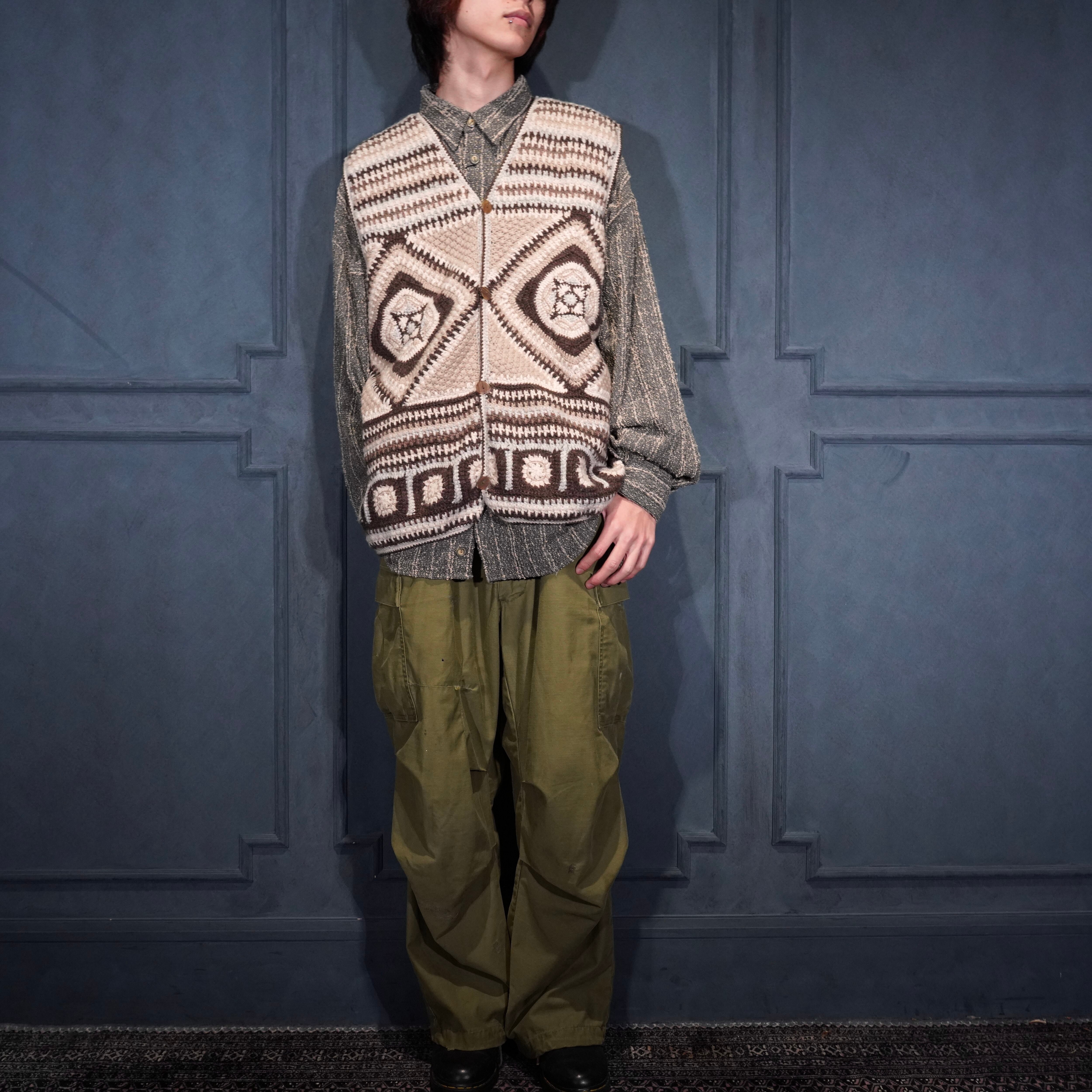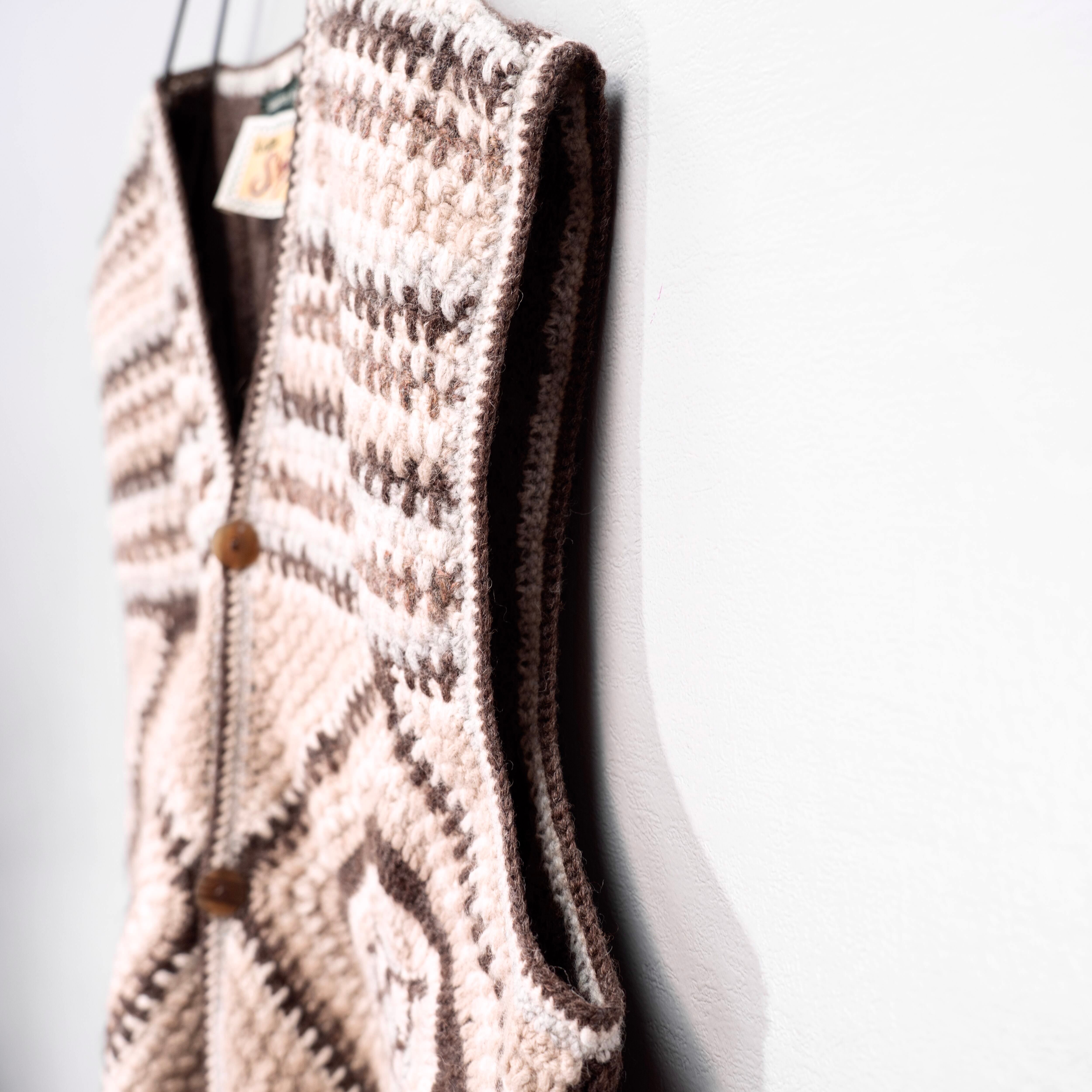 EU VINTAGE S.Moutn PATTERNED DESIGNN HAND KNIT VEST/ヨーロッパ古着柄デザインハンドニットベスト