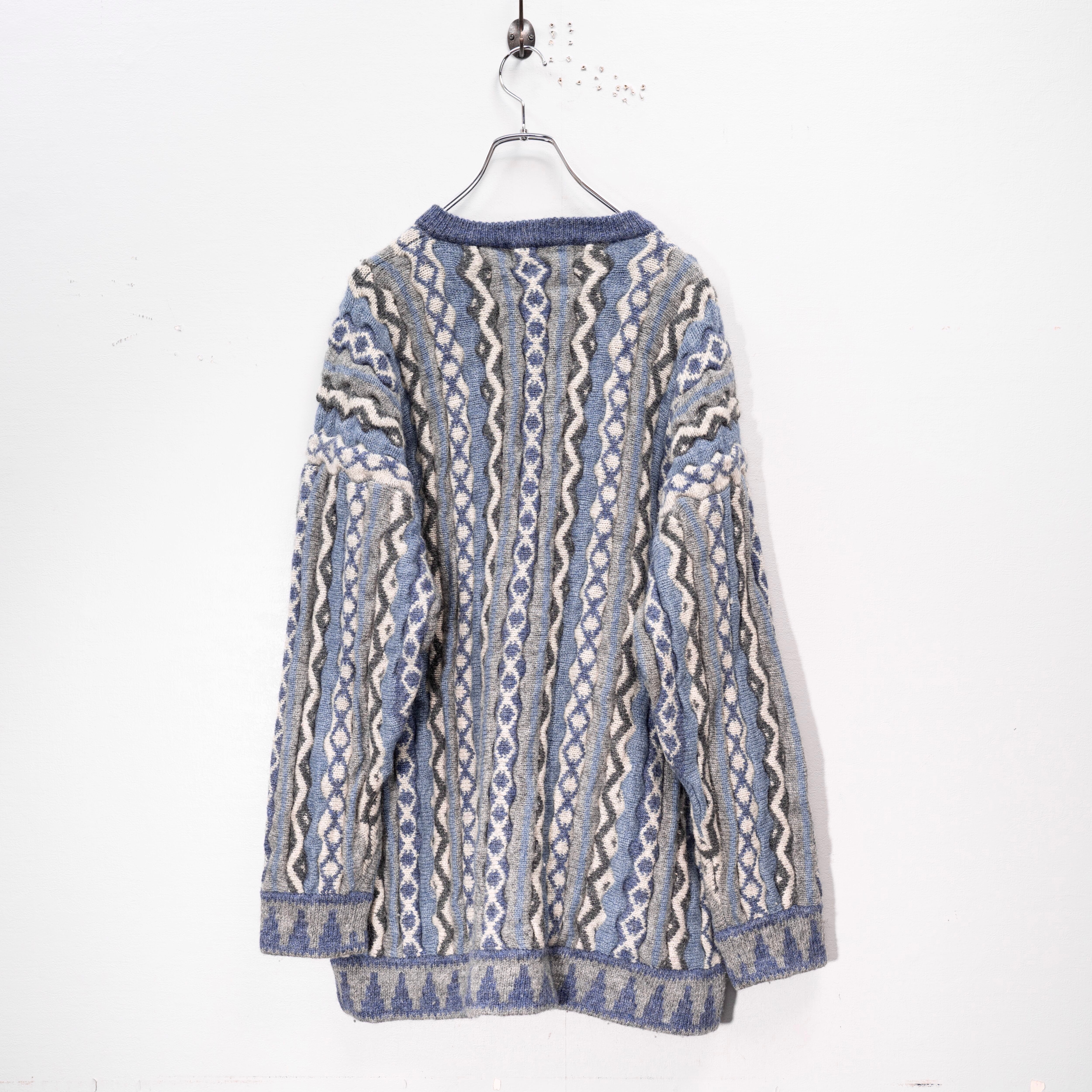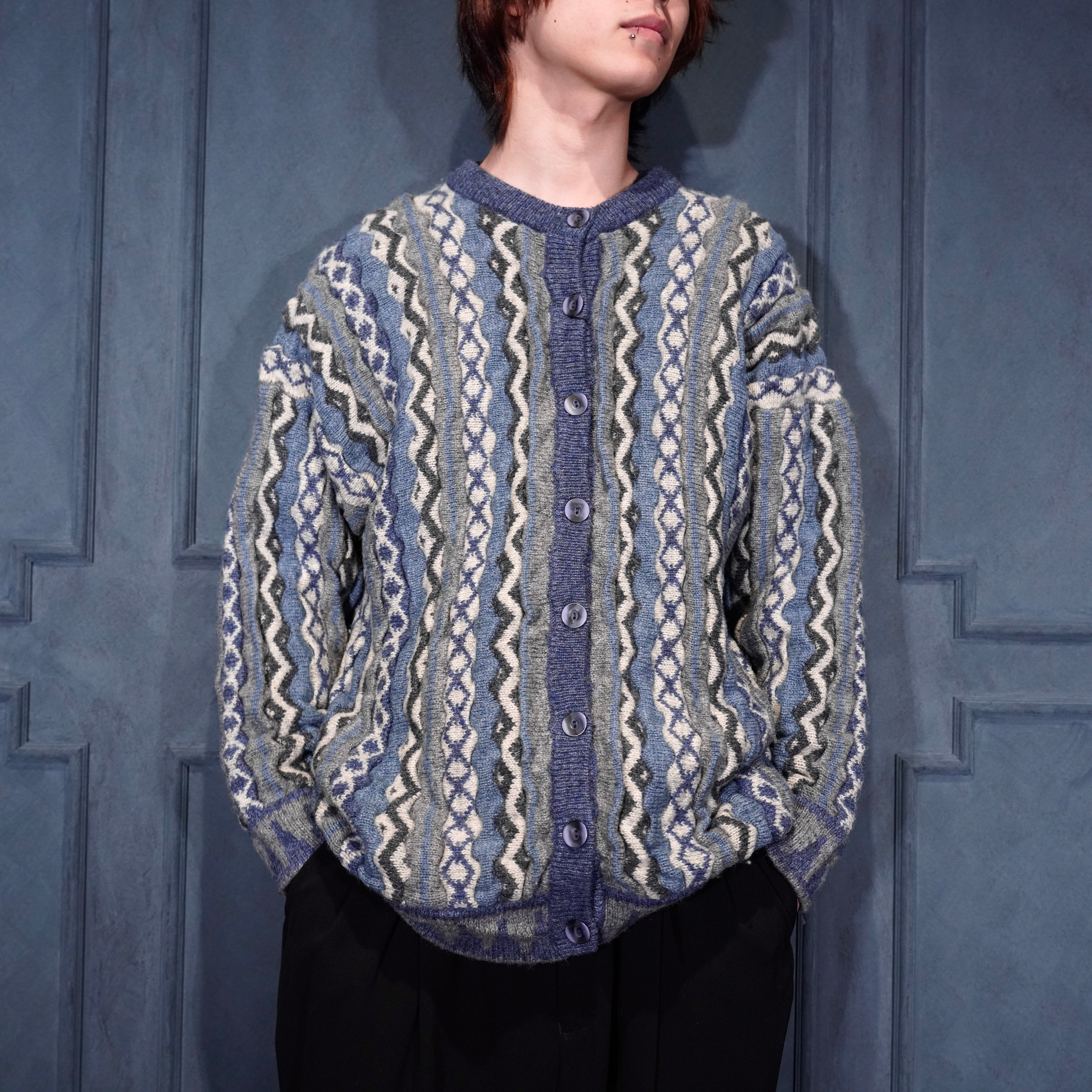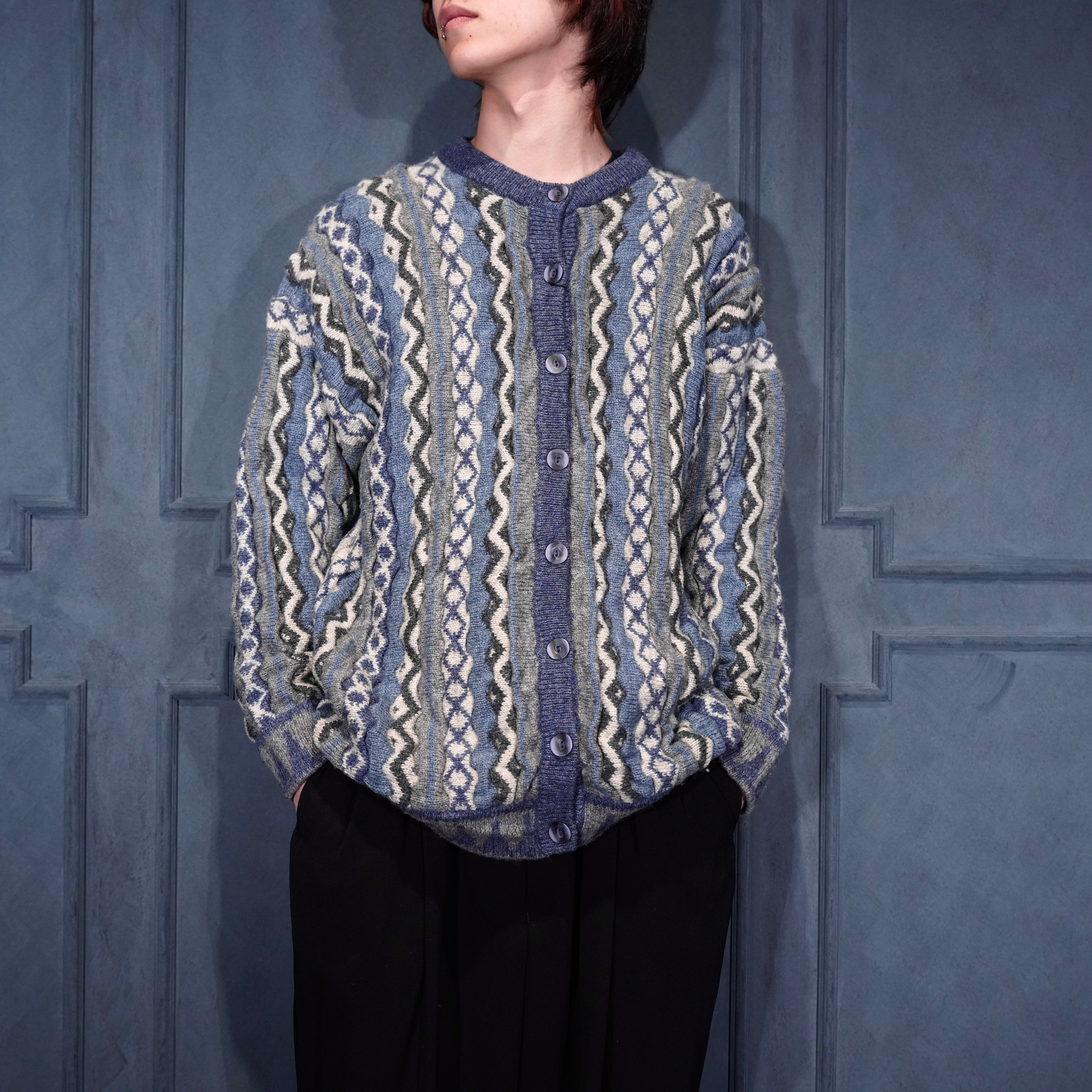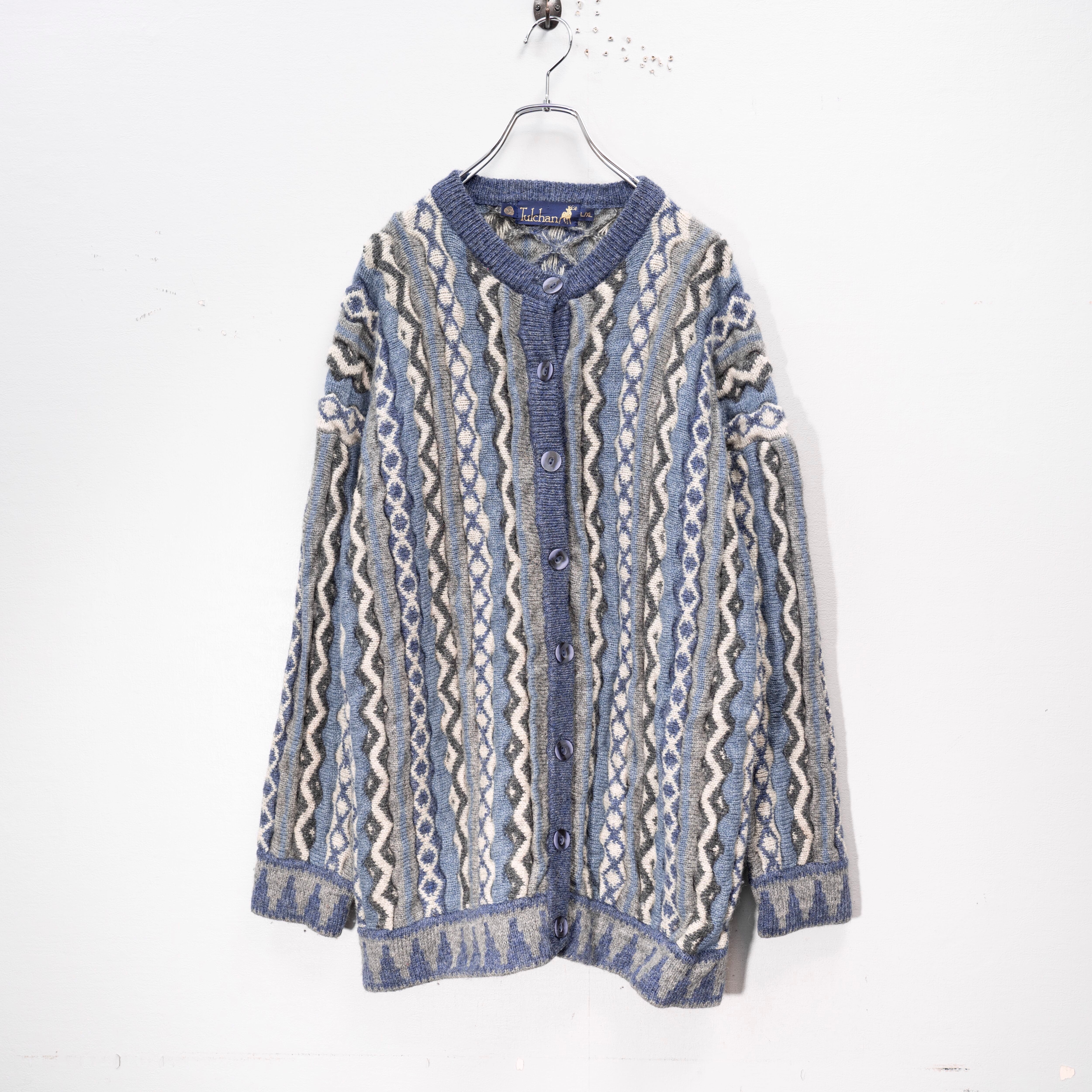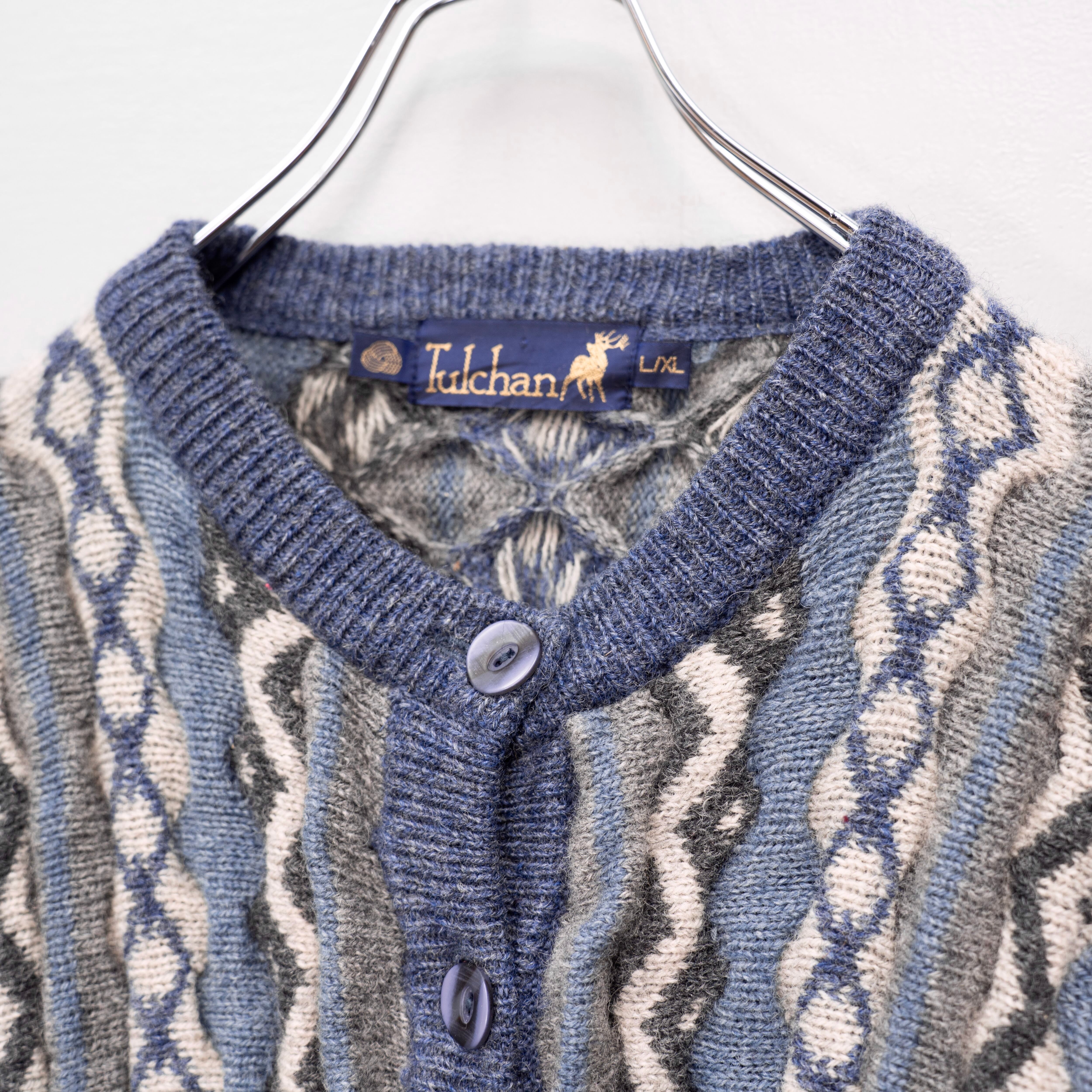 USA VINTAGE Tulchan PURE NEW WOOL 3D KNIT CARDIGAN/アメリカ古着ピュアニューウール3Dニットカーディガン