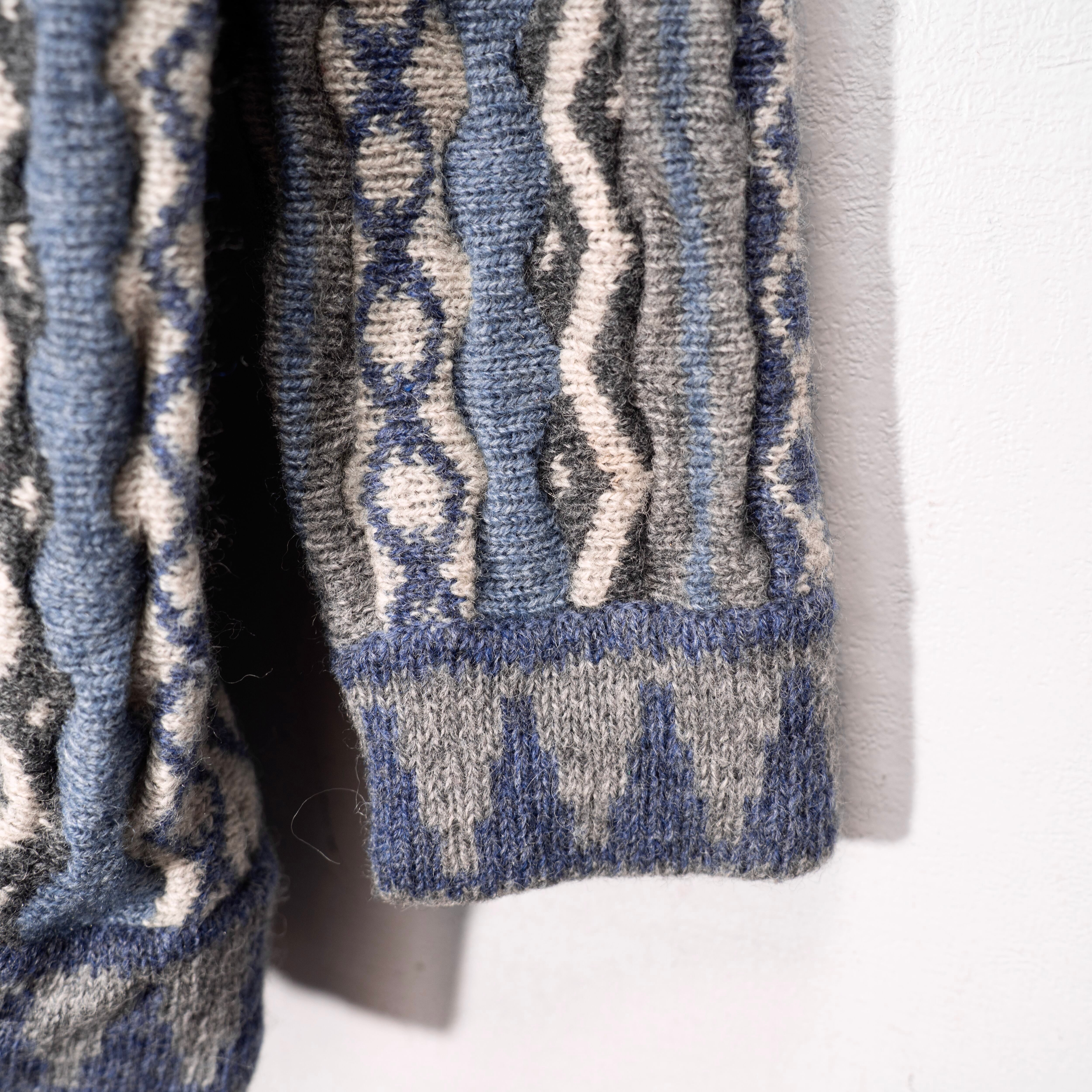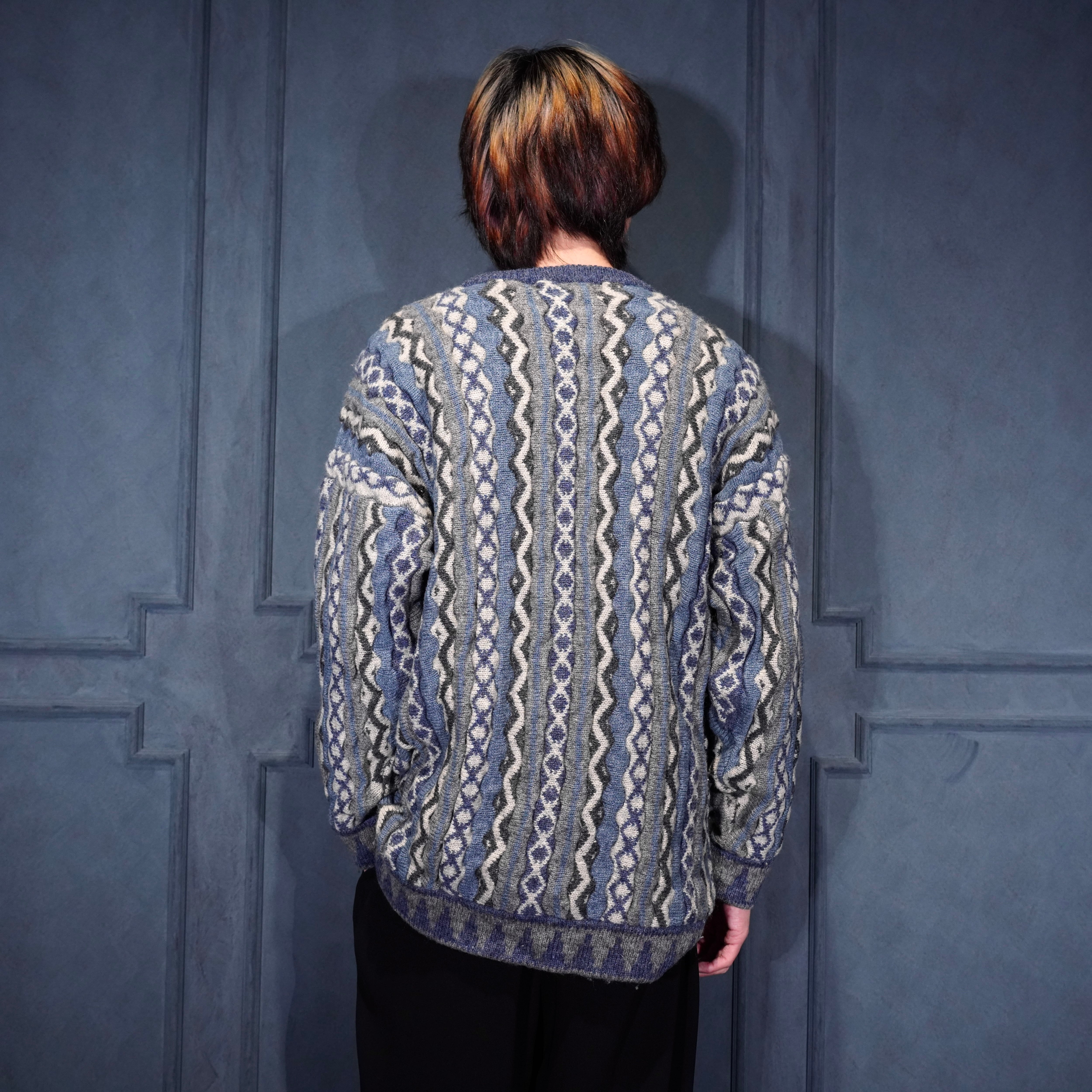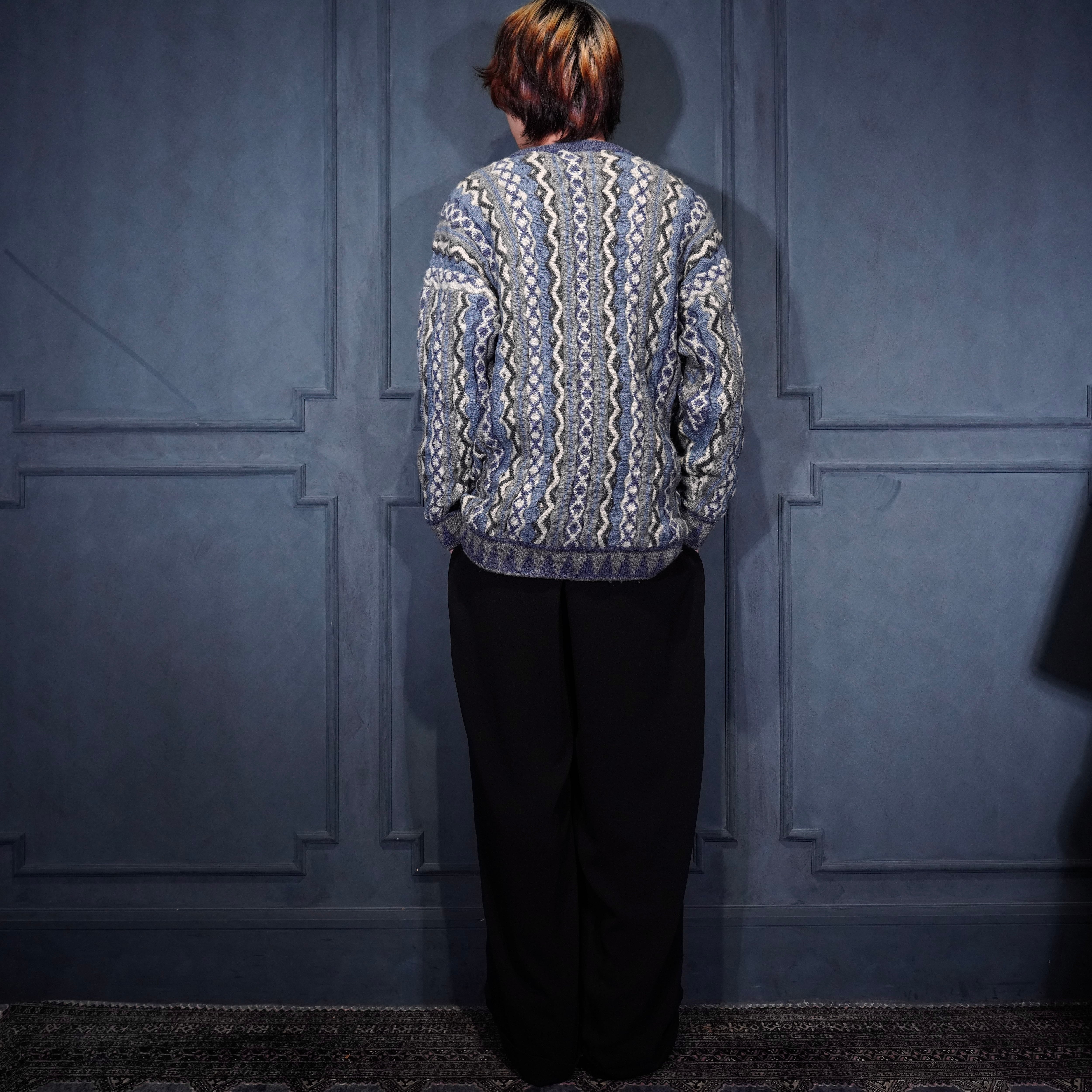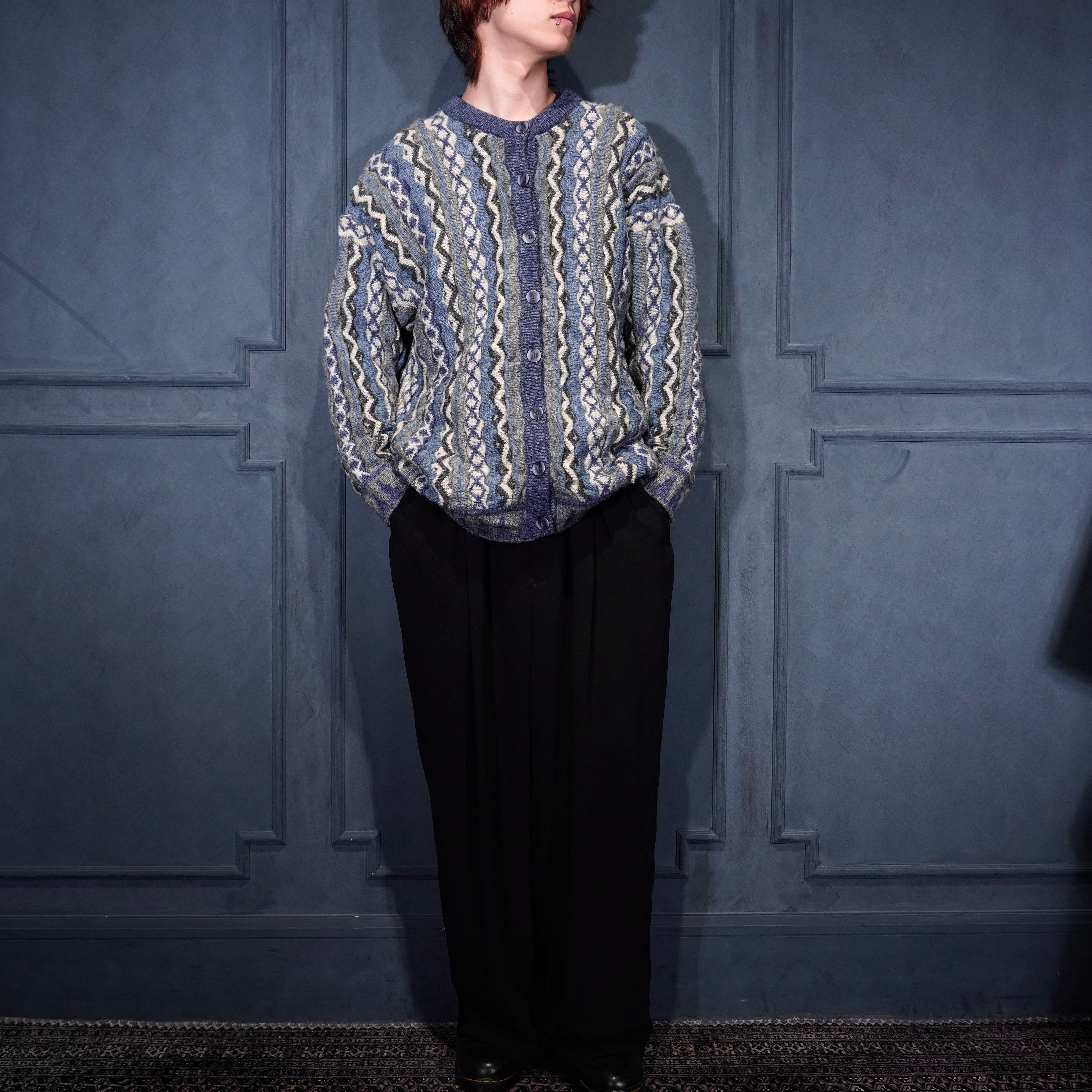 USA VINTAGE Tulchan PURE NEW WOOL 3D KNIT CARDIGAN/アメリカ古着ピュアニューウール3Dニットカーディガン