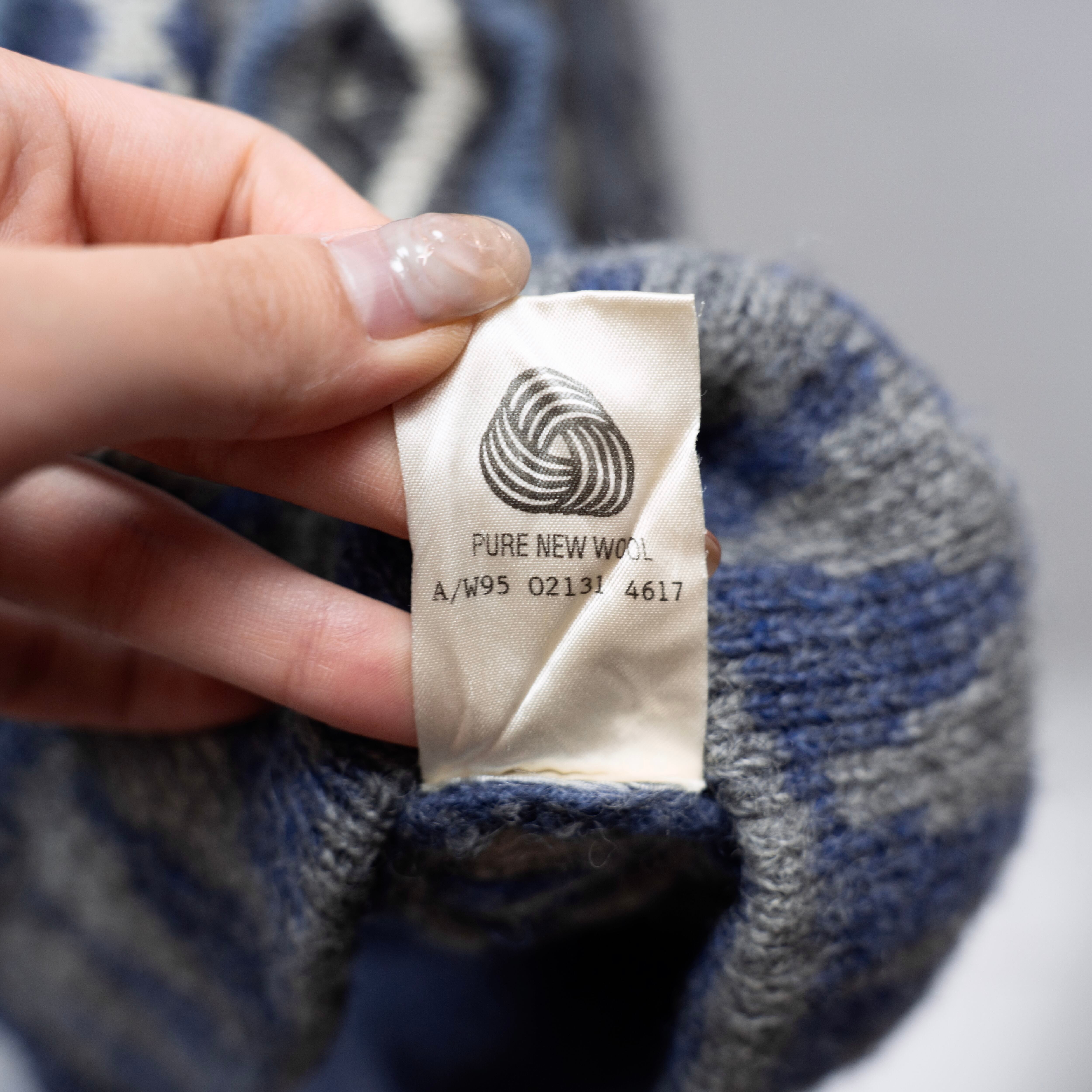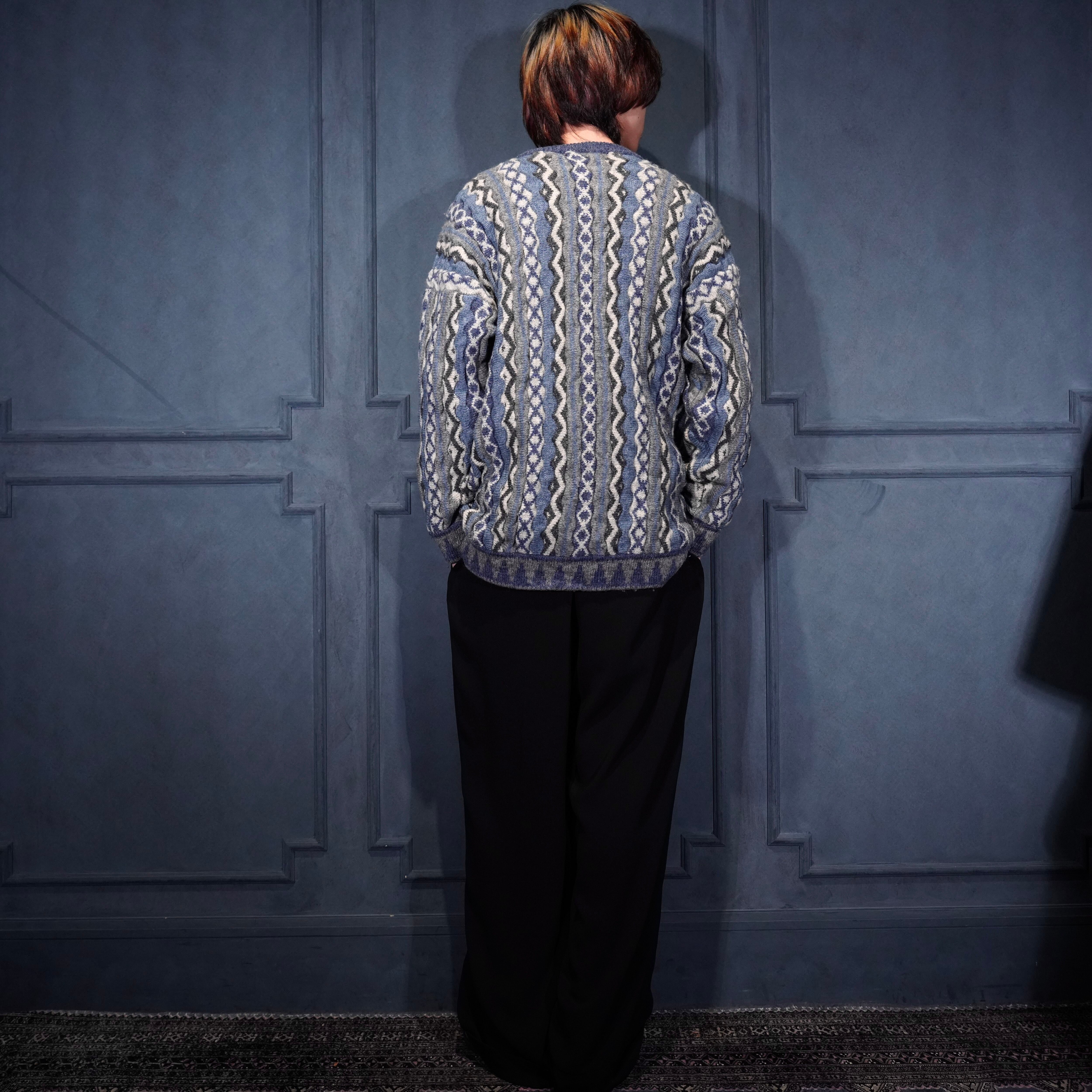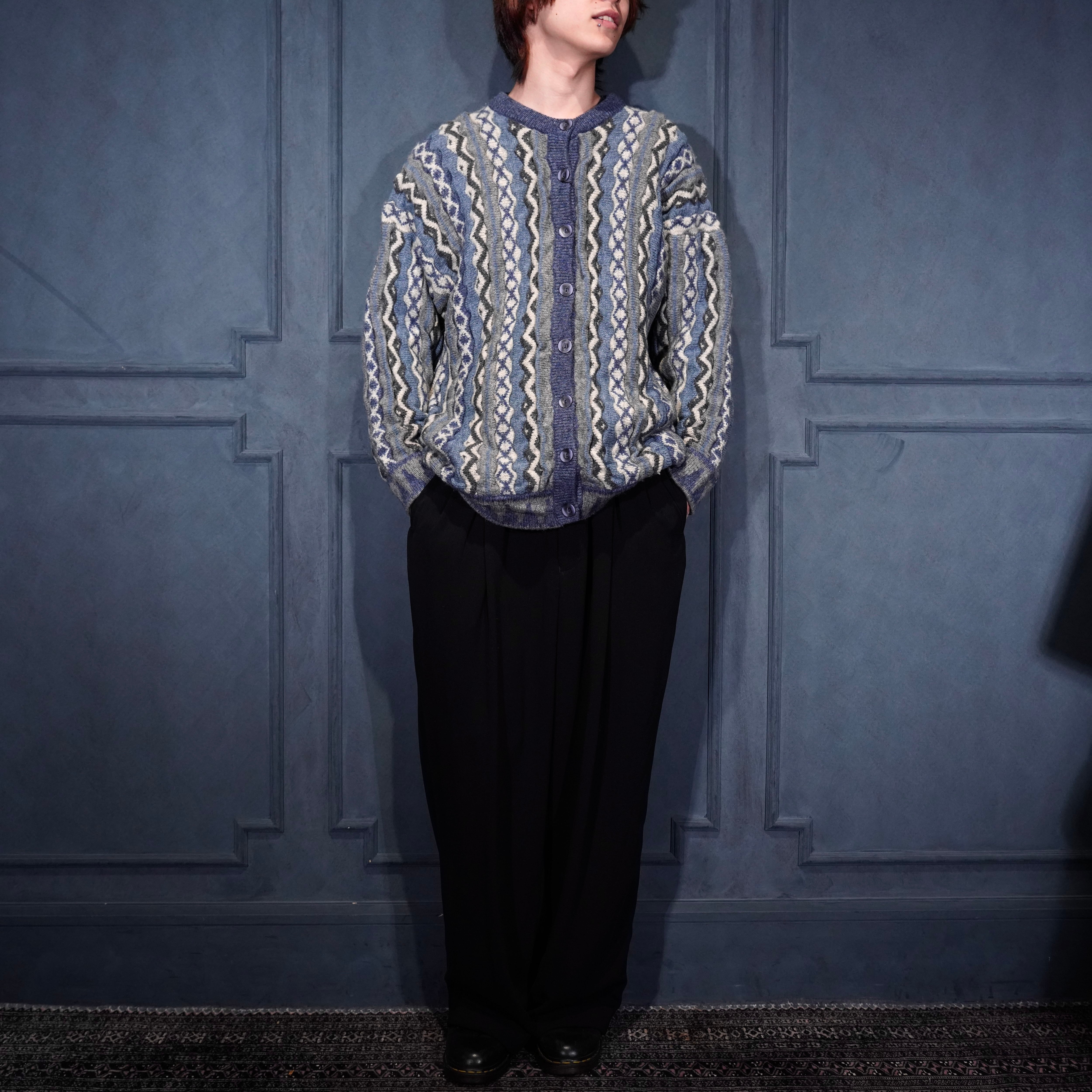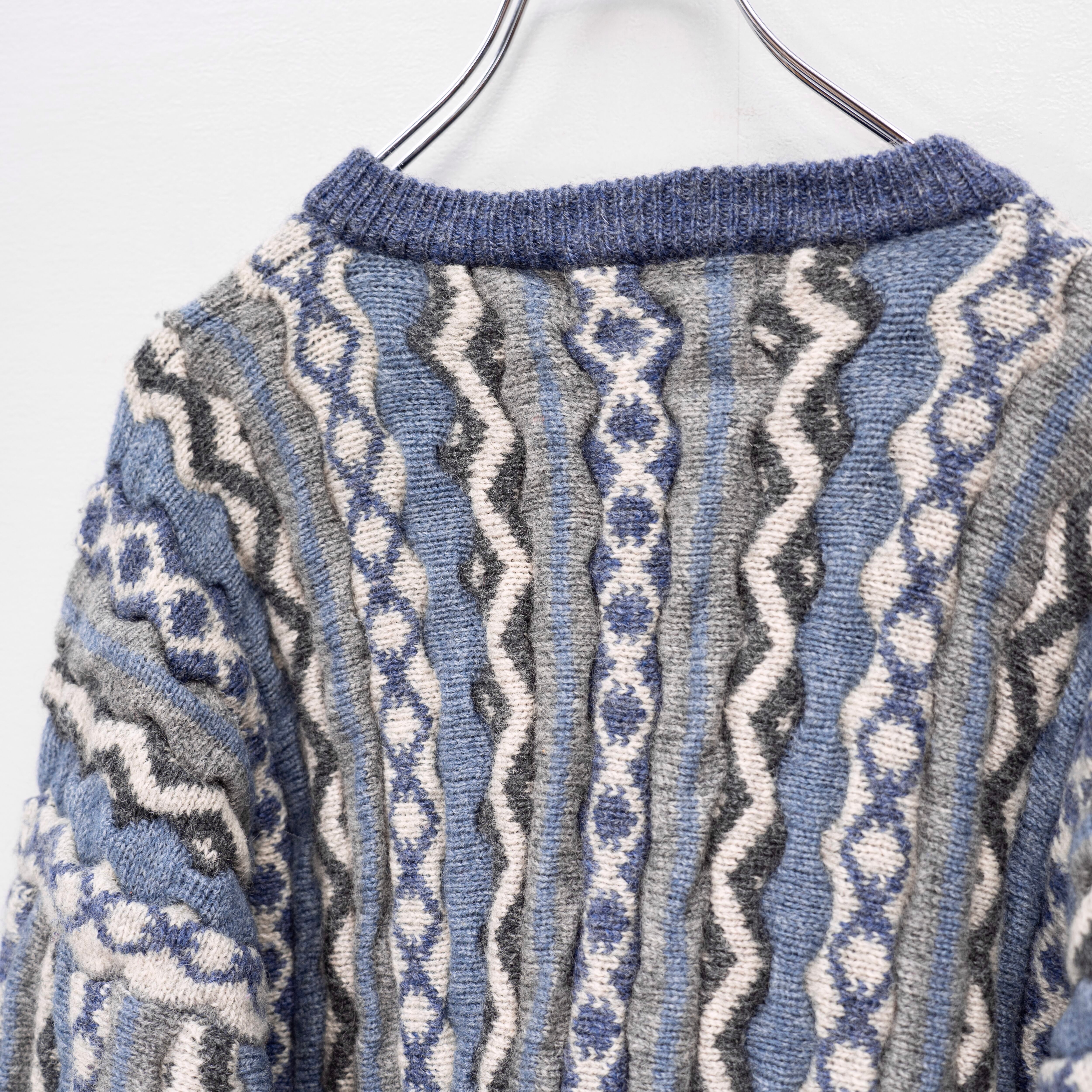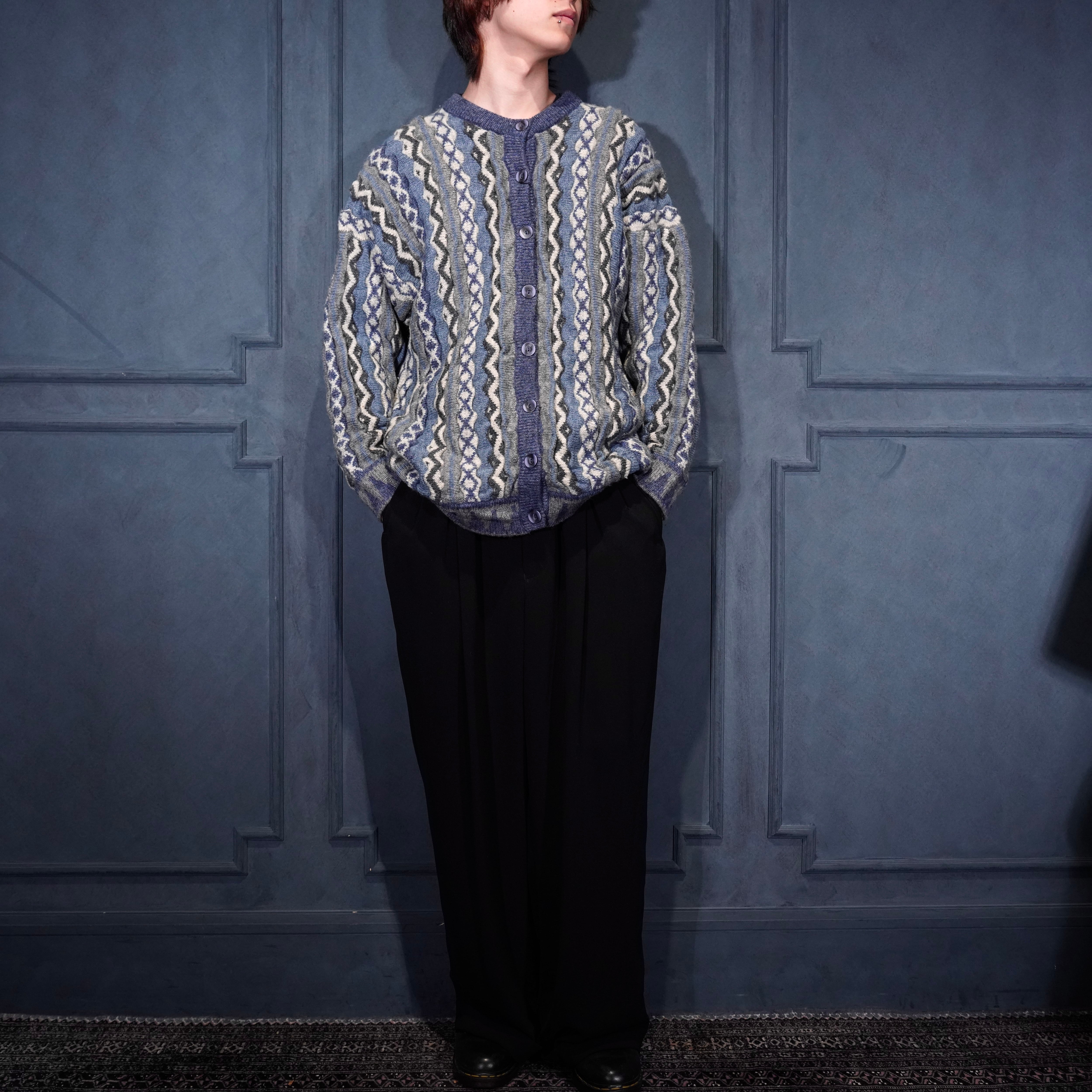 USA VINTAGE Tulchan PURE NEW WOOL 3D KNIT CARDIGAN/アメリカ古着ピュアニューウール3Dニットカーディガン