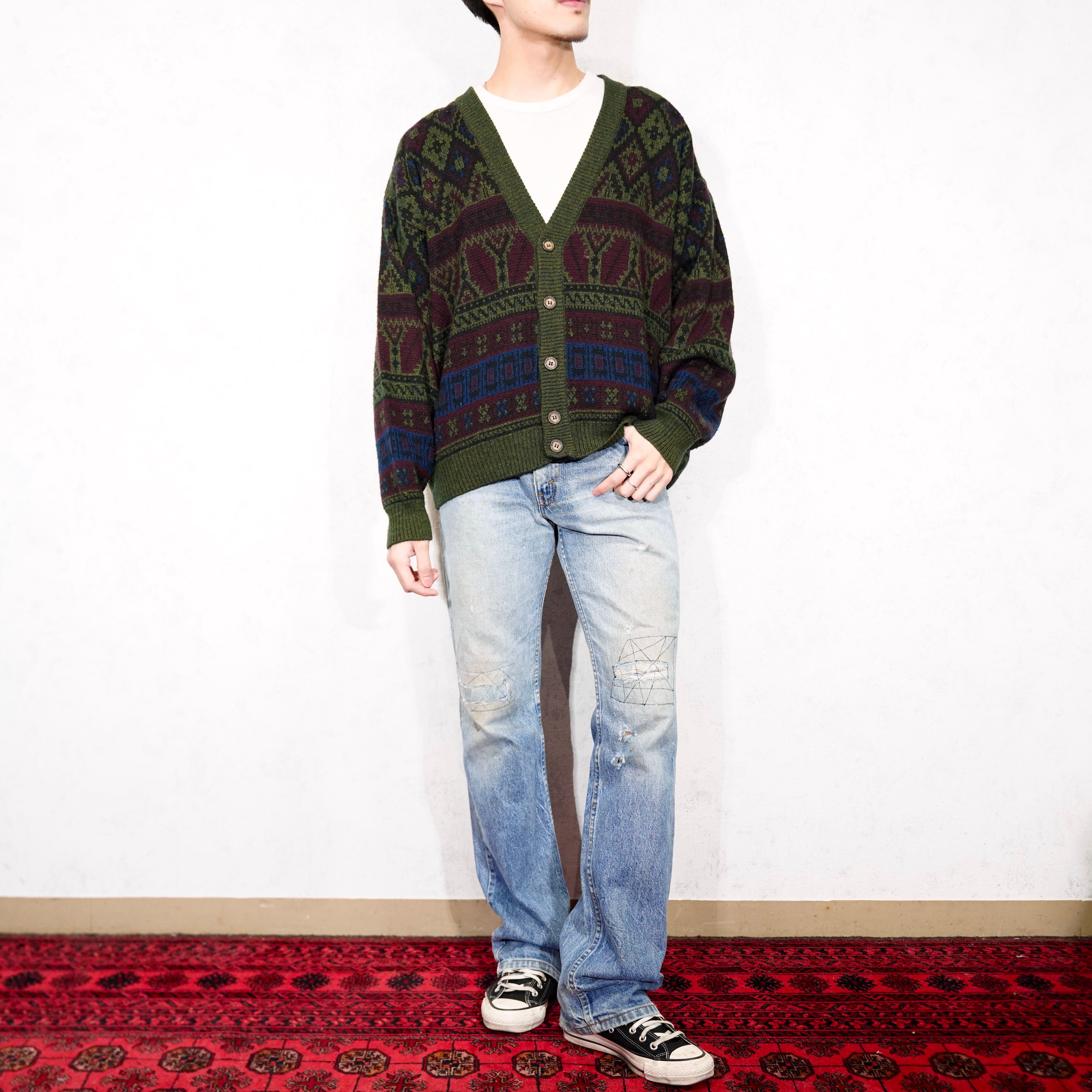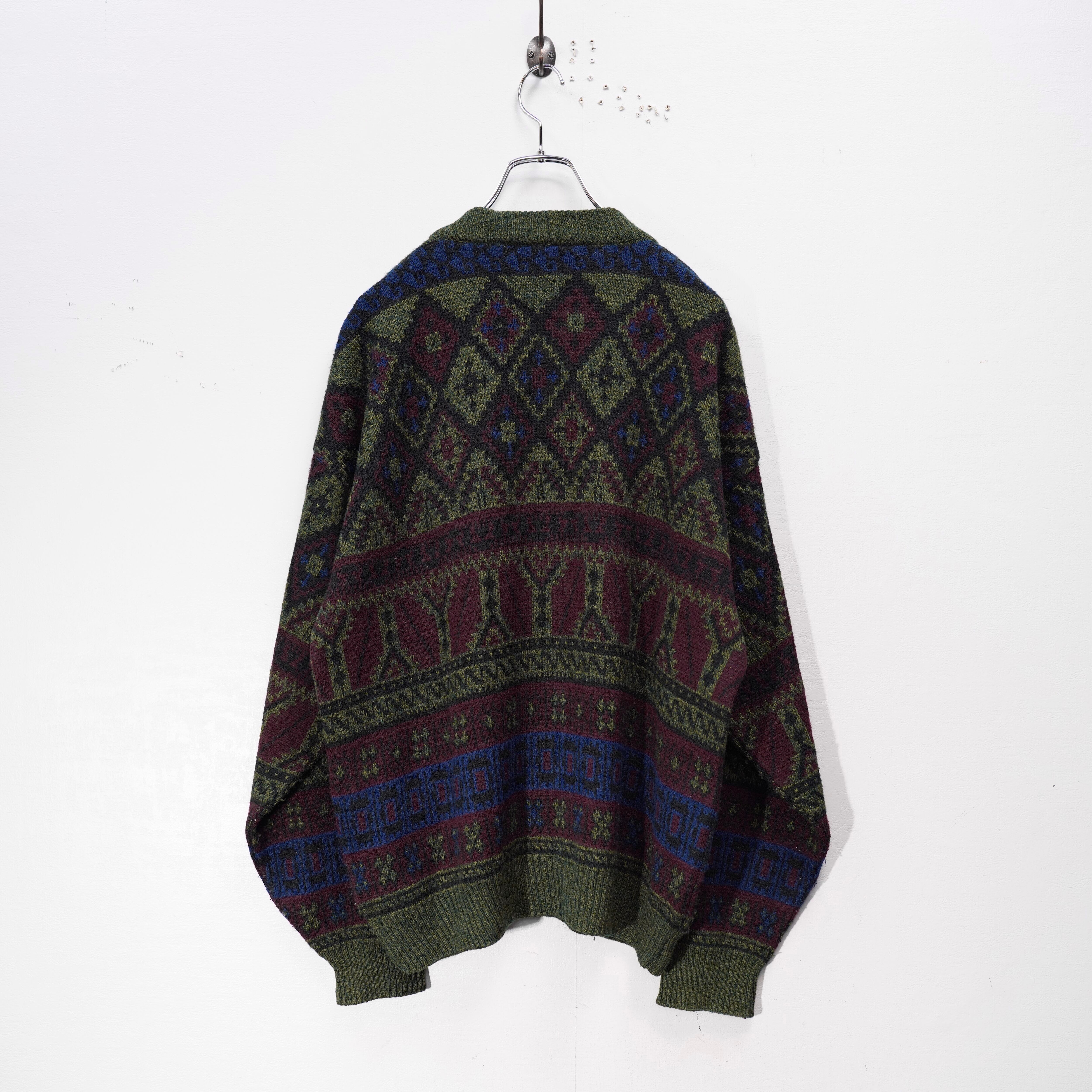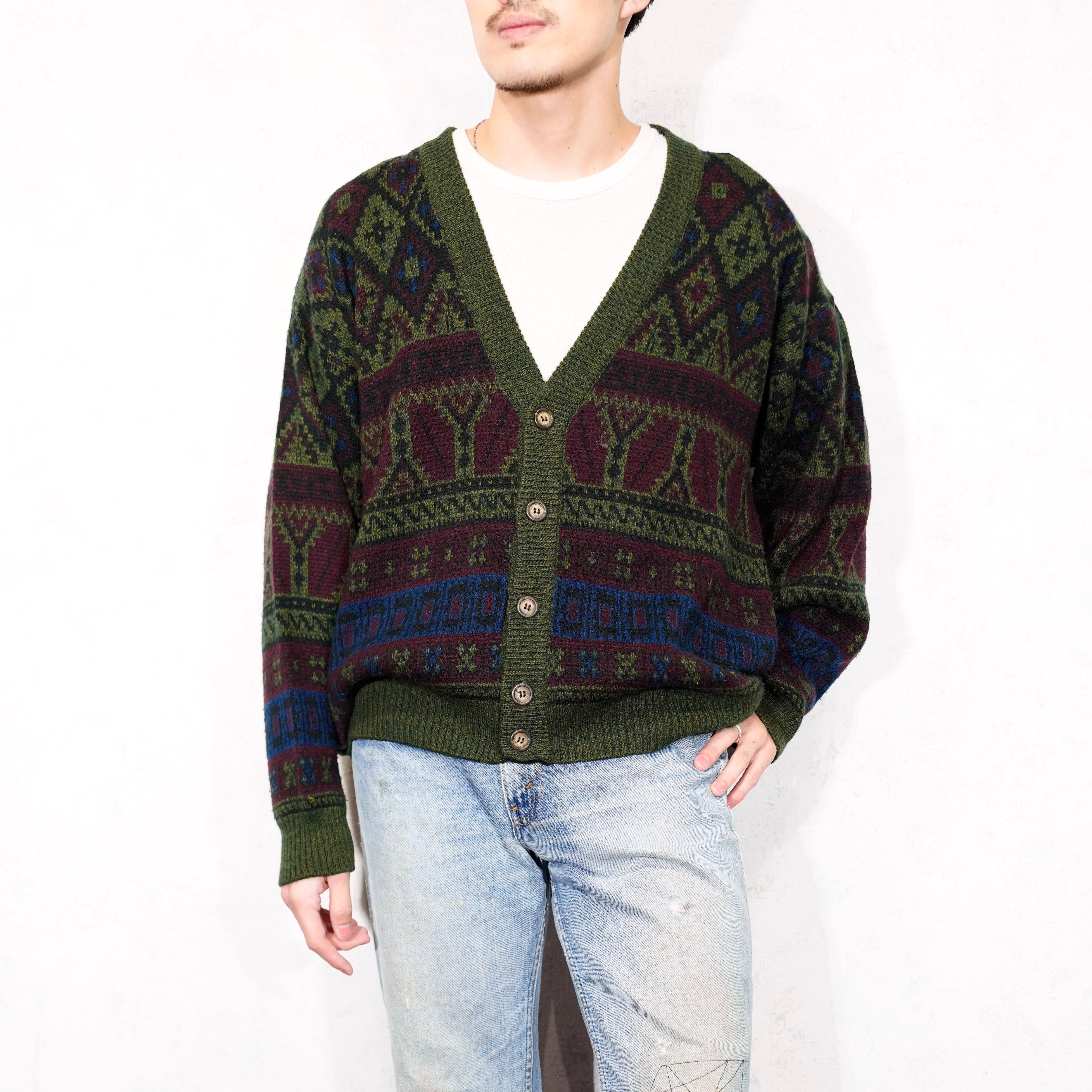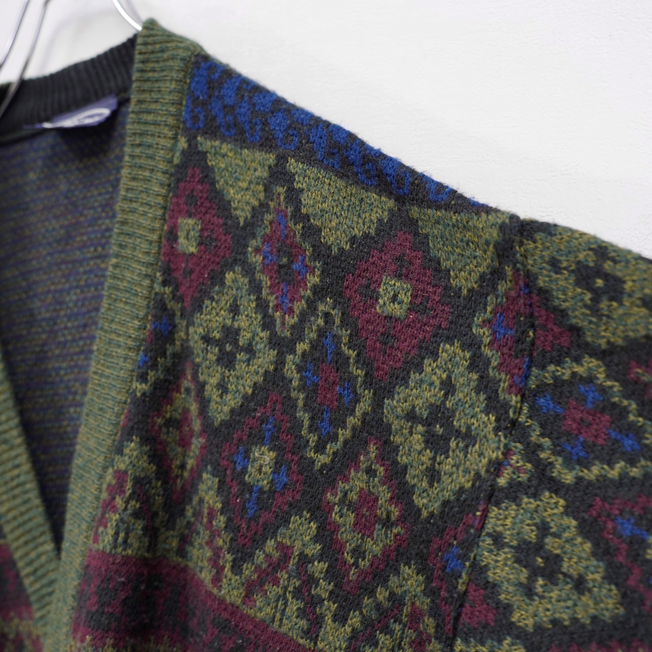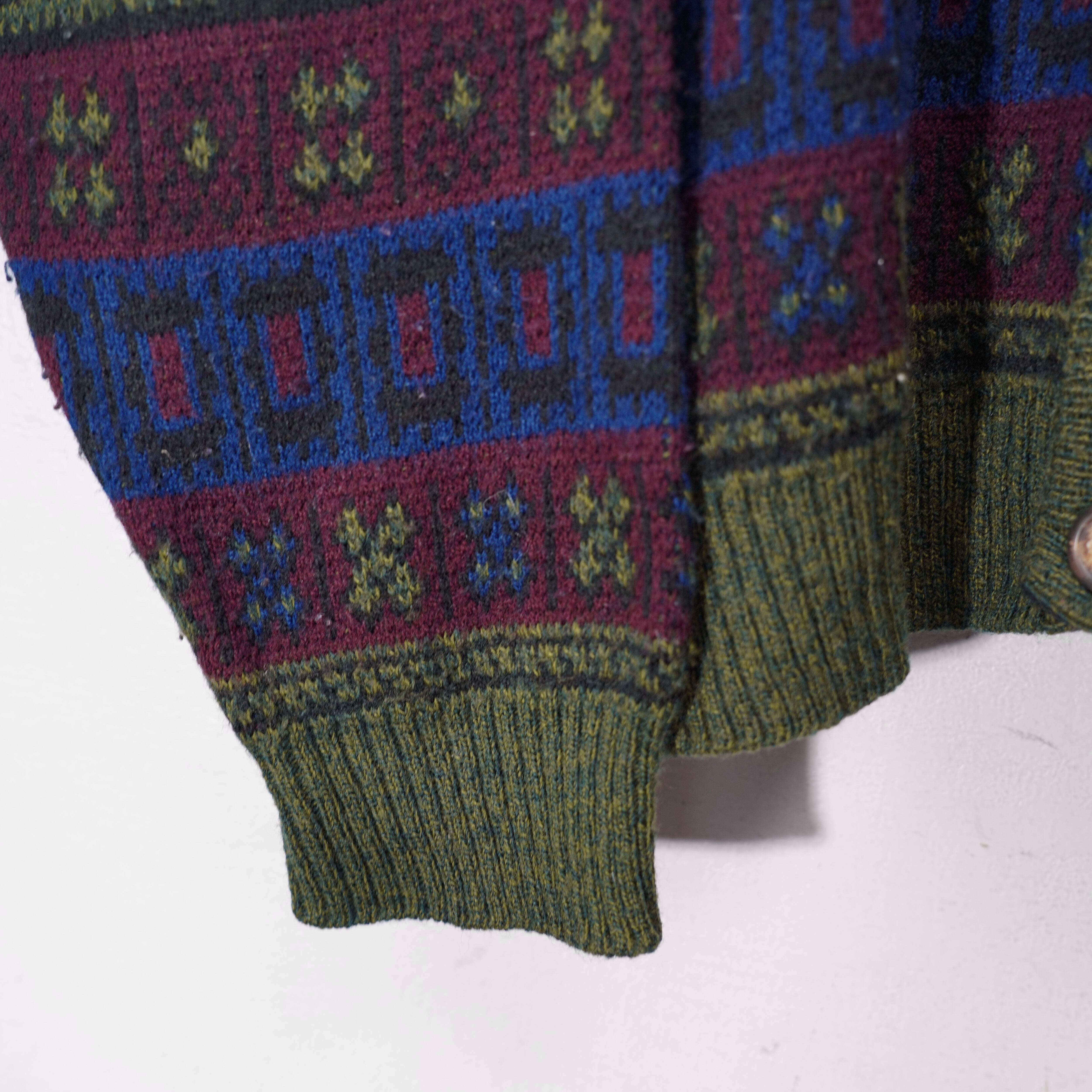 EU VINTAGE Vicino PATTERNED DESIGN KNIT CARDIGAN MADE IN ITALY/ヨーロッパ古着柄デザインニットカーディガン