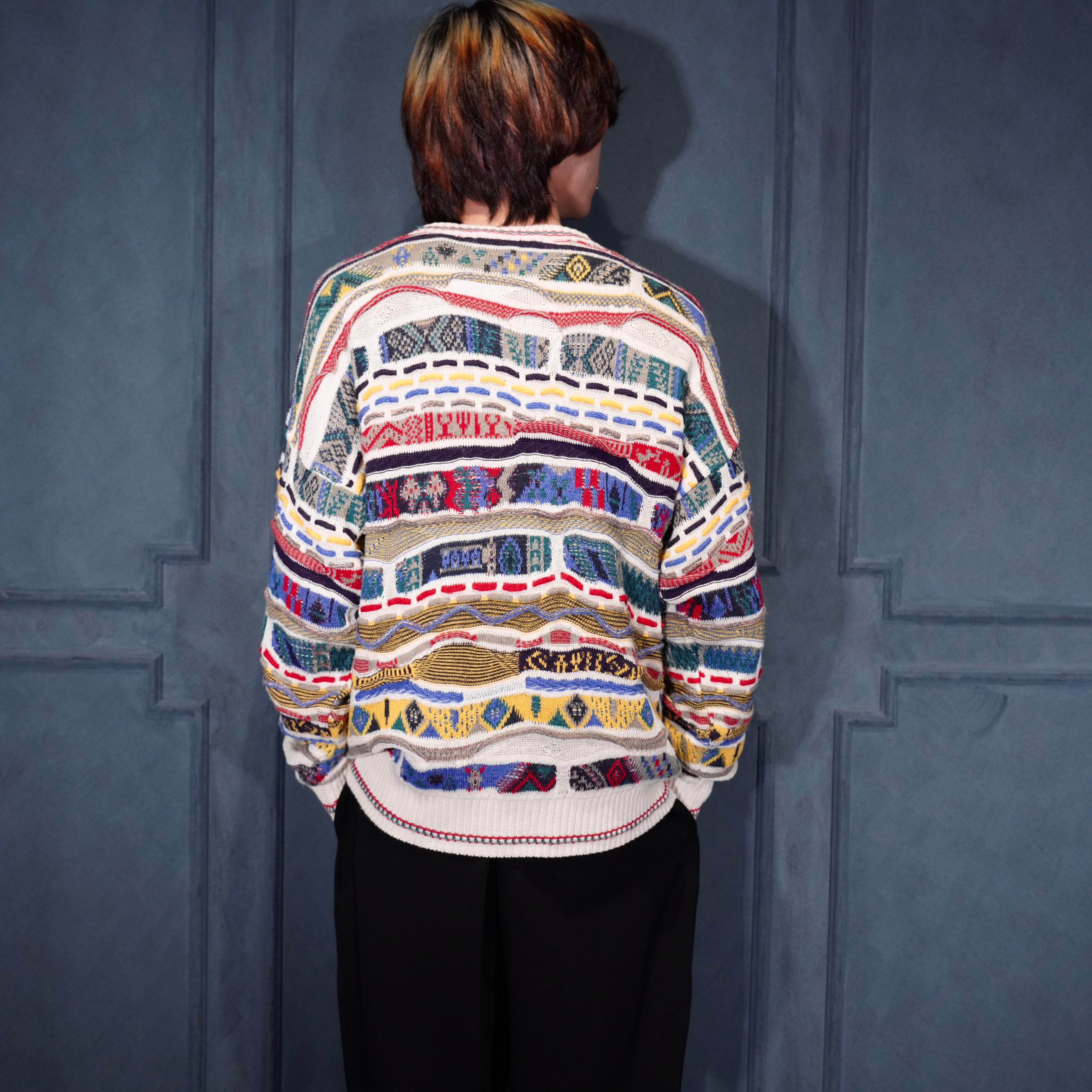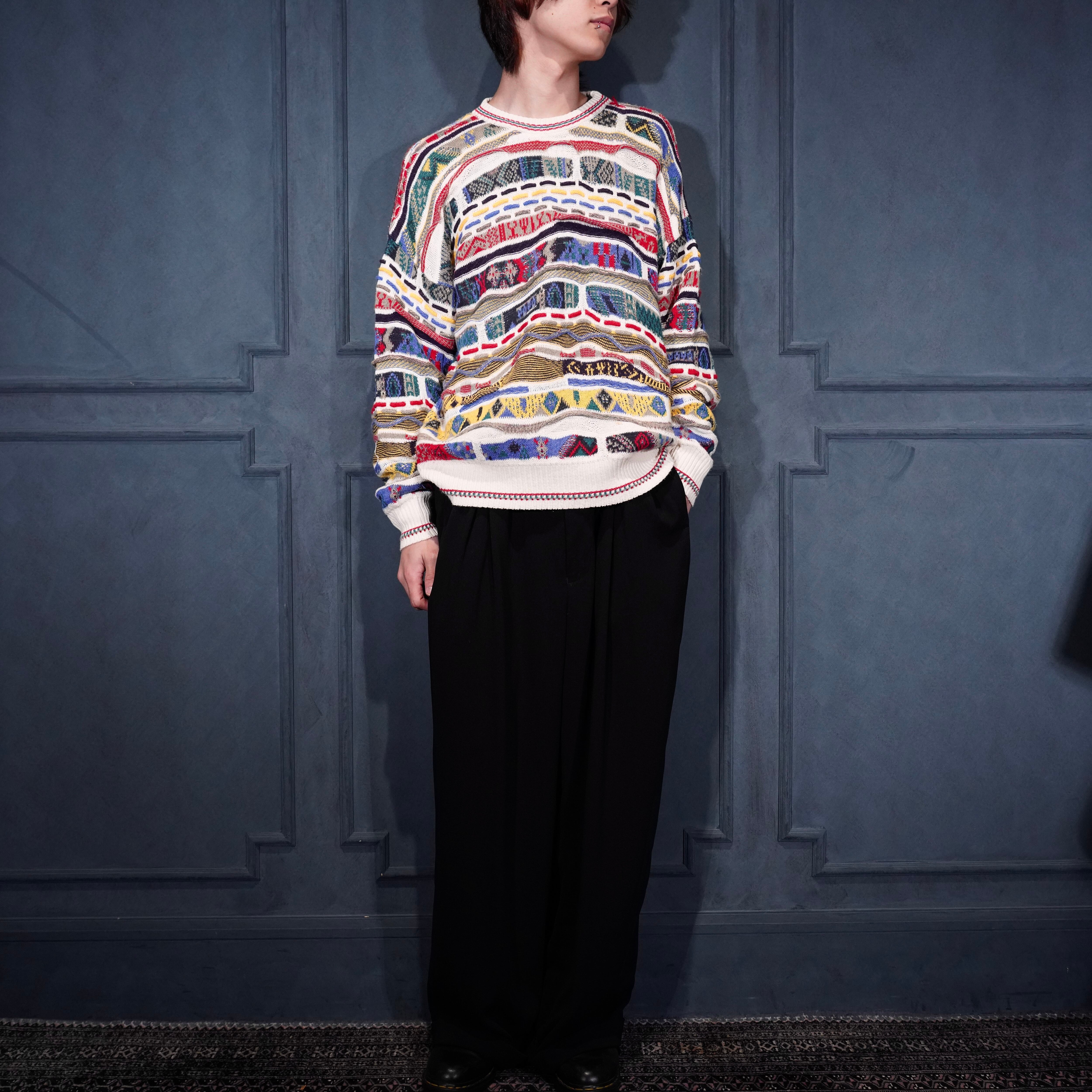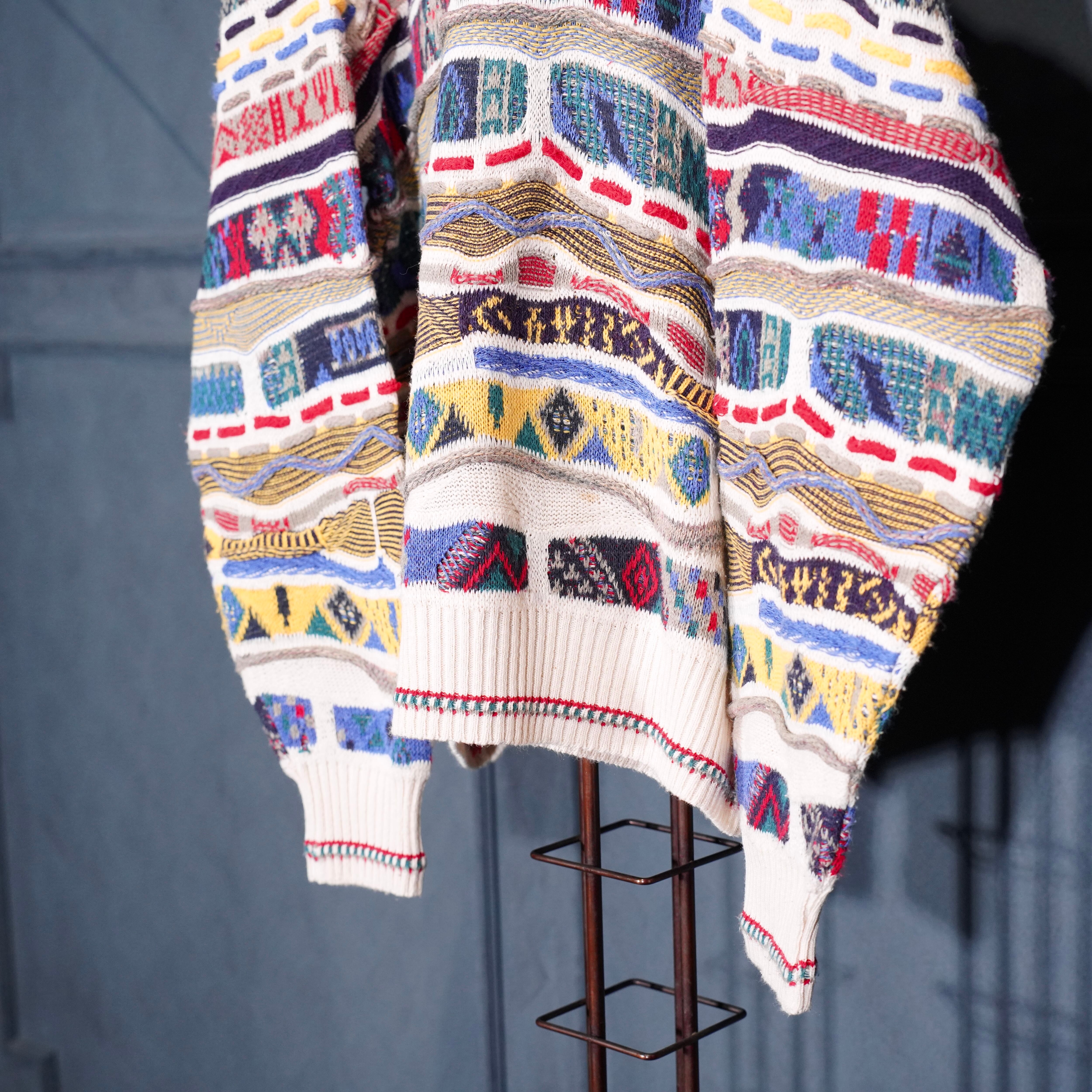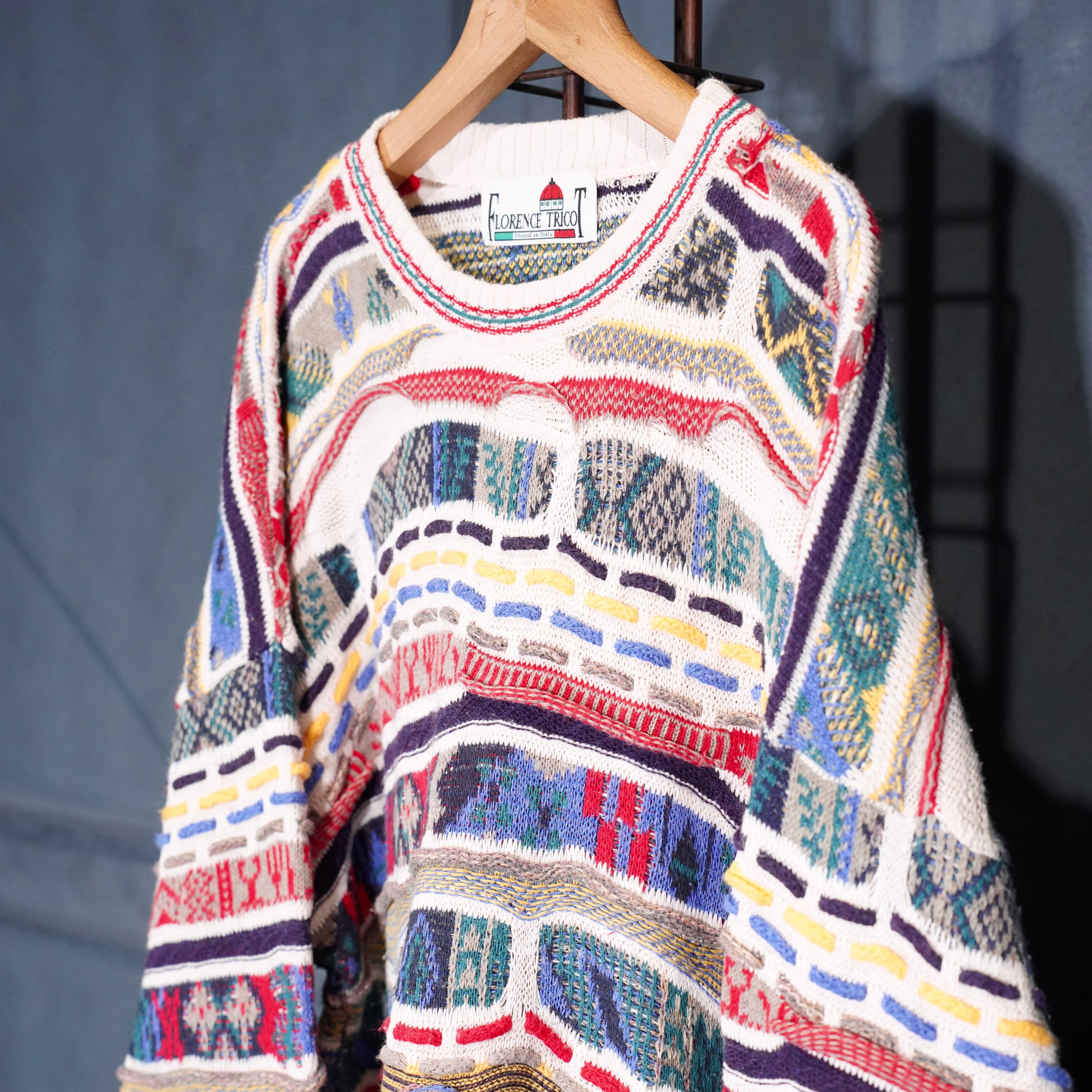 EU VINTAGE FLORENCE TRICOT MULTI PATTERNED DESIGN COTTON 3D KNIT/ヨーロッパ古着マルチパターンデザインコットン3Dニット