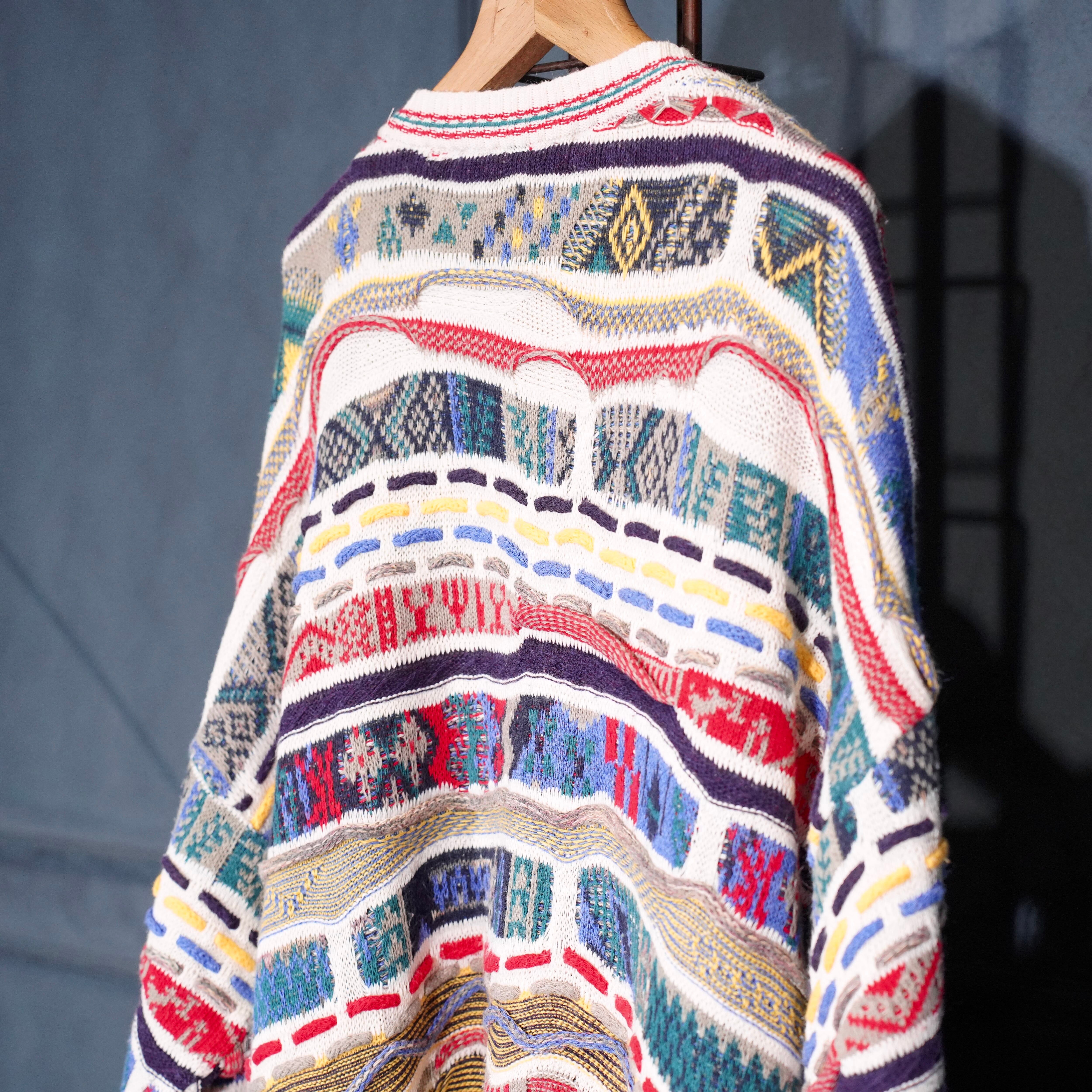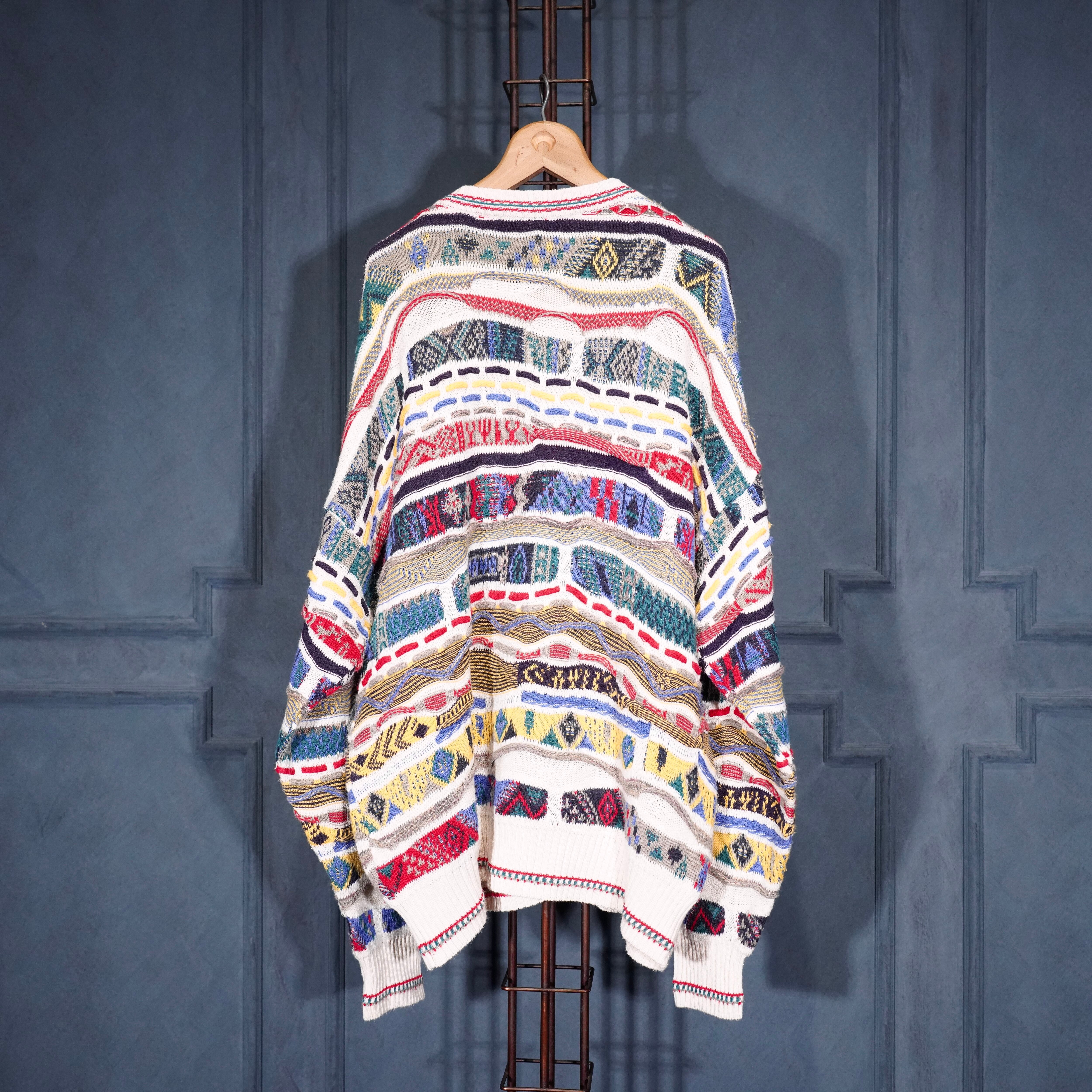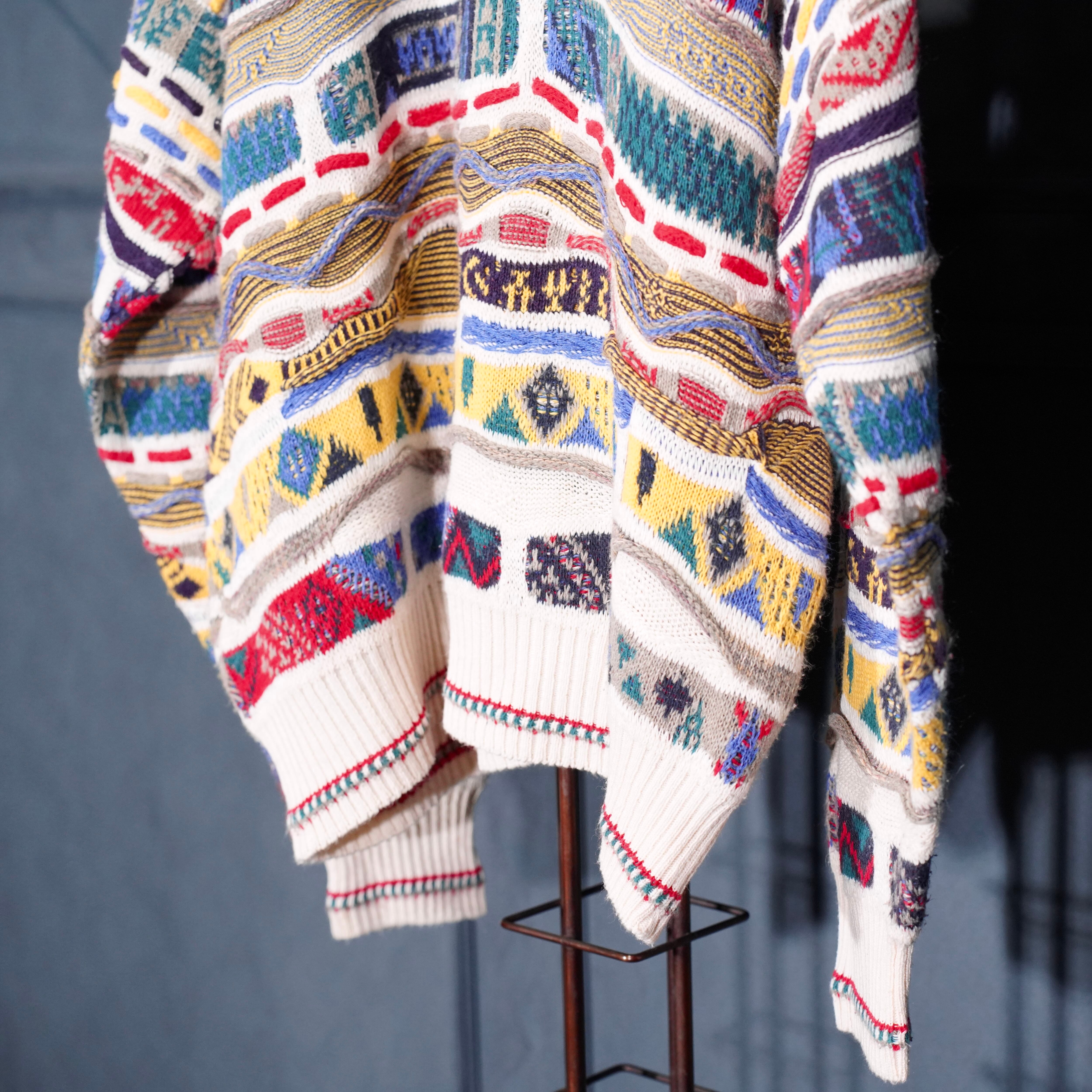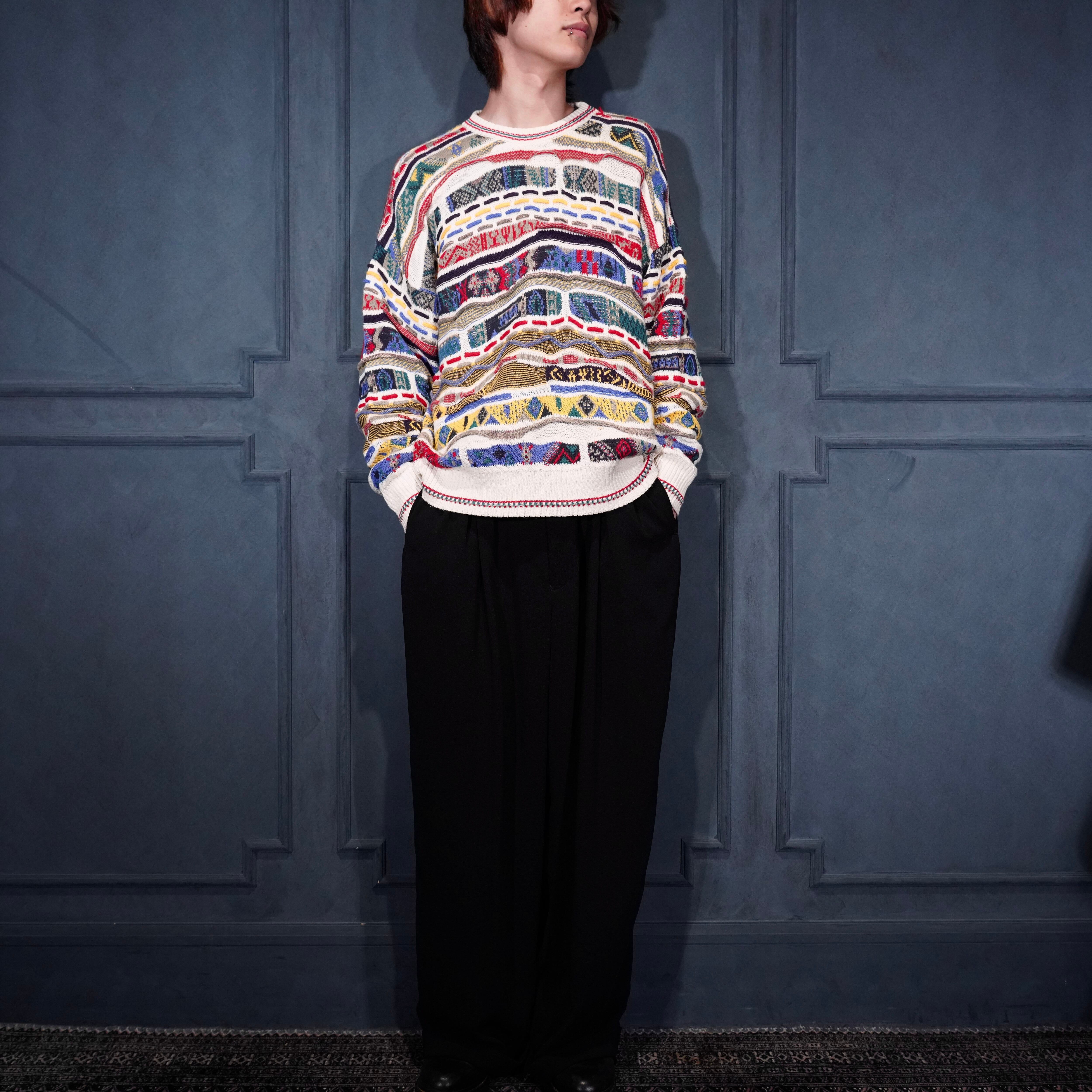 EU VINTAGE FLORENCE TRICOT MULTI PATTERNED DESIGN COTTON 3D KNIT/ヨーロッパ古着マルチパターンデザインコットン3Dニット