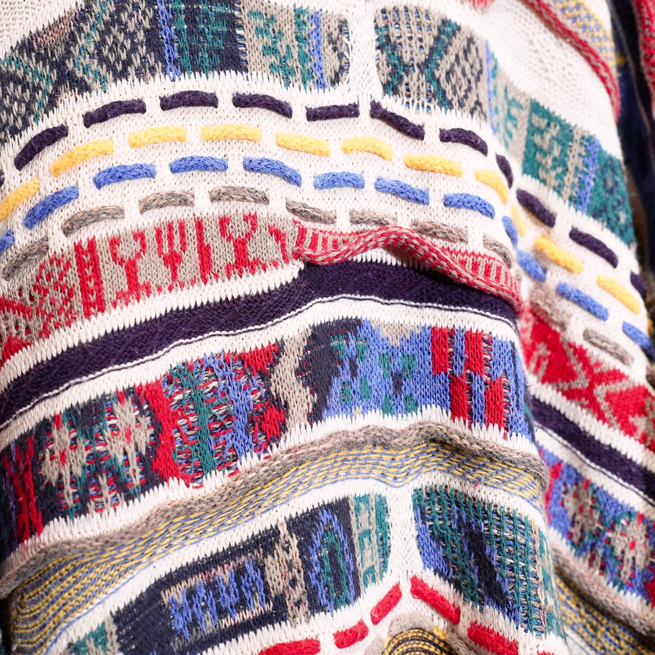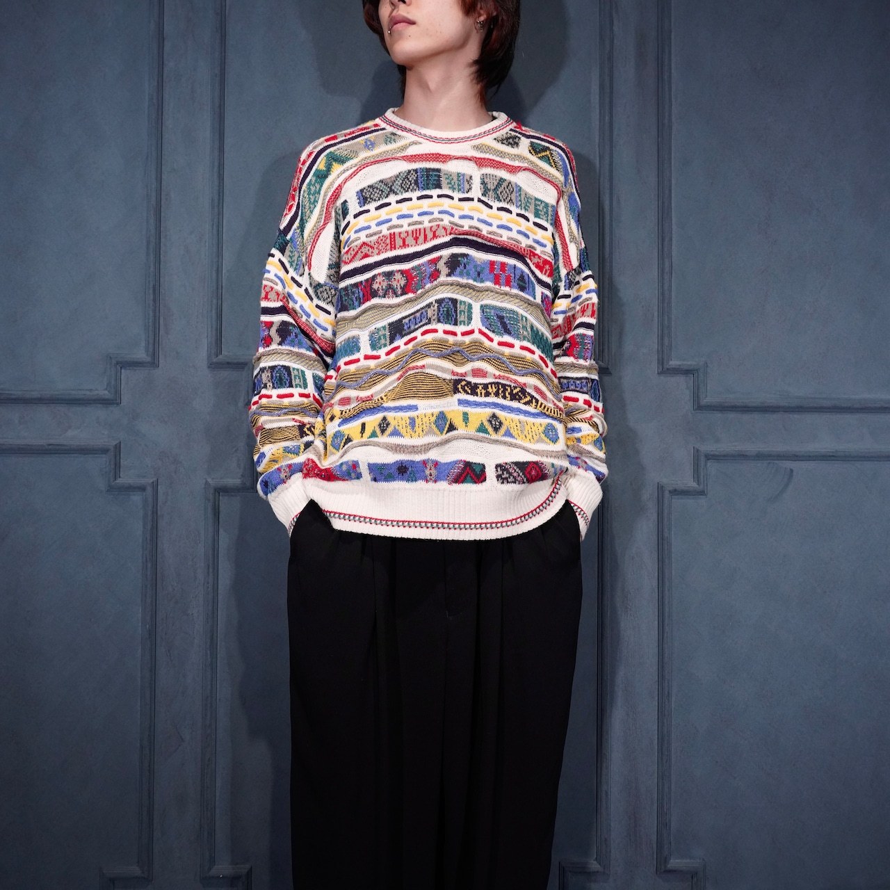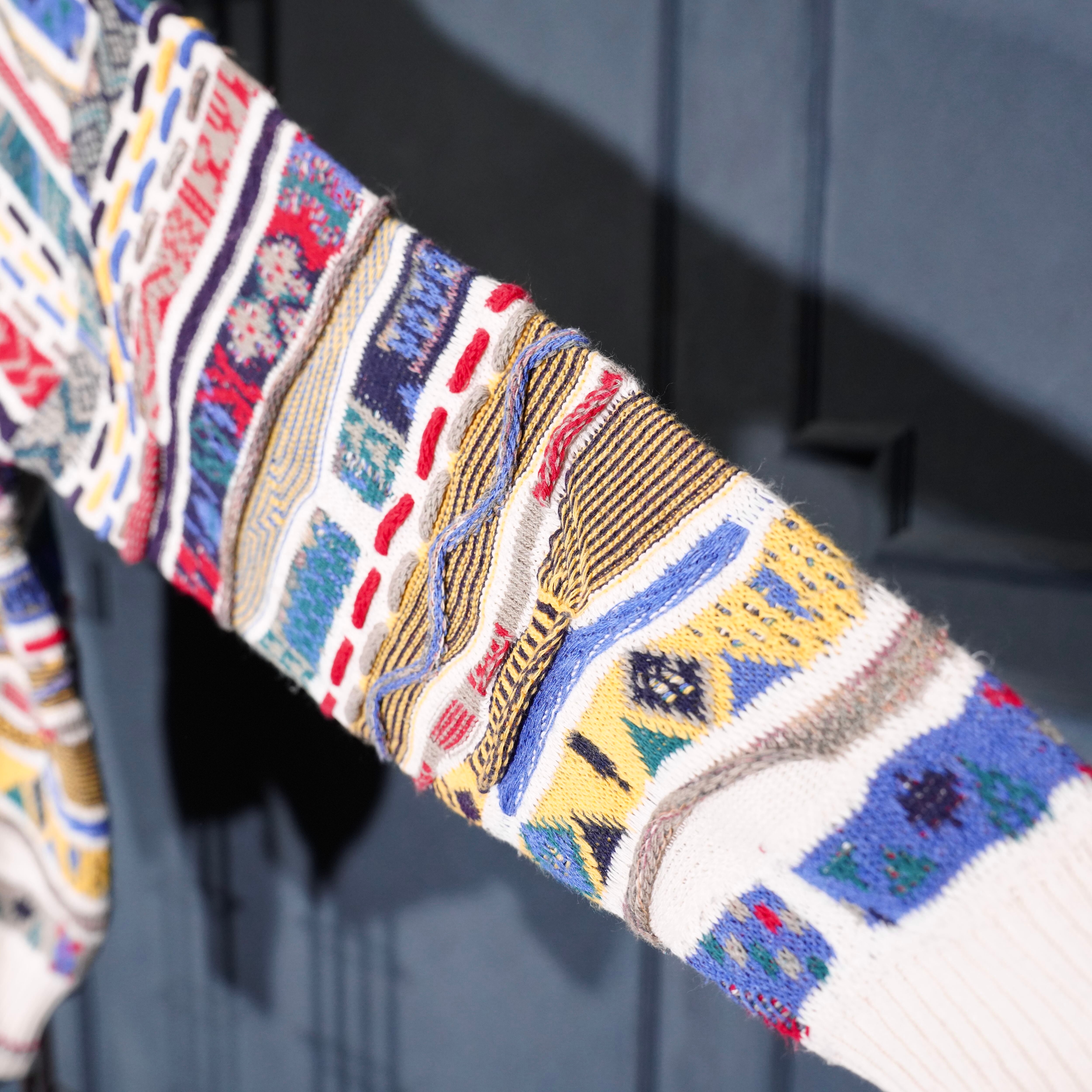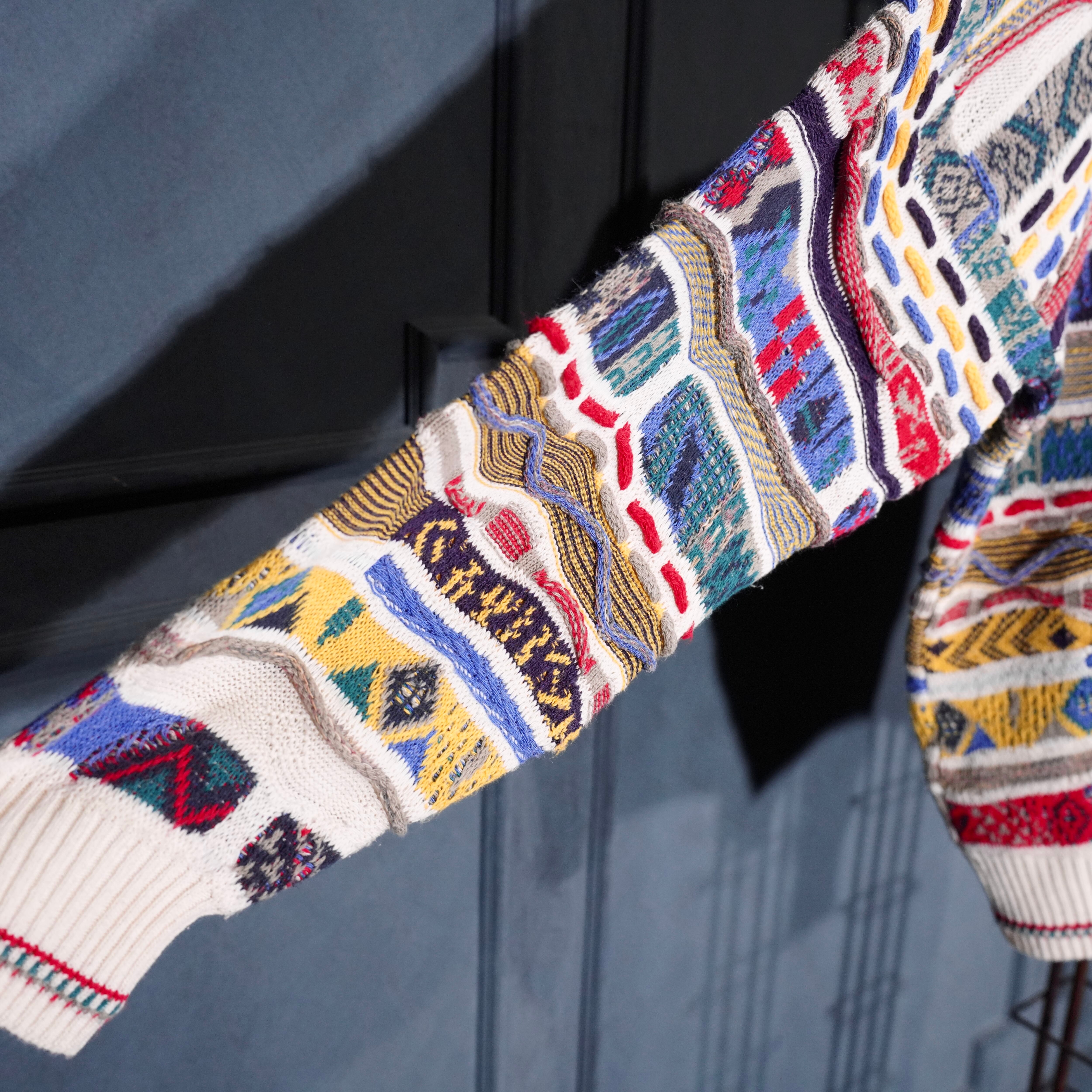 EU VINTAGE FLORENCE TRICOT MULTI PATTERNED DESIGN COTTON 3D KNIT/ヨーロッパ古着マルチパターンデザインコットン3Dニット
