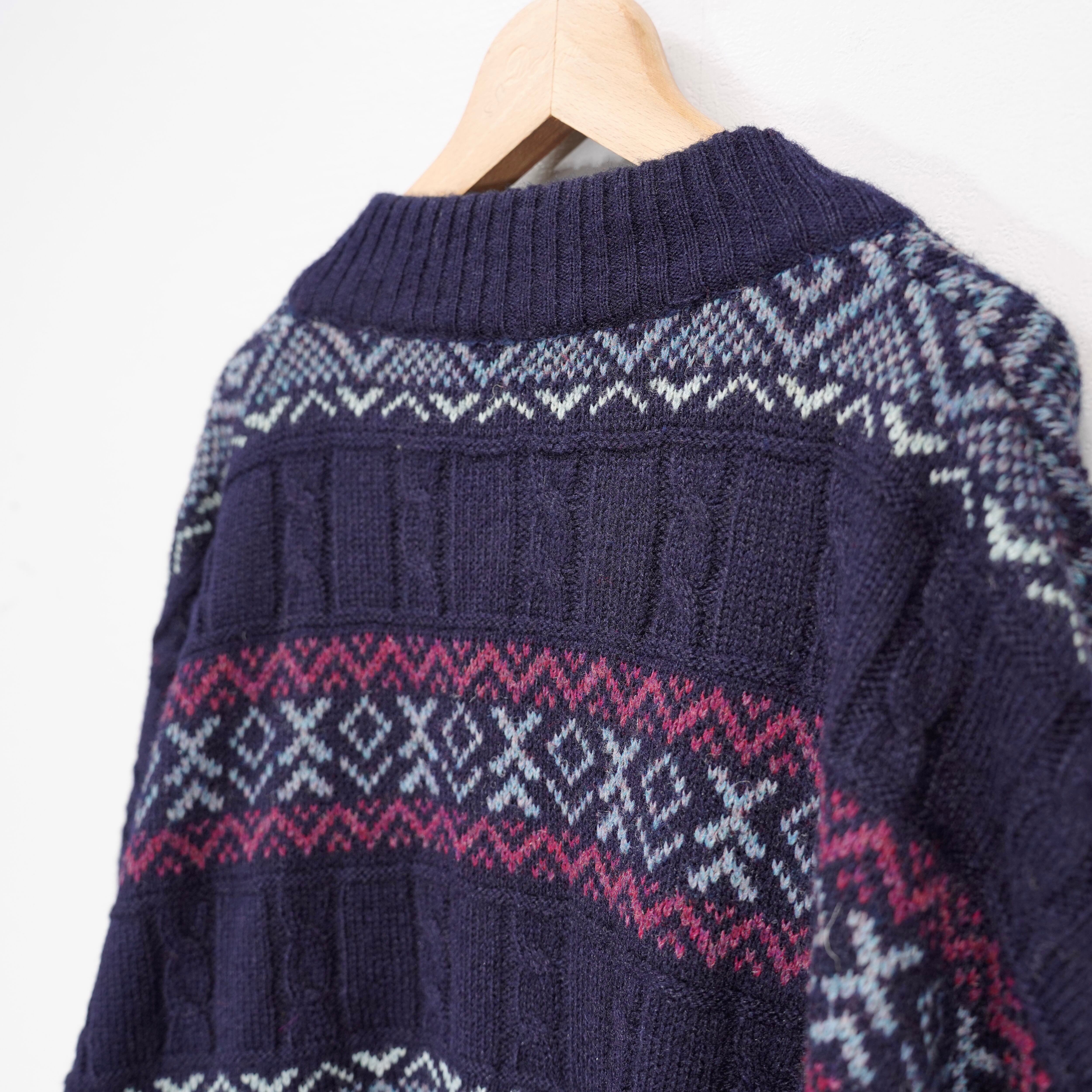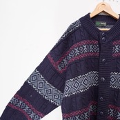 EU VINTAGE tris line PATTERNED DESIGN KNIT BLOUSON/ヨーロッパ古着柄デザインニットブルゾン(カーディガン)