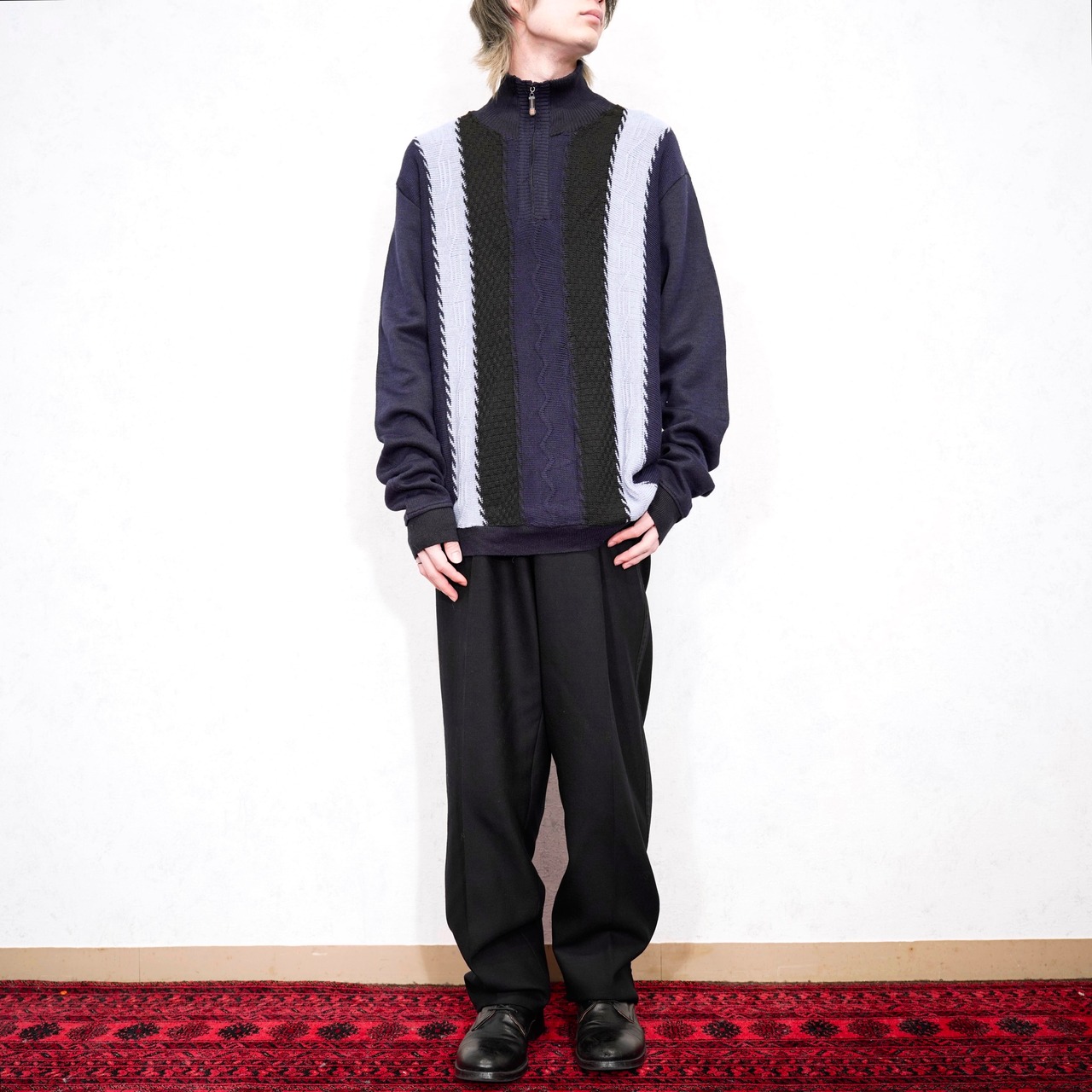 EU VINTAGE PATTERNED DESIGN HALF ZIP KNIT/ヨーロッパ古着柄デザインハーフジップニット