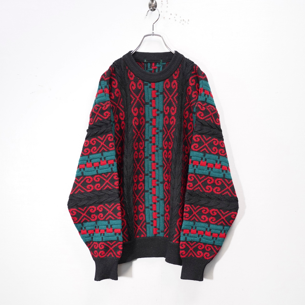 USA VINTAGE HEAVY WOOL DESIGN 3D KNIT/アメリカ古着ヘビーウールデザイン3Dニット