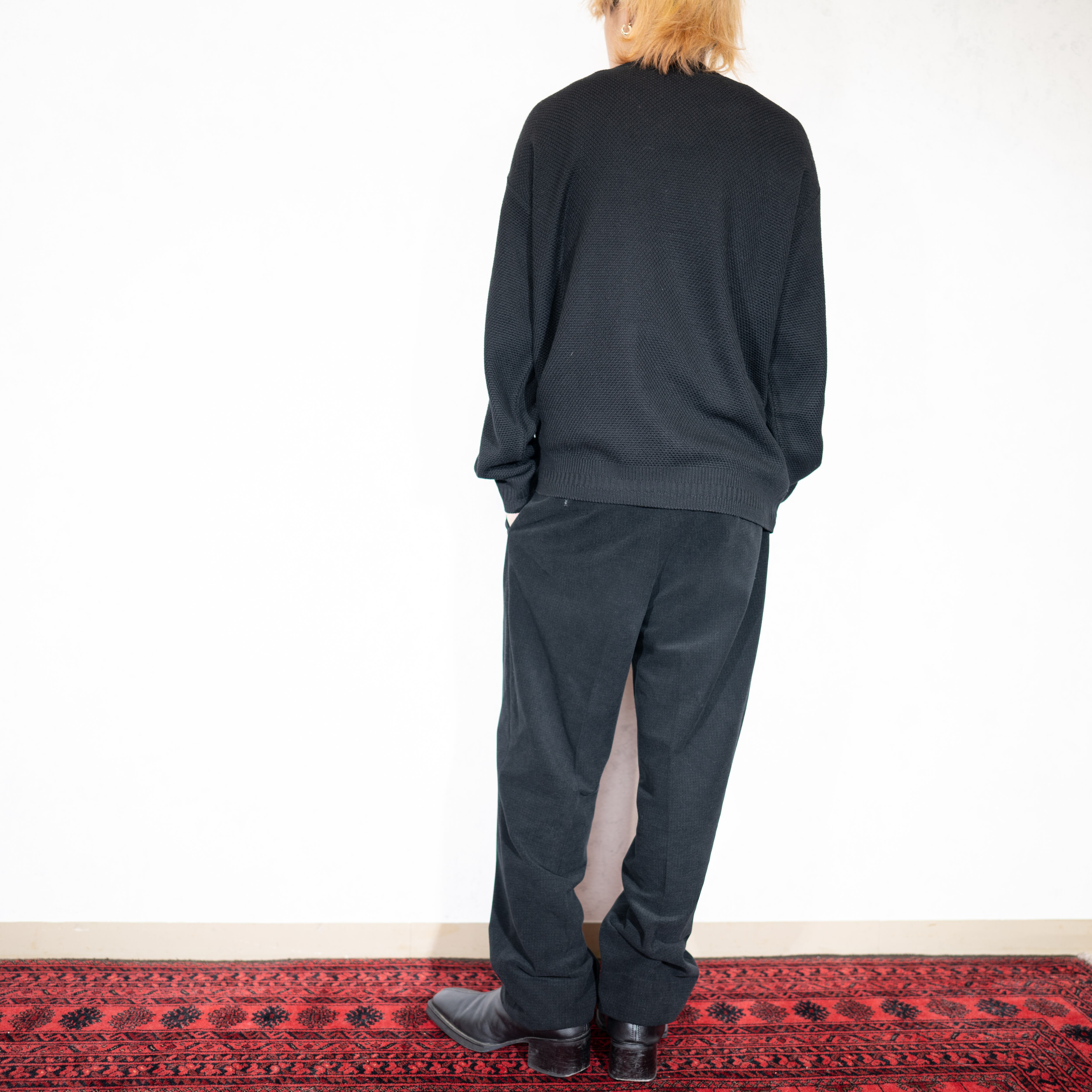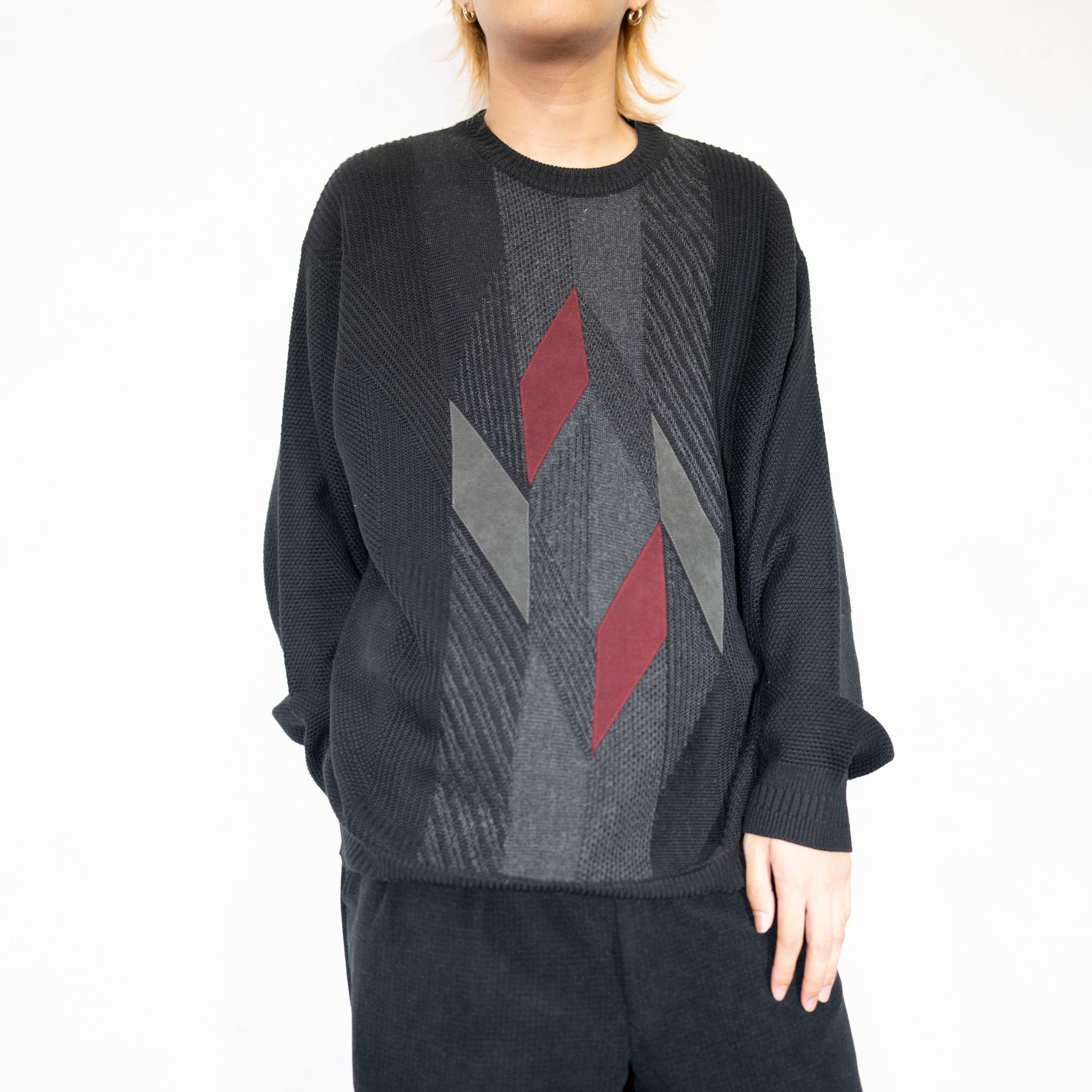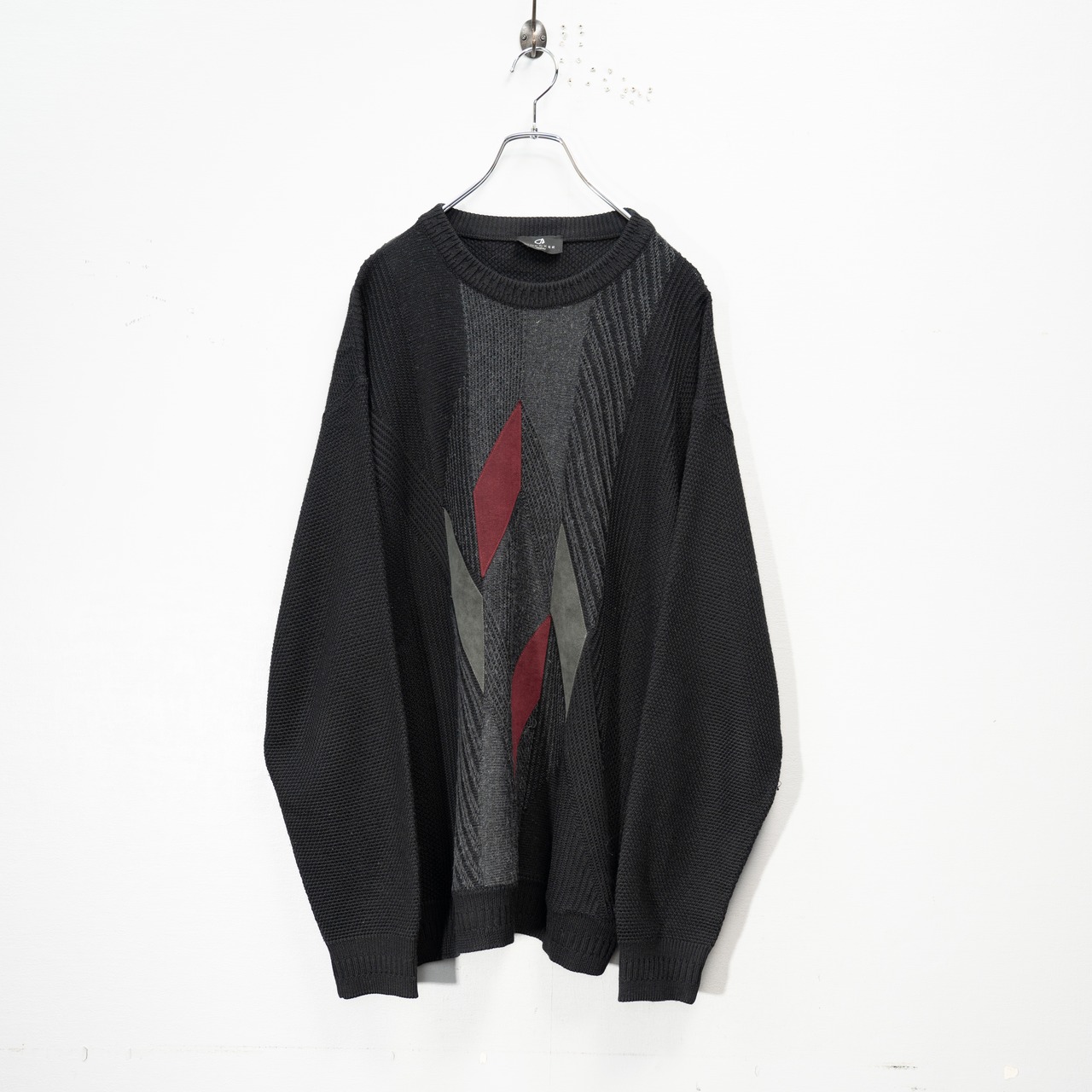EU VINTAGE BOECKER MANI FAKE SUEDE SWITCHED DESIGN OVER KNIT MADE IN ITALY/ヨーロッパ古着フェイクスウェード切替デザインオーバーニット