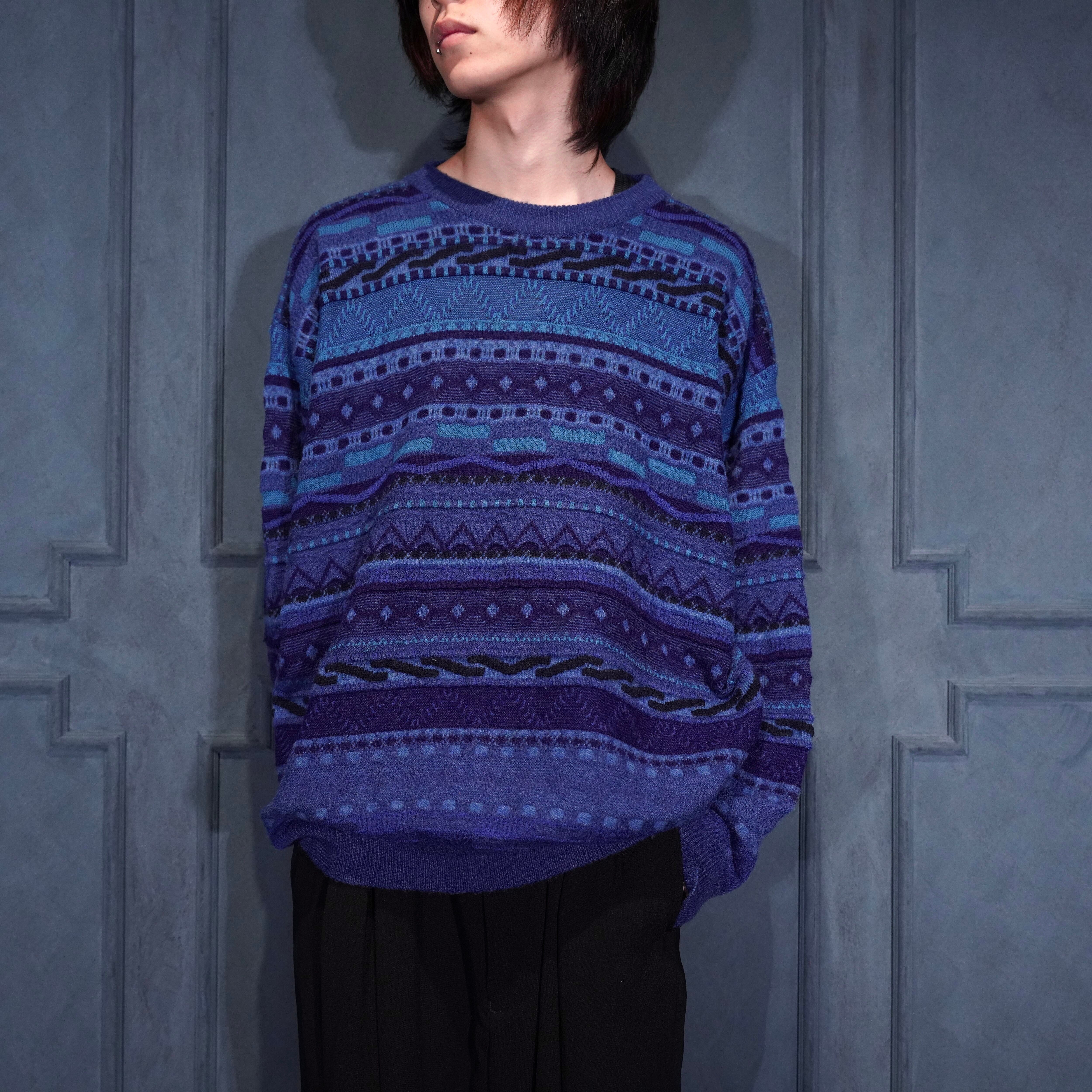USA VINTAGE MULTI PATTERNED DESIGN 3D KNIT/アメリカ古着マルチパターンデザイン3Dニット