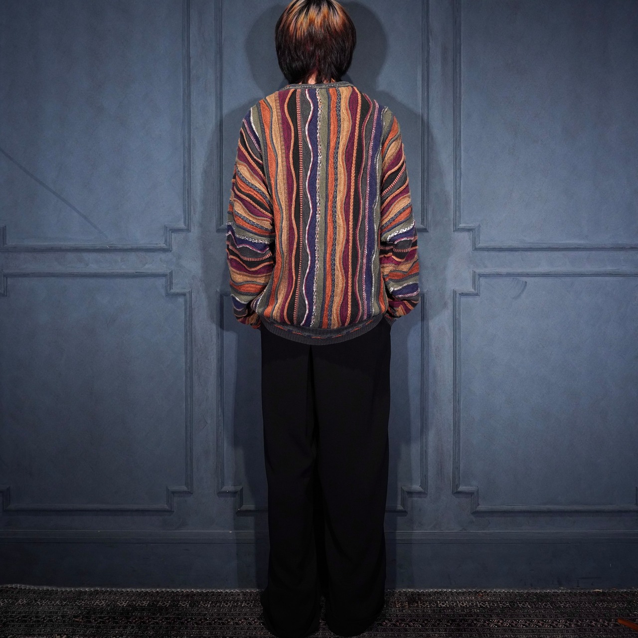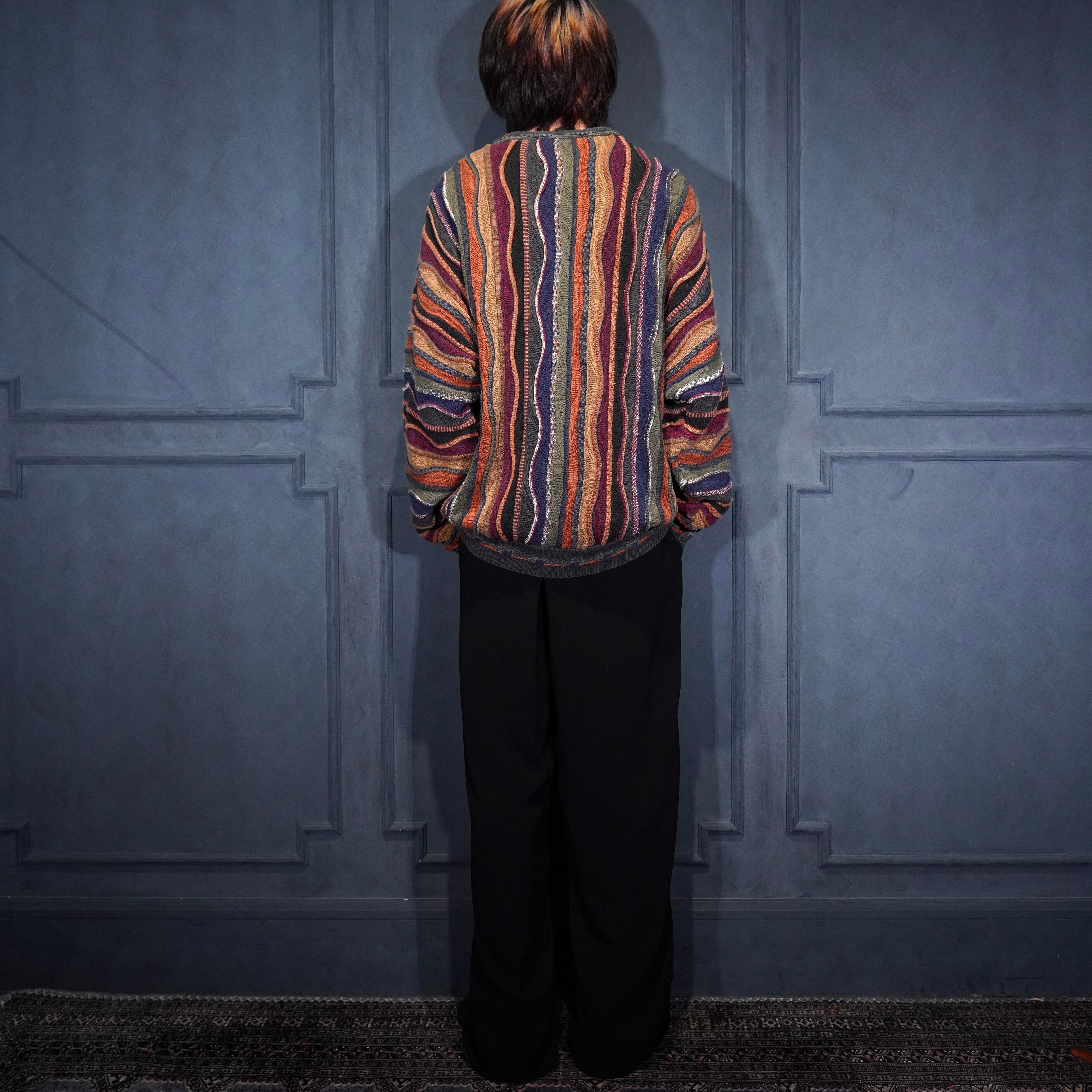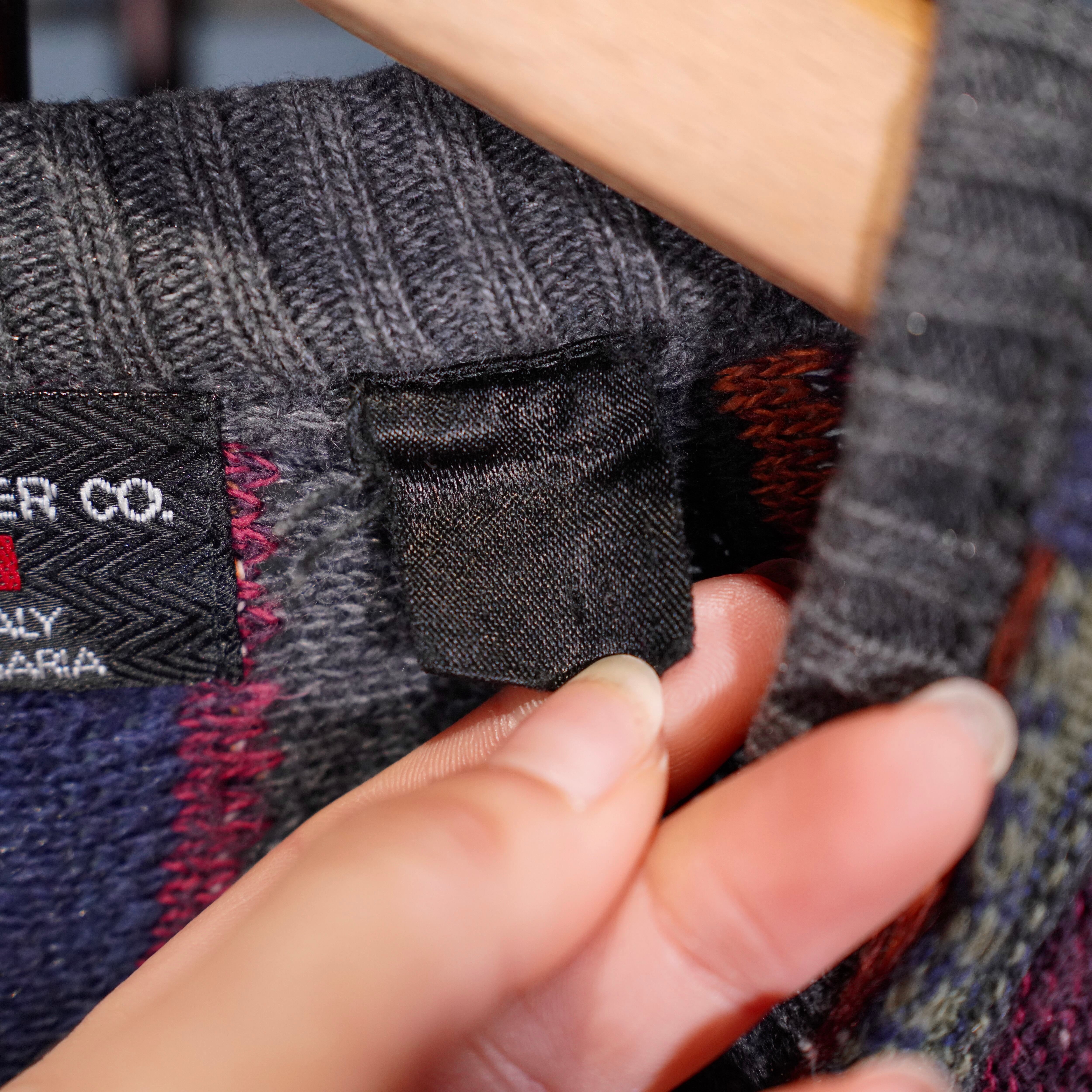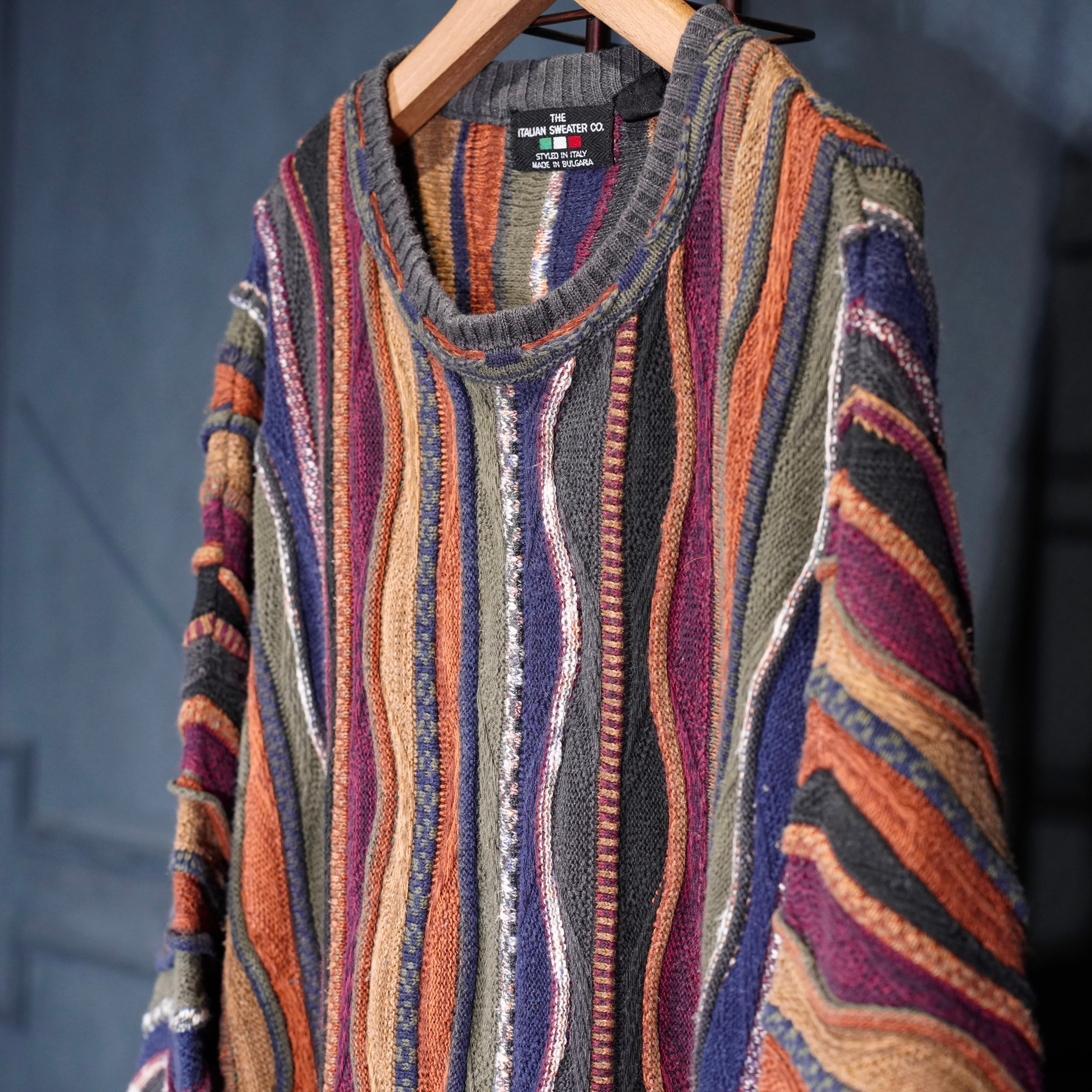 EU VINTAGE THE ITALIAN SWEATER CO. MULTI PATTERNED DESIGN 3D KNIT MADE IN BULGARIA/ヨーロッパ古着マルチパターンデザイン3Dニット