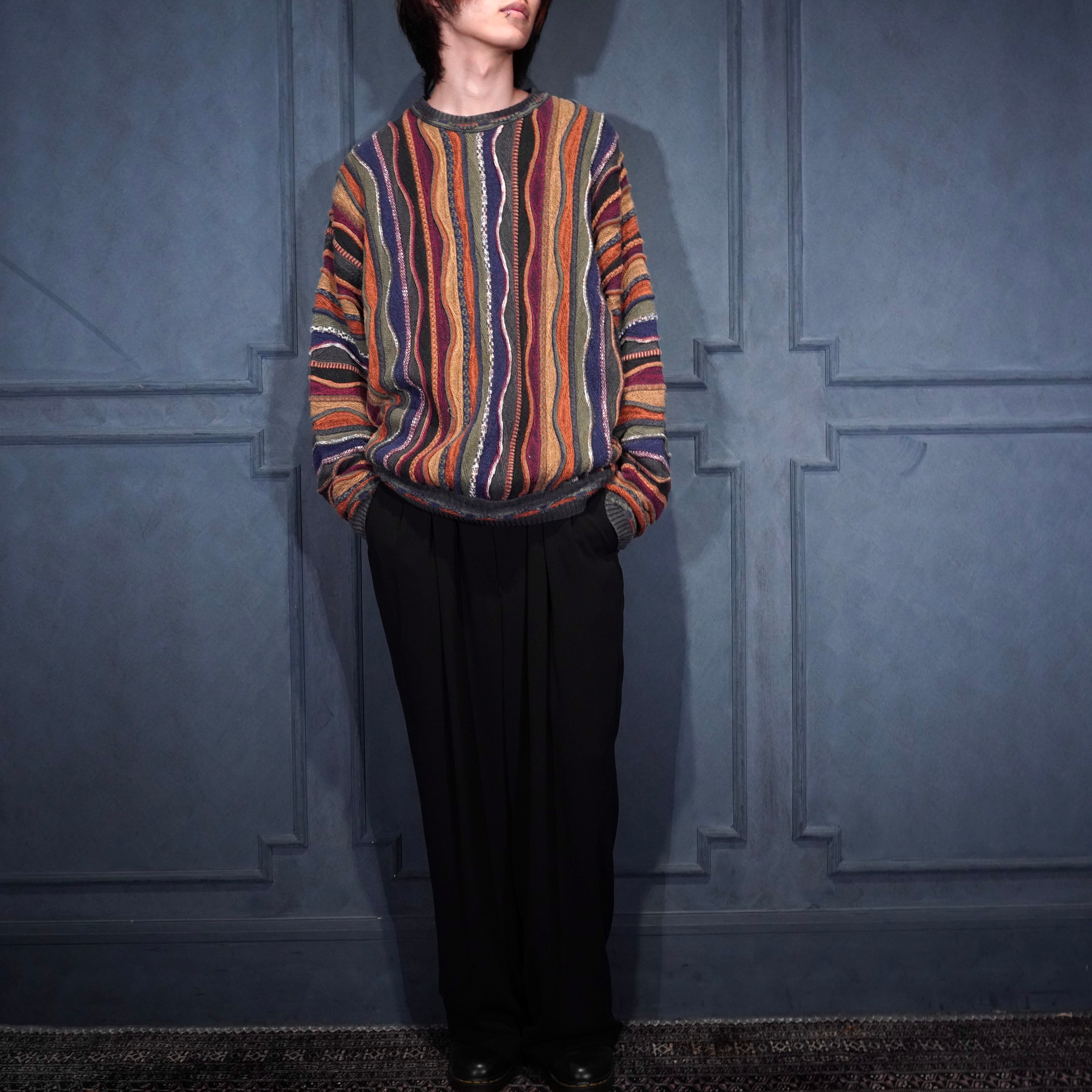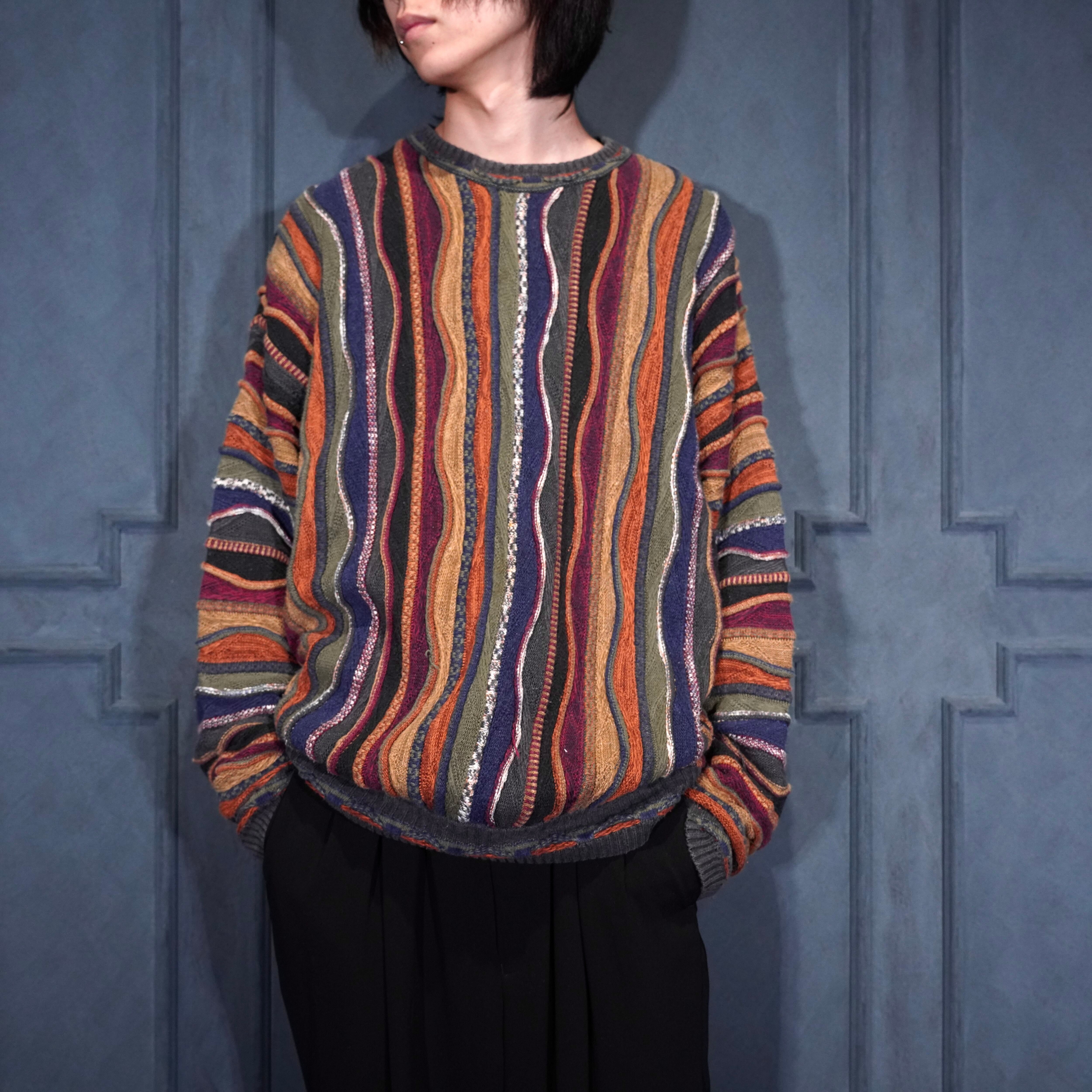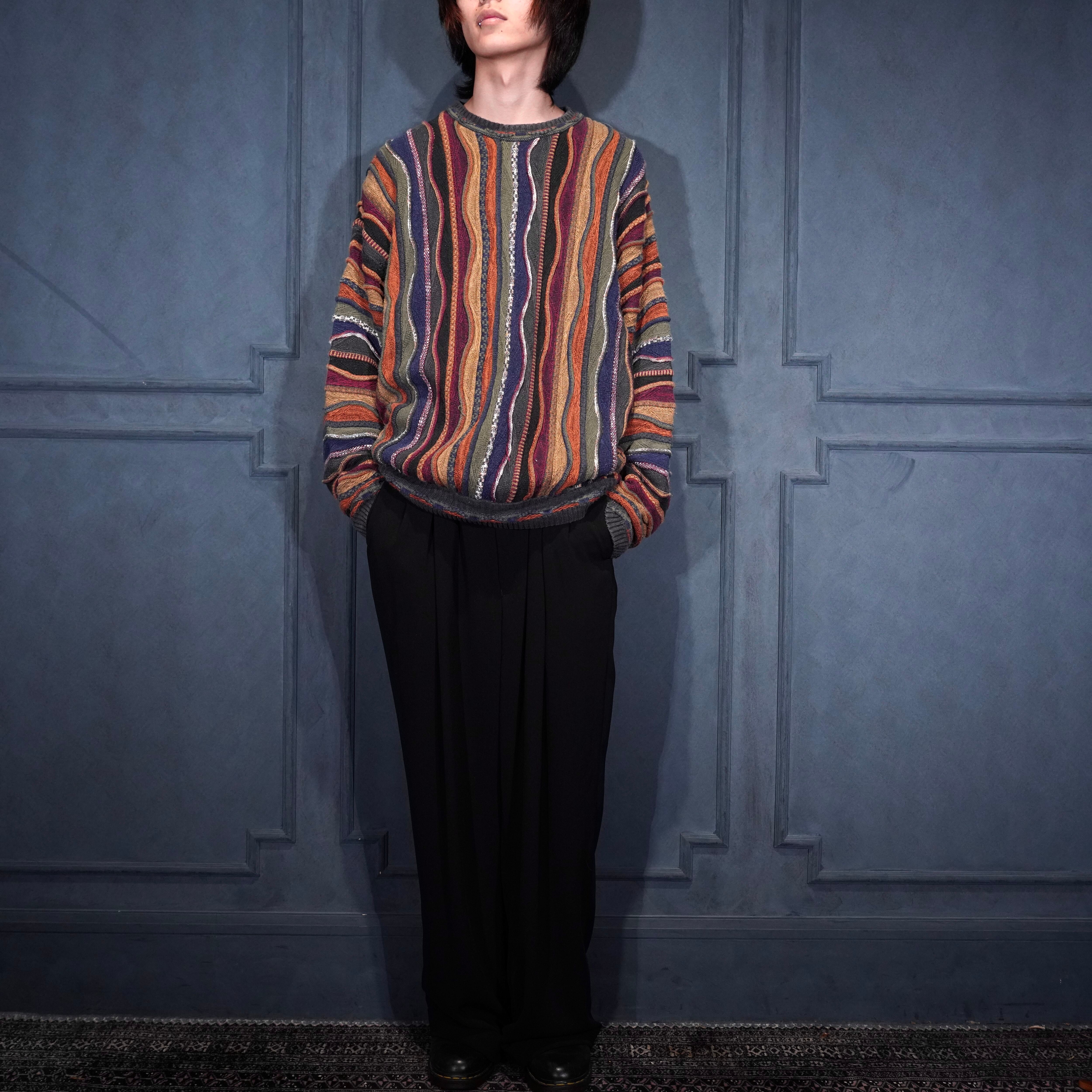 EU VINTAGE THE ITALIAN SWEATER CO. MULTI PATTERNED DESIGN 3D KNIT MADE IN BULGARIA/ヨーロッパ古着マルチパターンデザイン3Dニット