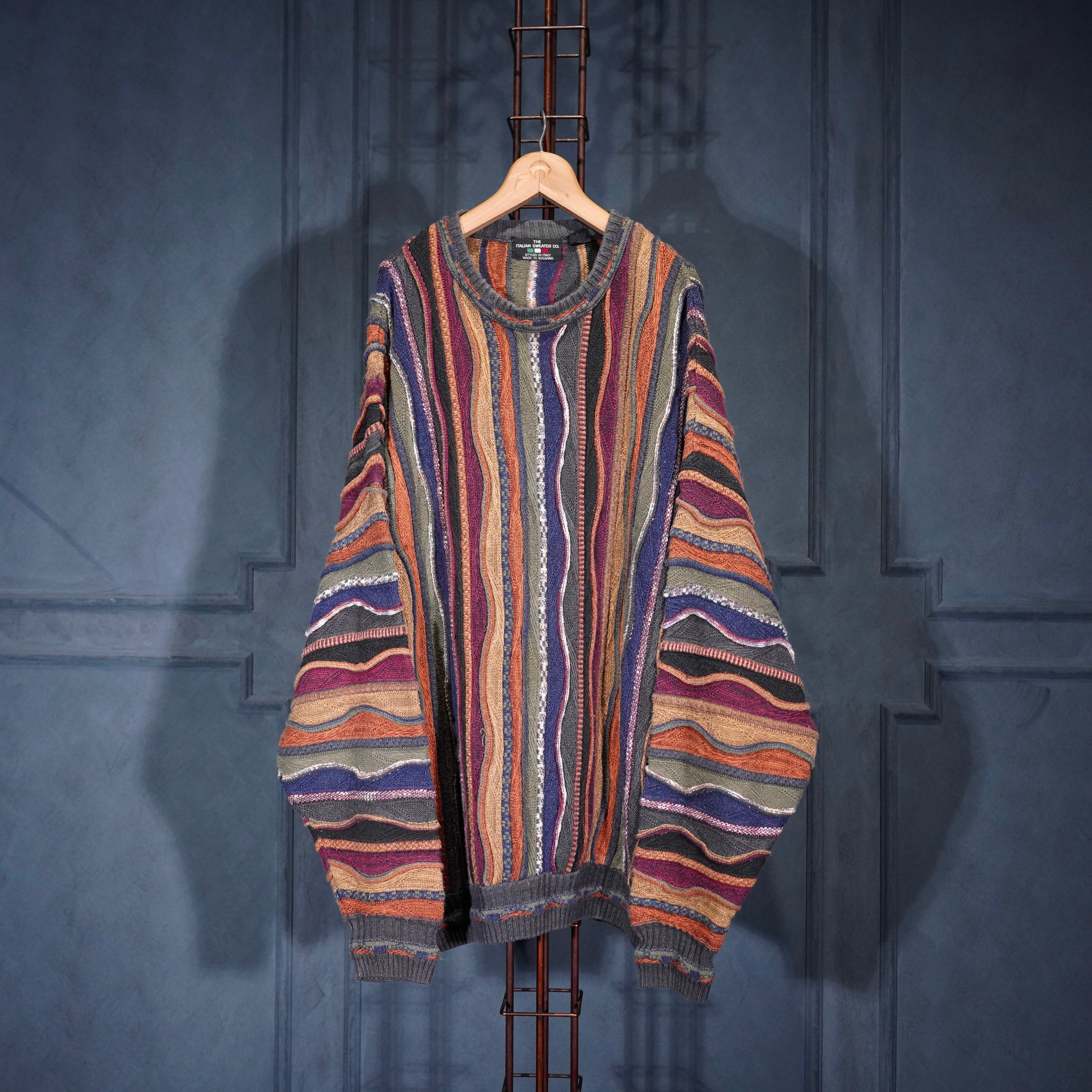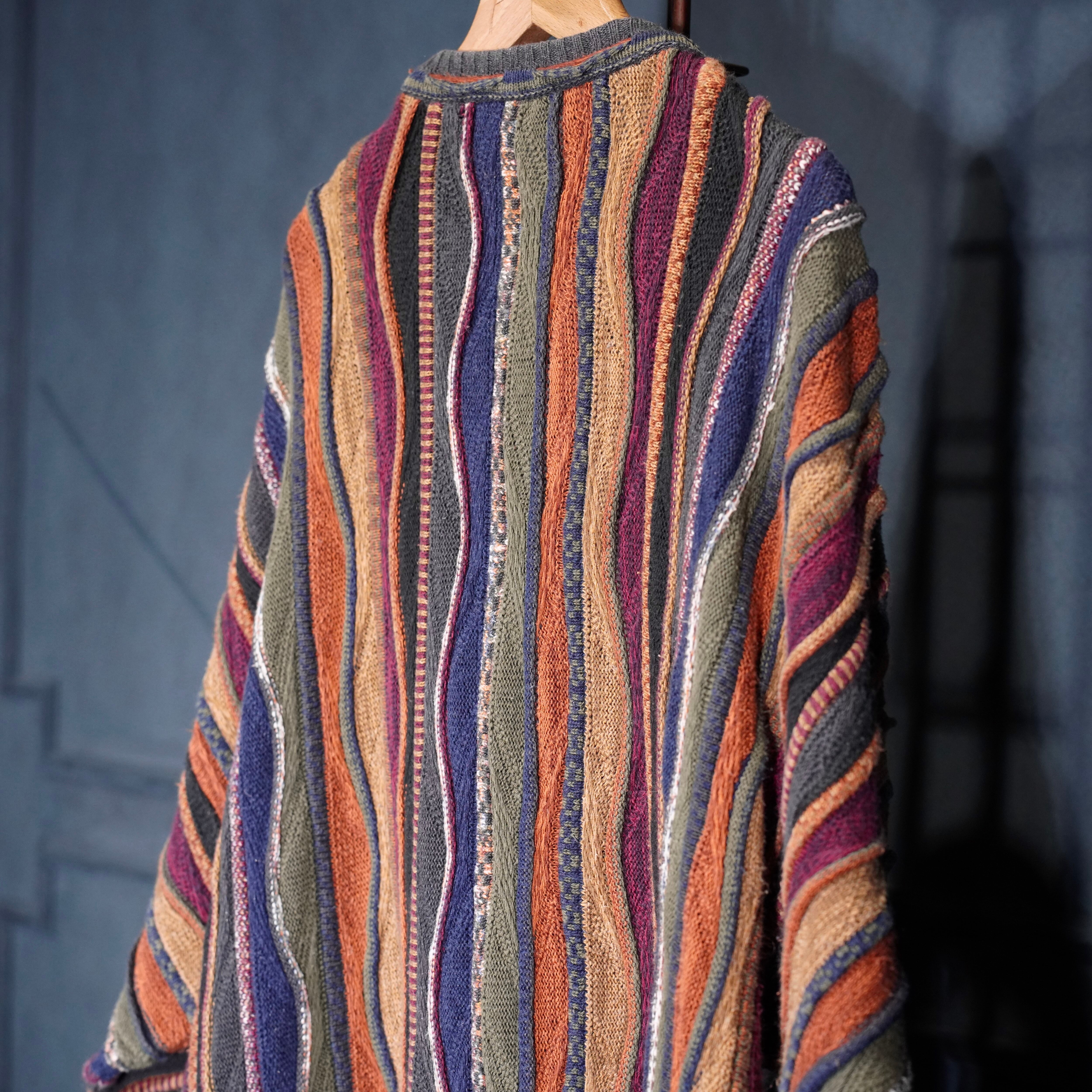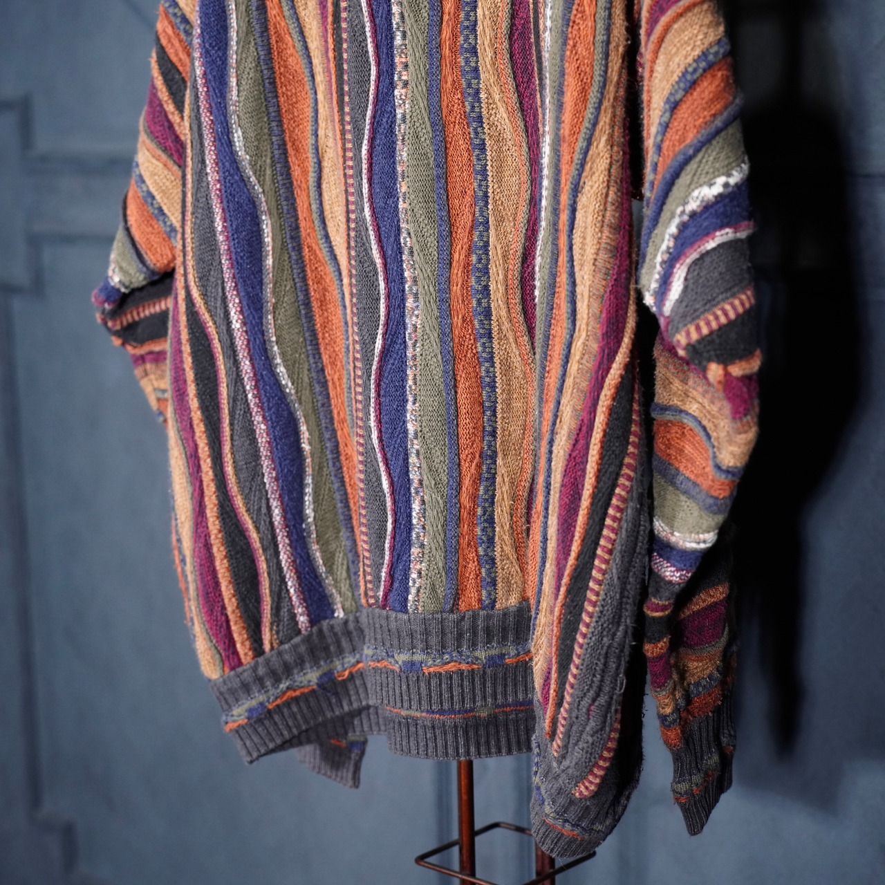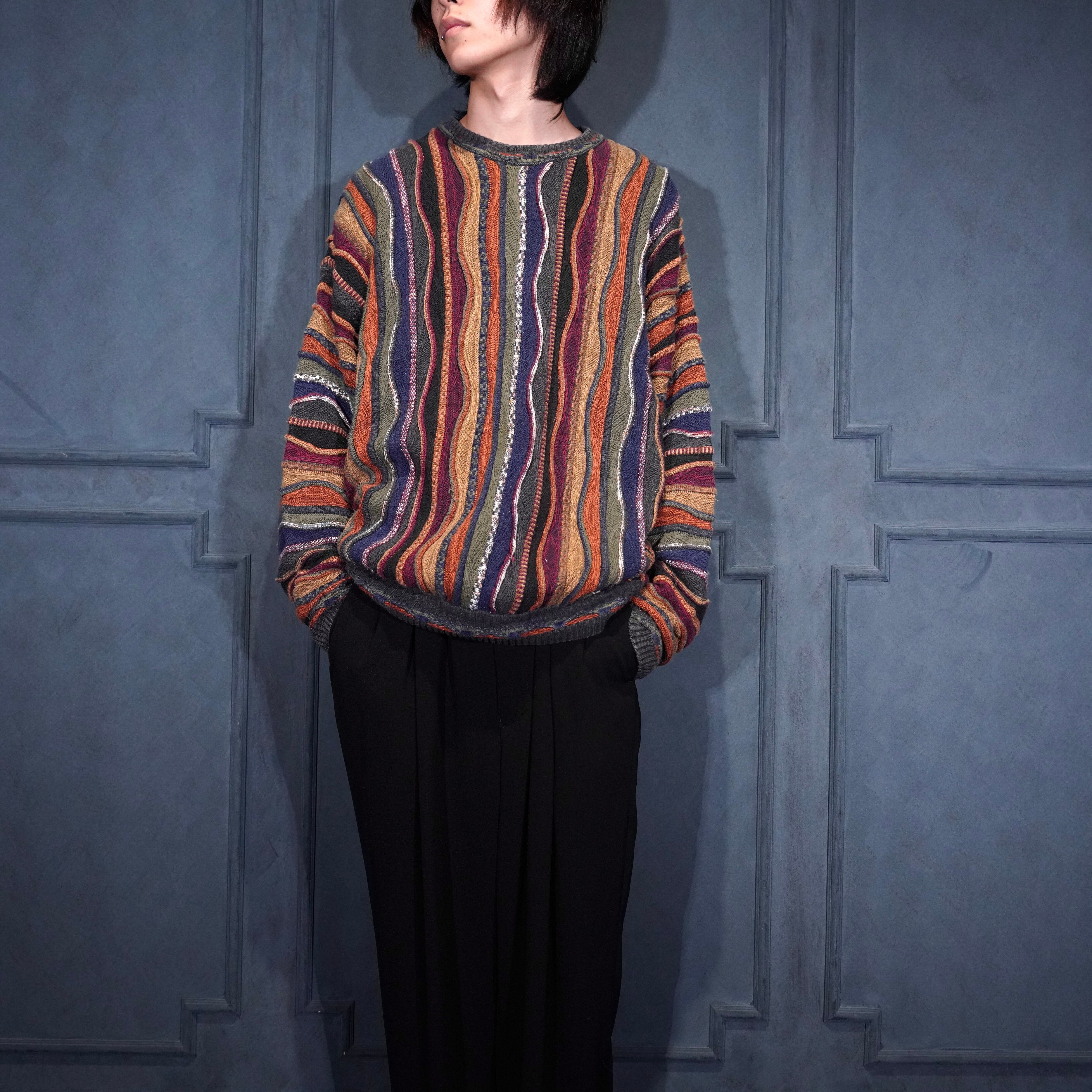 EU VINTAGE THE ITALIAN SWEATER CO. MULTI PATTERNED DESIGN 3D KNIT MADE IN BULGARIA/ヨーロッパ古着マルチパターンデザイン3Dニット