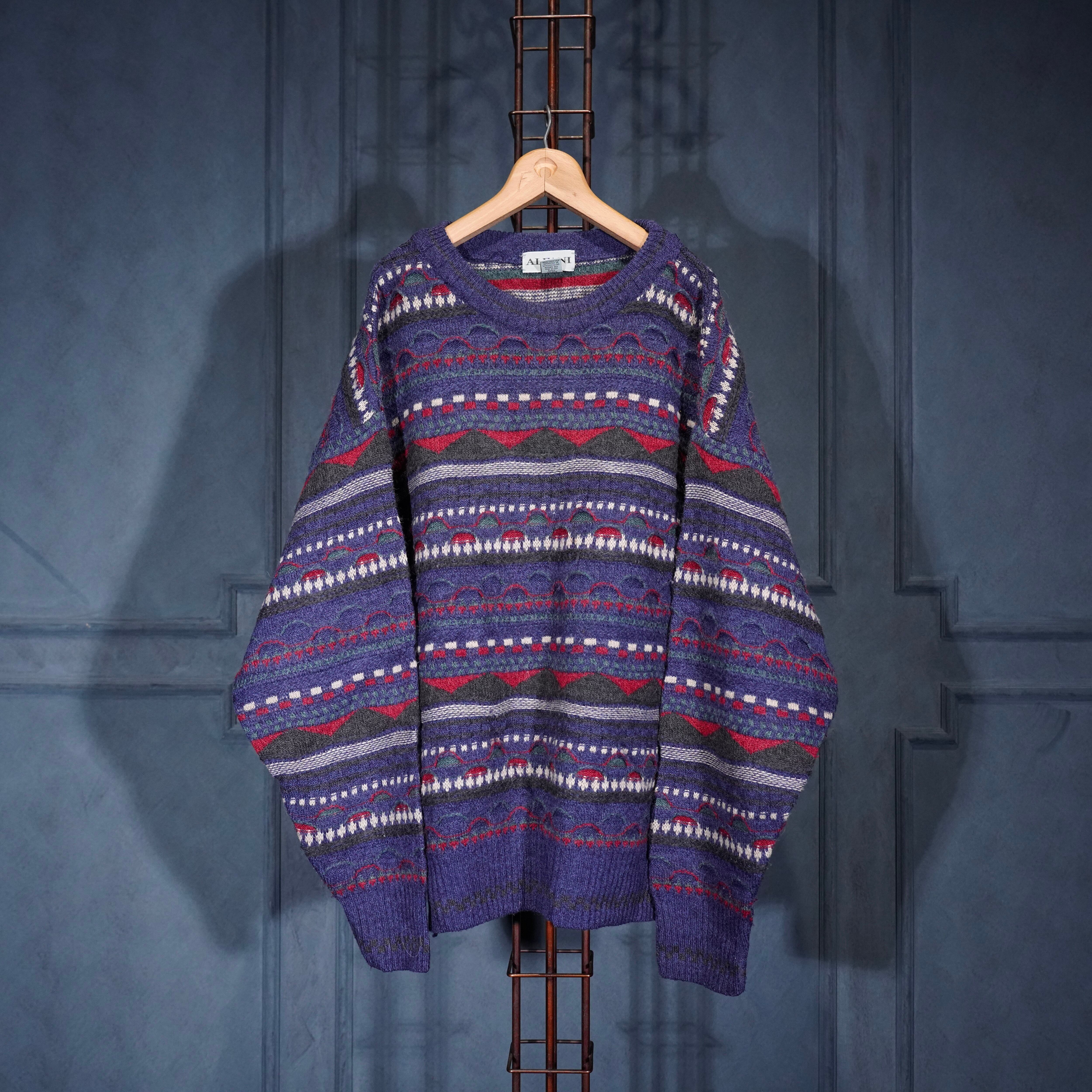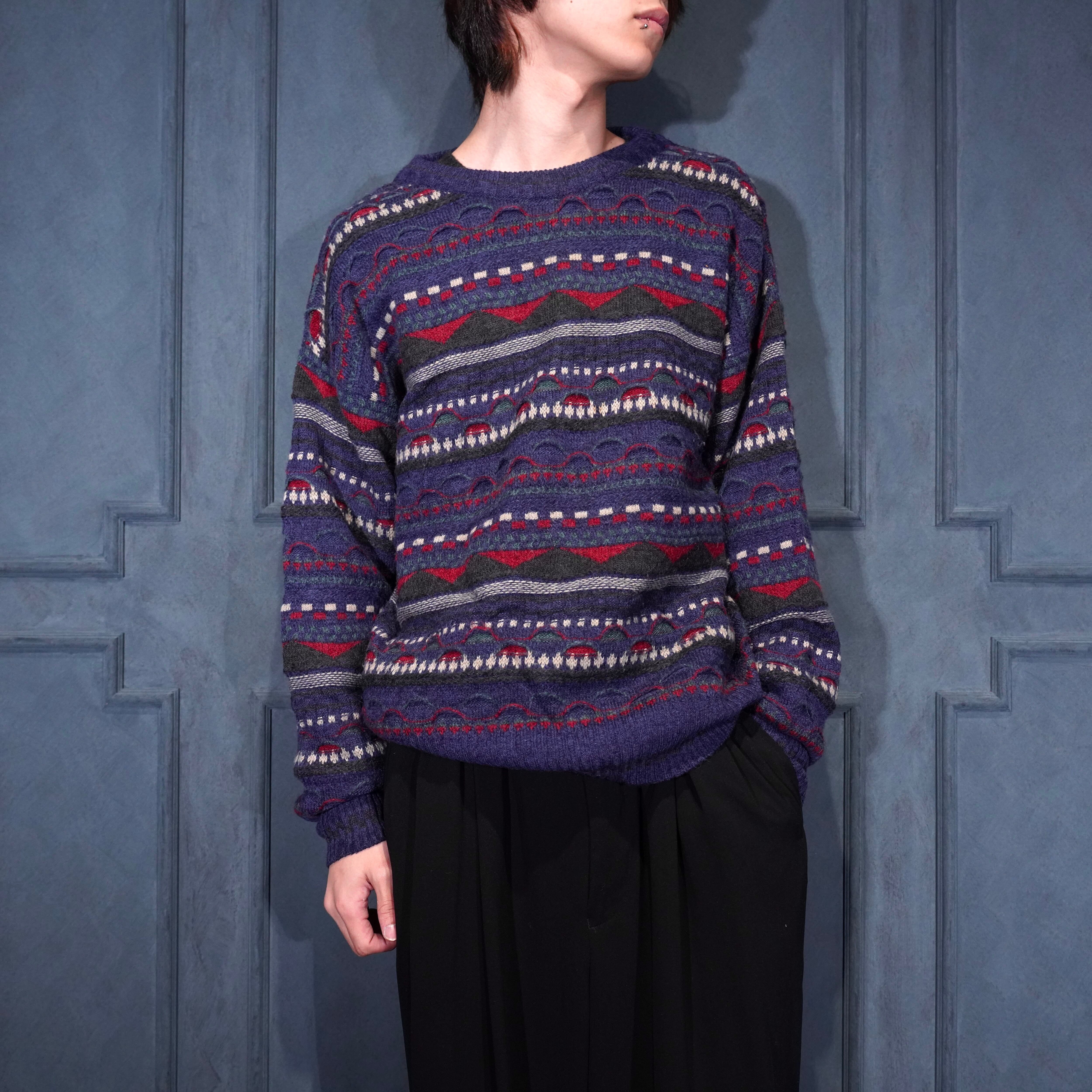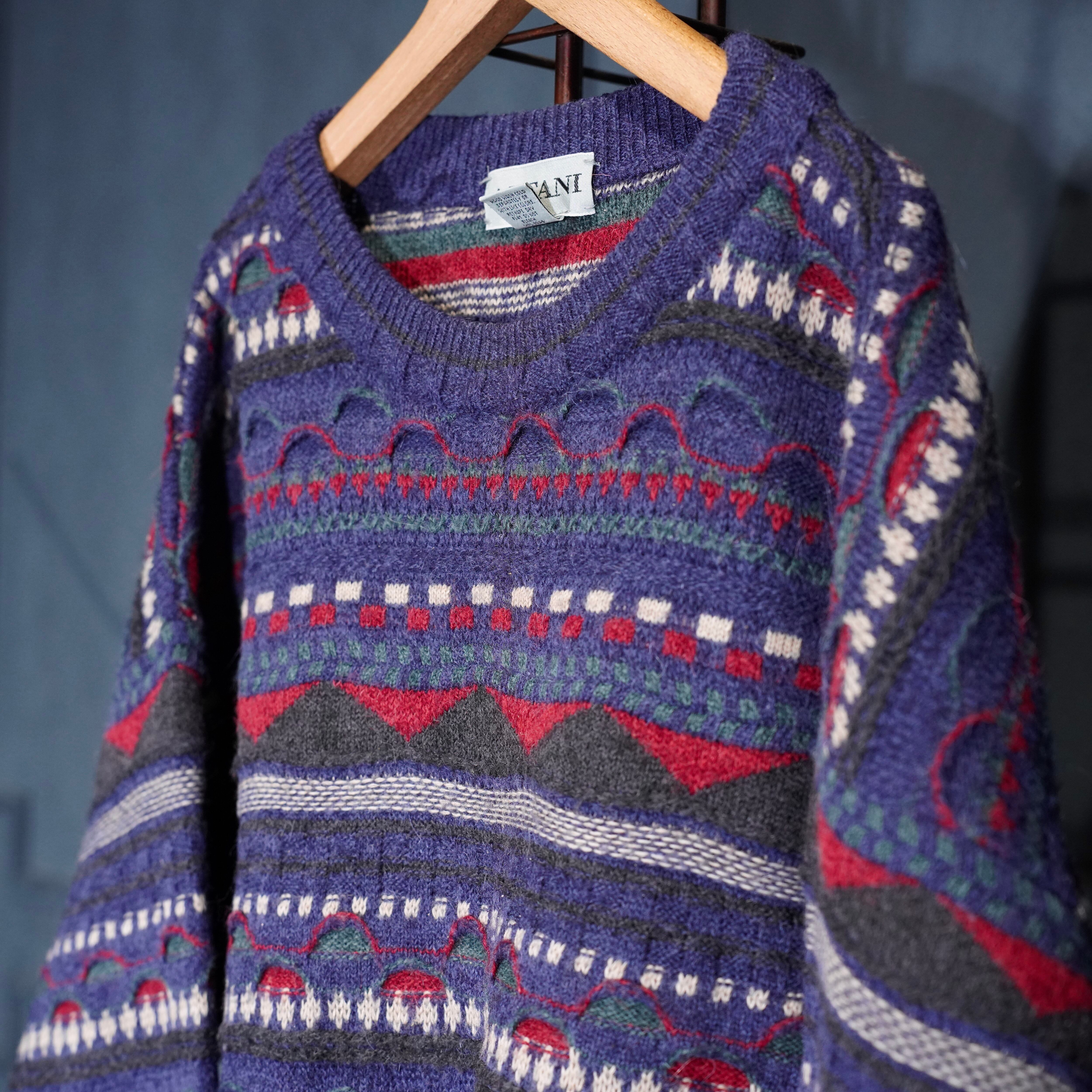 EU VINTAGE ALFANI ALPACA BREND WOOL 3D DESIGN KNIT MADE IN ITALY/ヨーロッパ古着アルパカ混ウール3Dデザインニット