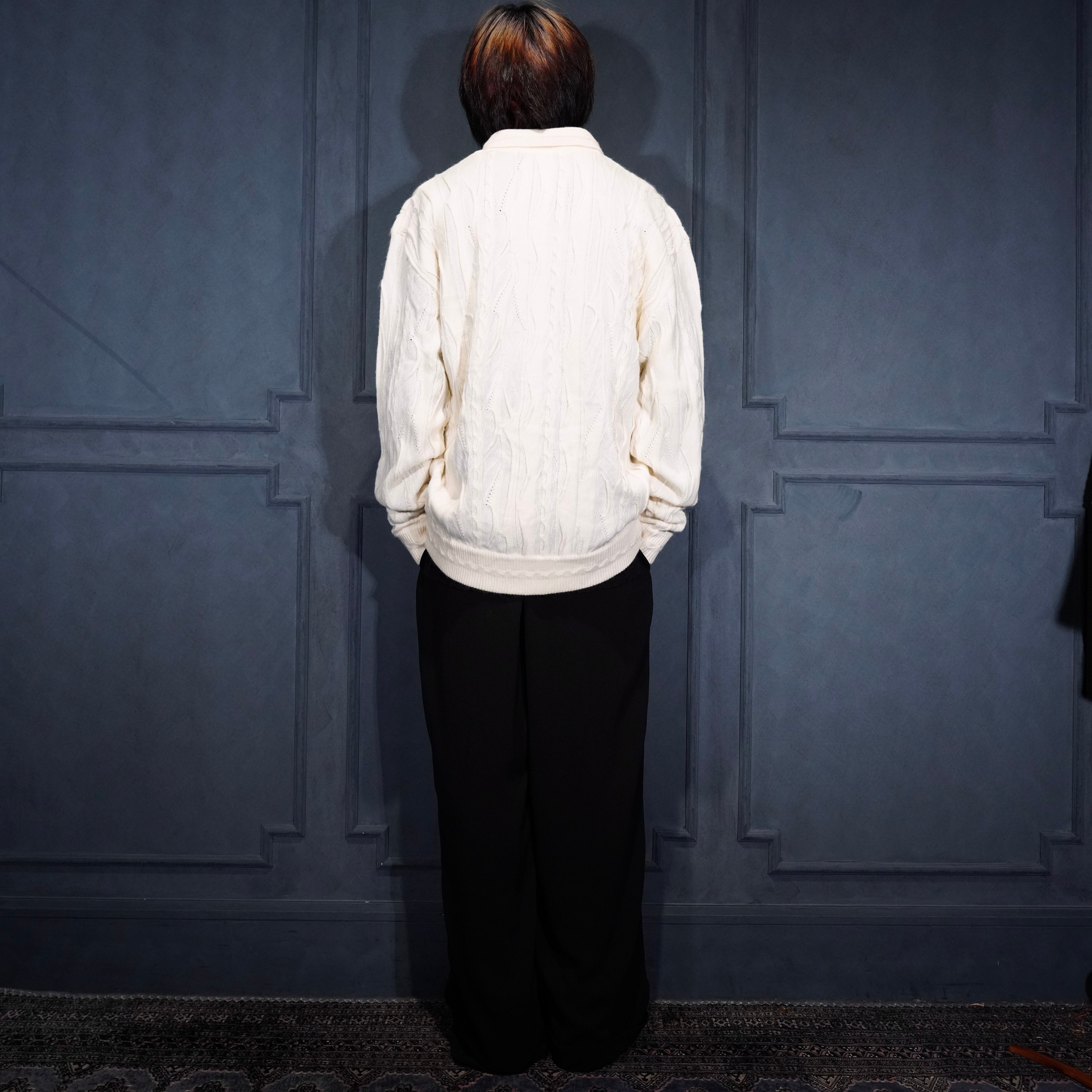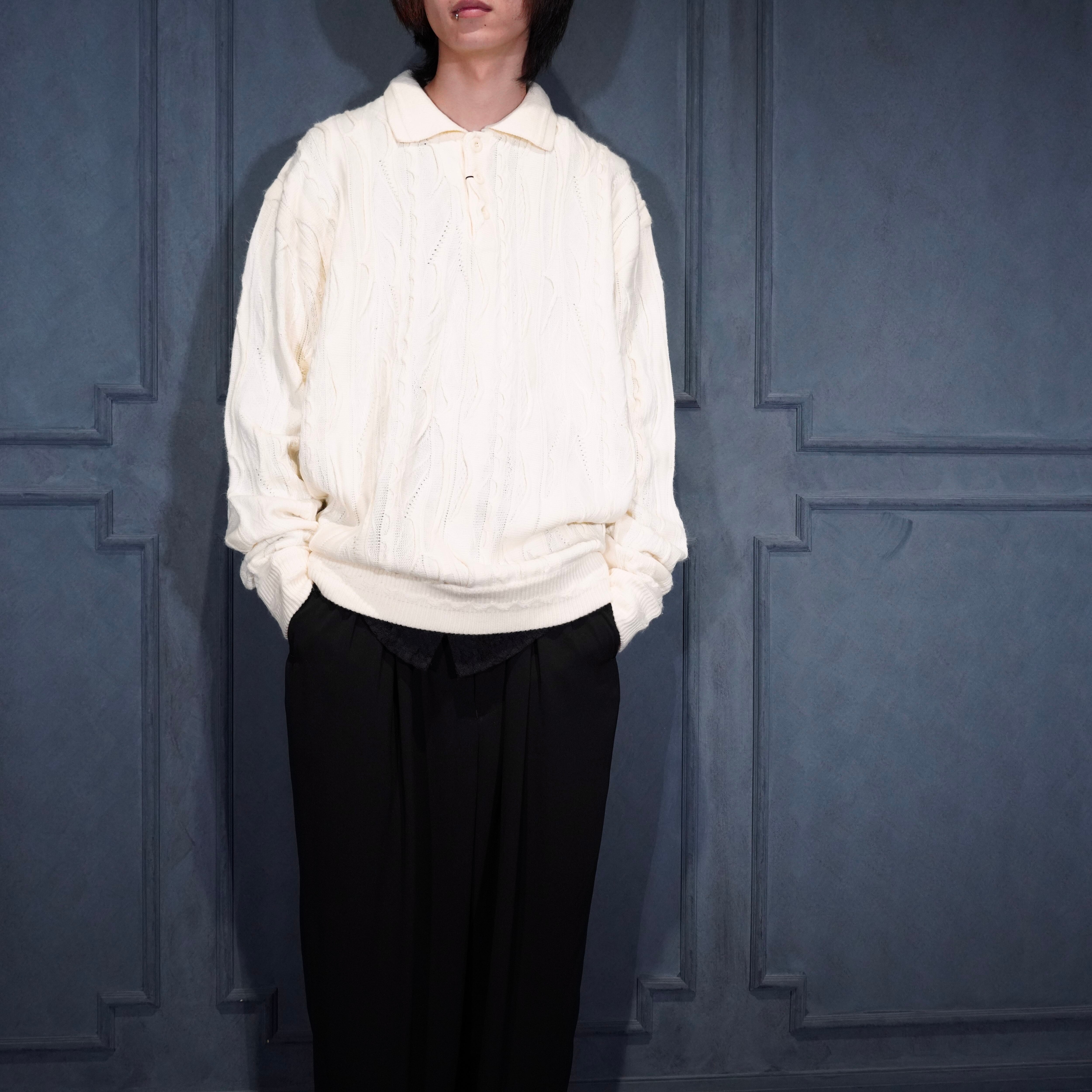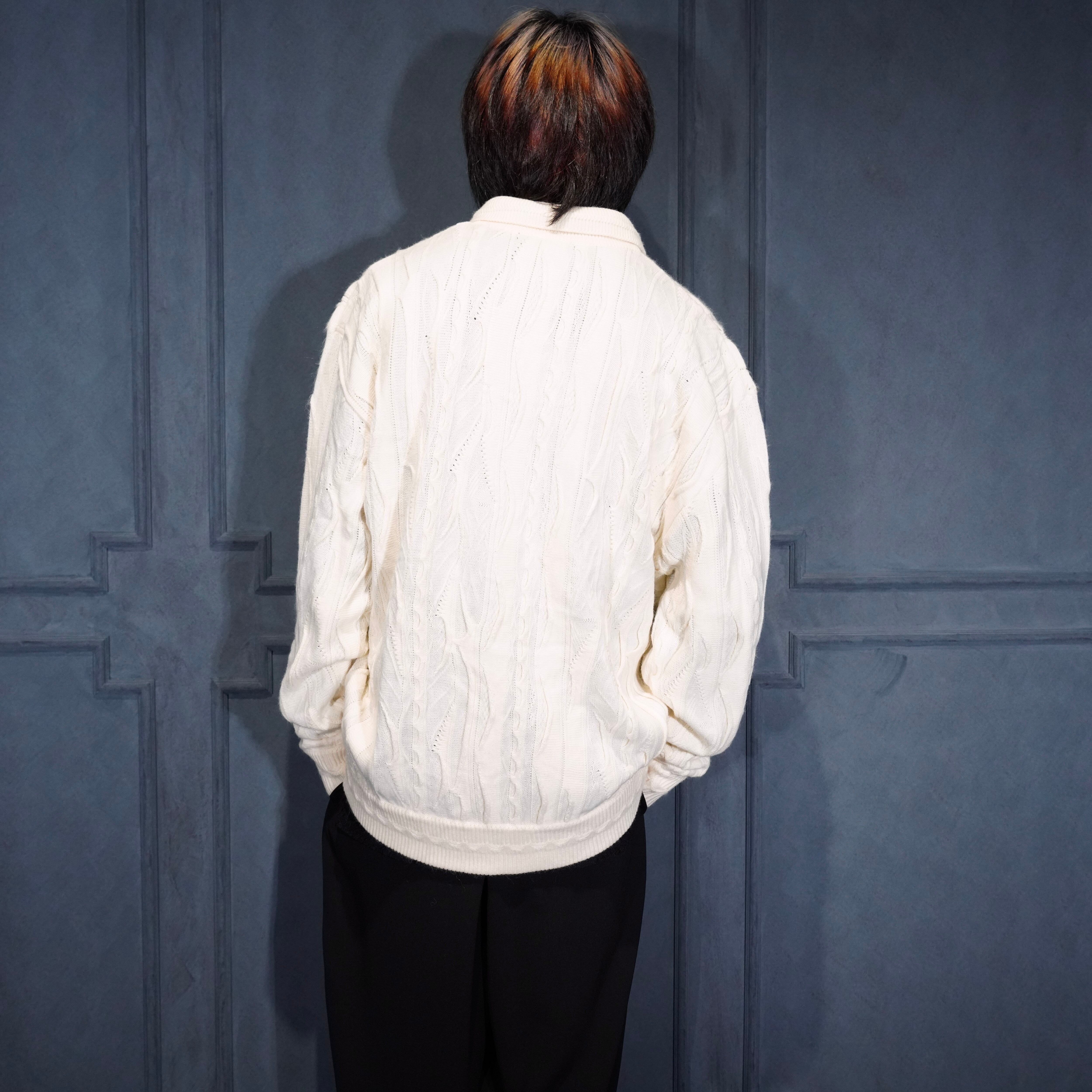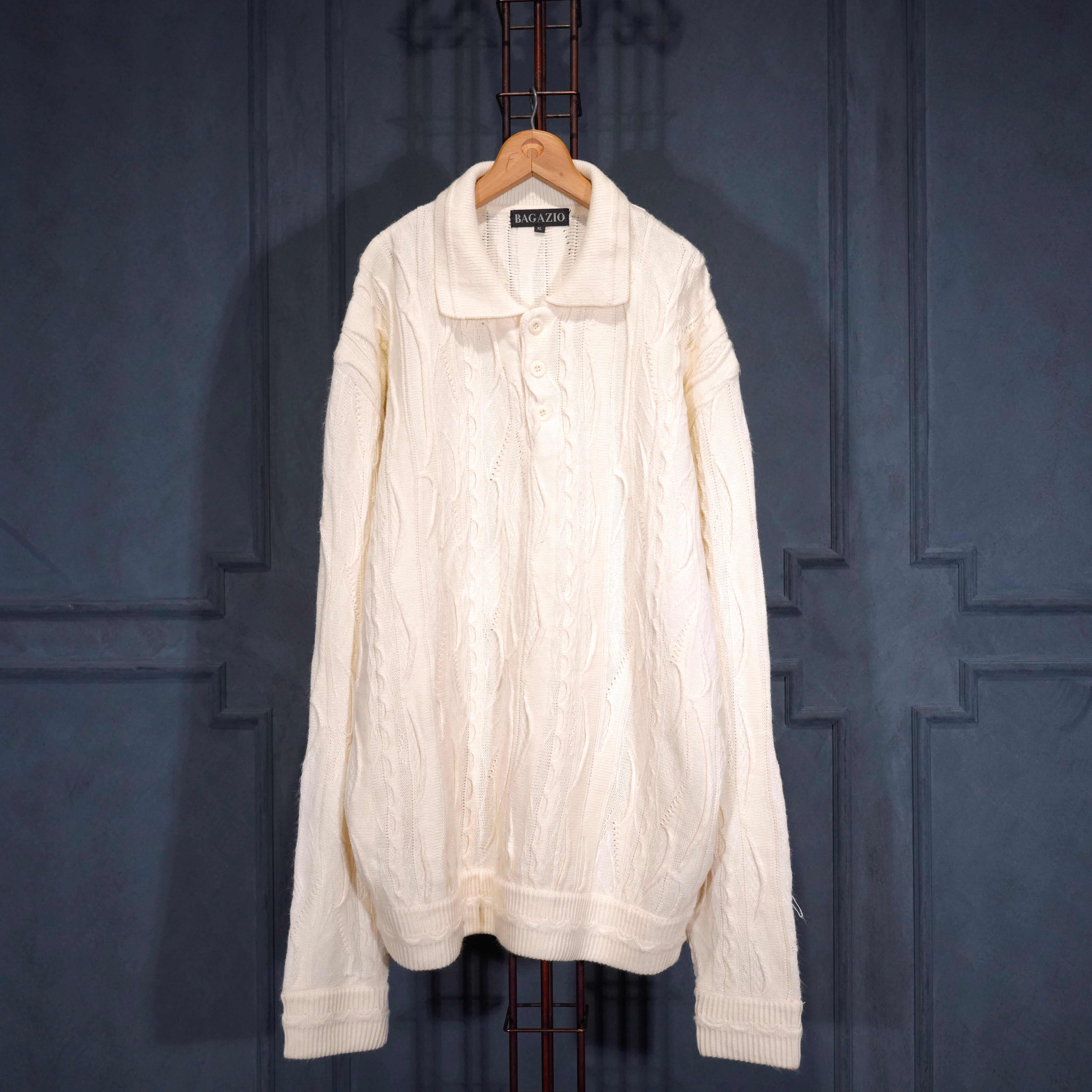 EU VINTAGE BAGAZIO WHITE COLOR 3D KNIT POLO SHIRT/ヨーロッパ古着ホワイトカラー3Dニットポロシャツ