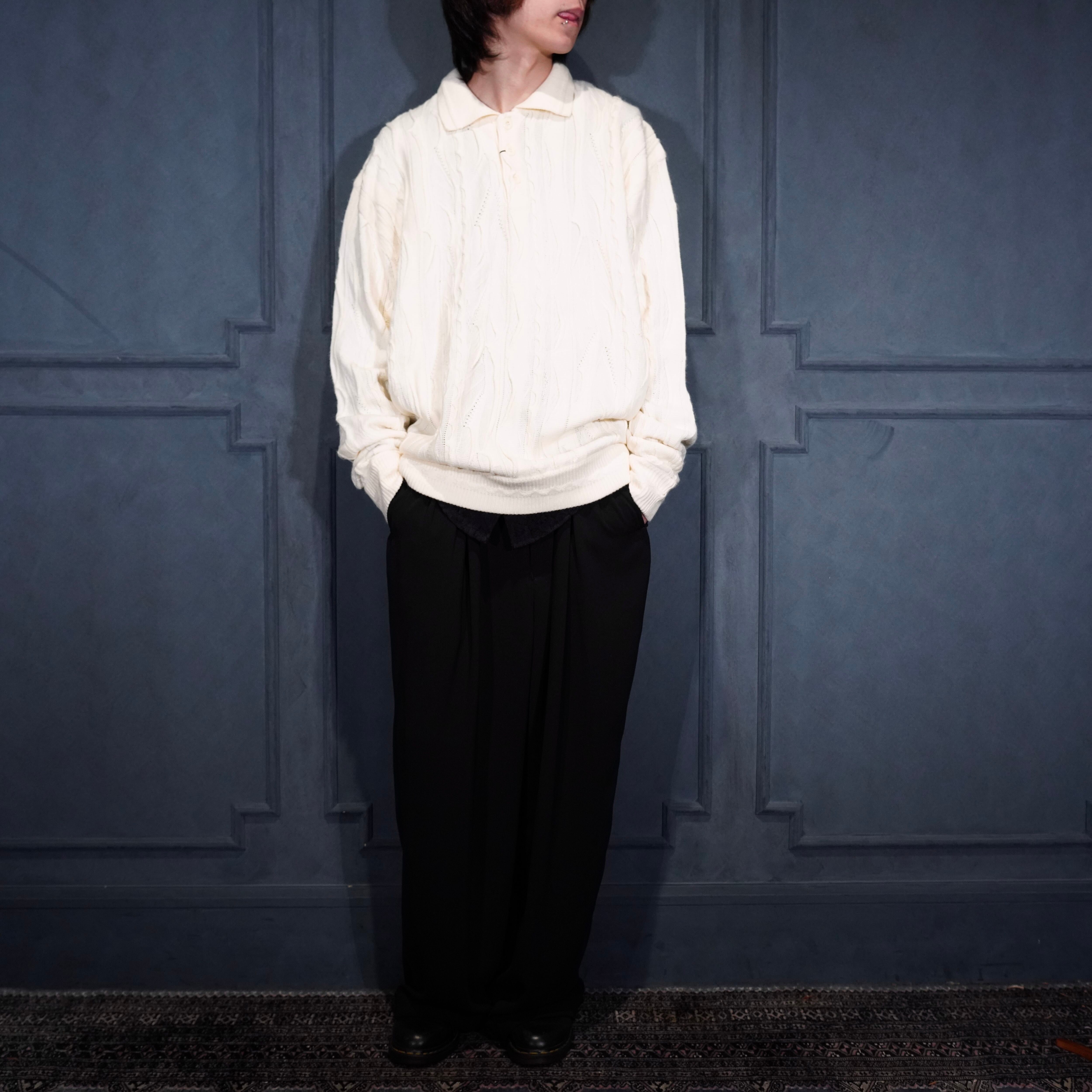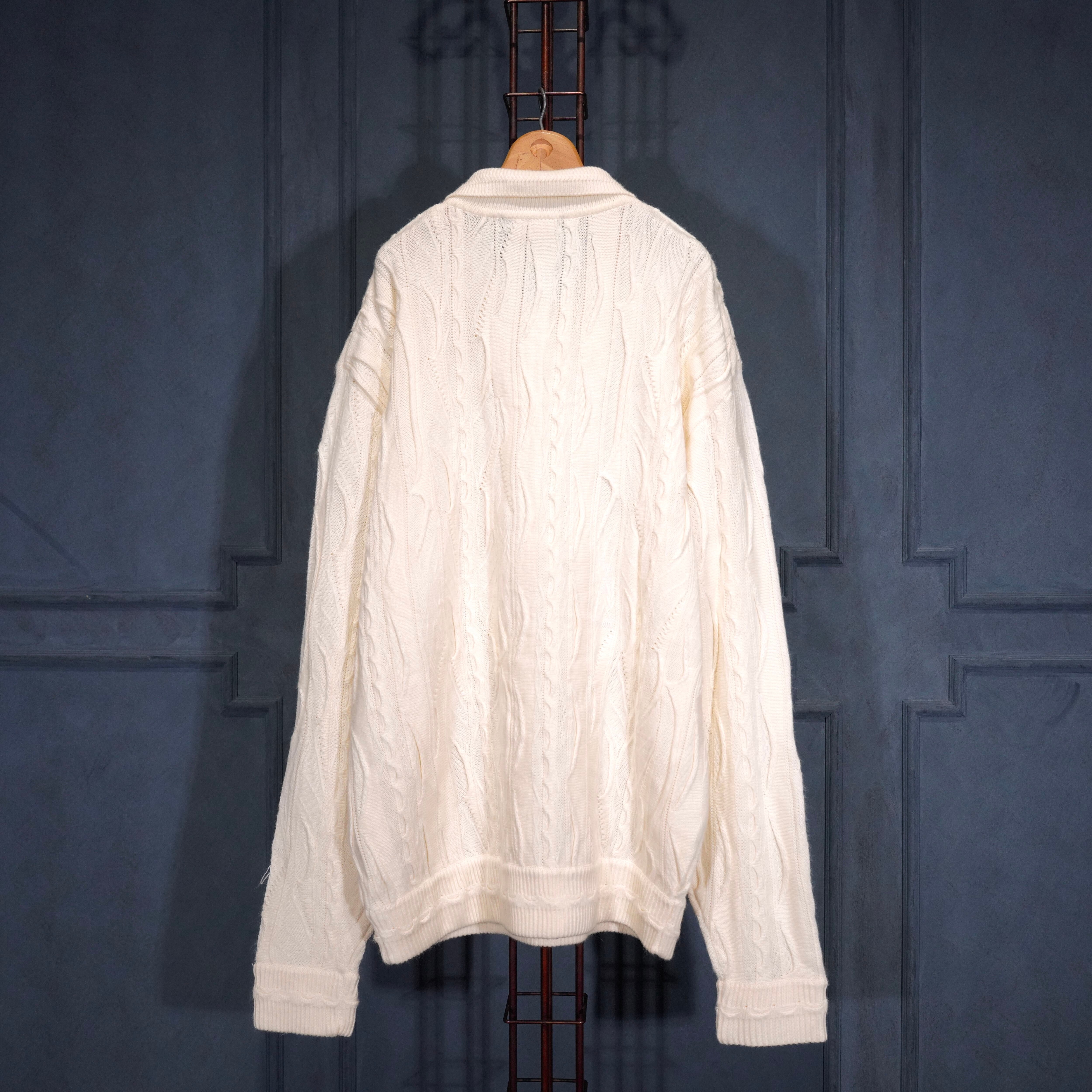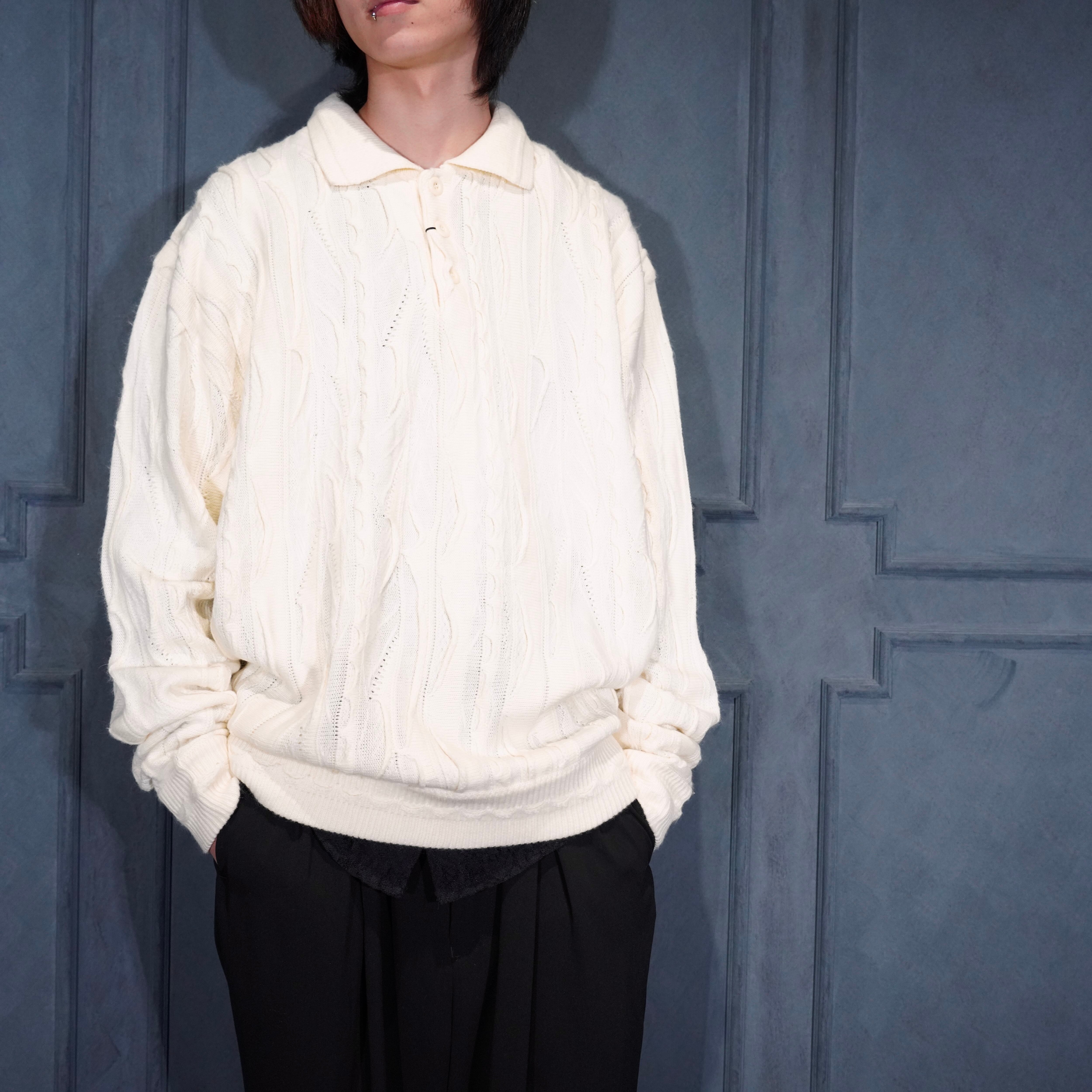 EU VINTAGE BAGAZIO WHITE COLOR 3D KNIT POLO SHIRT/ヨーロッパ古着ホワイトカラー3Dニットポロシャツ