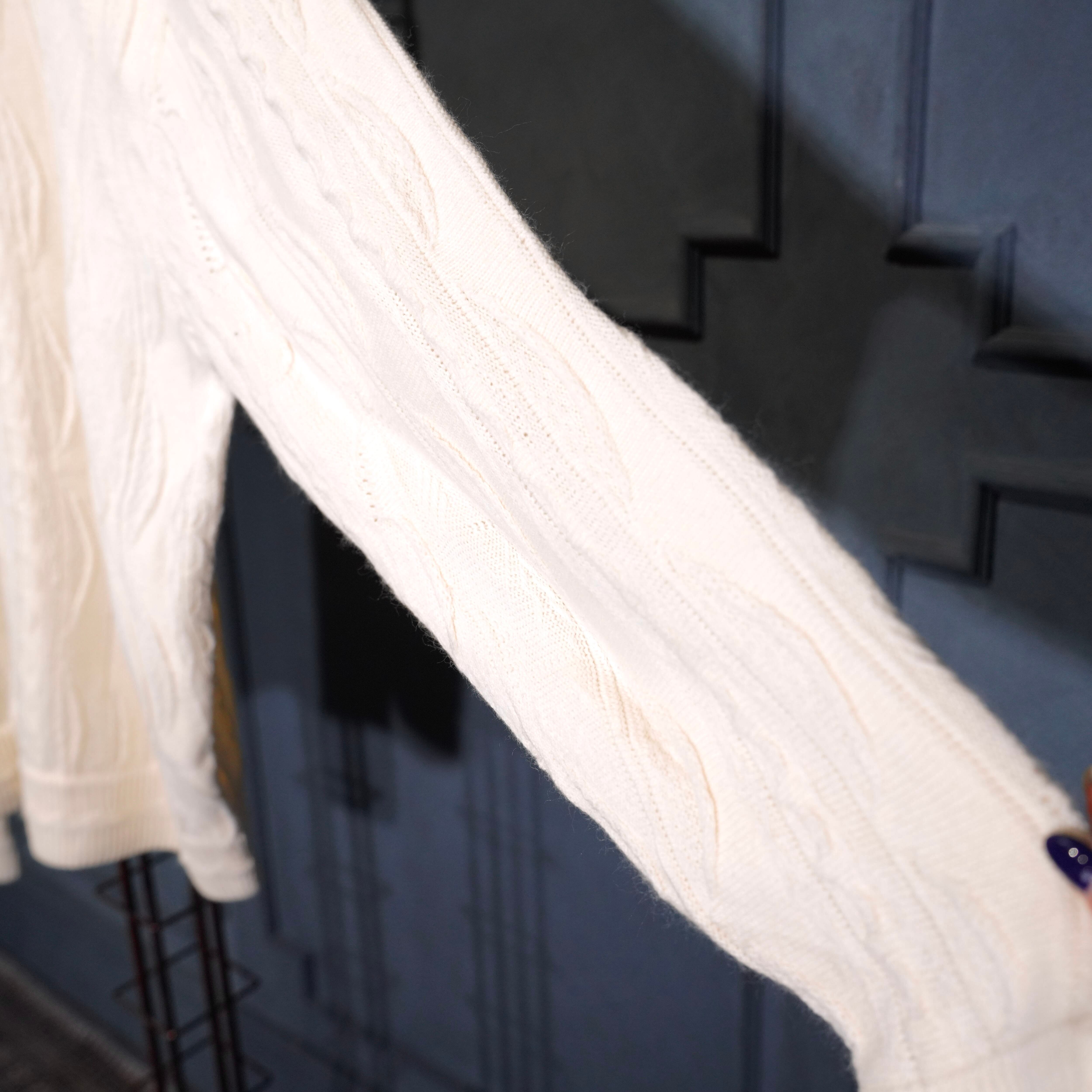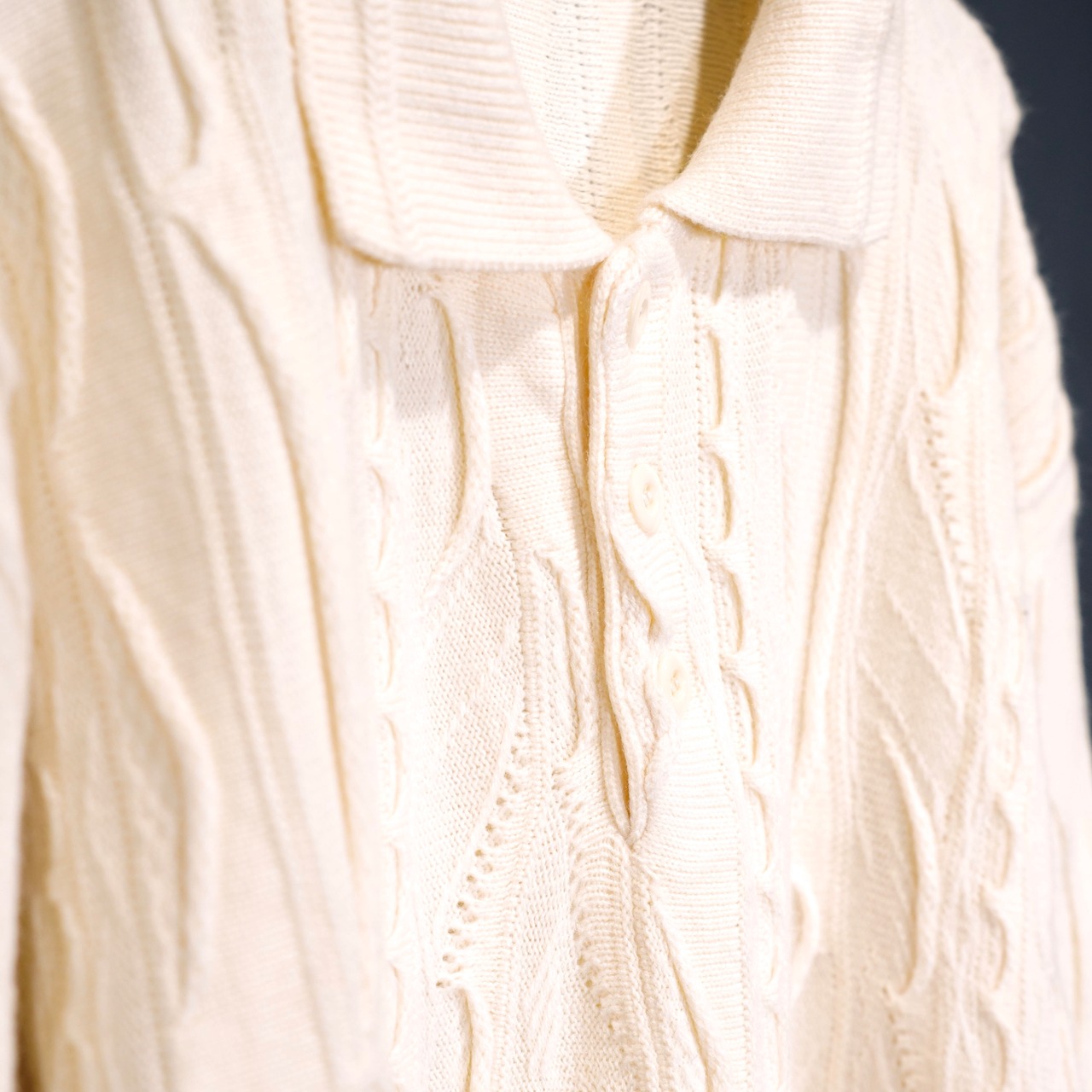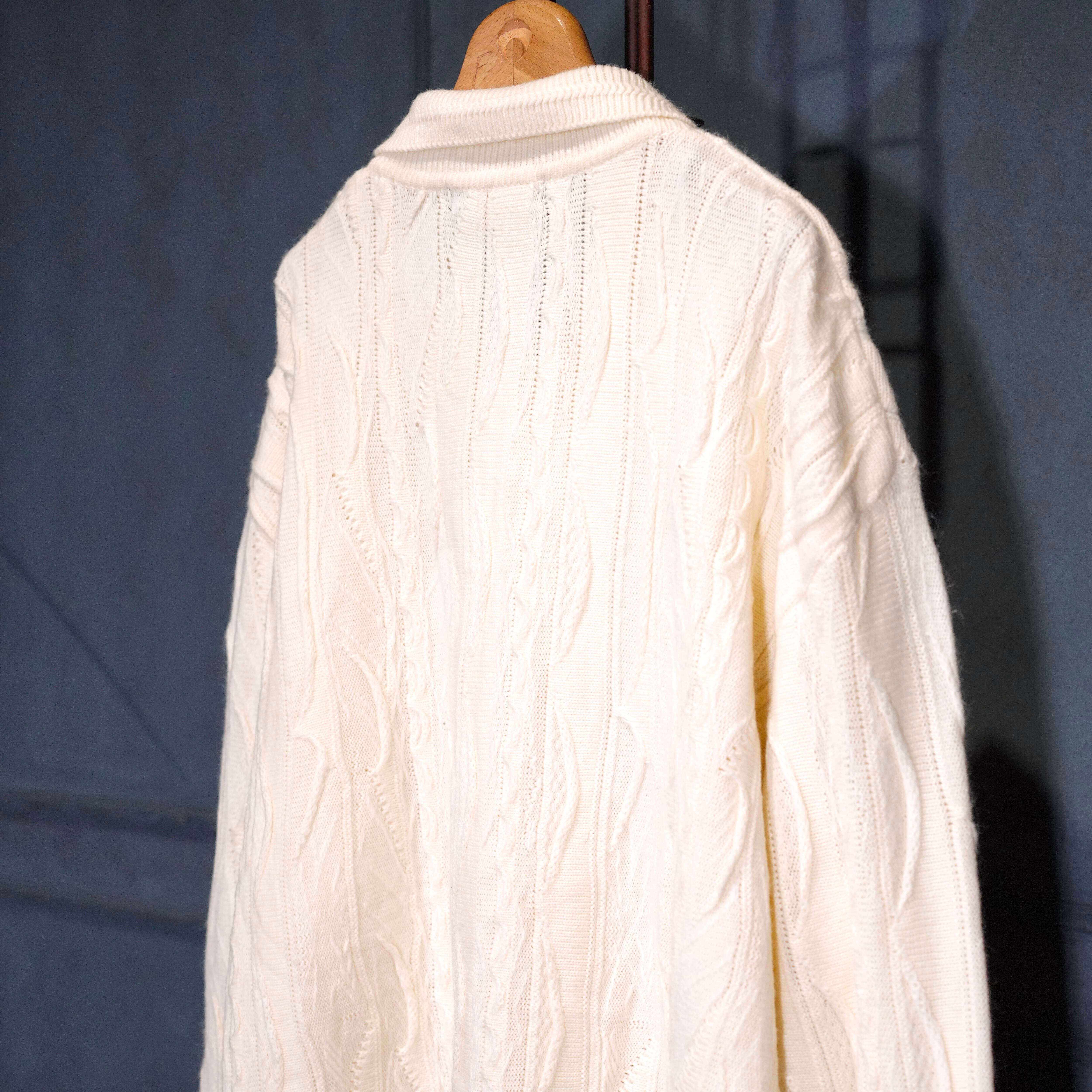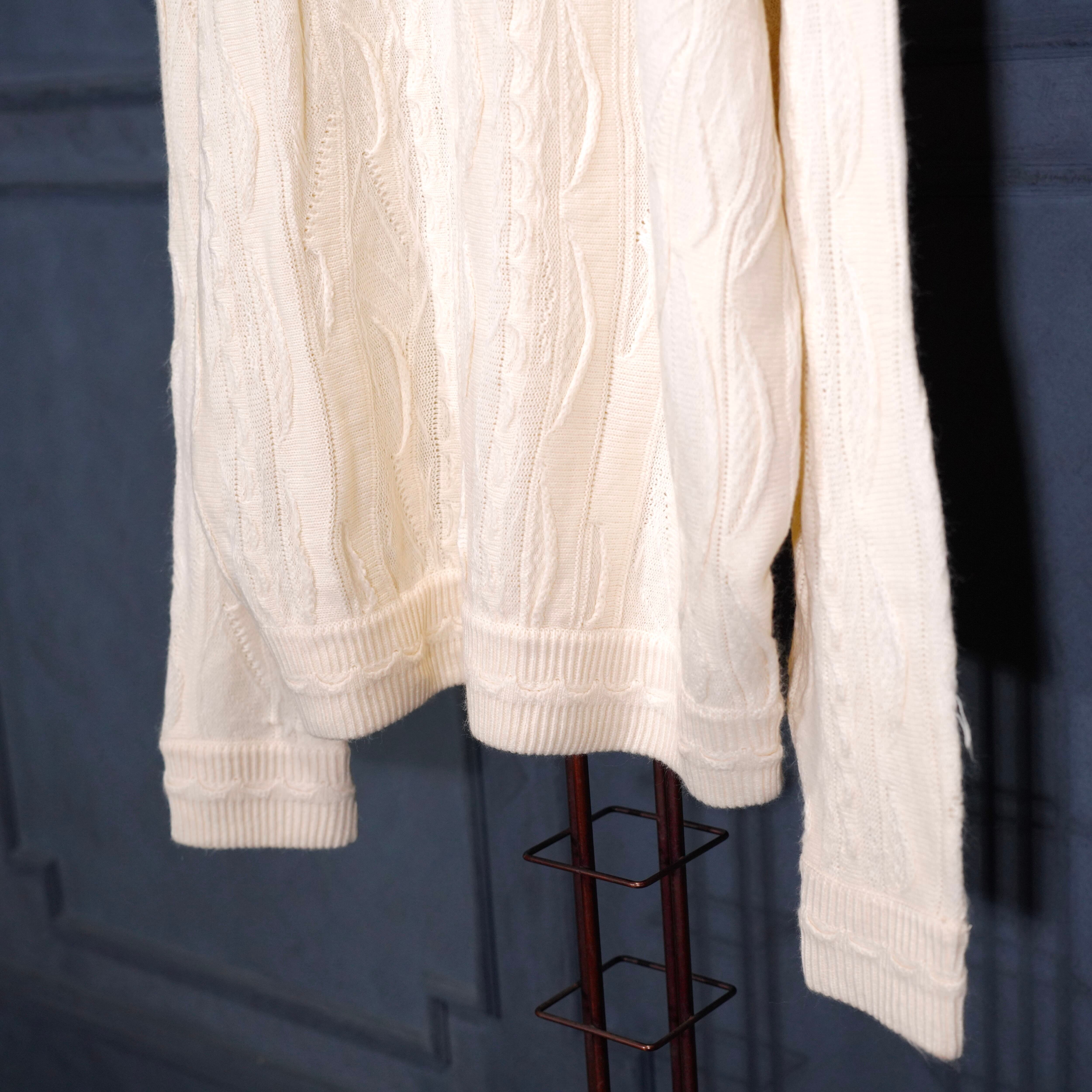 EU VINTAGE BAGAZIO WHITE COLOR 3D KNIT POLO SHIRT/ヨーロッパ古着ホワイトカラー3Dニットポロシャツ