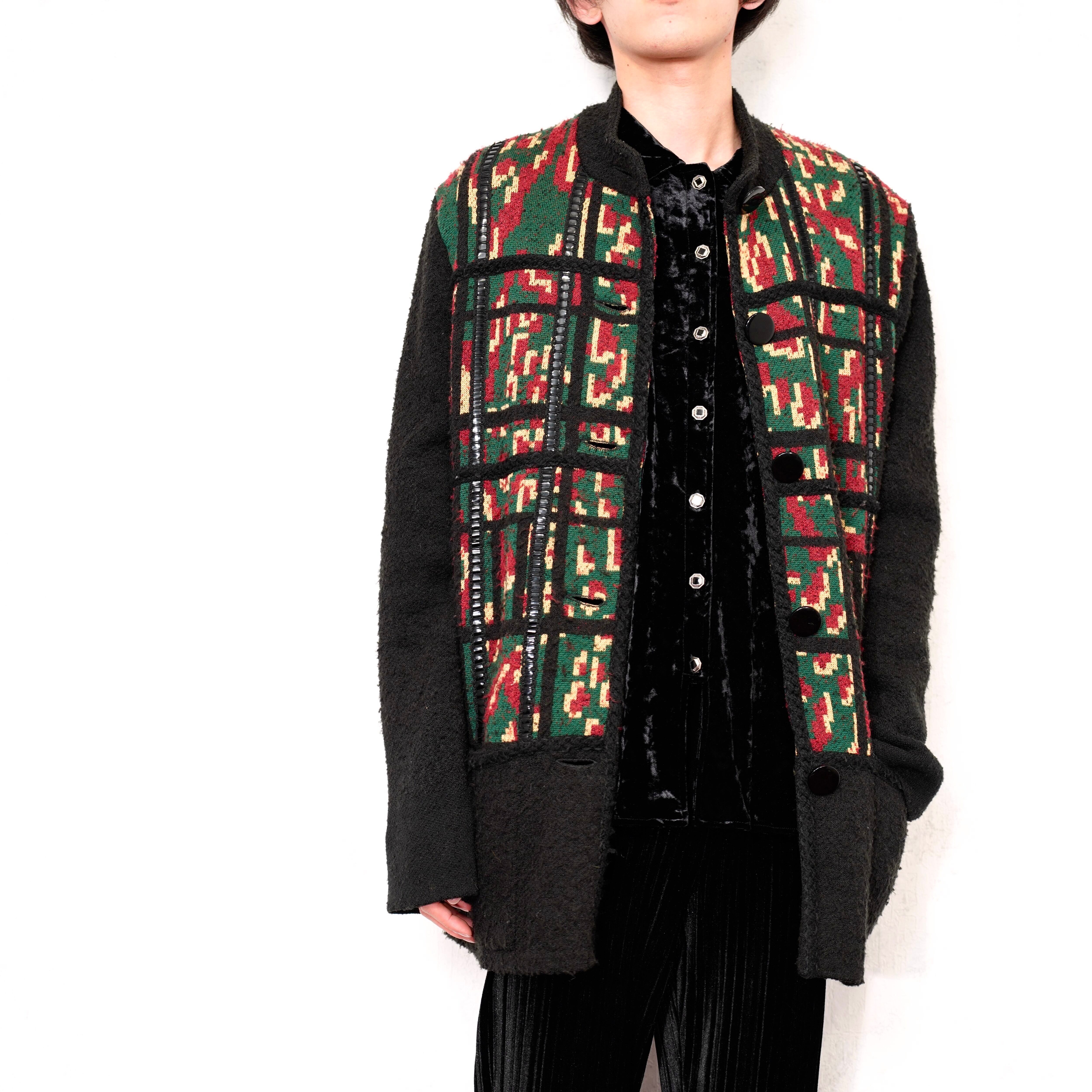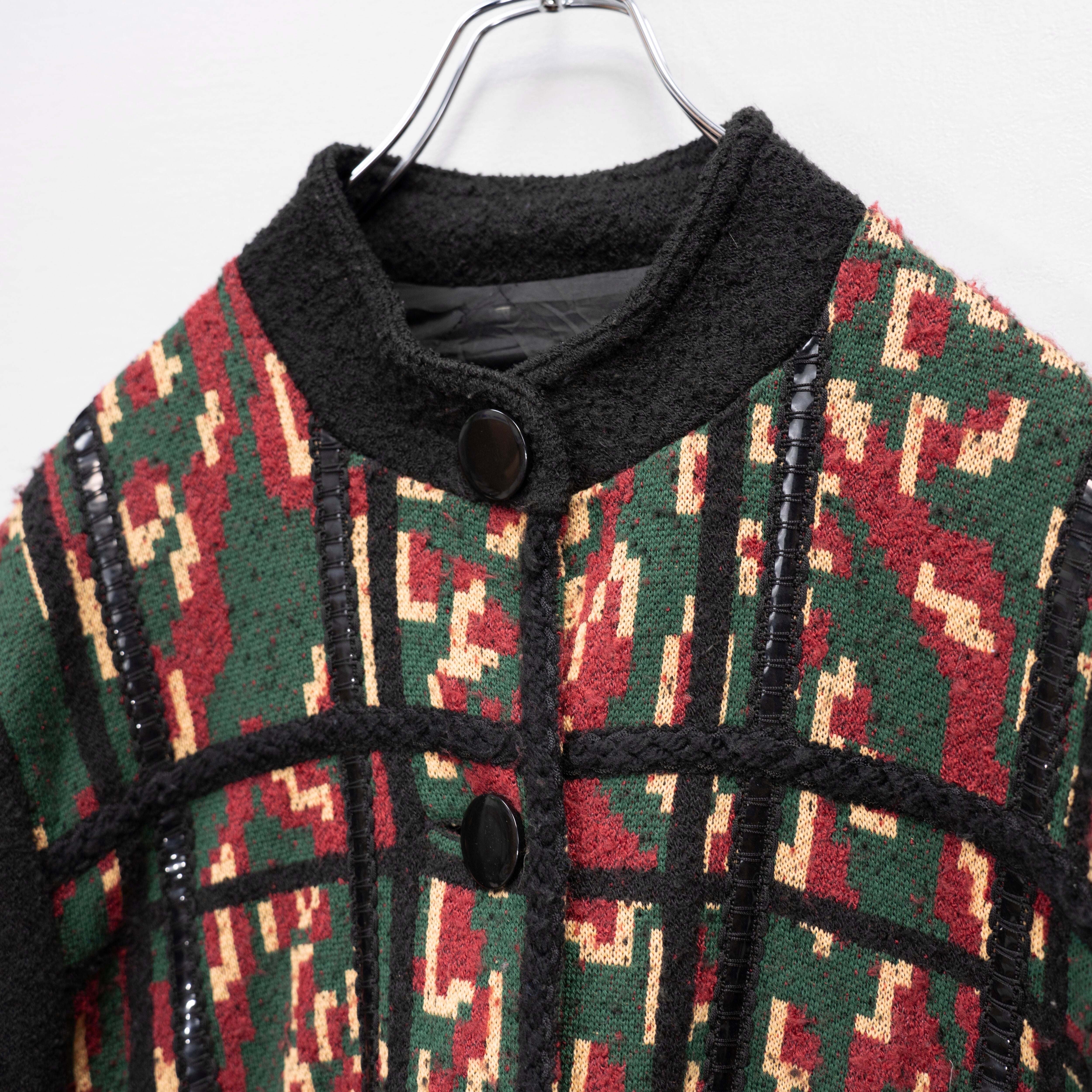 EU VINTAGE LINE DESIGN KNIT JACKET/ヨーロッパ古着ラインデザインニットジャケット(カーディガン)
