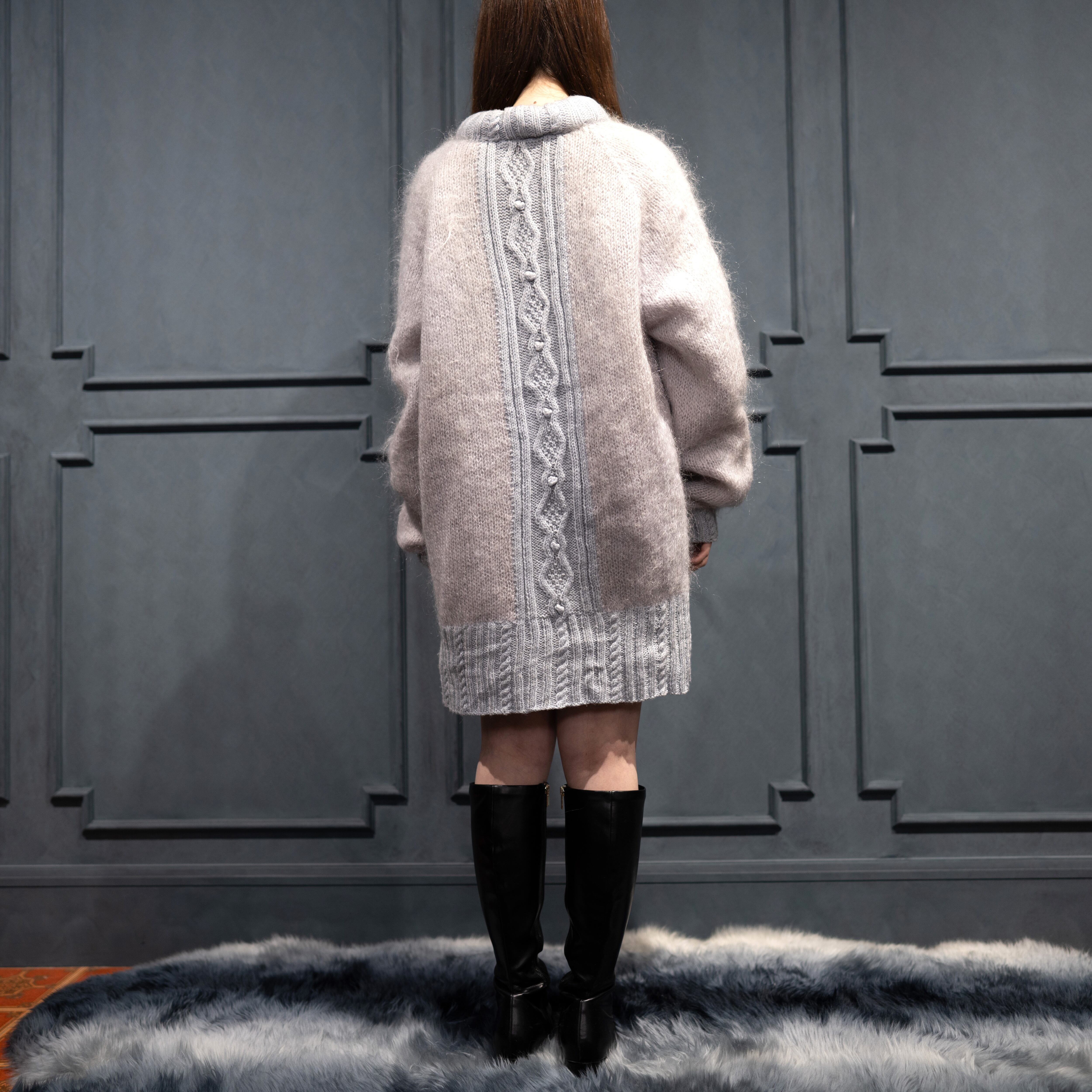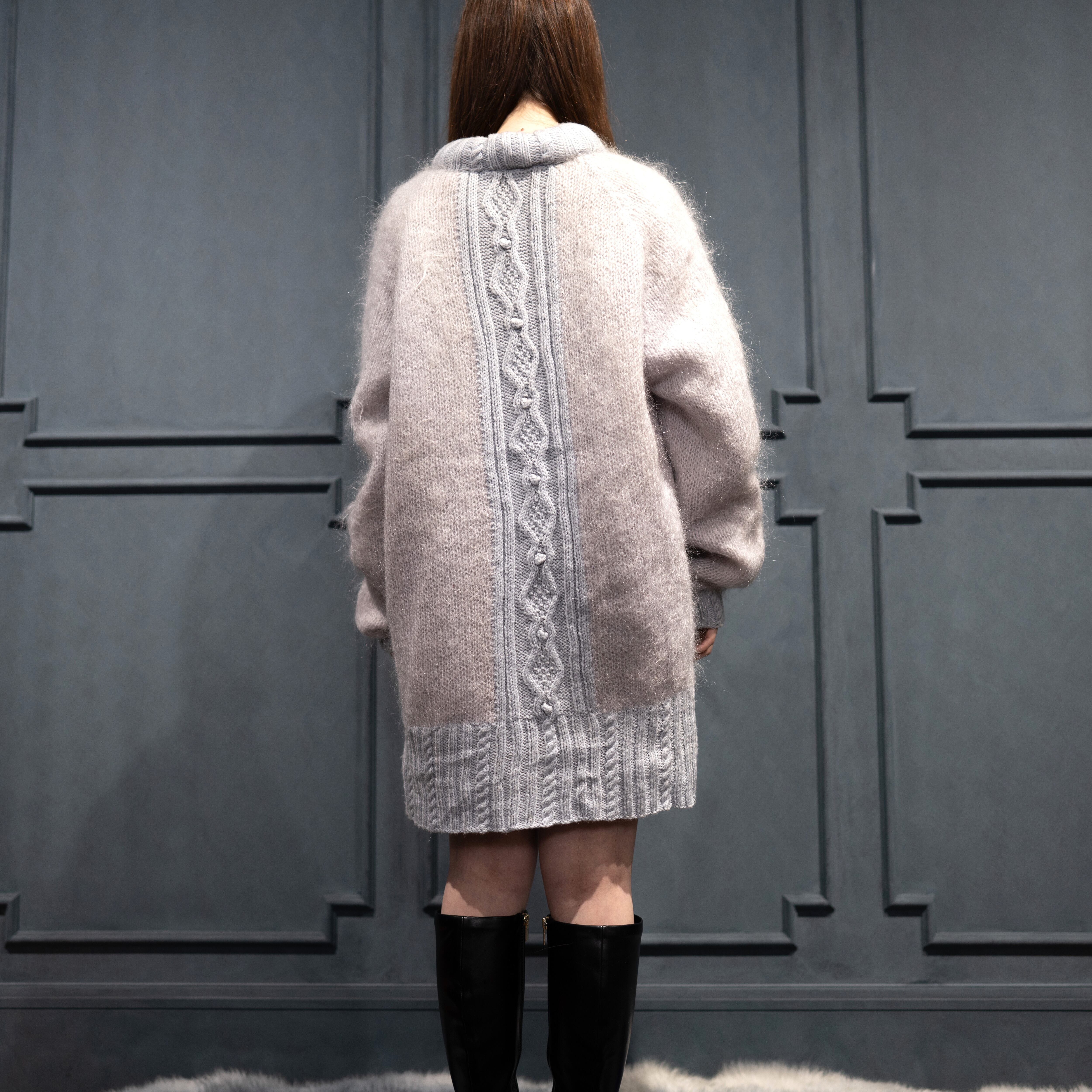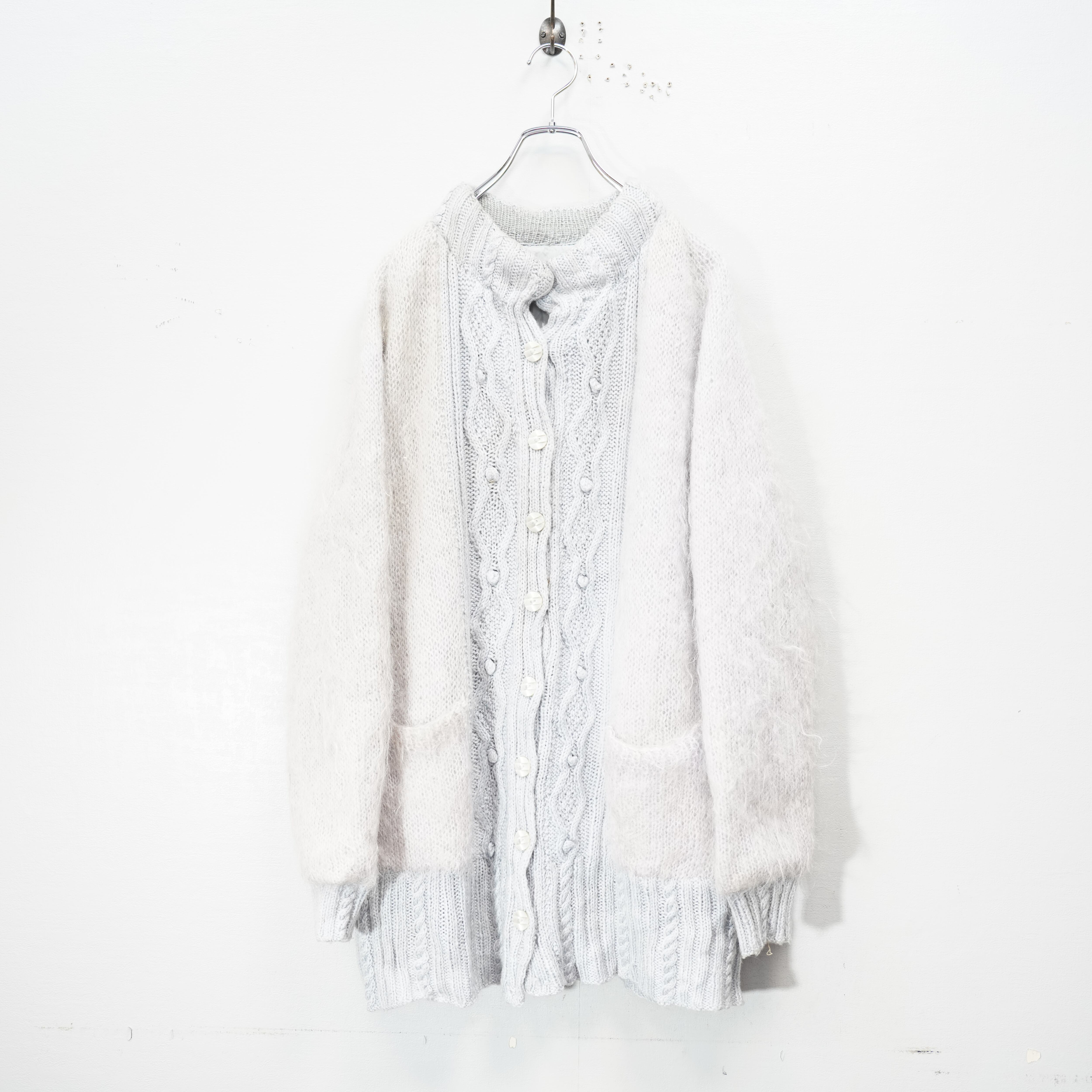 *SPECIAL ITEM* EU VINTAGE CABLE DESIGN SWITCHED MOHAIR LONG KNIT CARDIGAN/ヨーロッパ古着ケーブルデザイン切替モヘアロングニットカーディガン