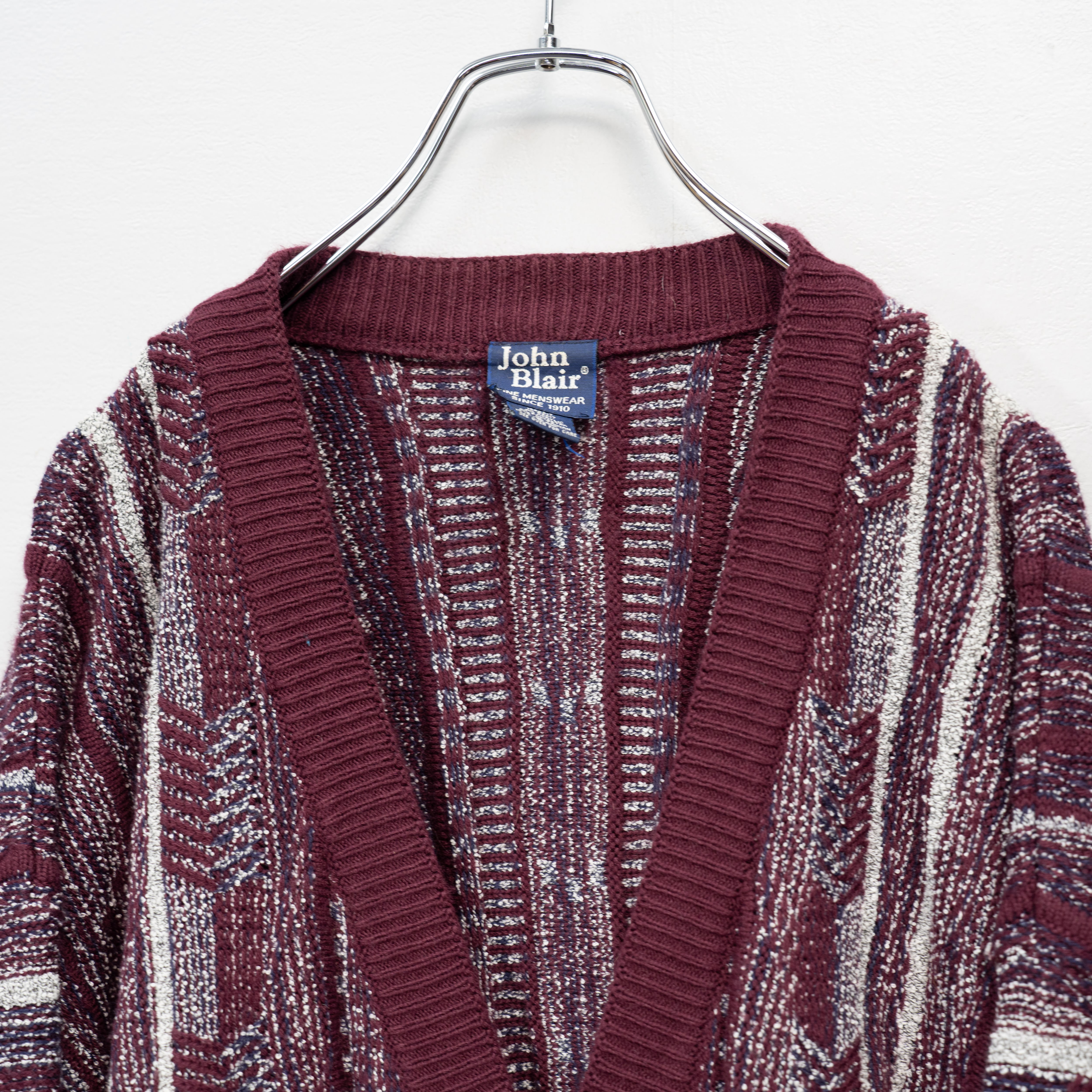 USA VINTAGE John Blair WOVEN DESIGN KNIT CARDIGAN/アメリカ古着織デザインニットカーディガン