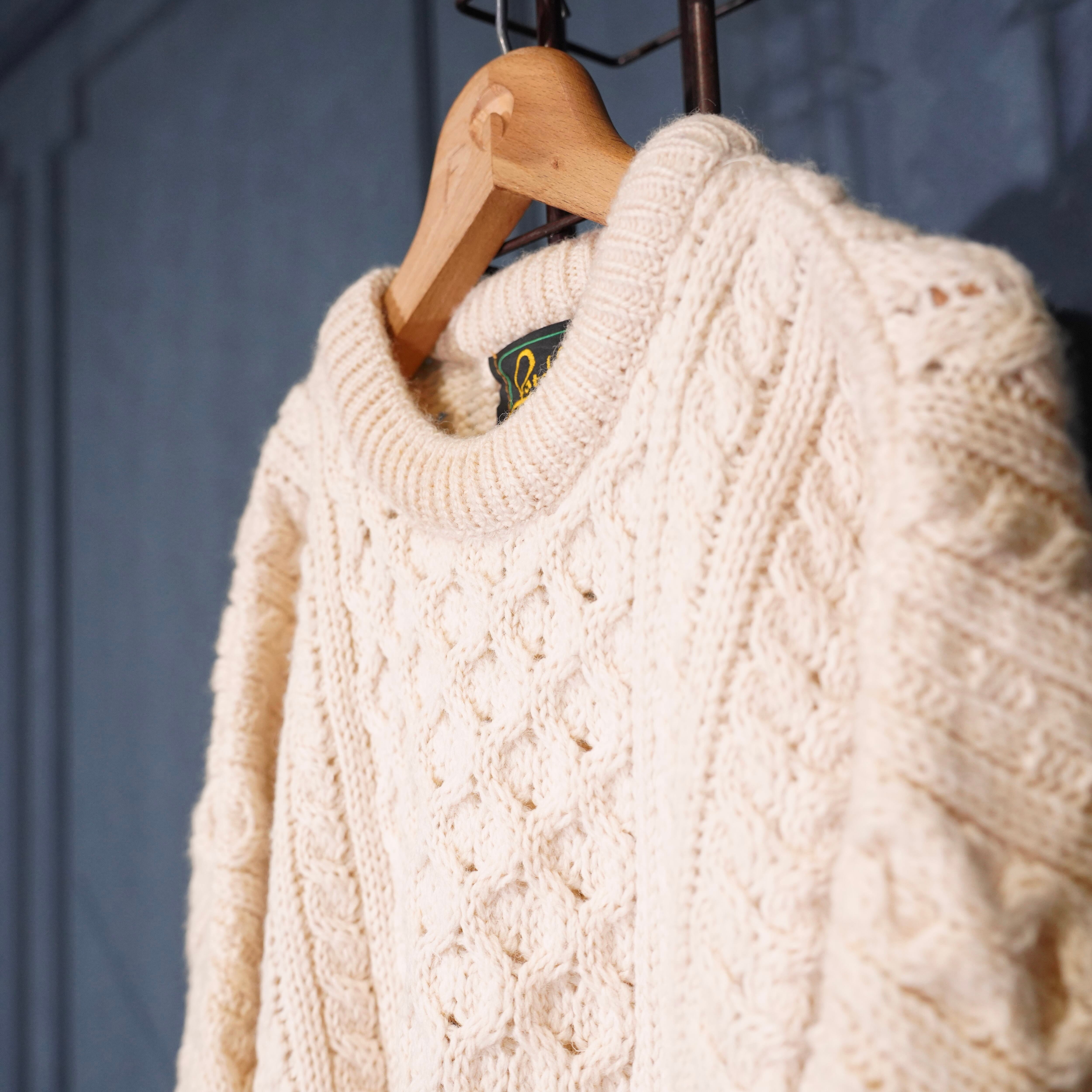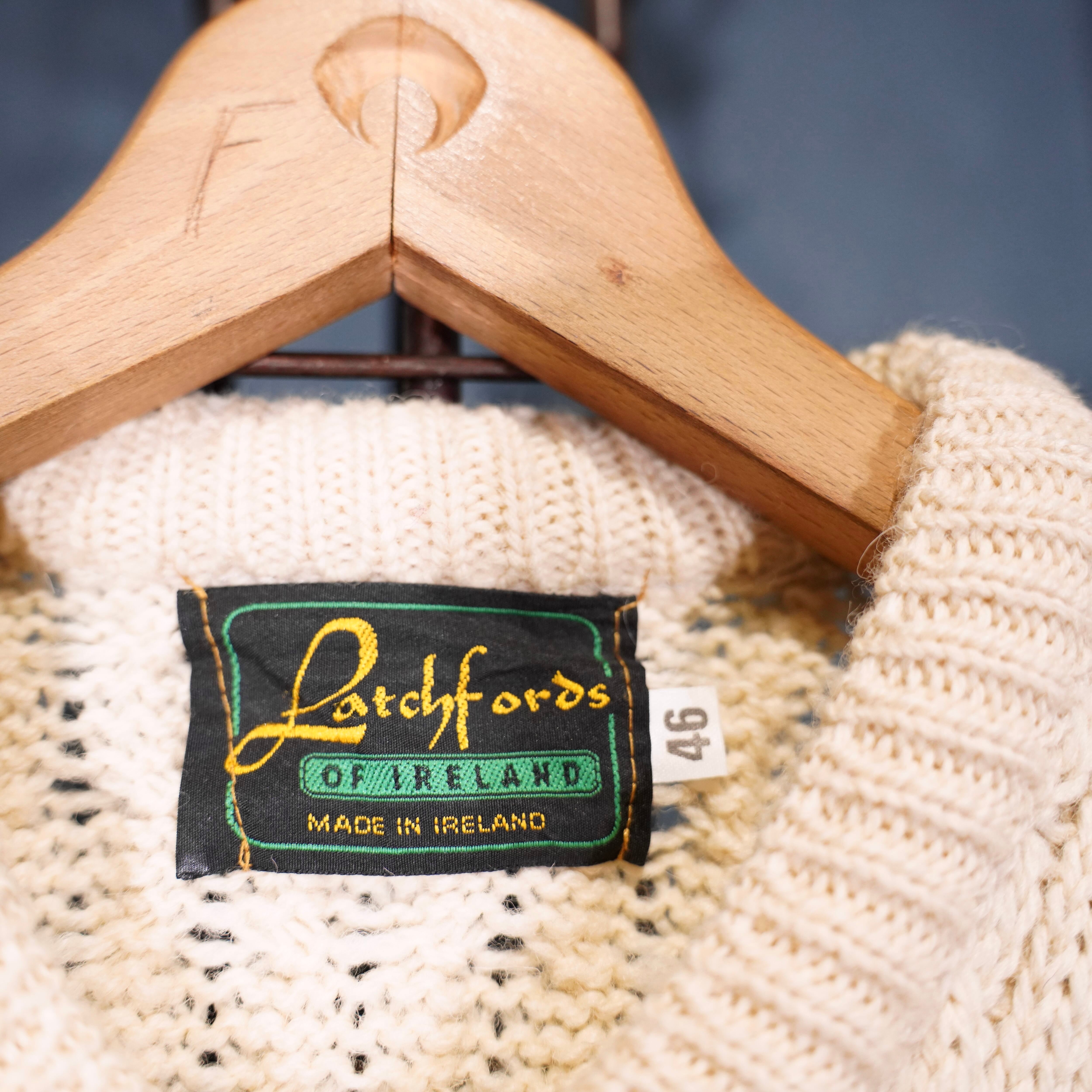 EU VINTAGE Latchfords OF IRELAND CABLE DESIGN ARAN KNIT MADE IN IRELAND/ヨーロッパ古着ケーブルデザインアランニット