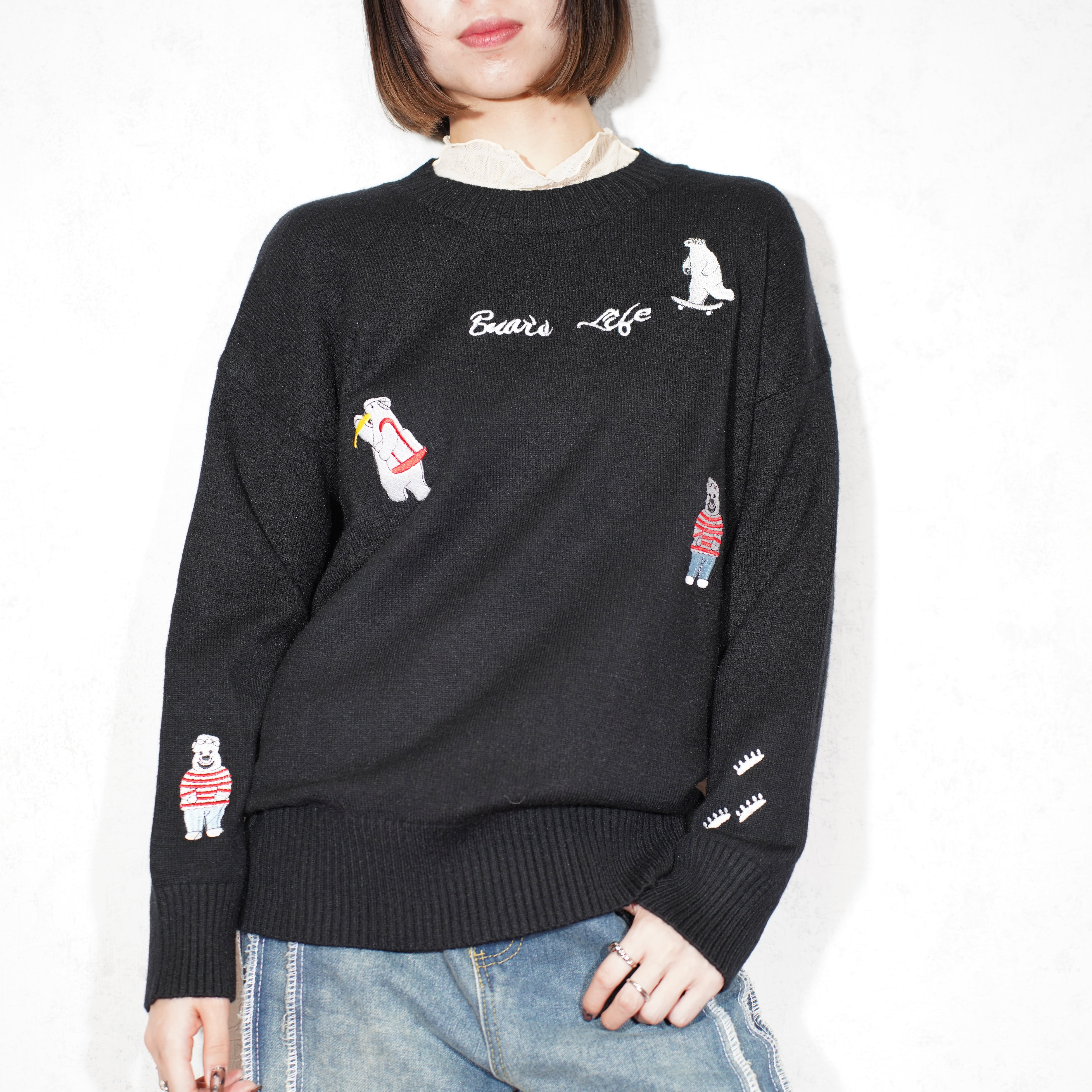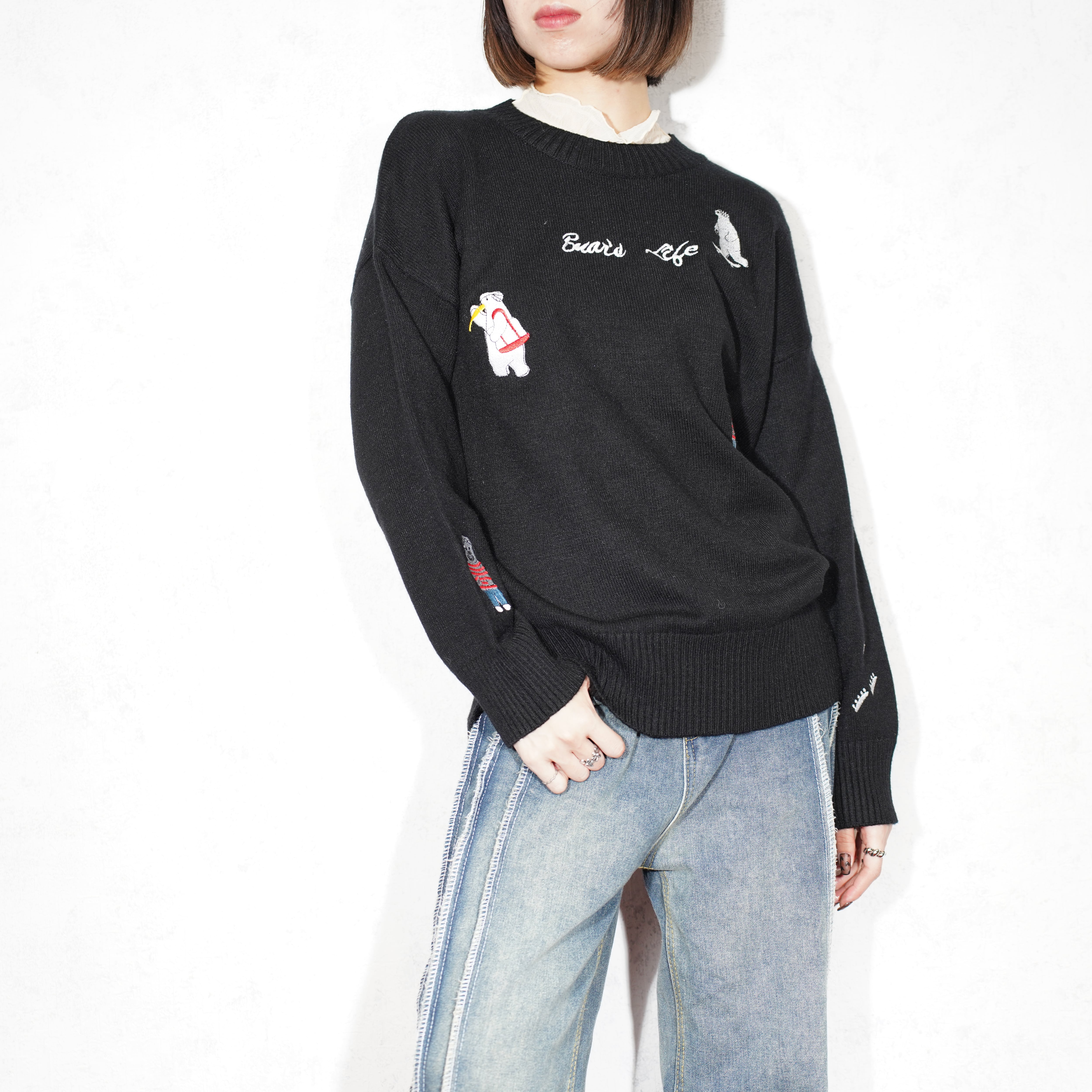 USA VINTAGE WHITE BEAR EMBROIDERY DESIGN KNIT/アメリカ古着シロクマ刺繍デザインニット